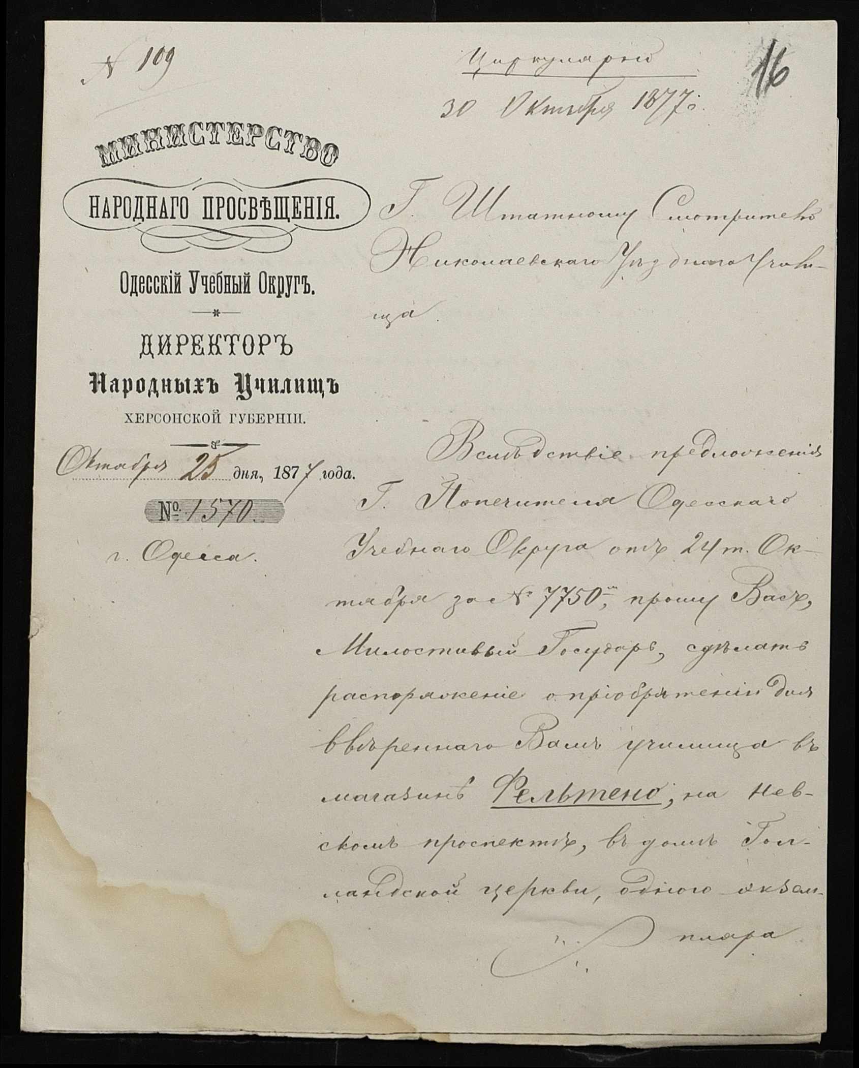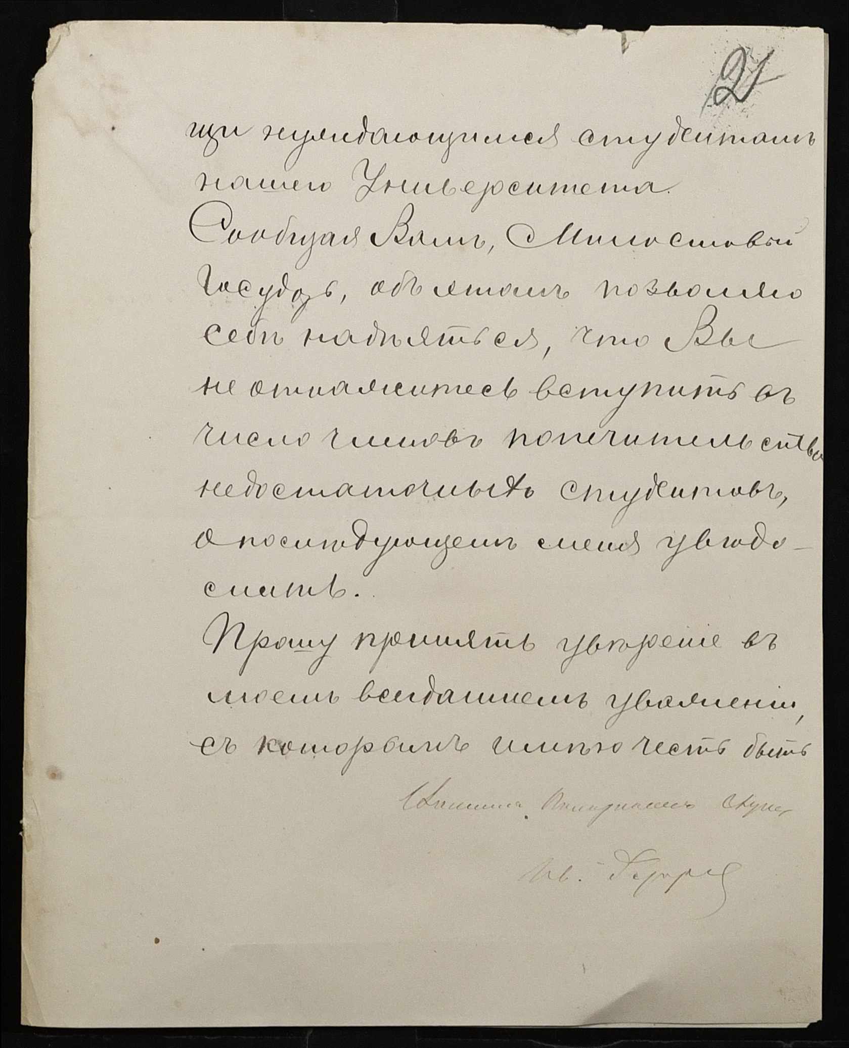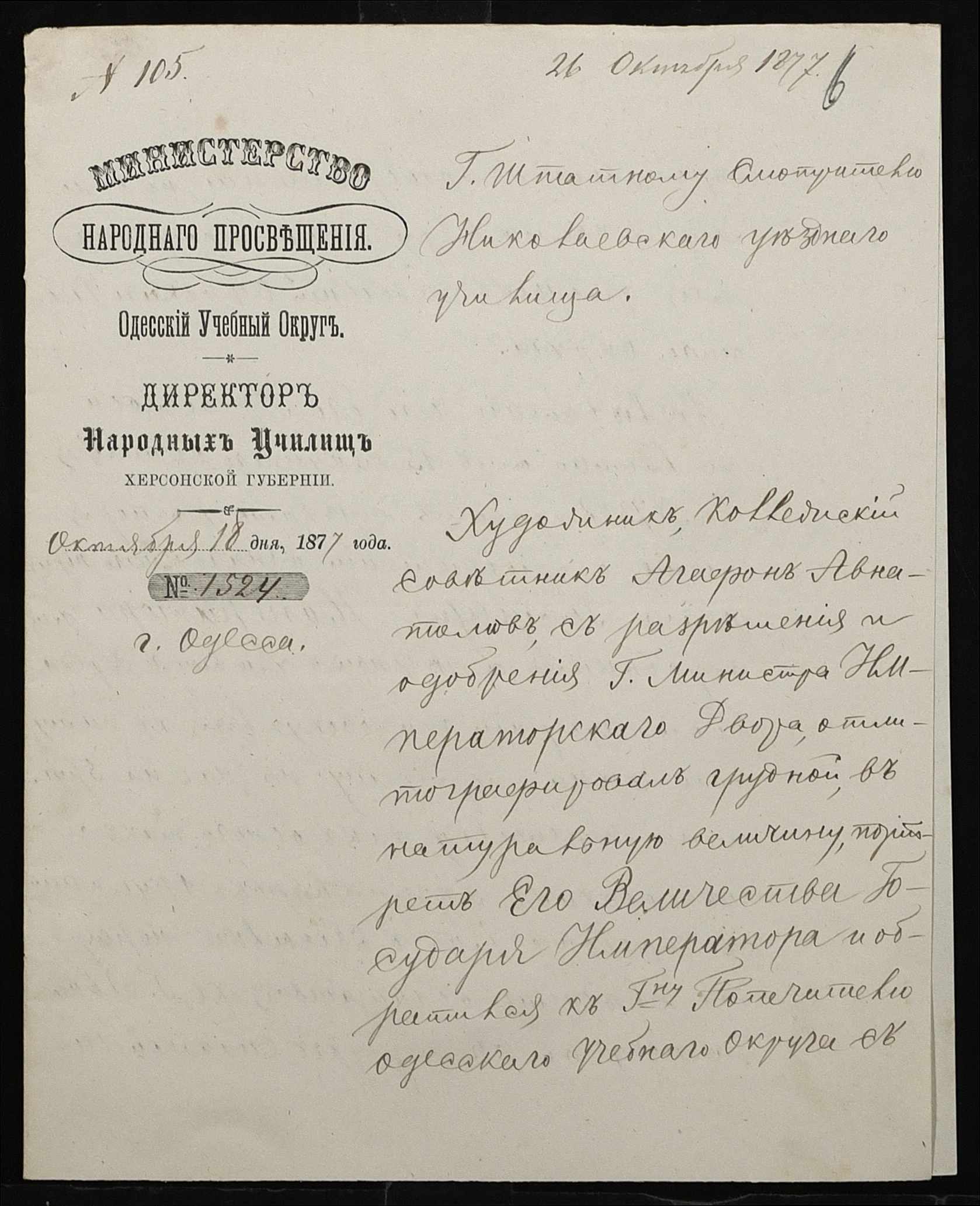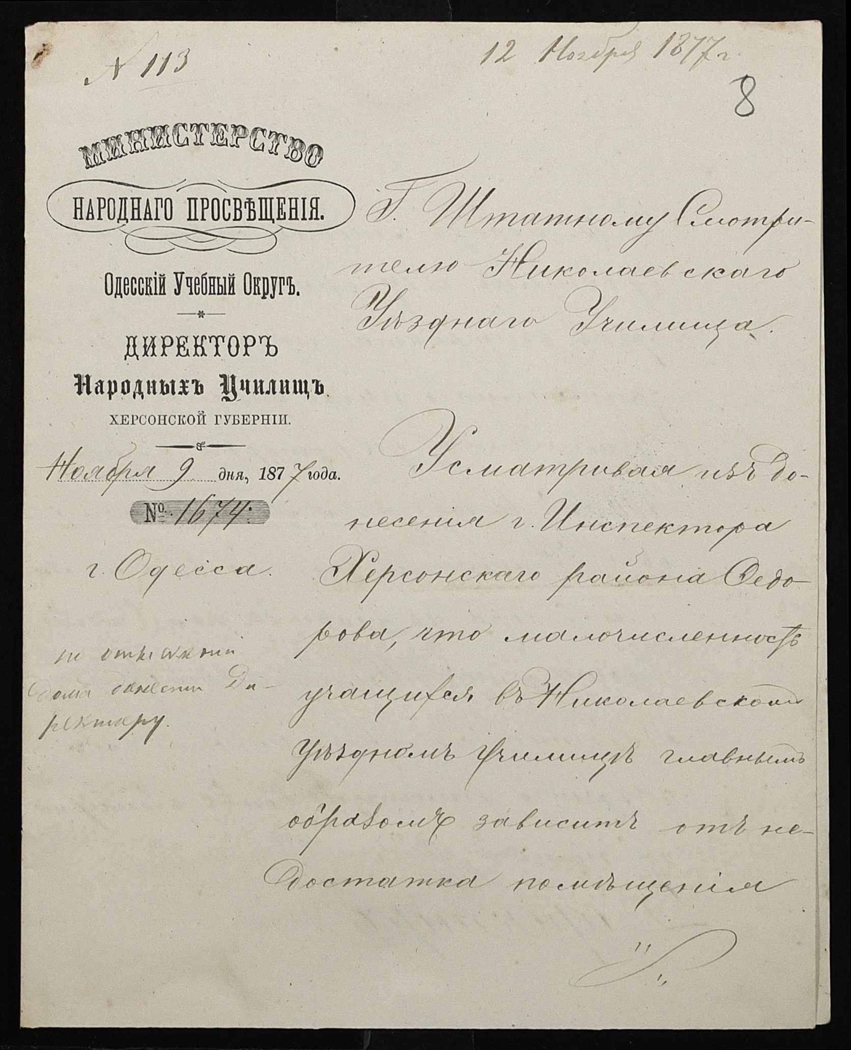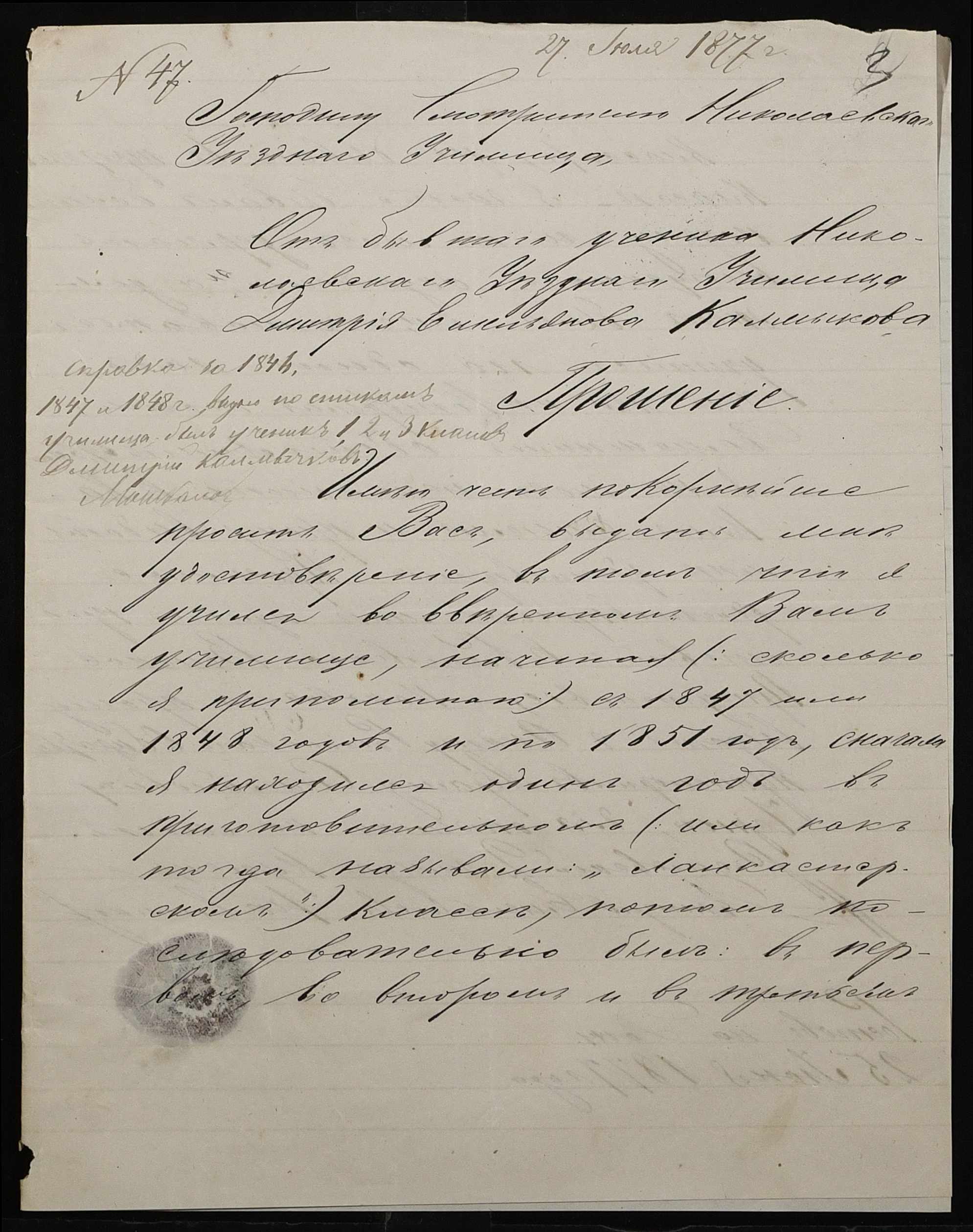 • • • • Справа № 100 “Прохання про видачу свідоцтва про проходження педагогічних курсів в училищі, про прийом на службу чиновників та інше”