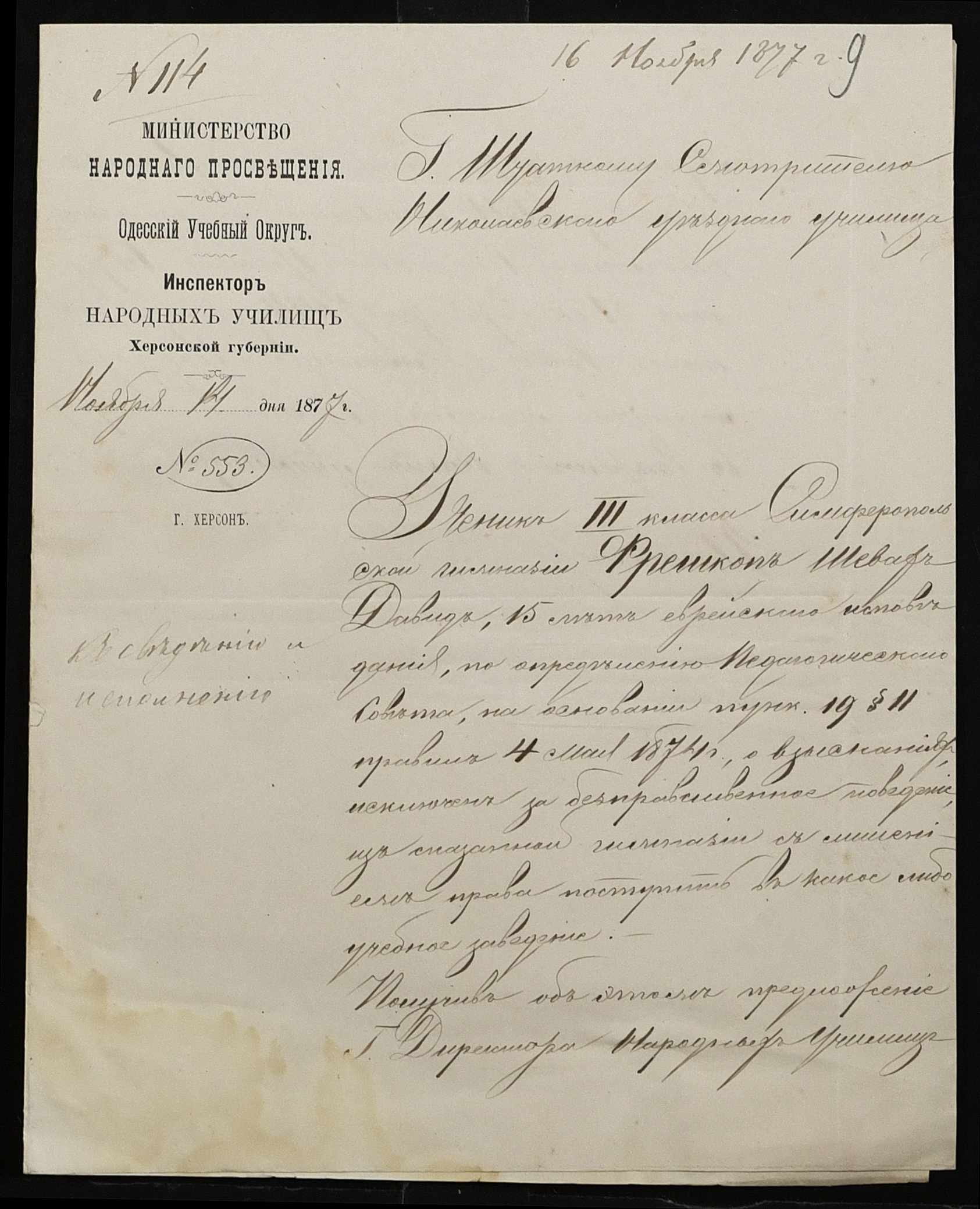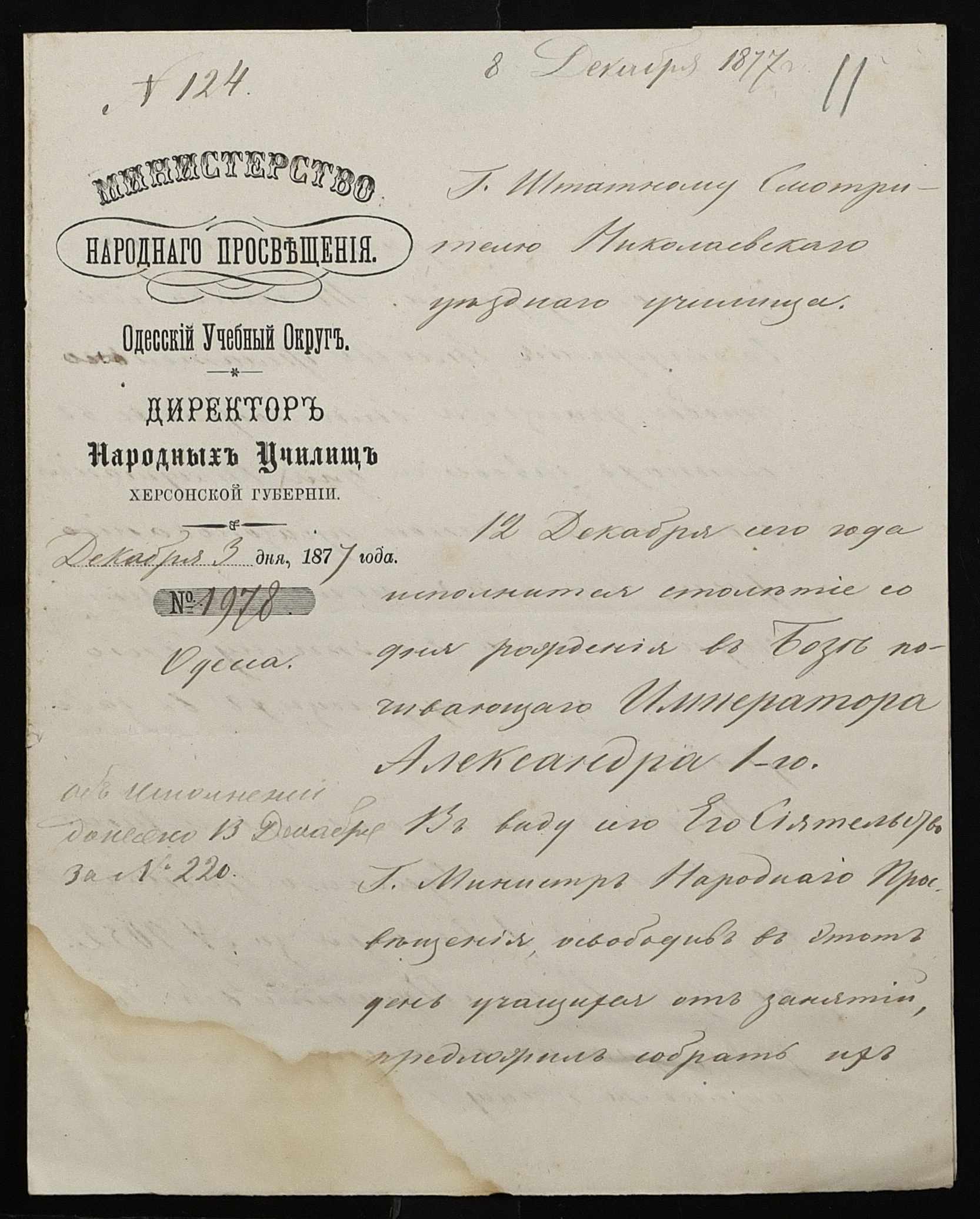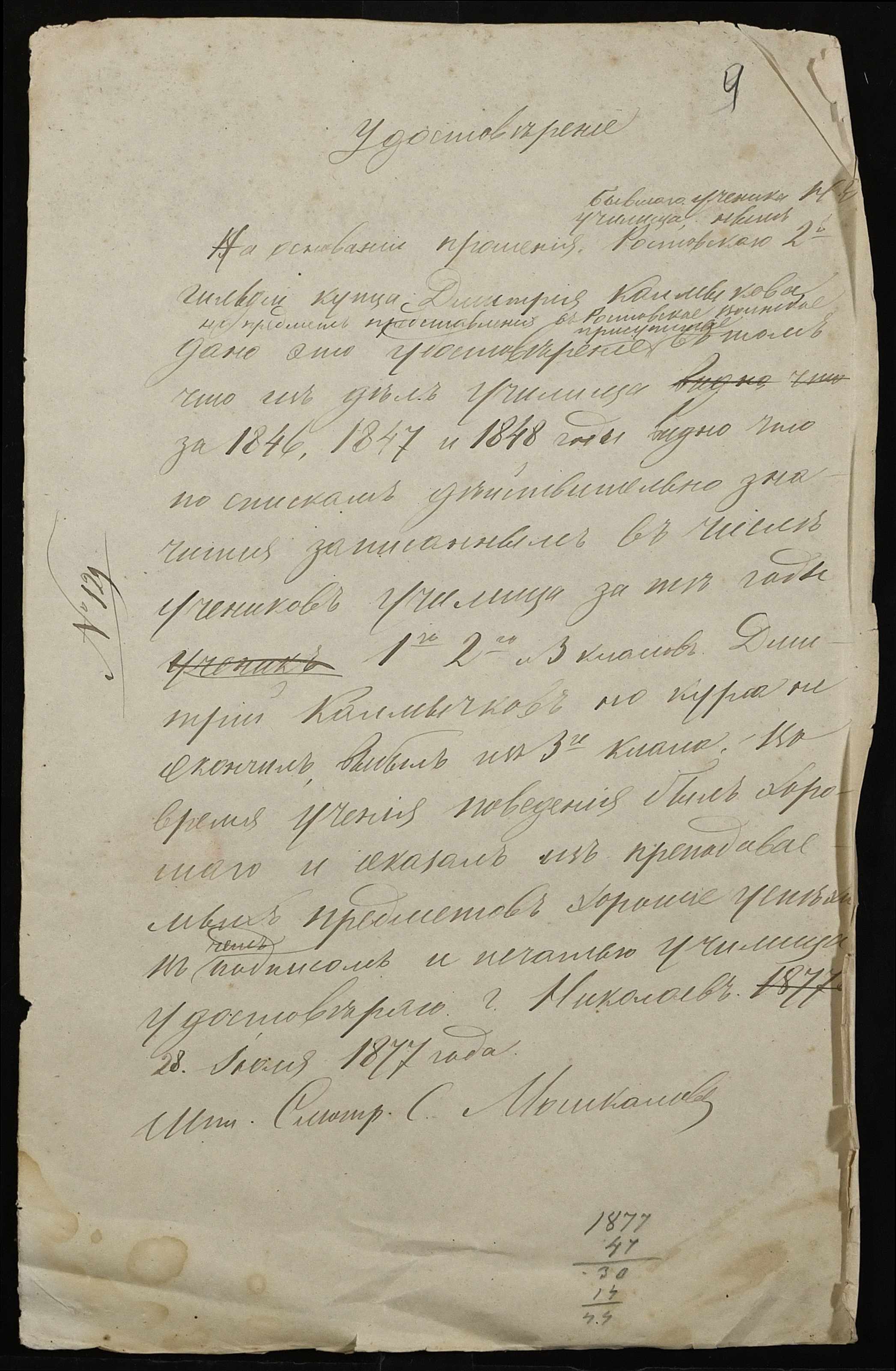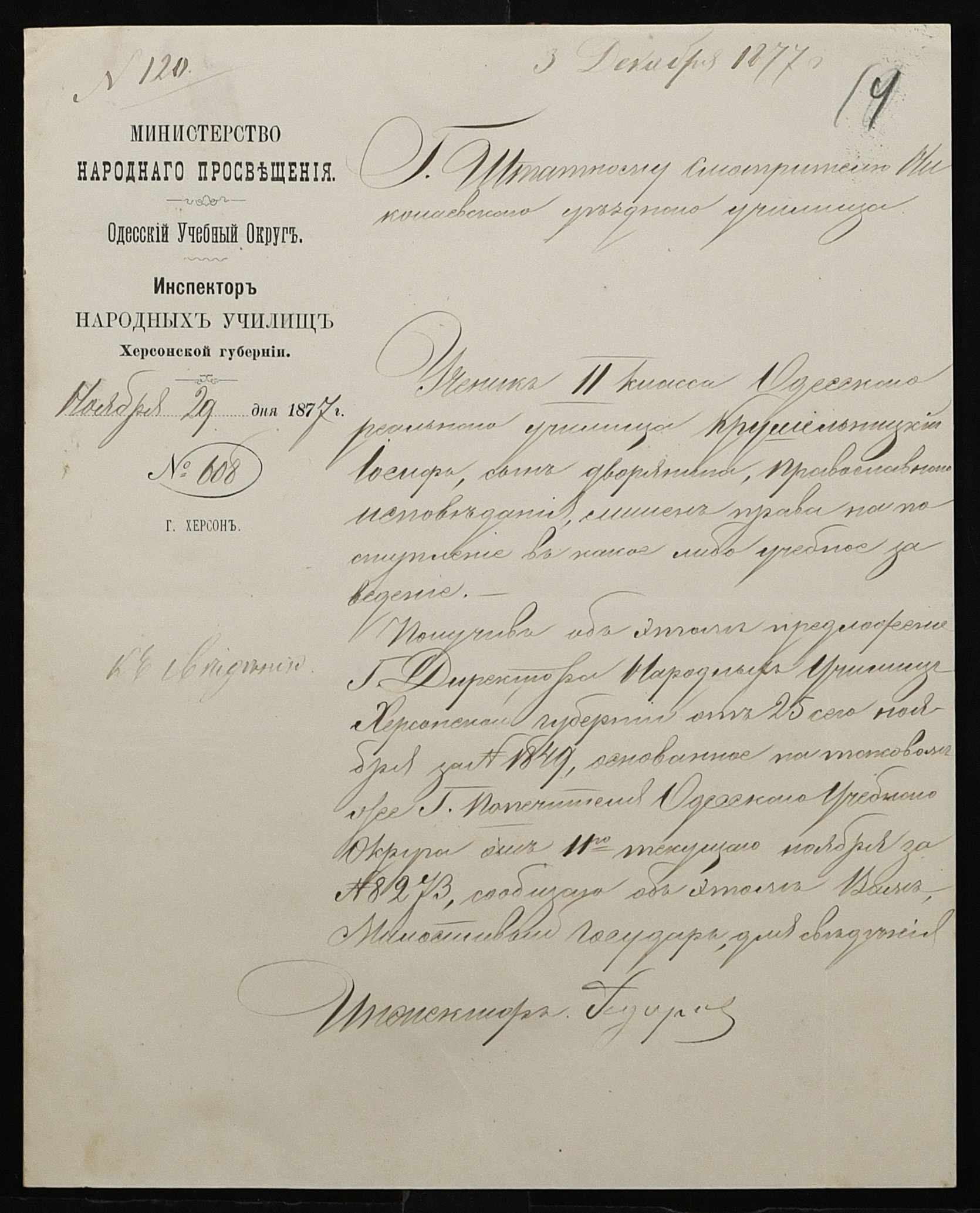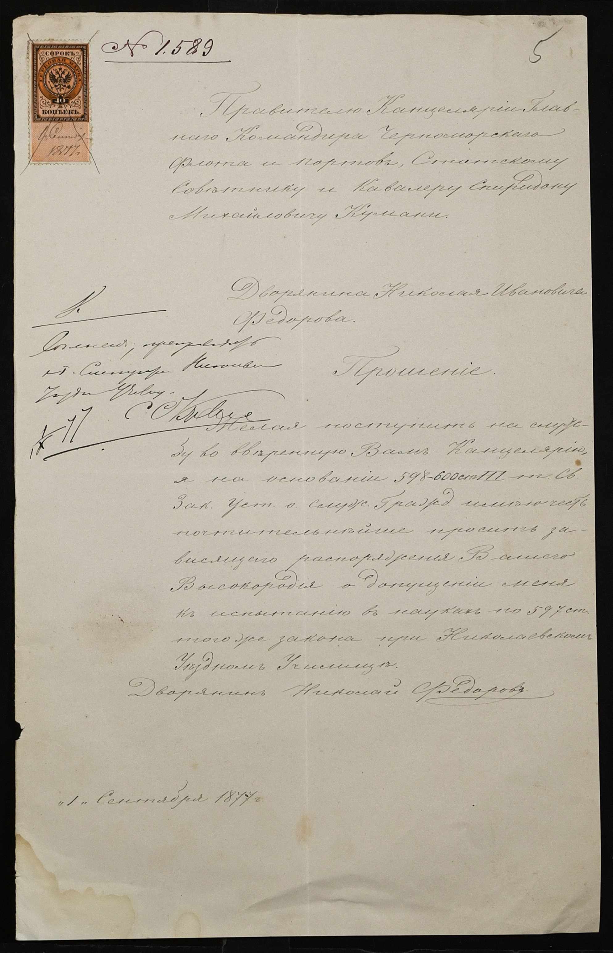 • • • • Справа № 100 “Прохання про видачу свідоцтва про проходження педагогічних курсів в училищі, про прийом на службу чиновників та інше”