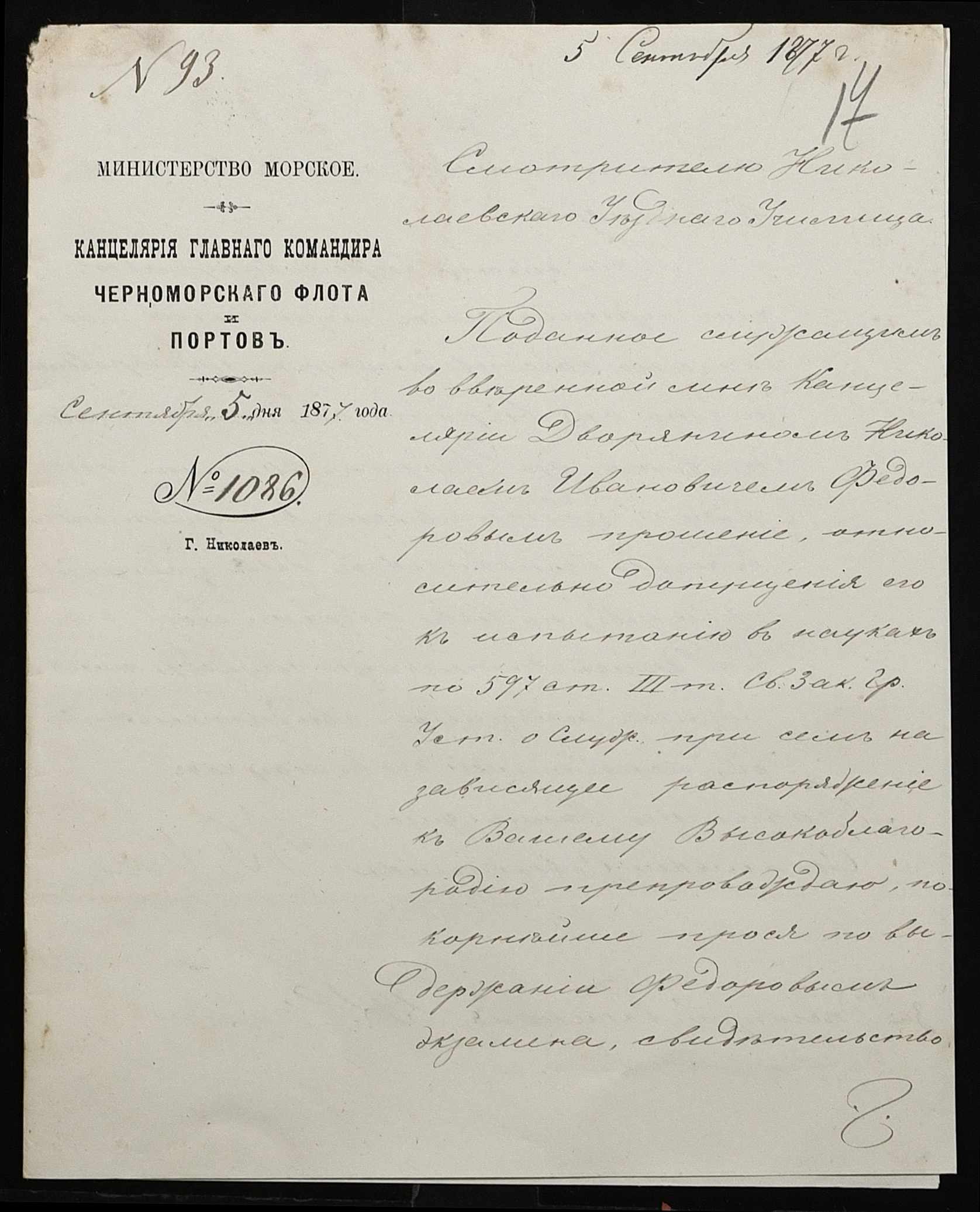 ◦ ◦ Фонд № 131 “Миколаївське перше вище початкове училище”