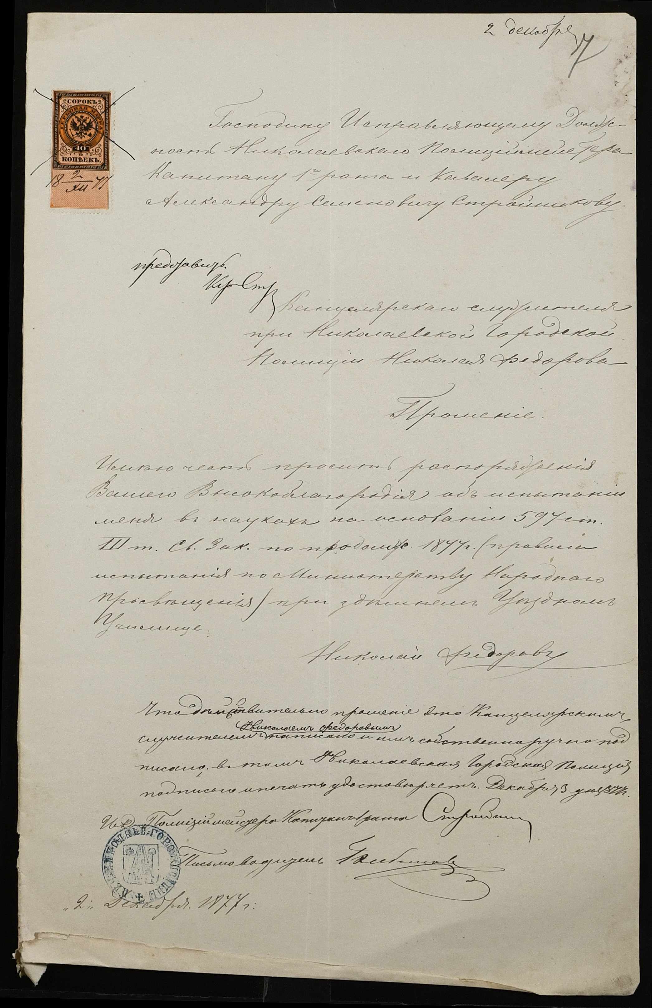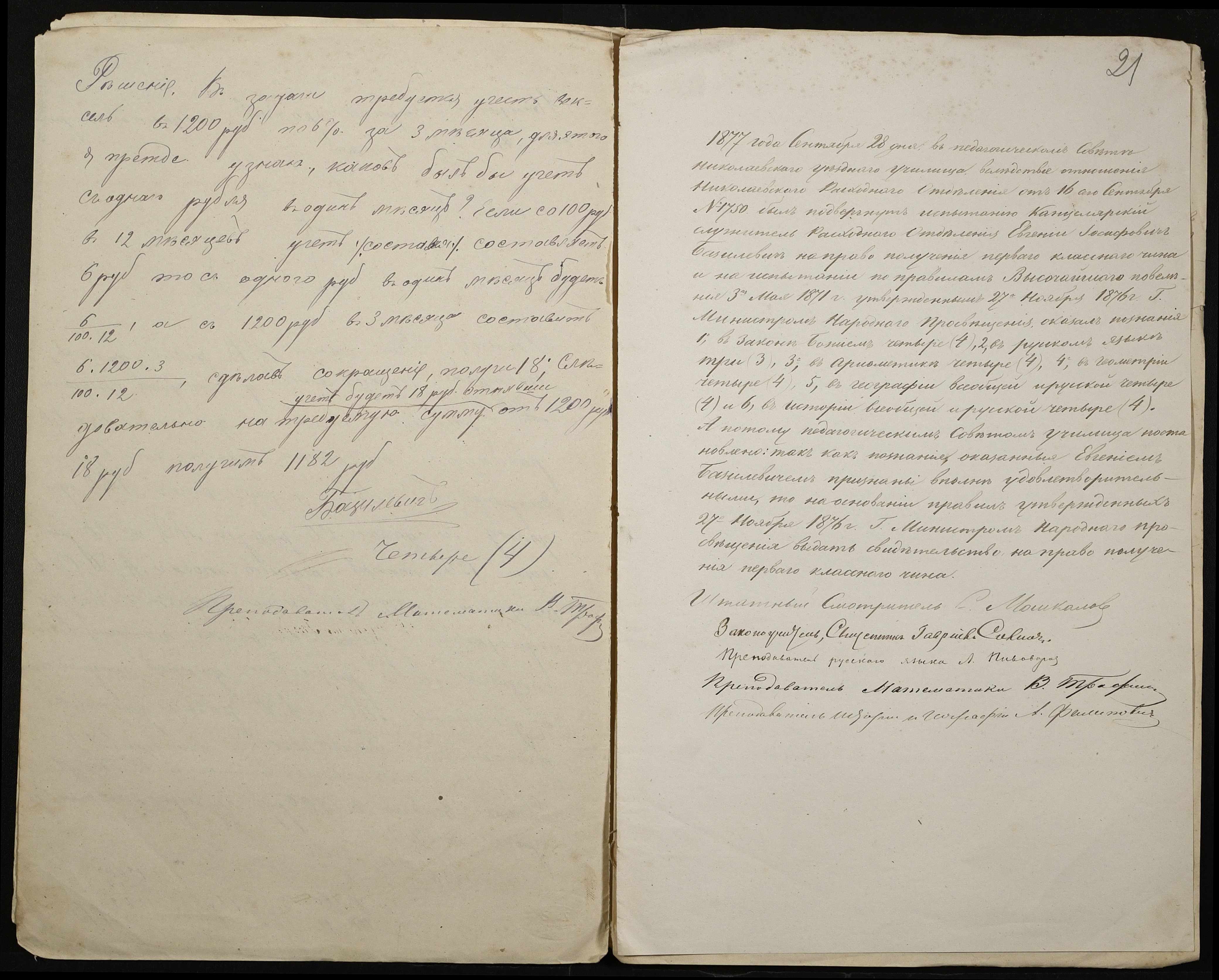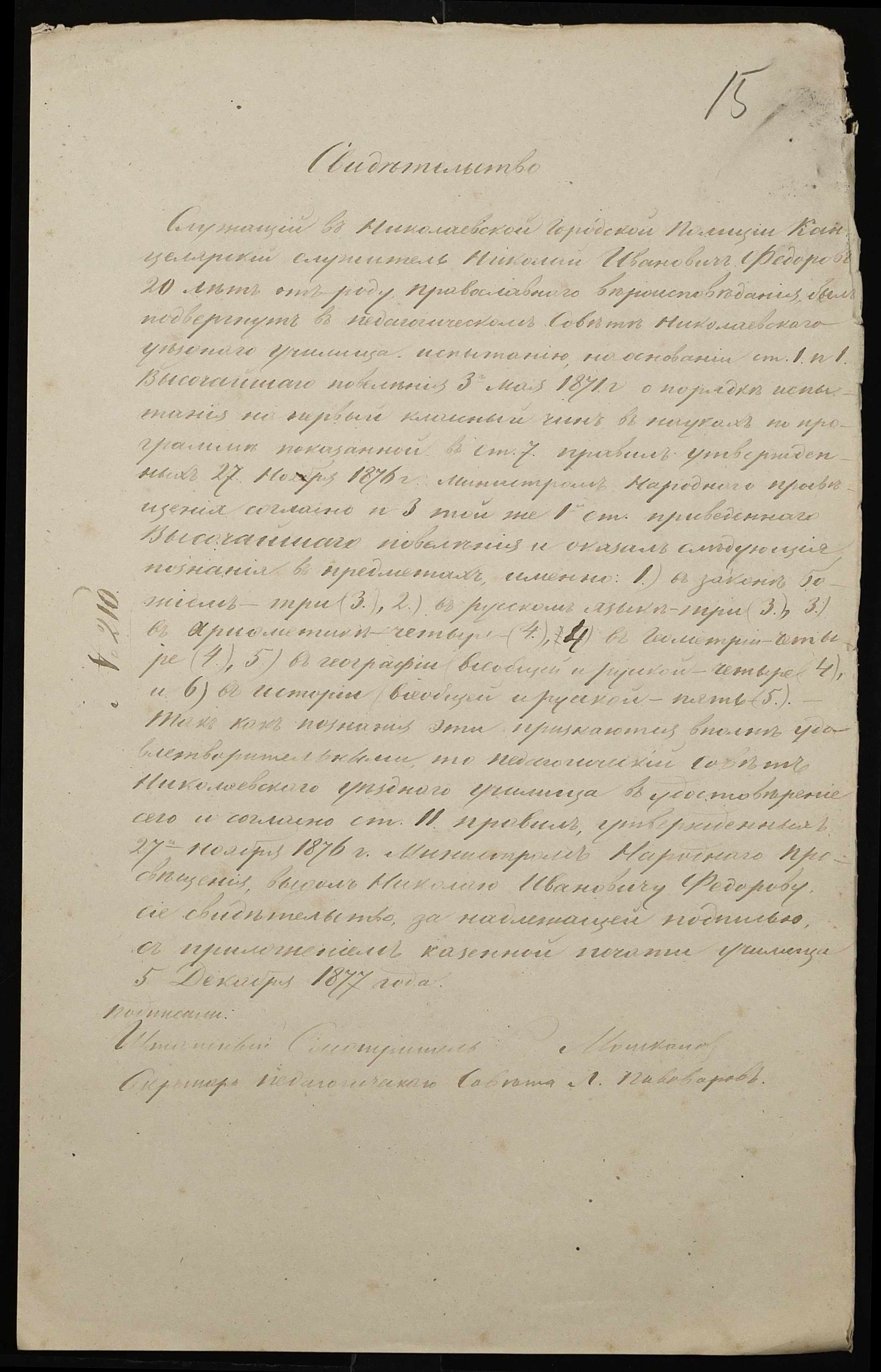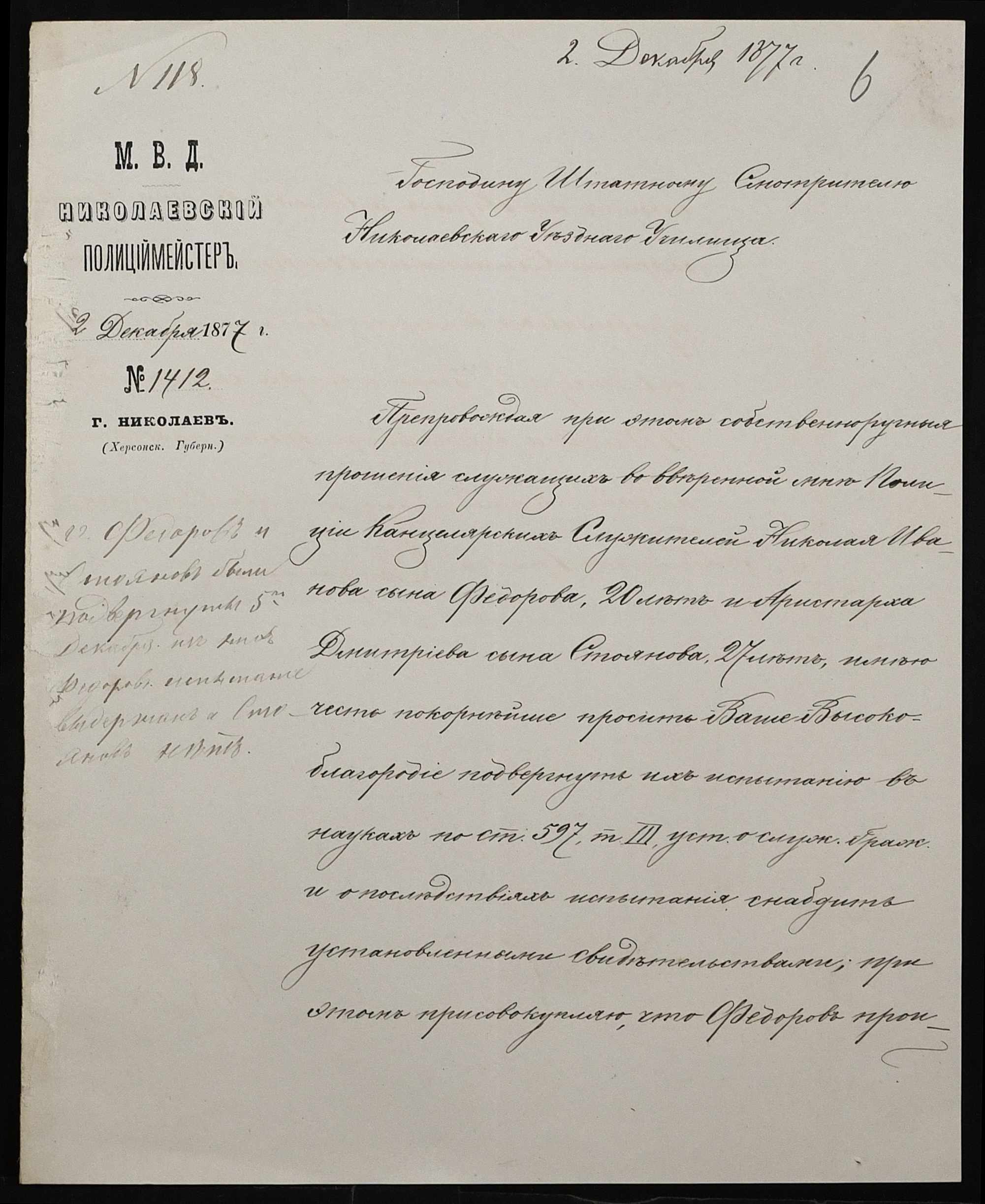 • • • • Справа № 102 “Справа про іспити і свідоцтва на отримання першого класного чина А. Стояновим (А. Стояновым), Н. Федоровим (Н. Федоровым), Є. Базилевичем (Е. Базилевичем) ”