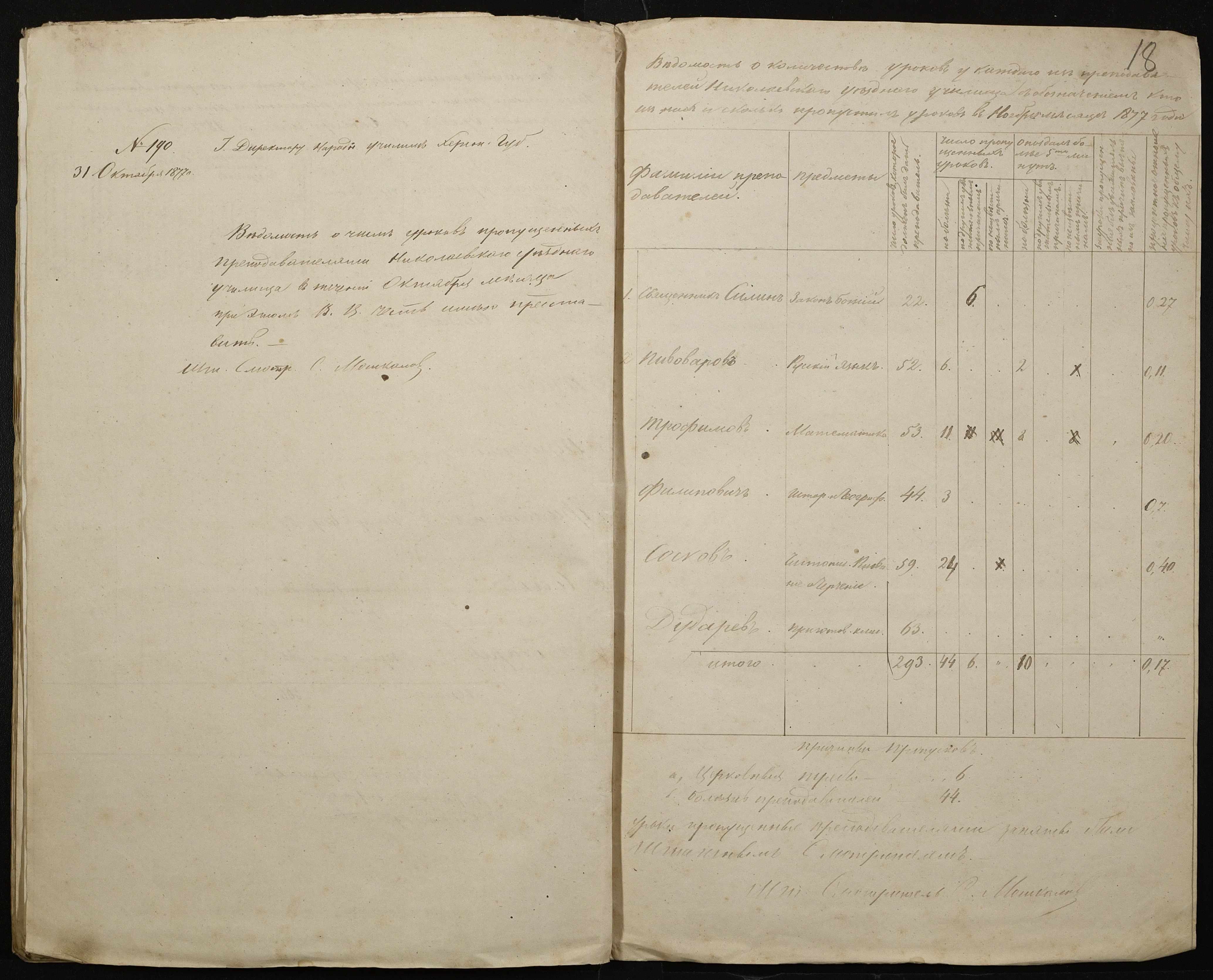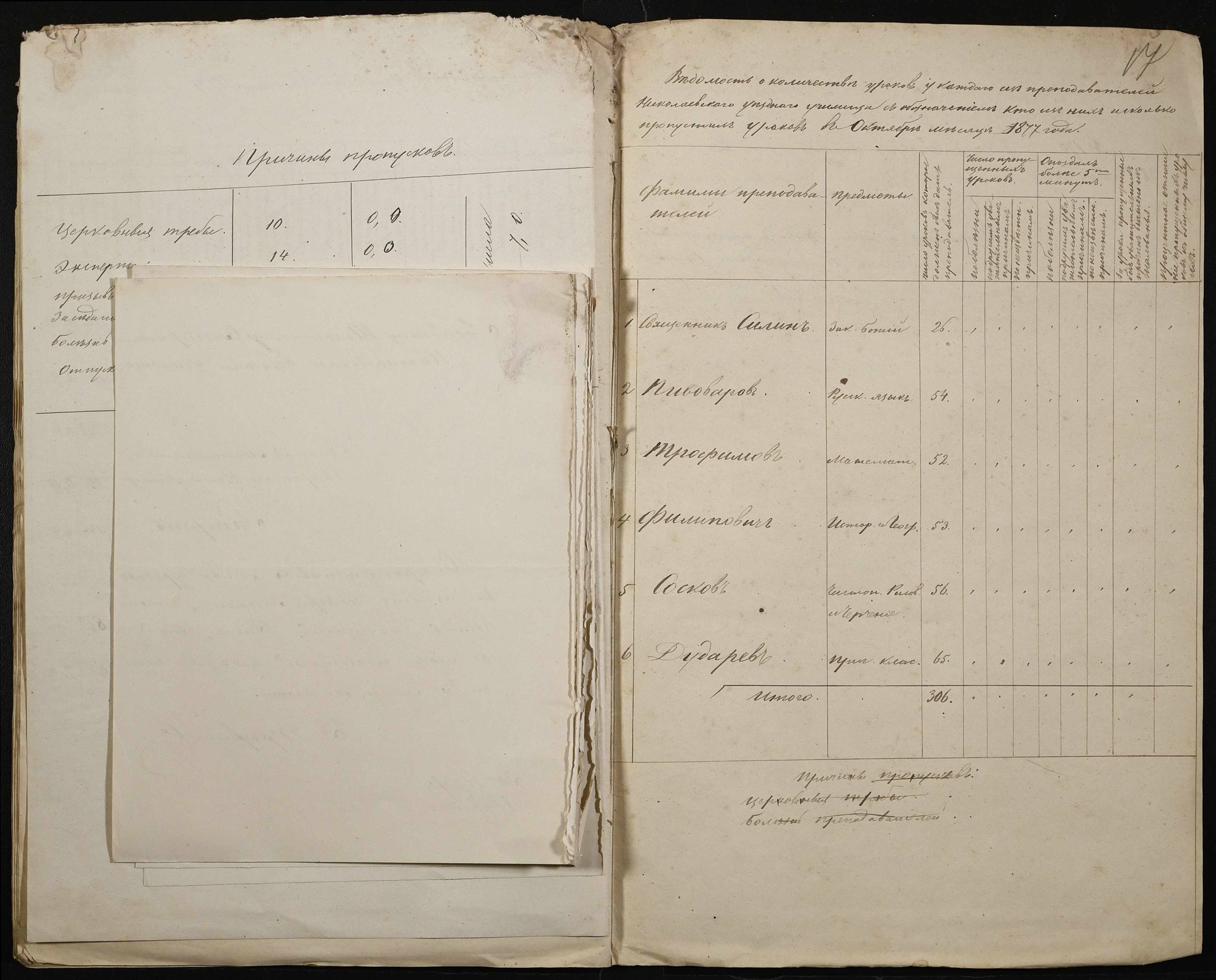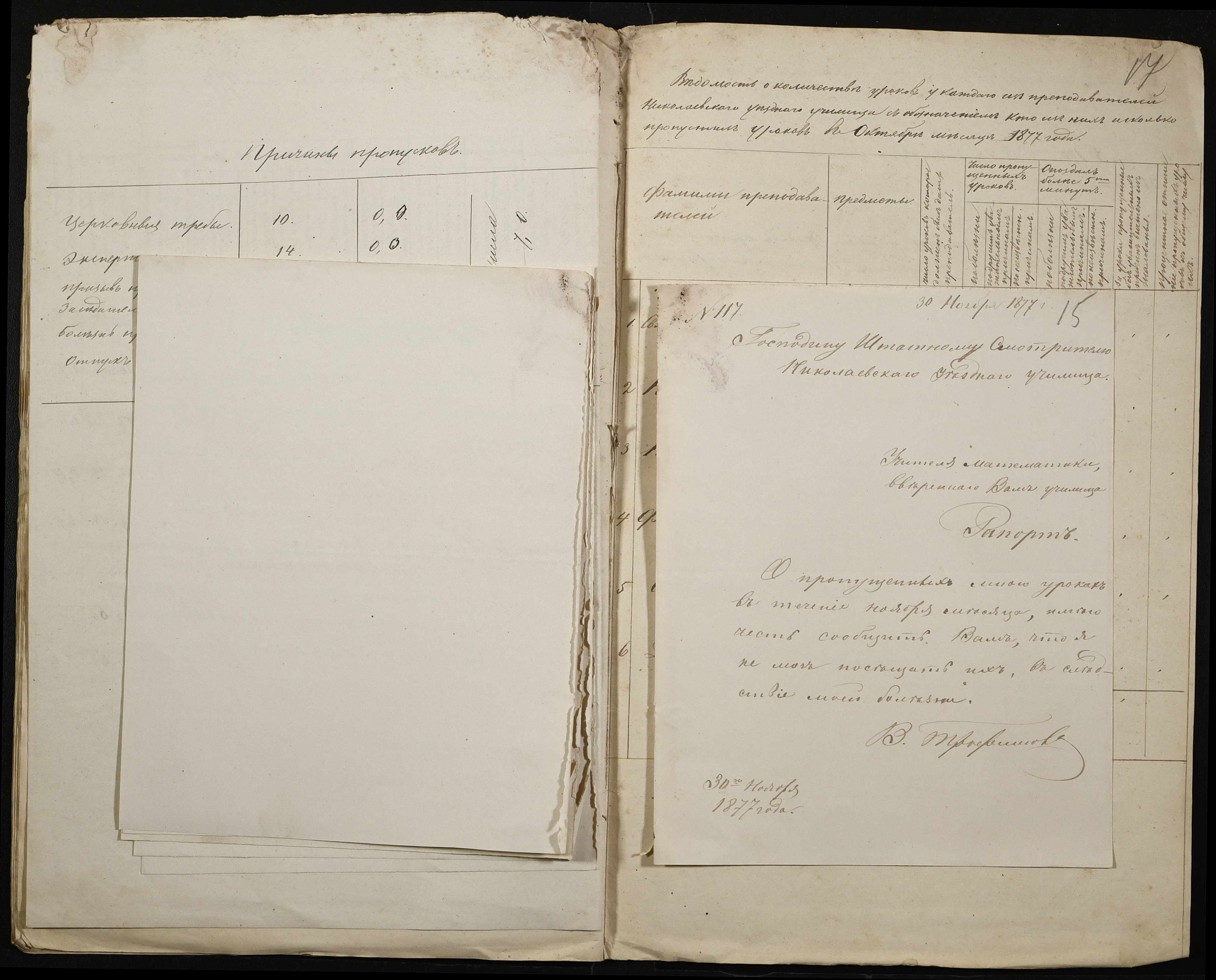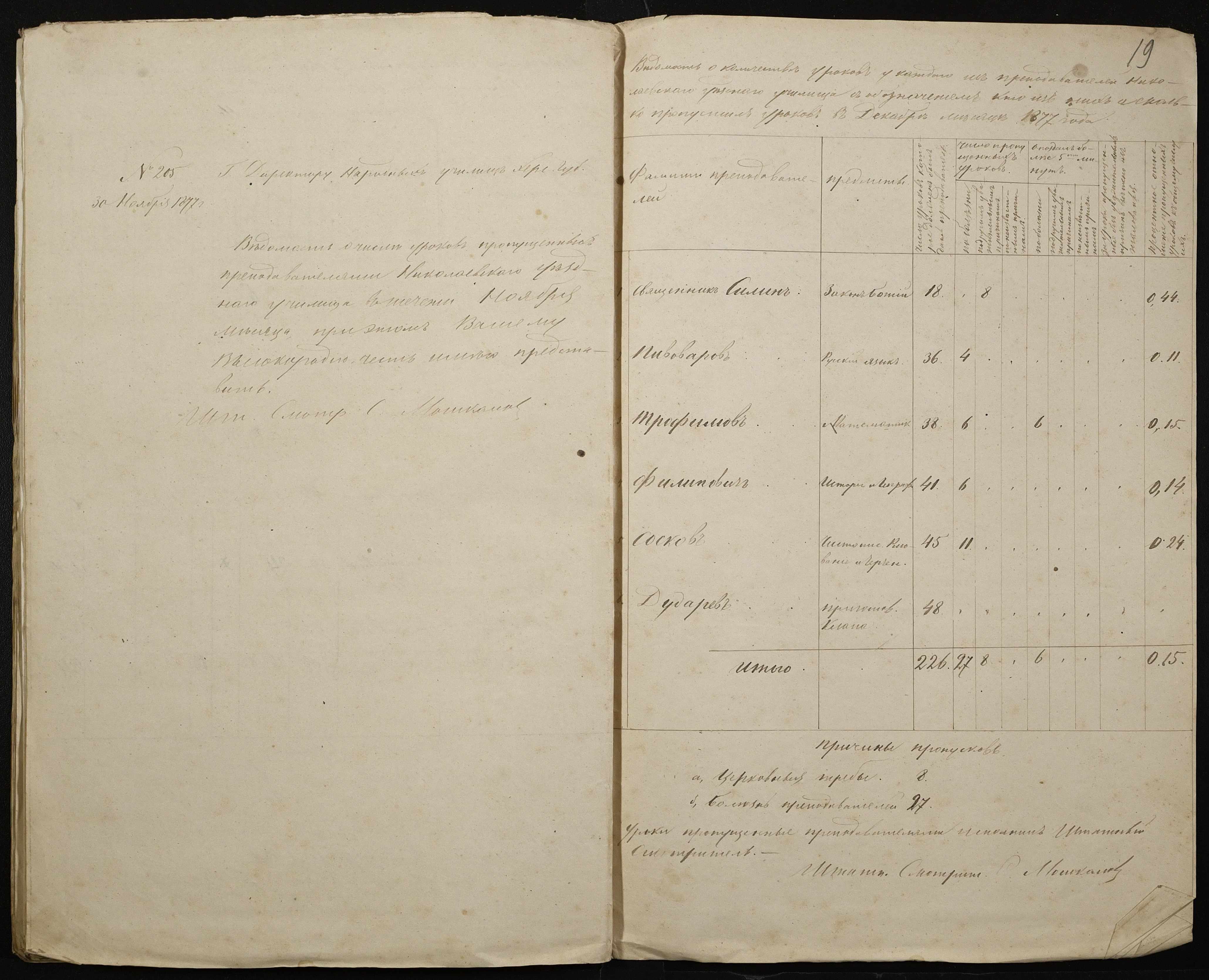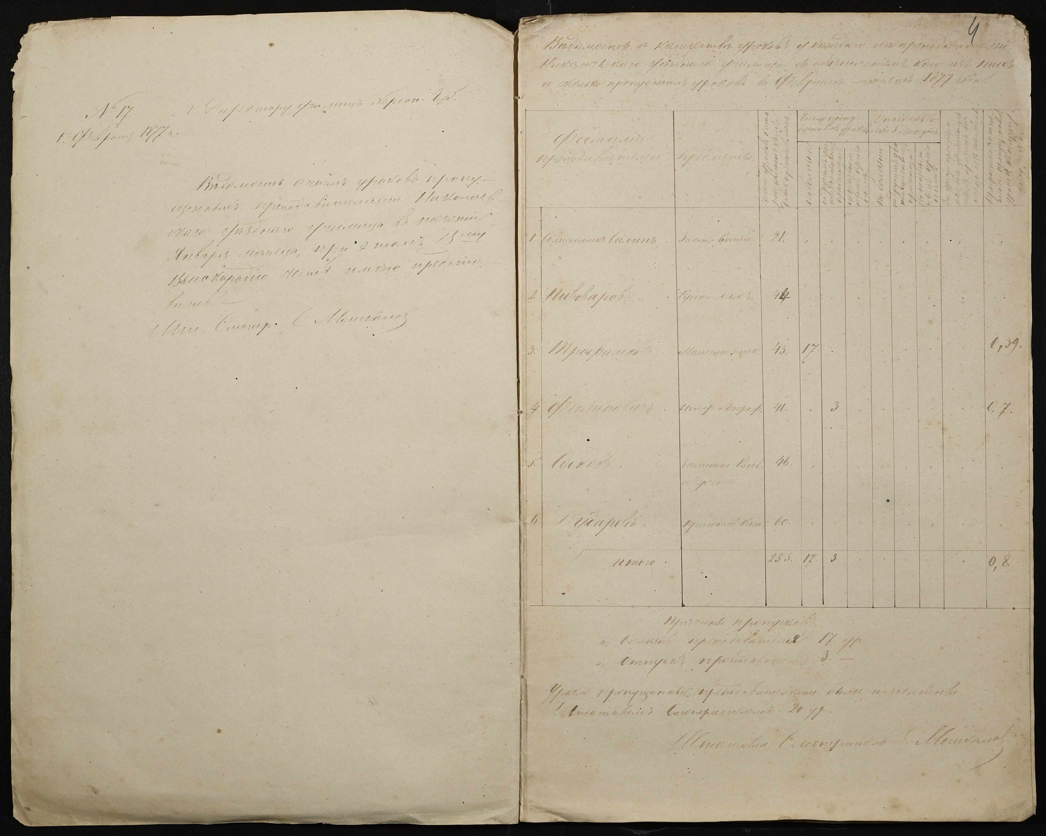• • • • Справа № 105 “Відомість обліку уроків, на яких були відсутні викладачі ”