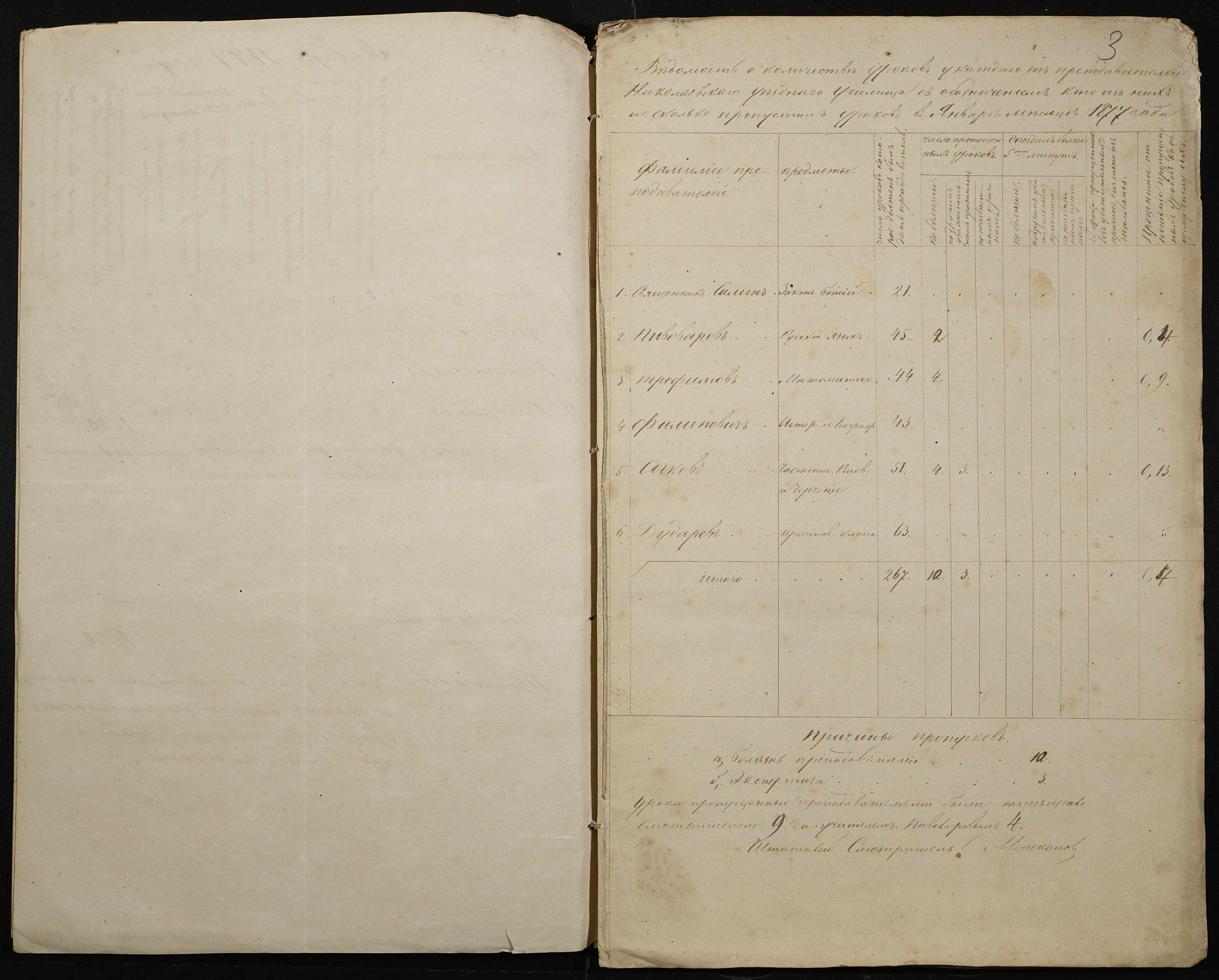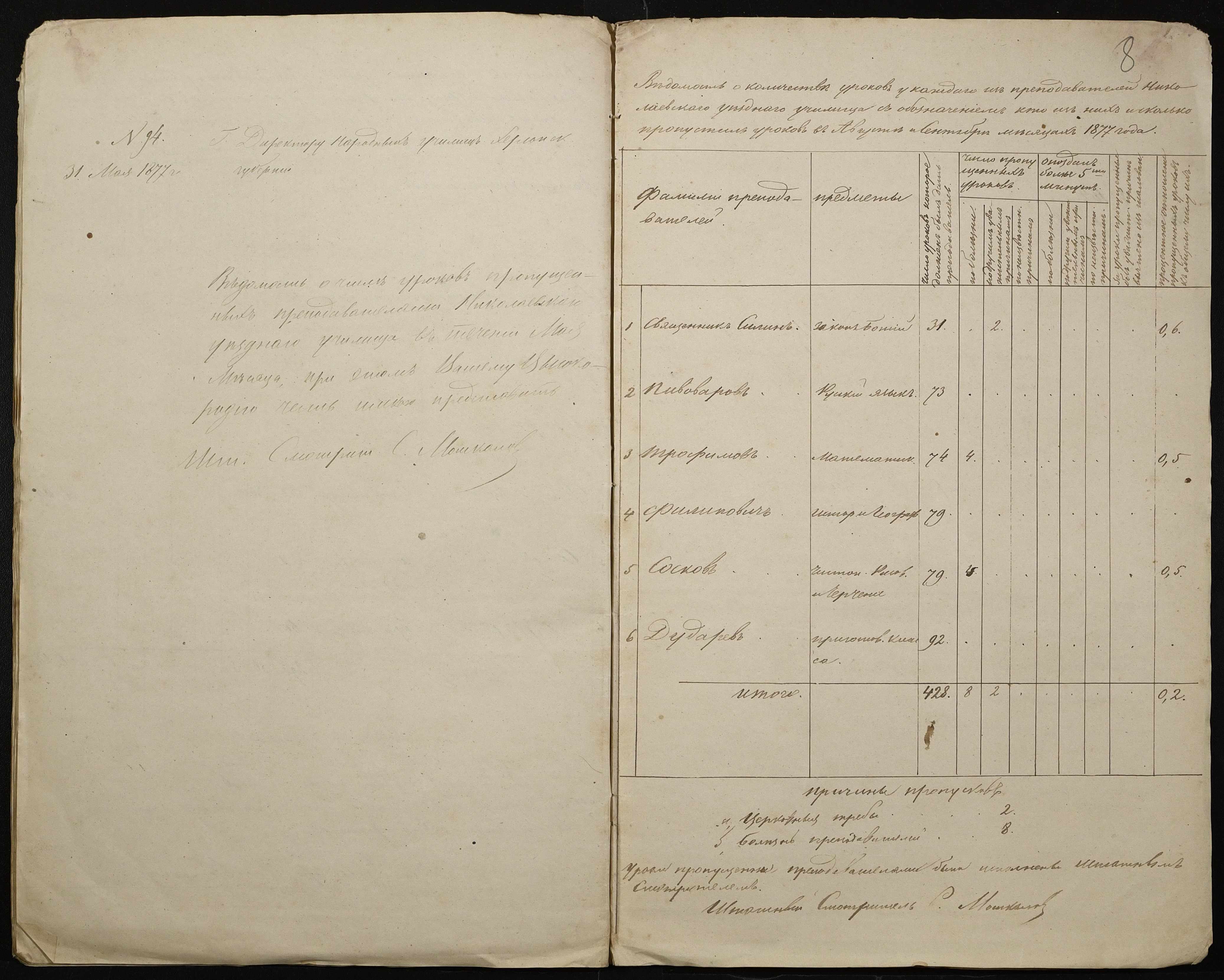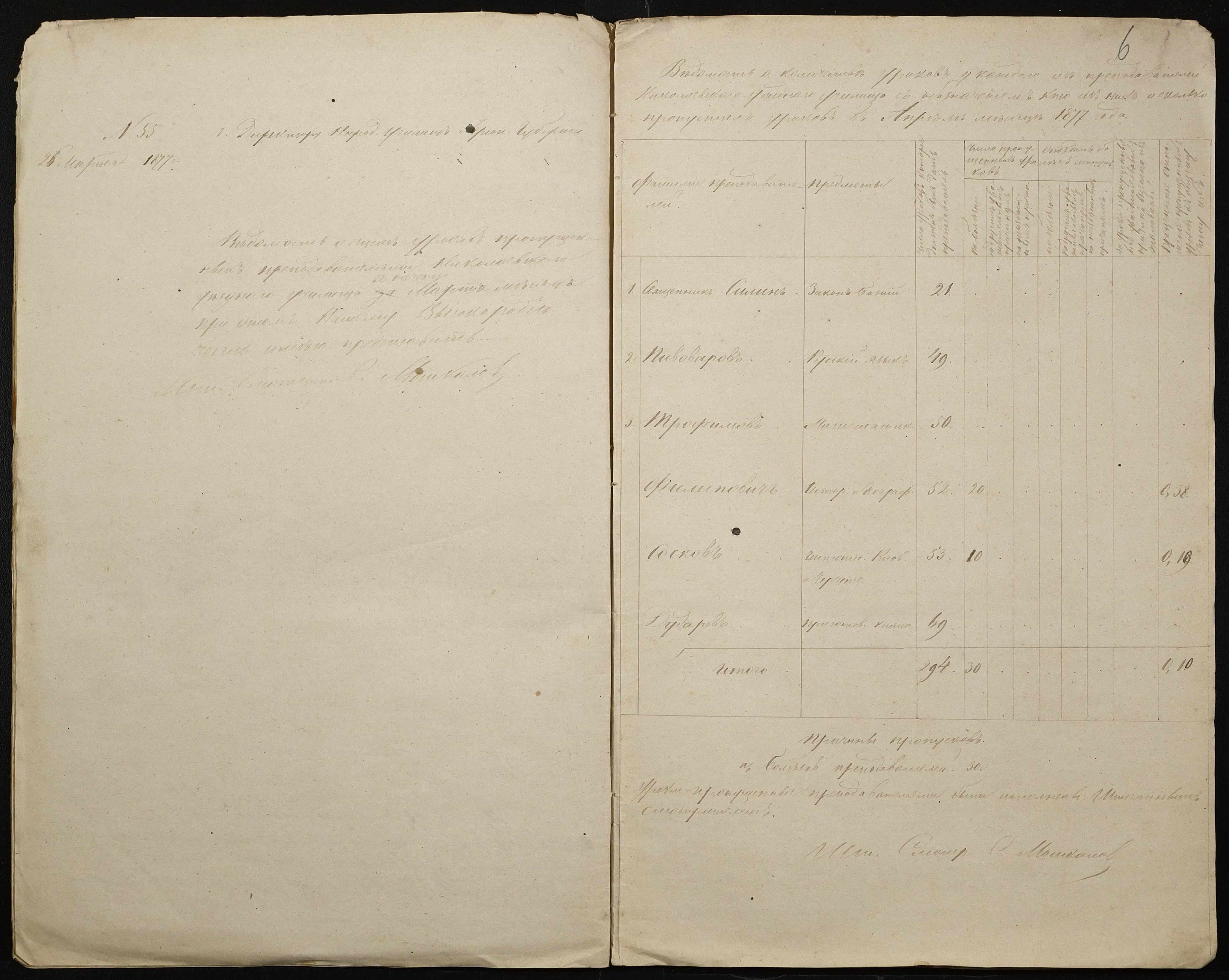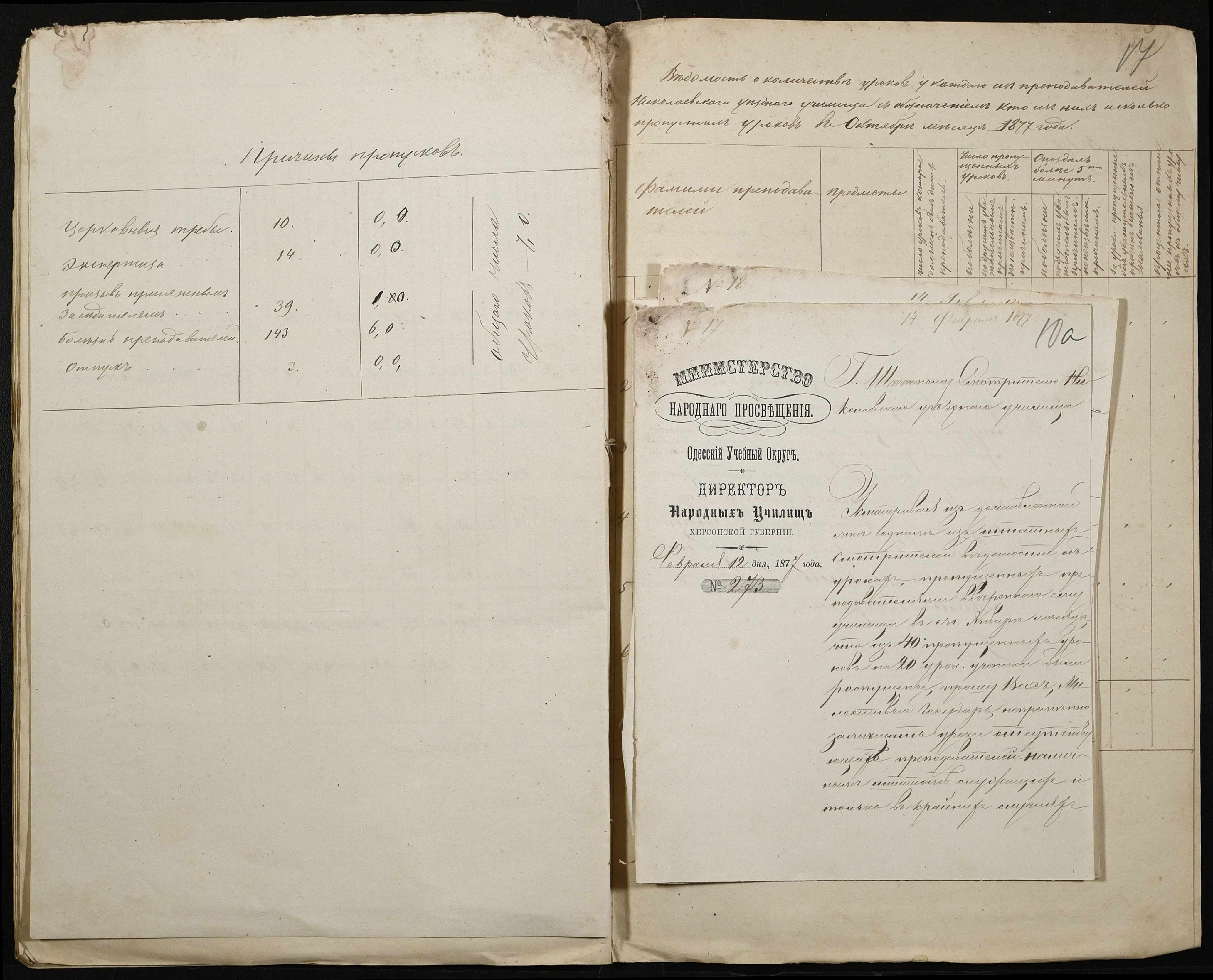 • • • • Справа № 105 “Відомість обліку уроків, на яких були відсутні викладачі ”