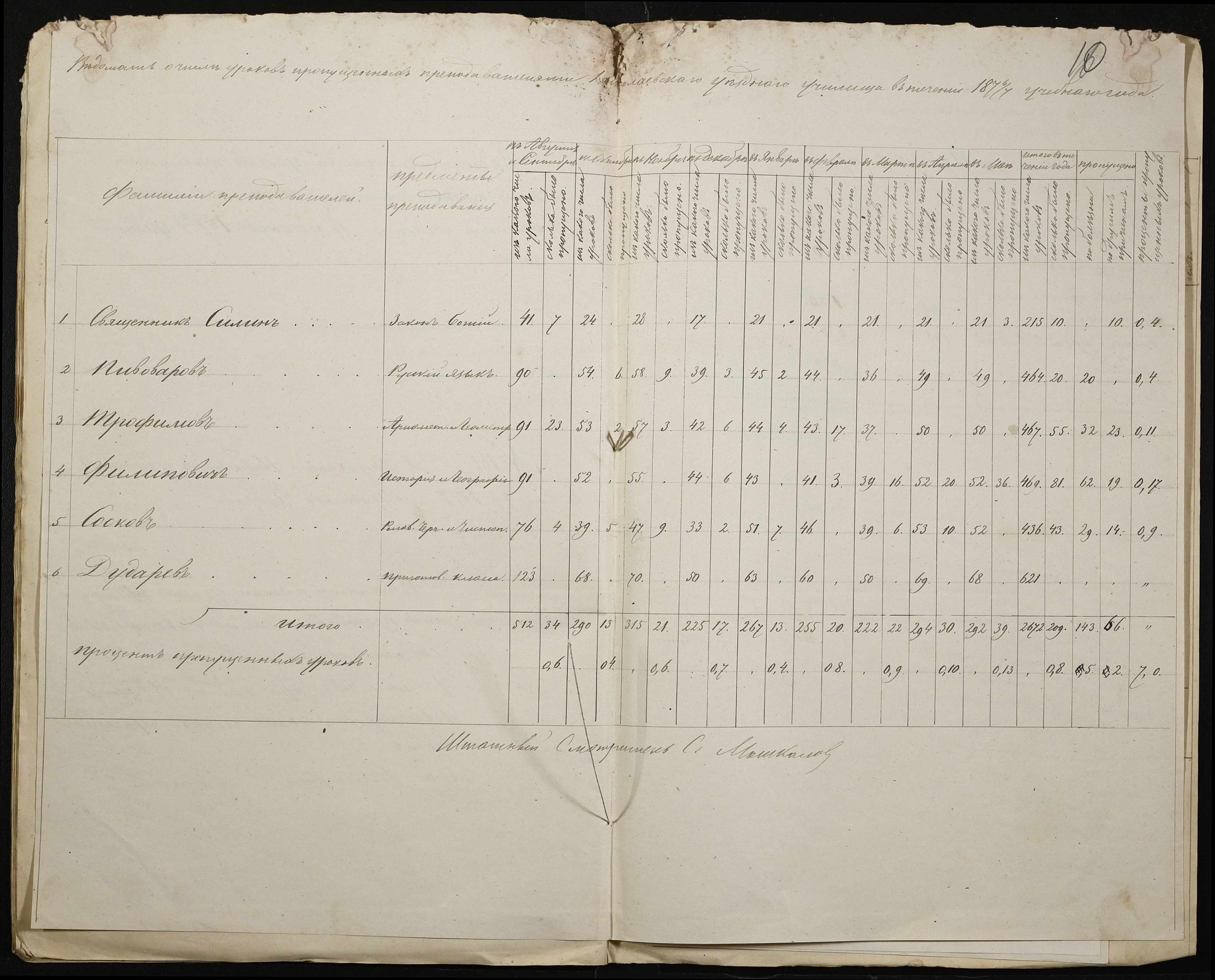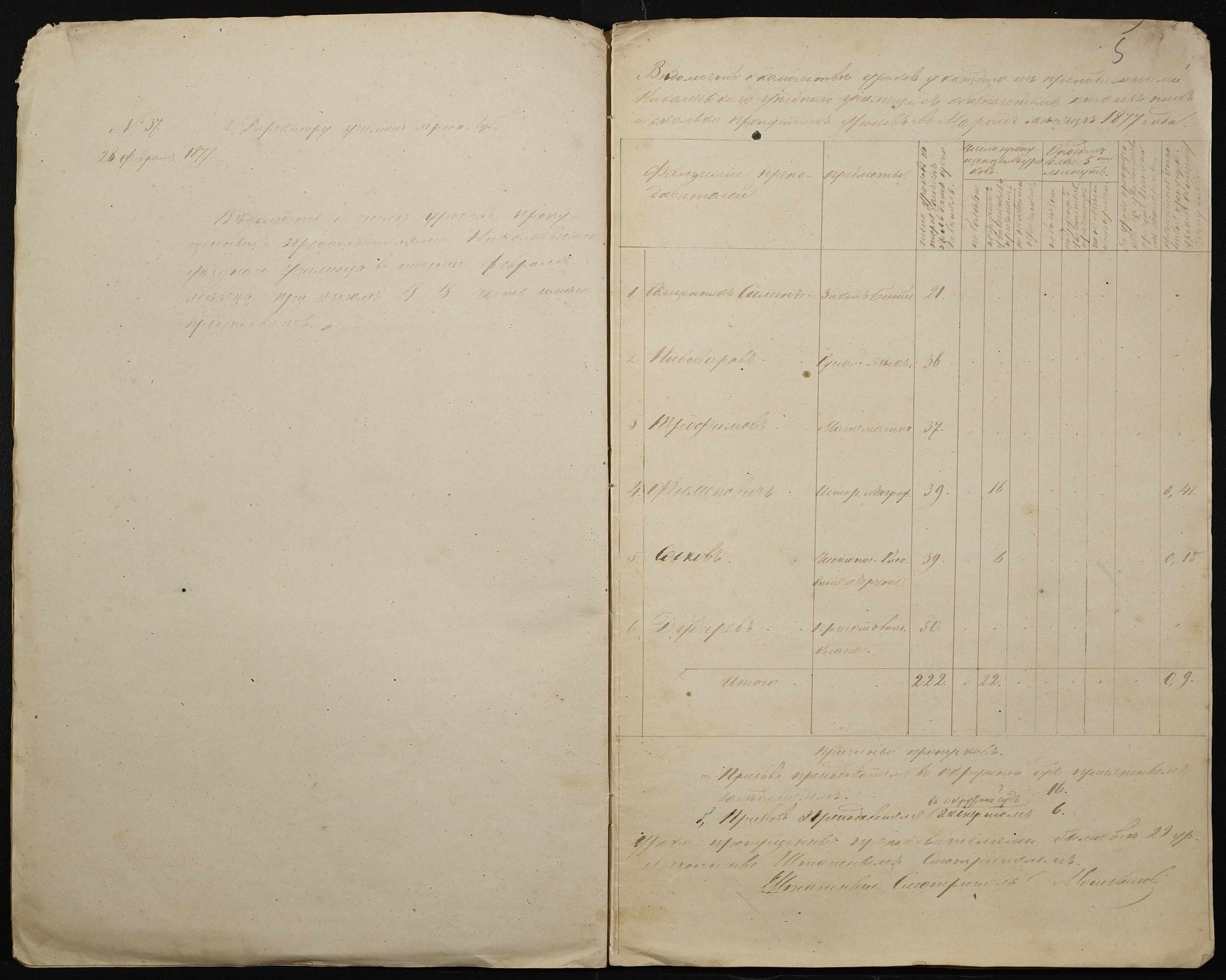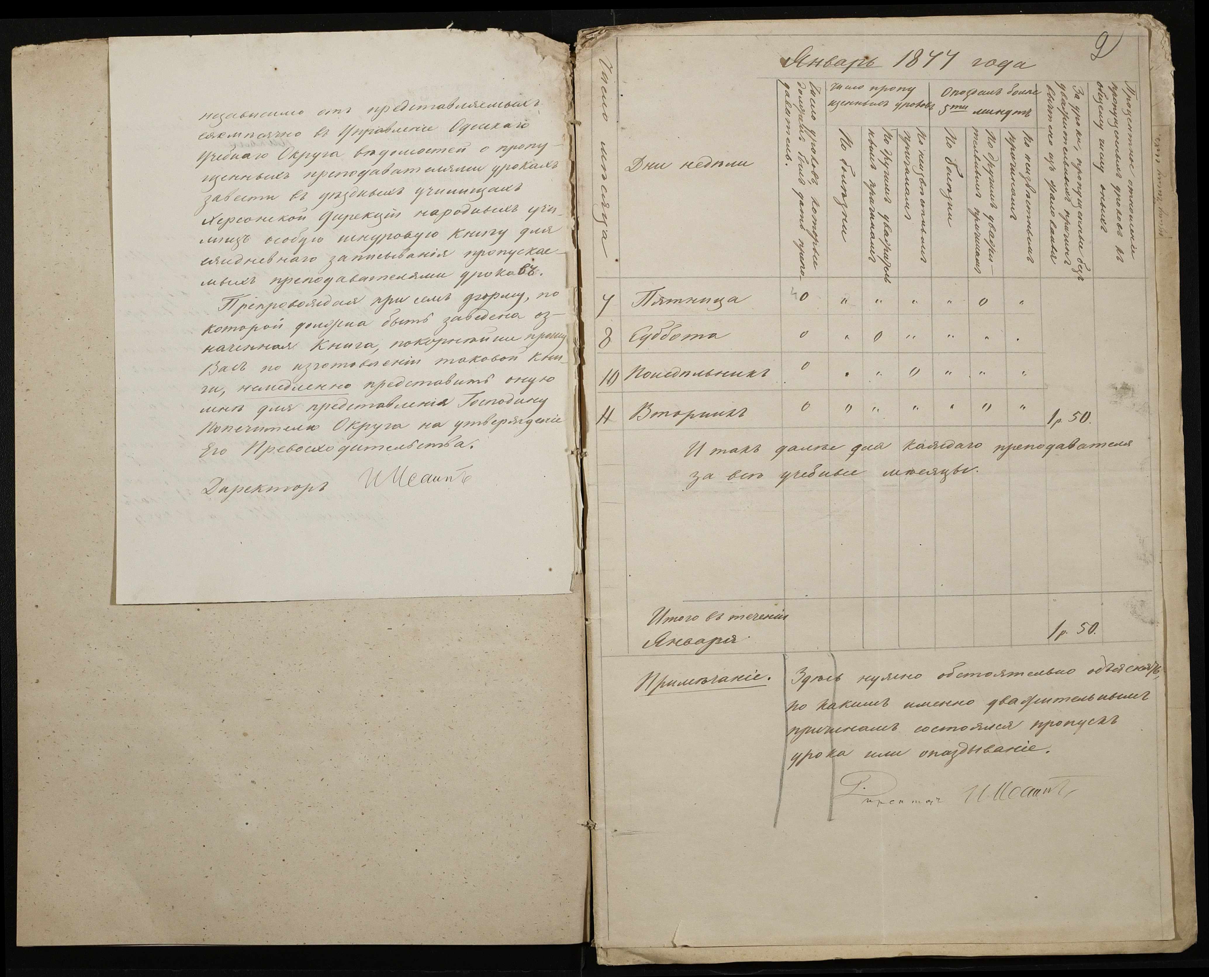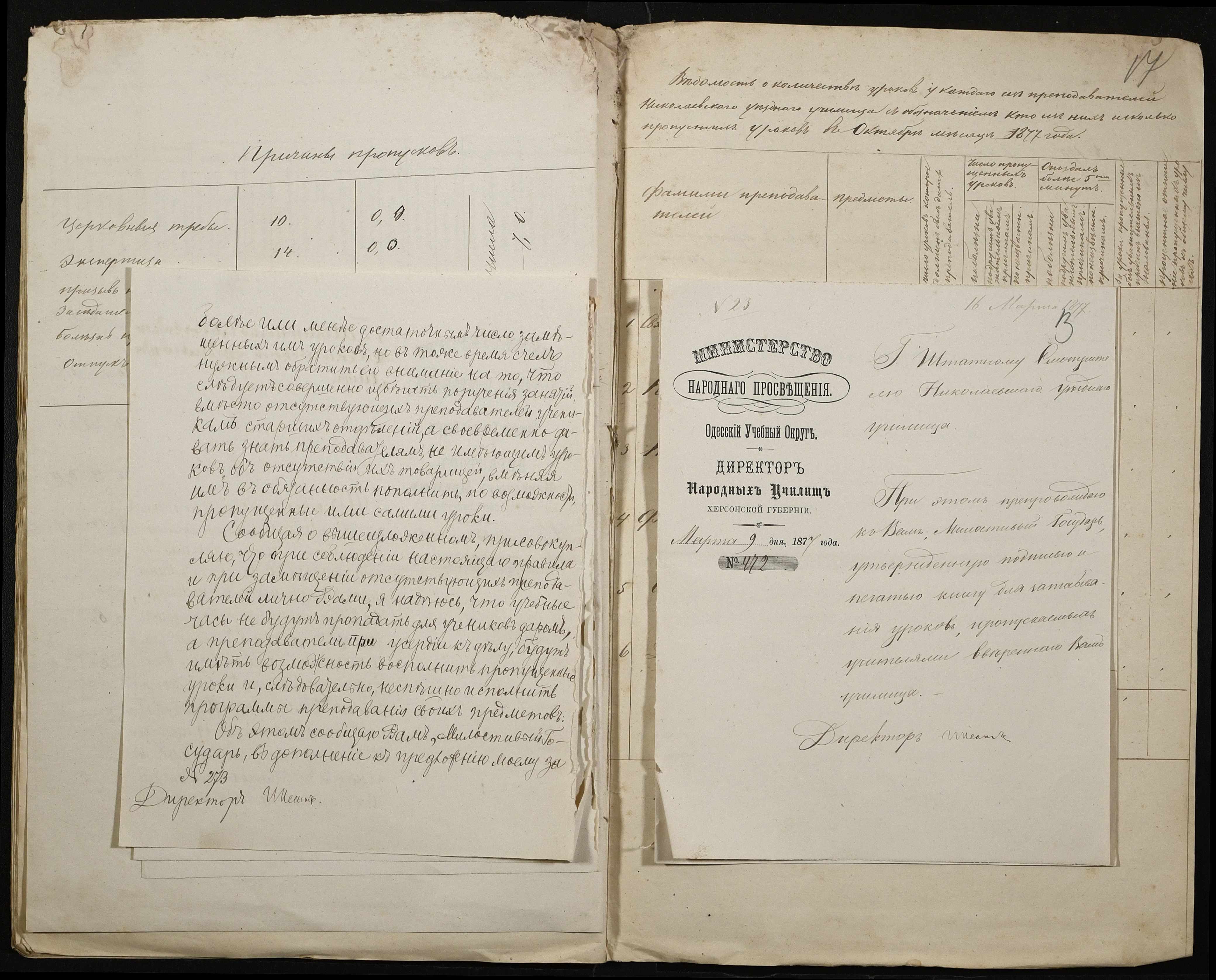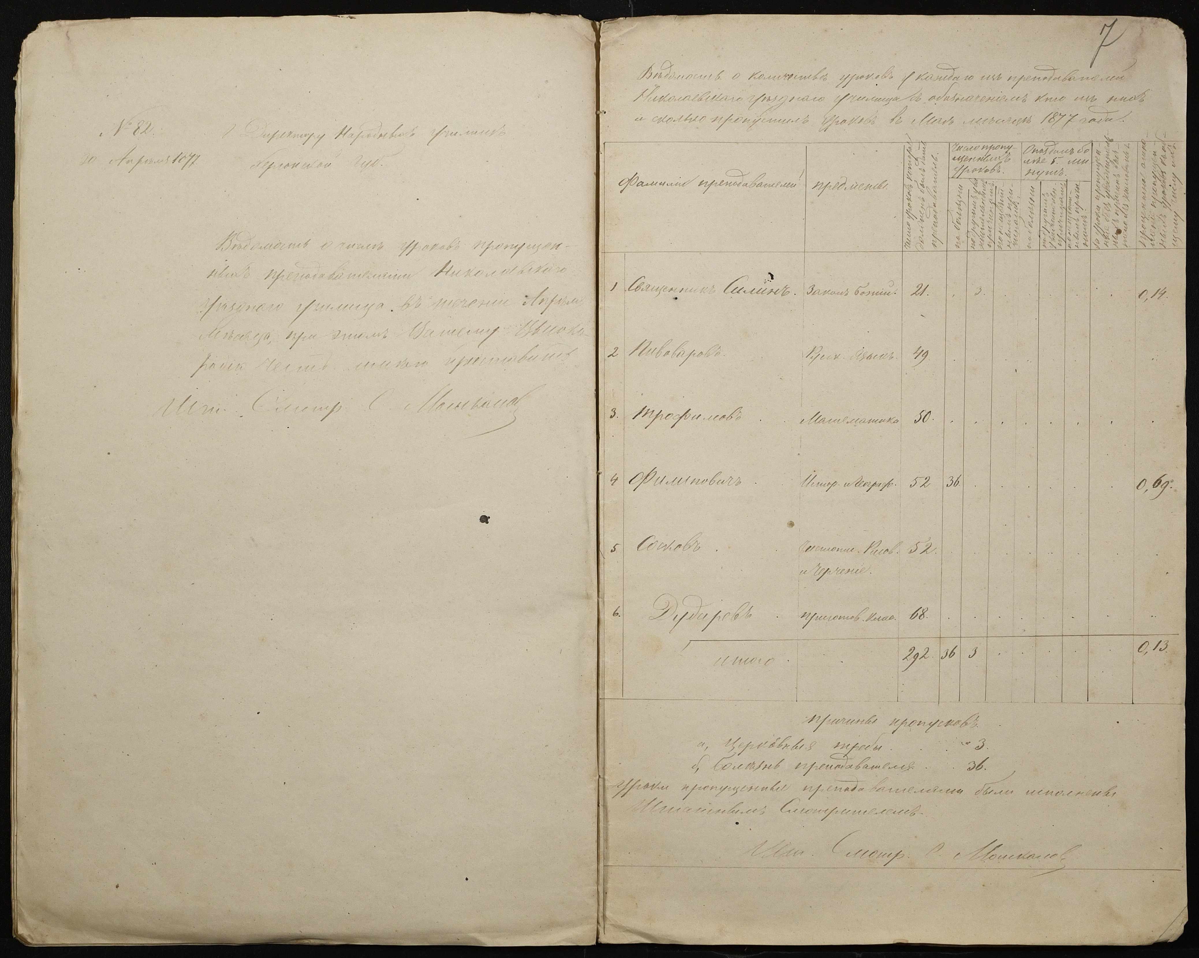 • • • • Справа № 105 “Відомість обліку уроків, на яких були відсутні викладачі ”