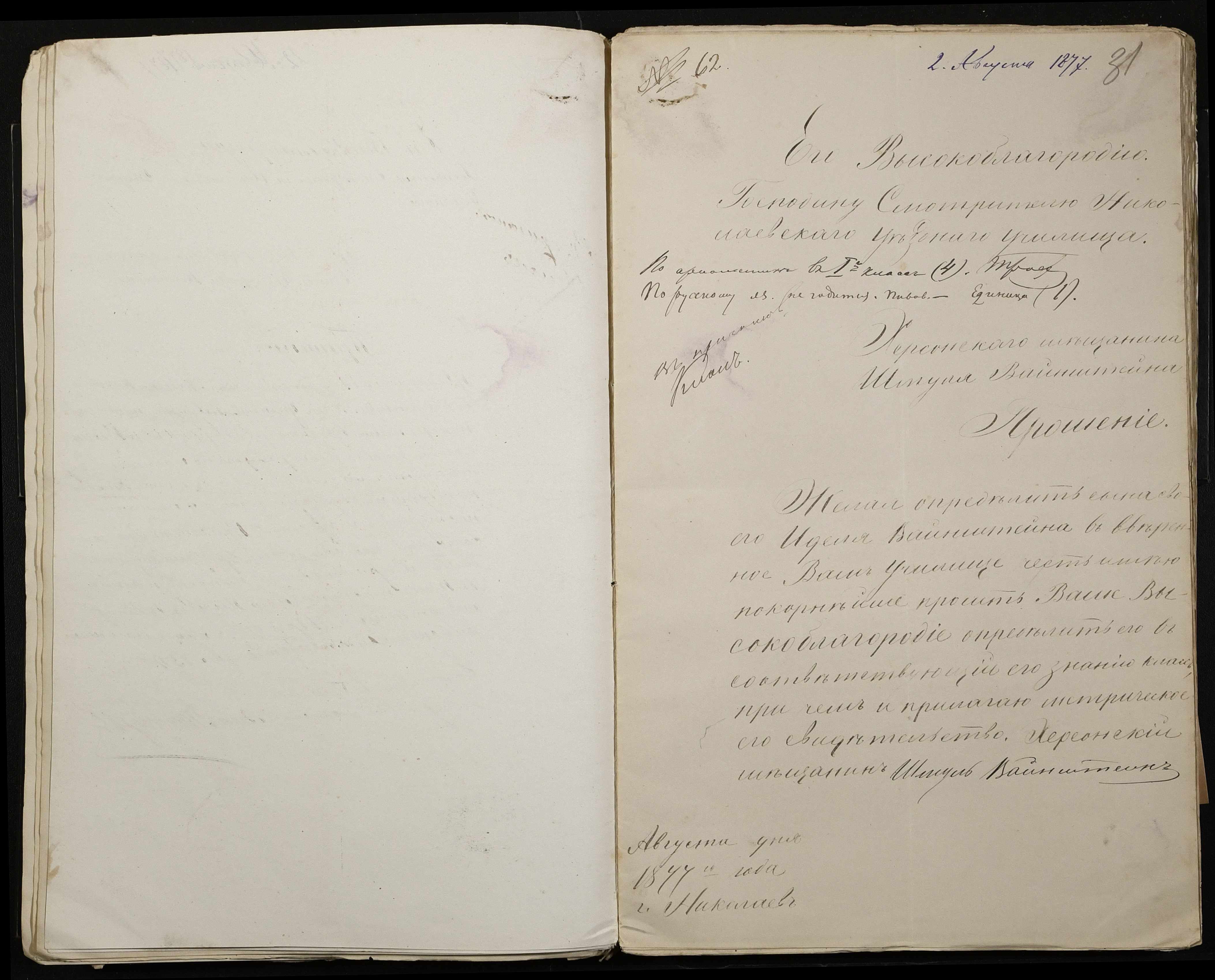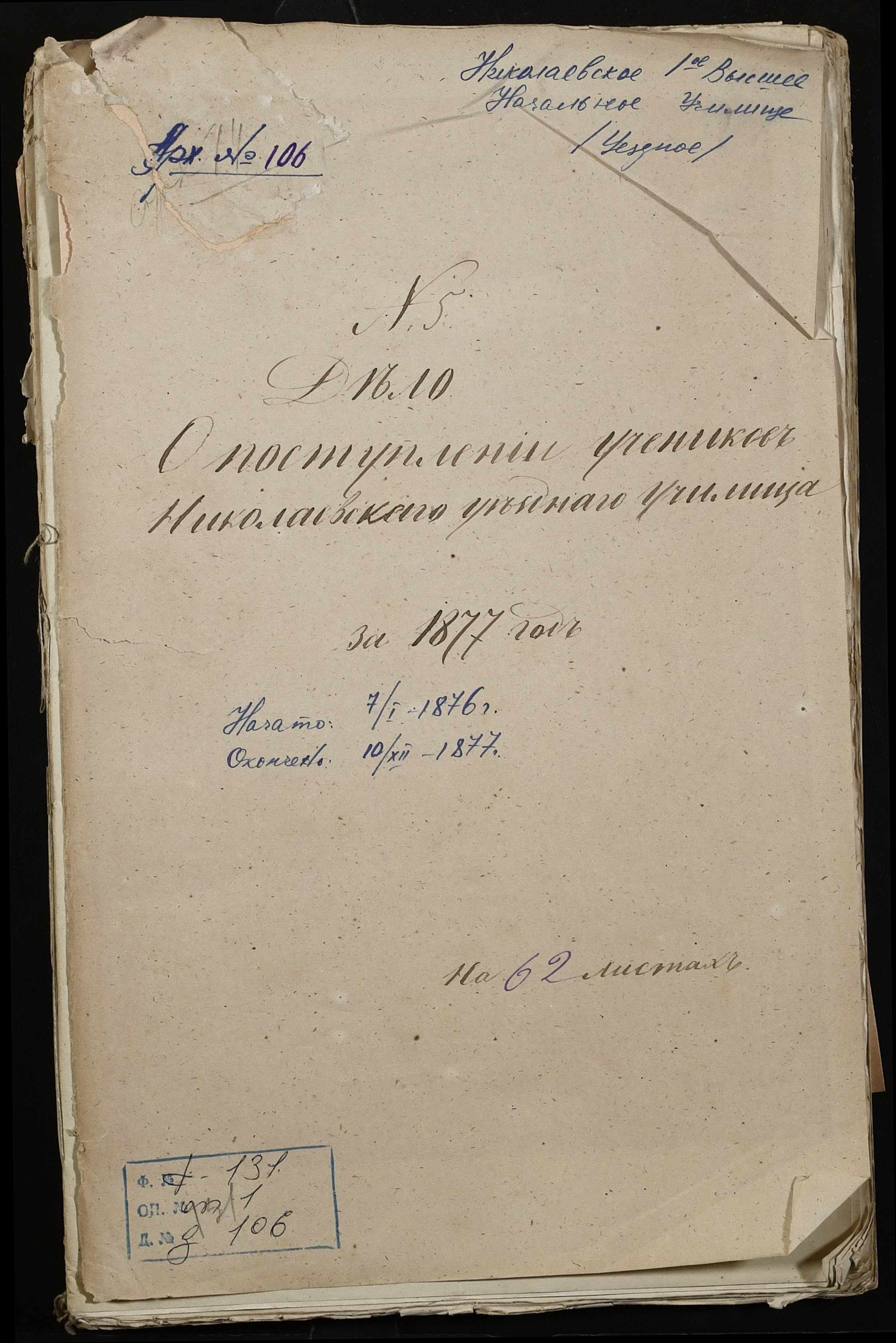 ◦ ◦ Фонд № 131 “Миколаївське перше вище початкове училище”