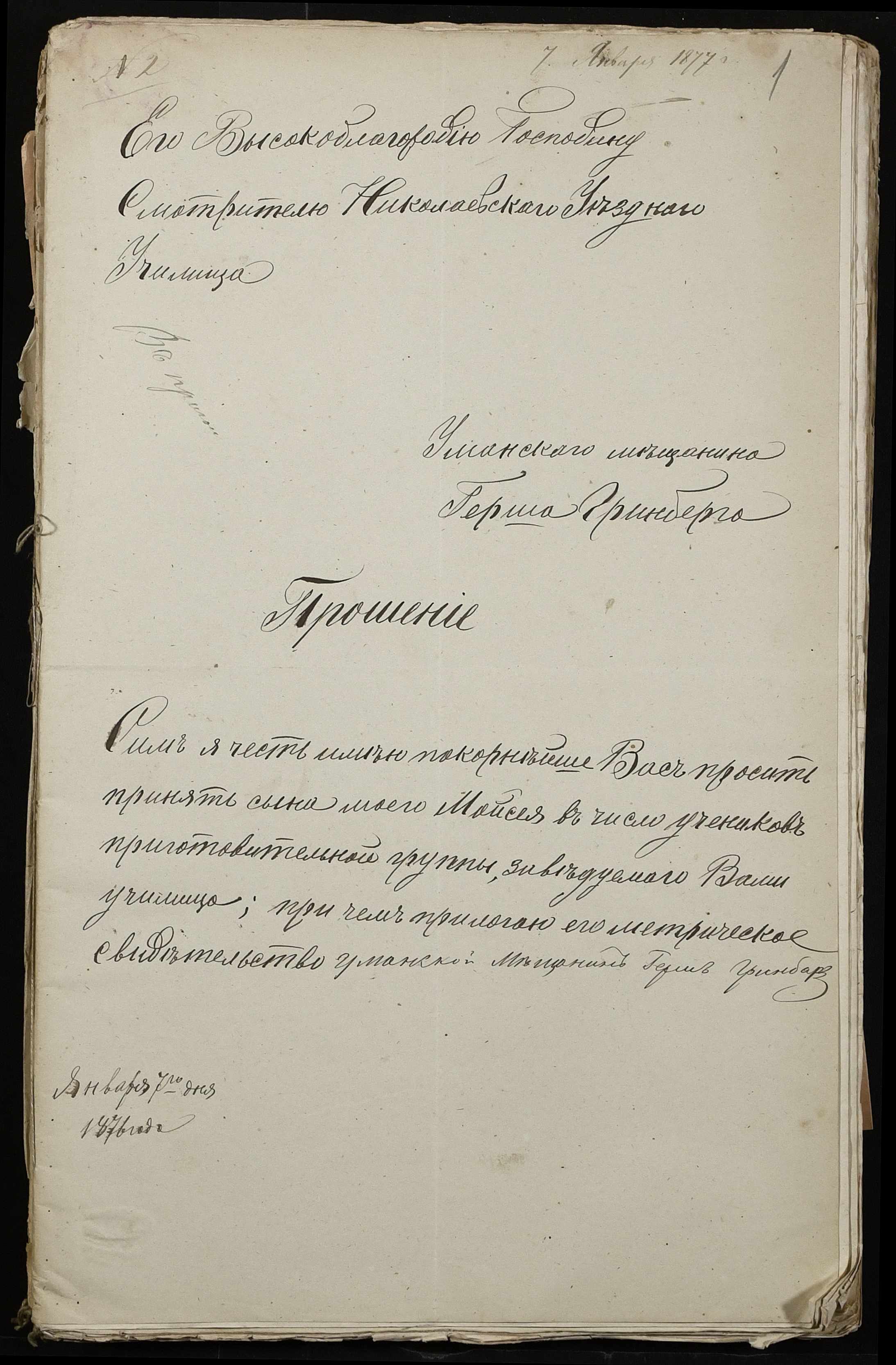 • • • • Справа № 106 “Прохання про вступ до училища ”