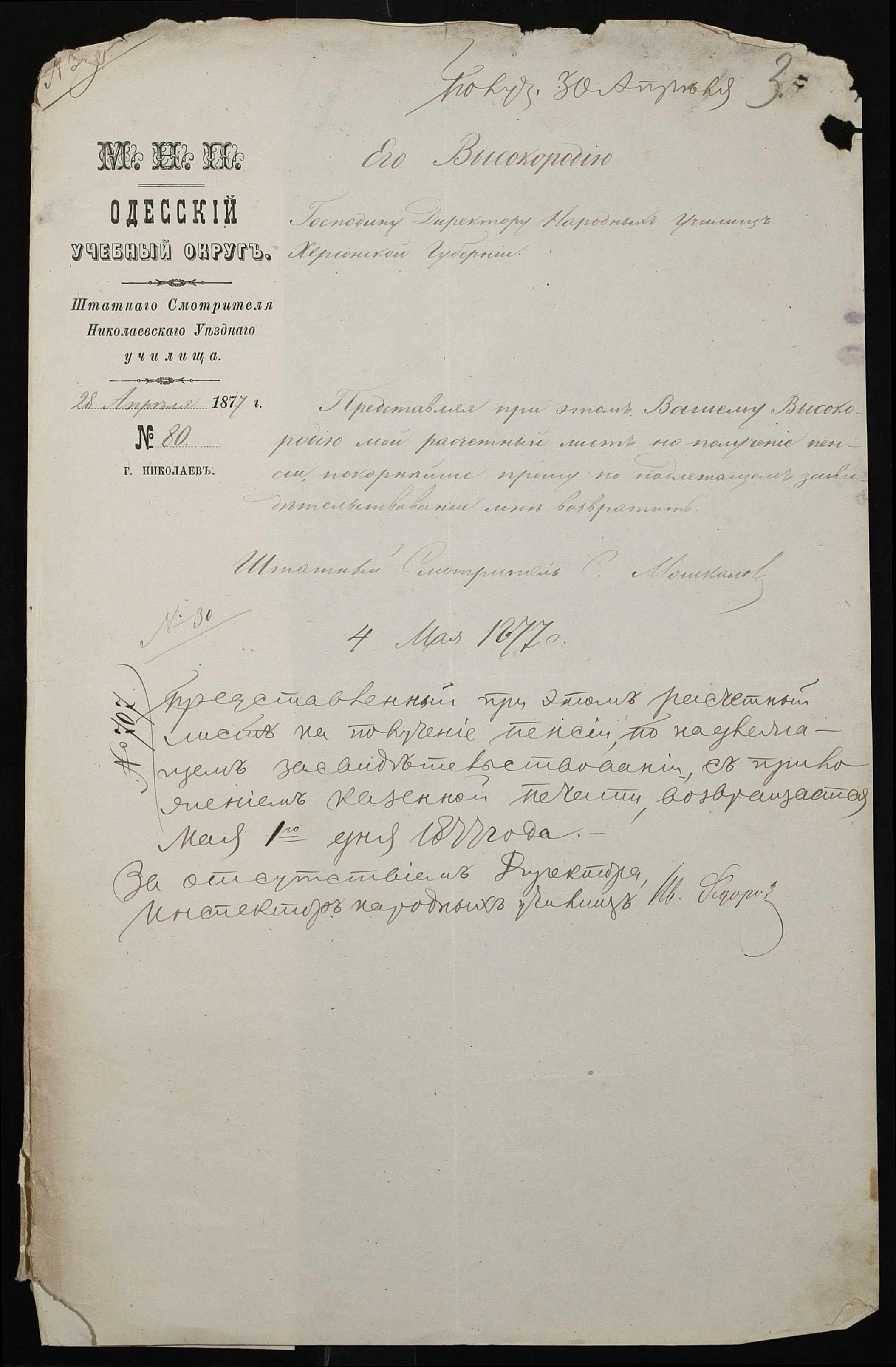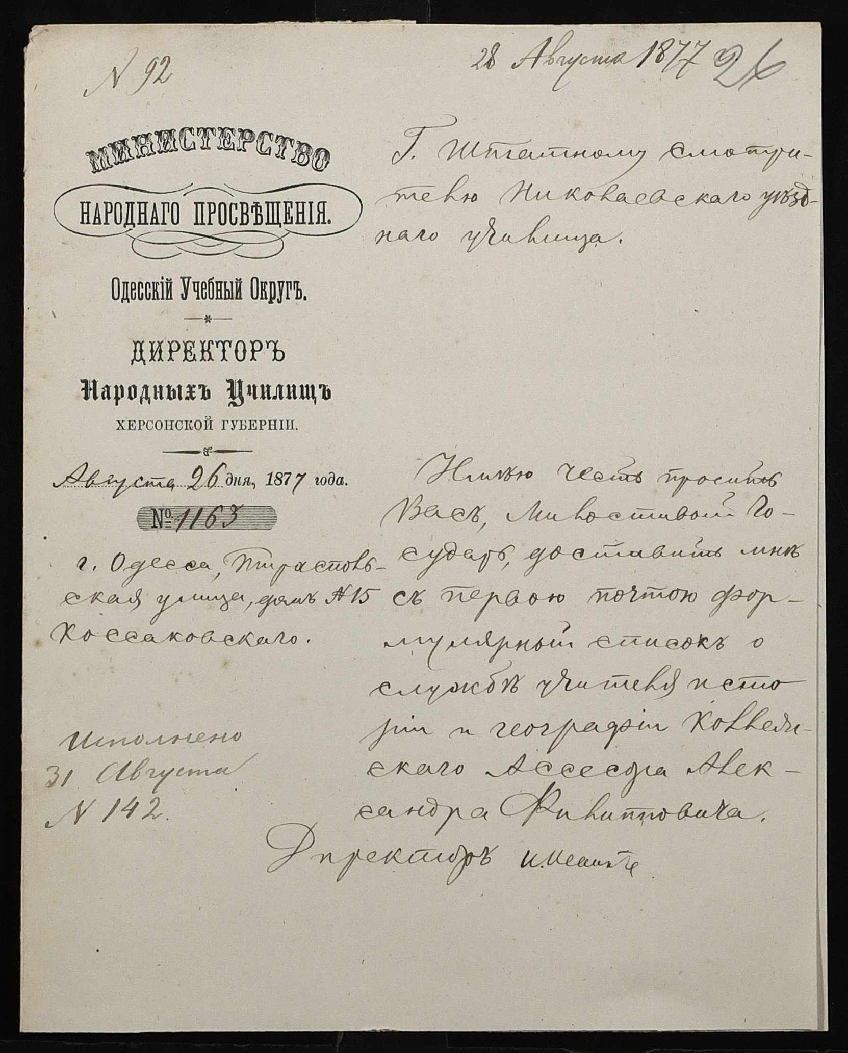 • • • • Справа № 108 “Справа про проходження служби, списки чиновників повітового училища для внесення в Адрес-календар ”