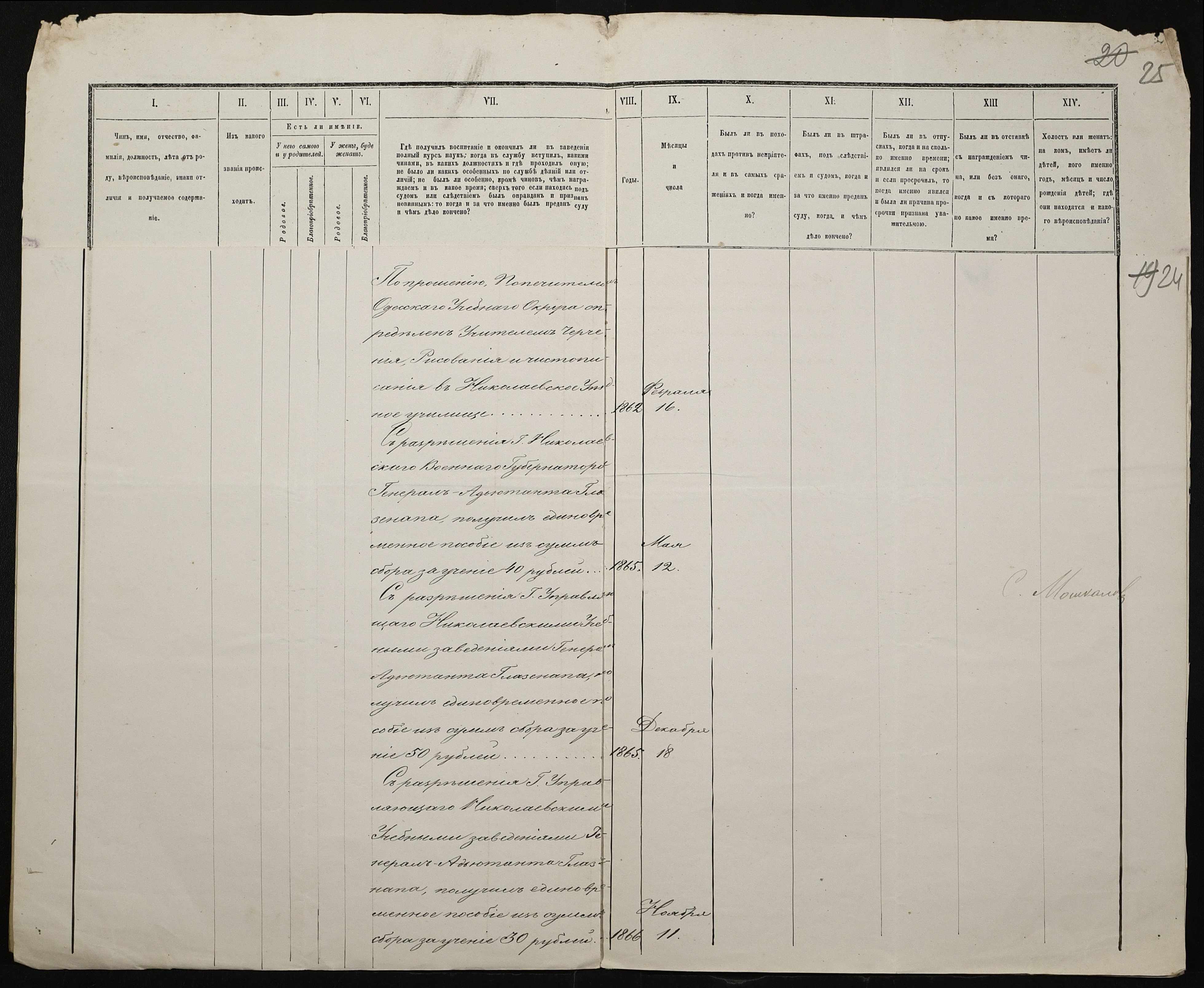 ◦ ◦ ◦ Опис № 1 справ постійного зберігання за 1847-1852, 1858, 1868-1869, 1871-1919, 1922 роки
