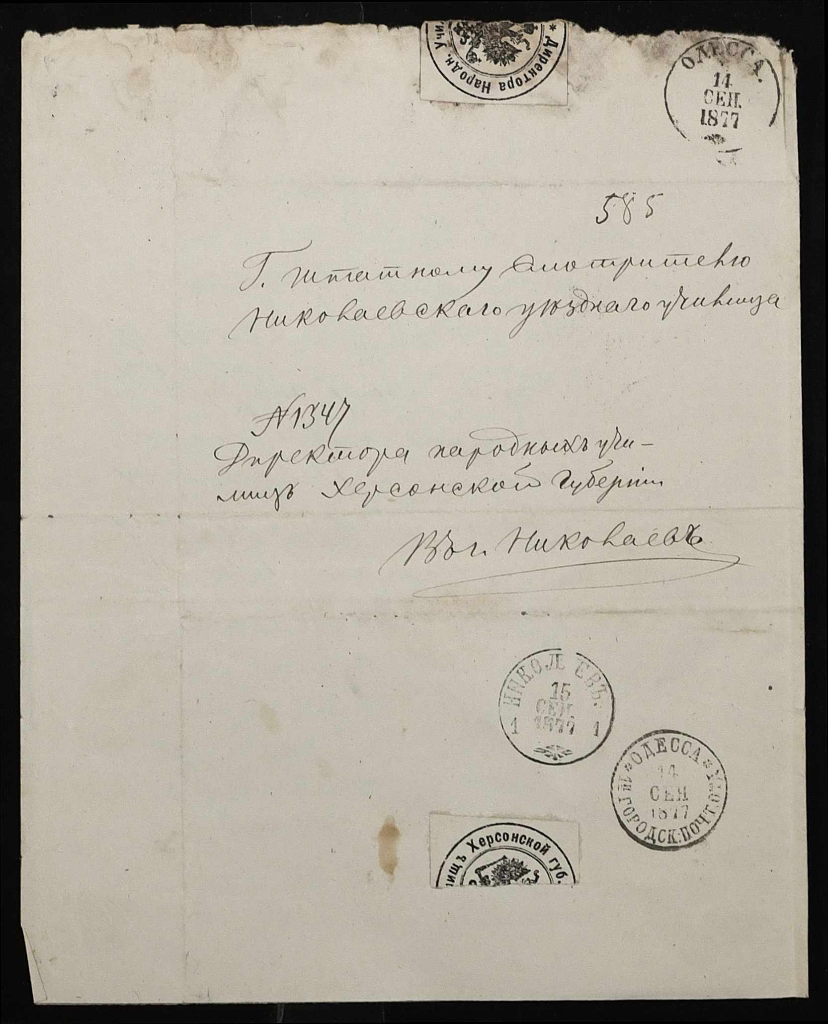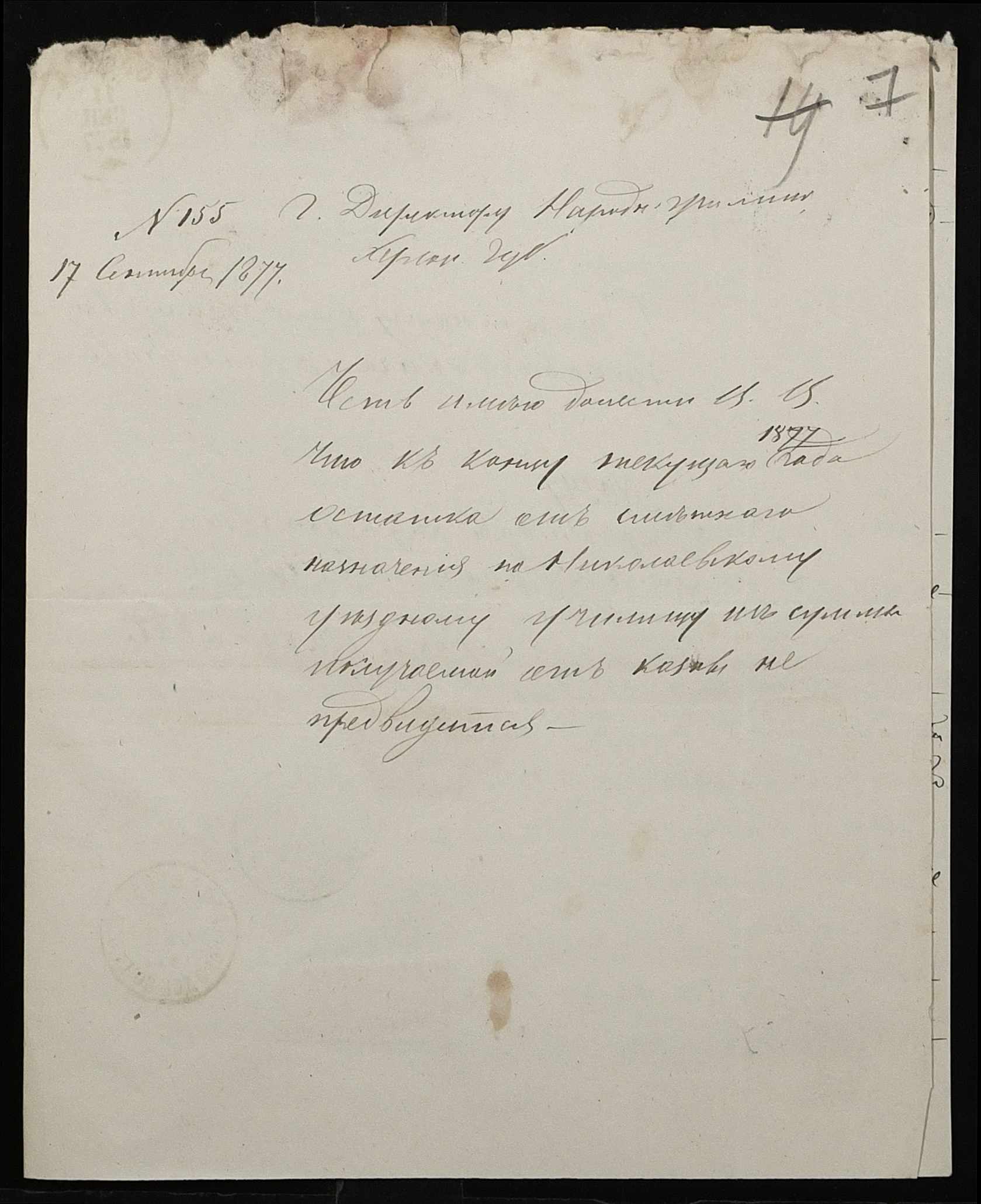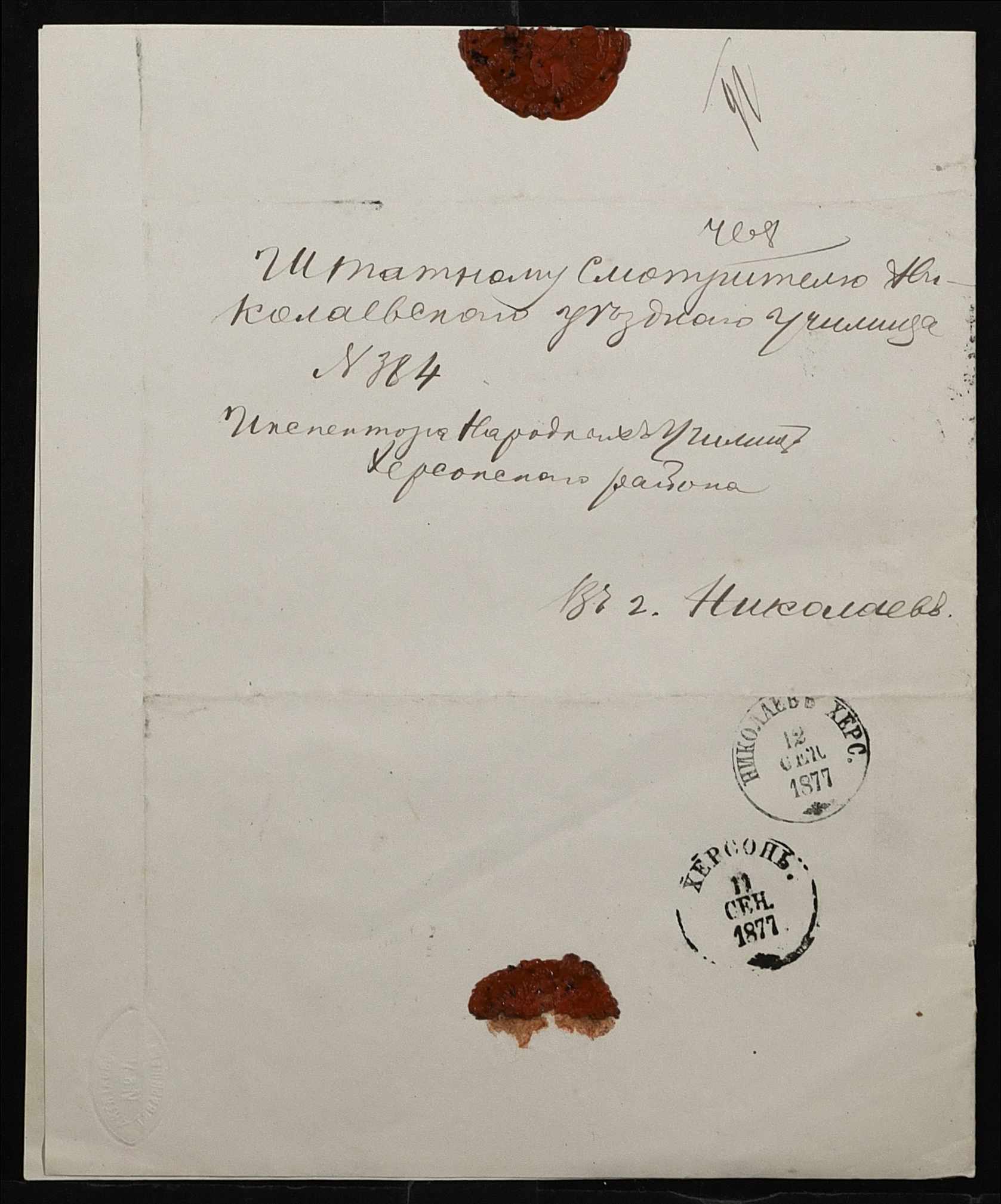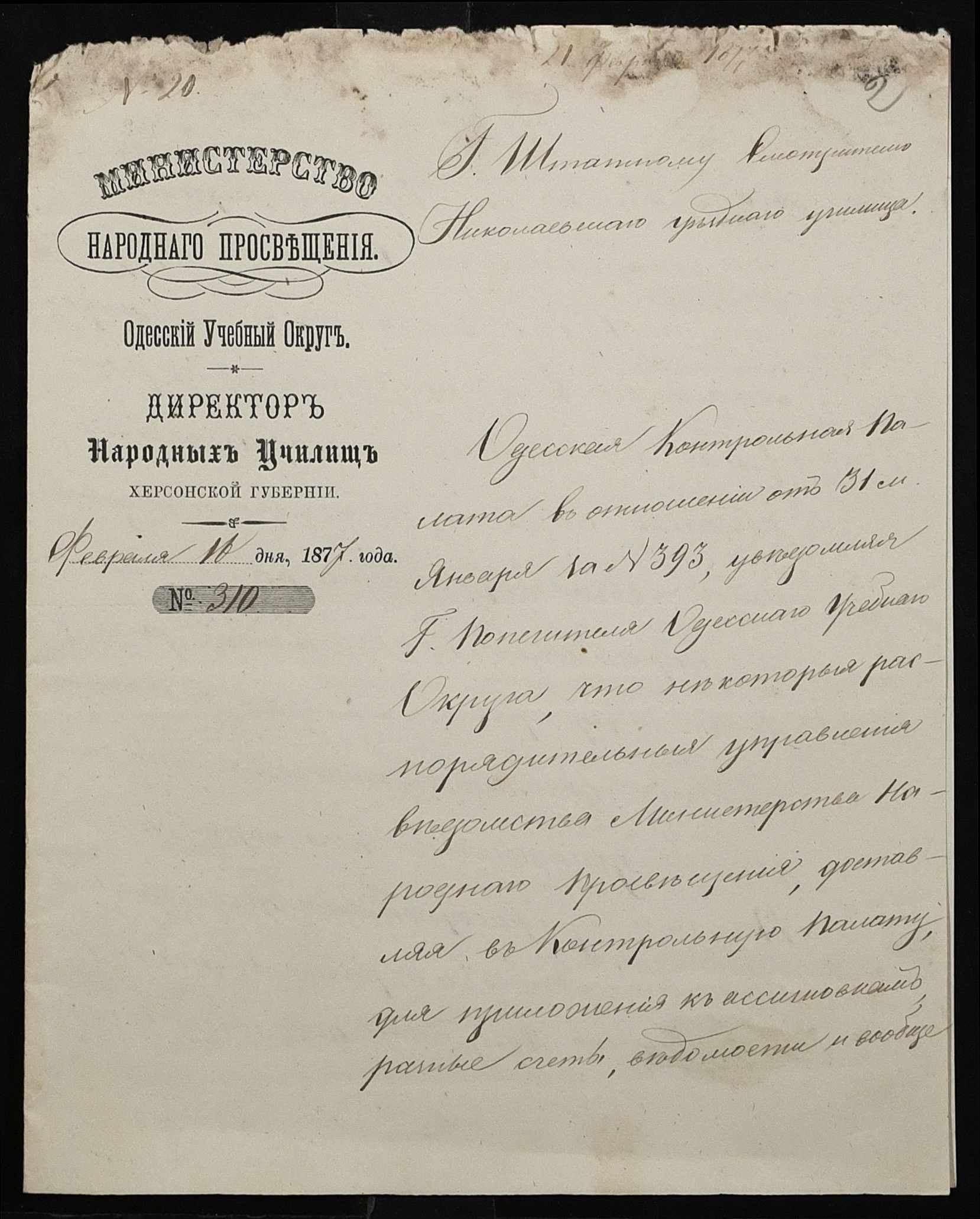 • • • • Справа № 109 “Переписка з директором народних училищ Херсонської губернії з фінансових питань; журнал реєстрації вхідних документів за 1877 рік ”