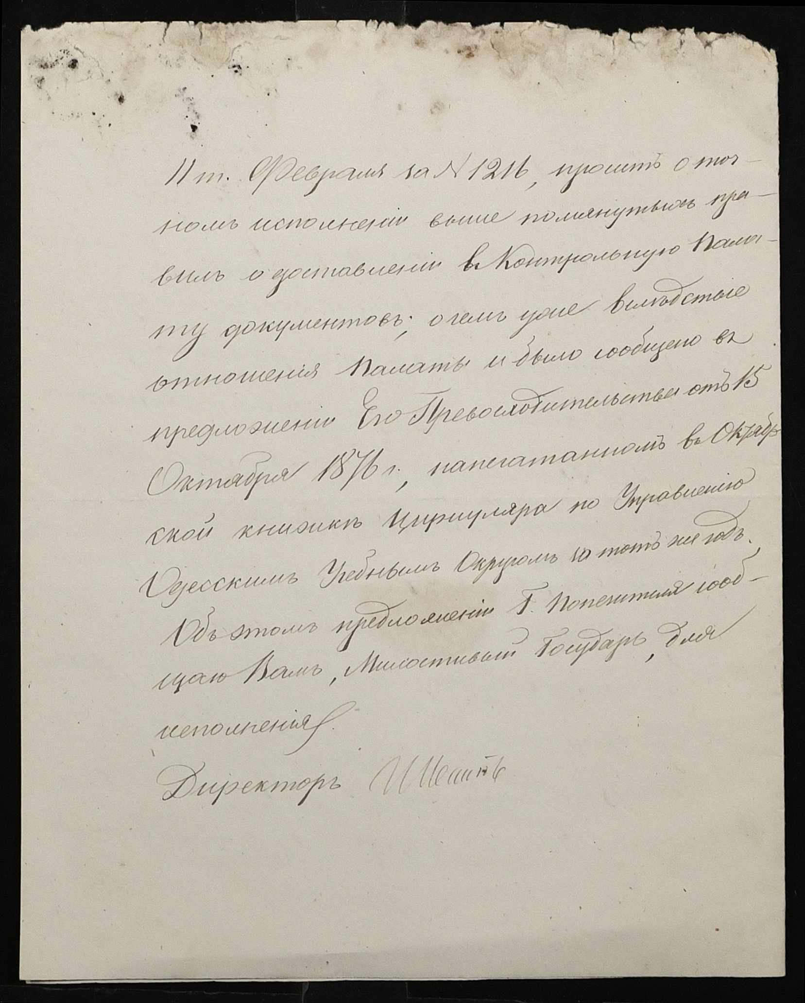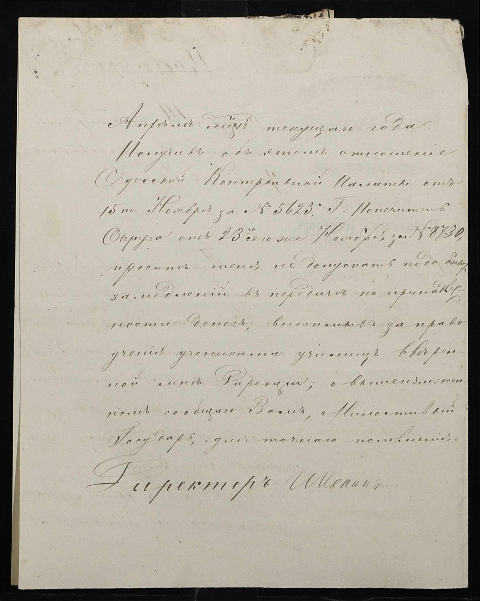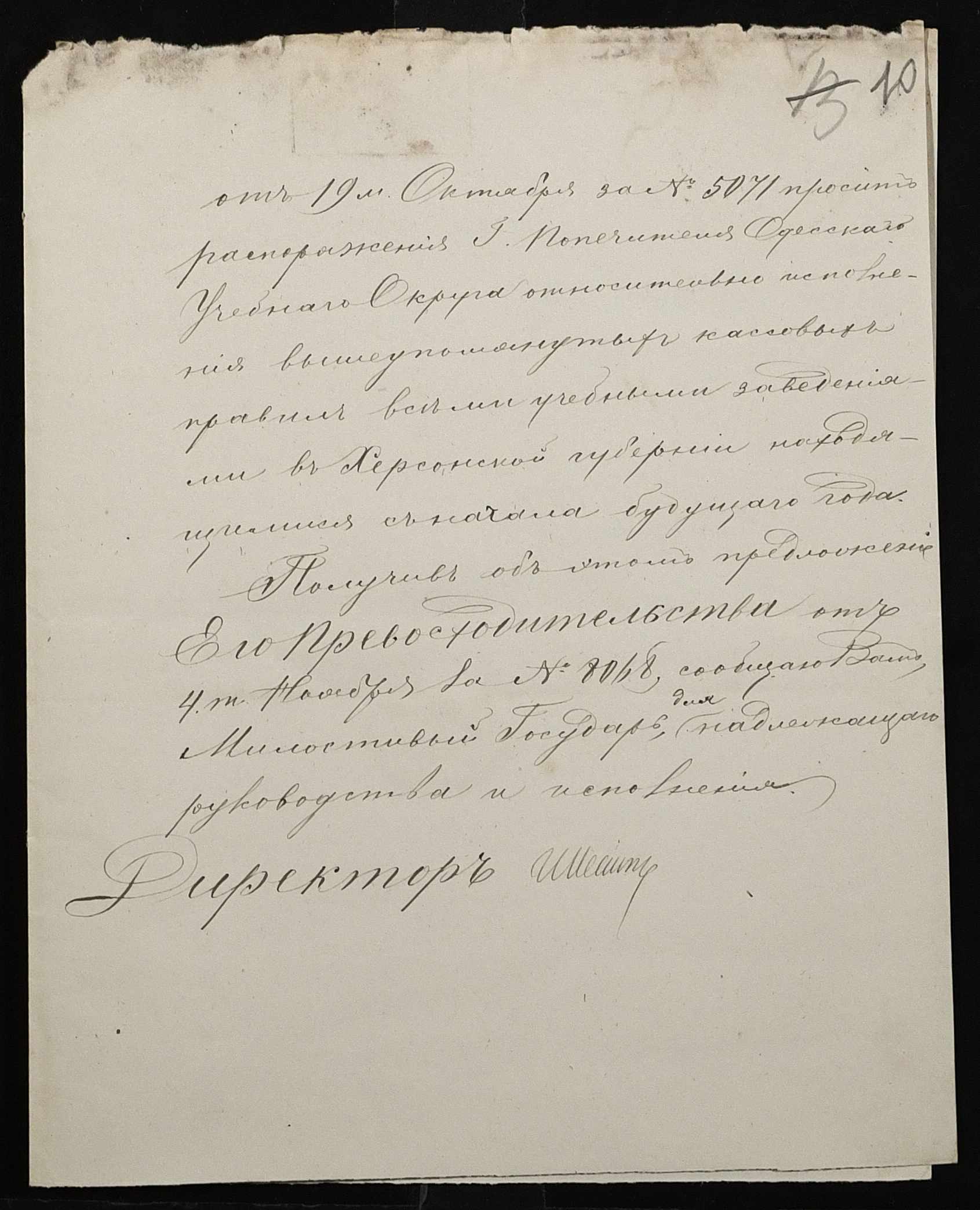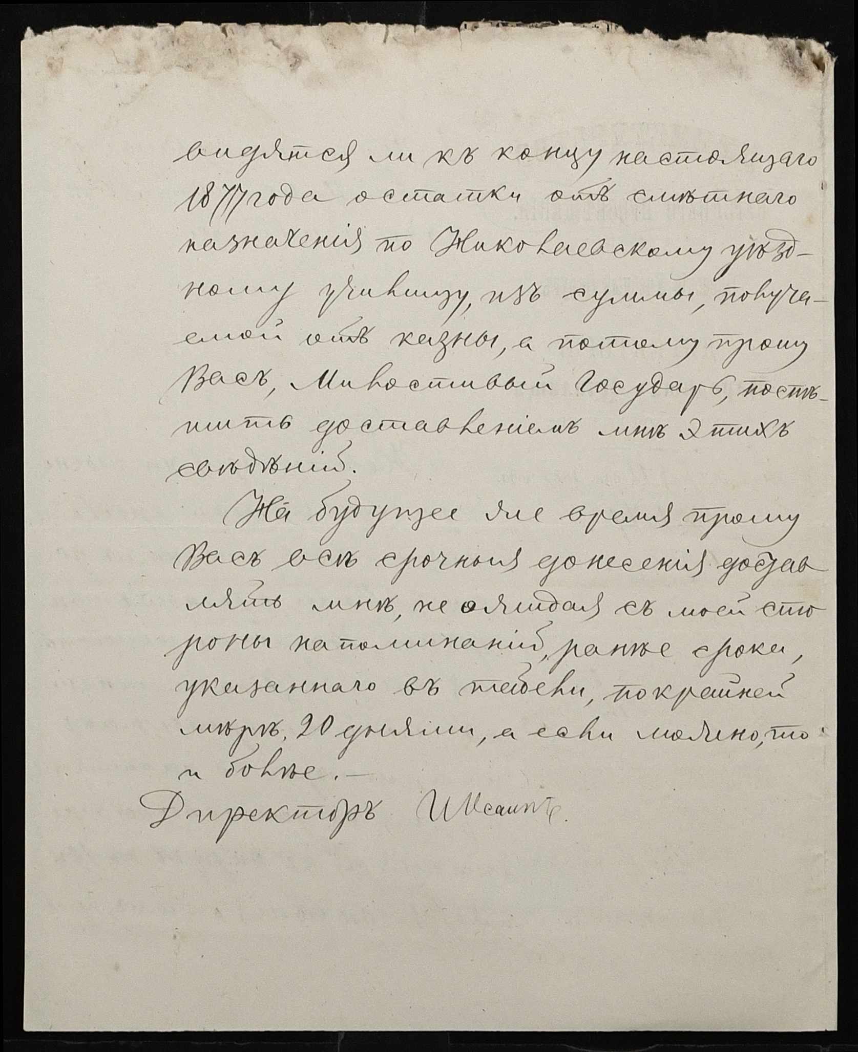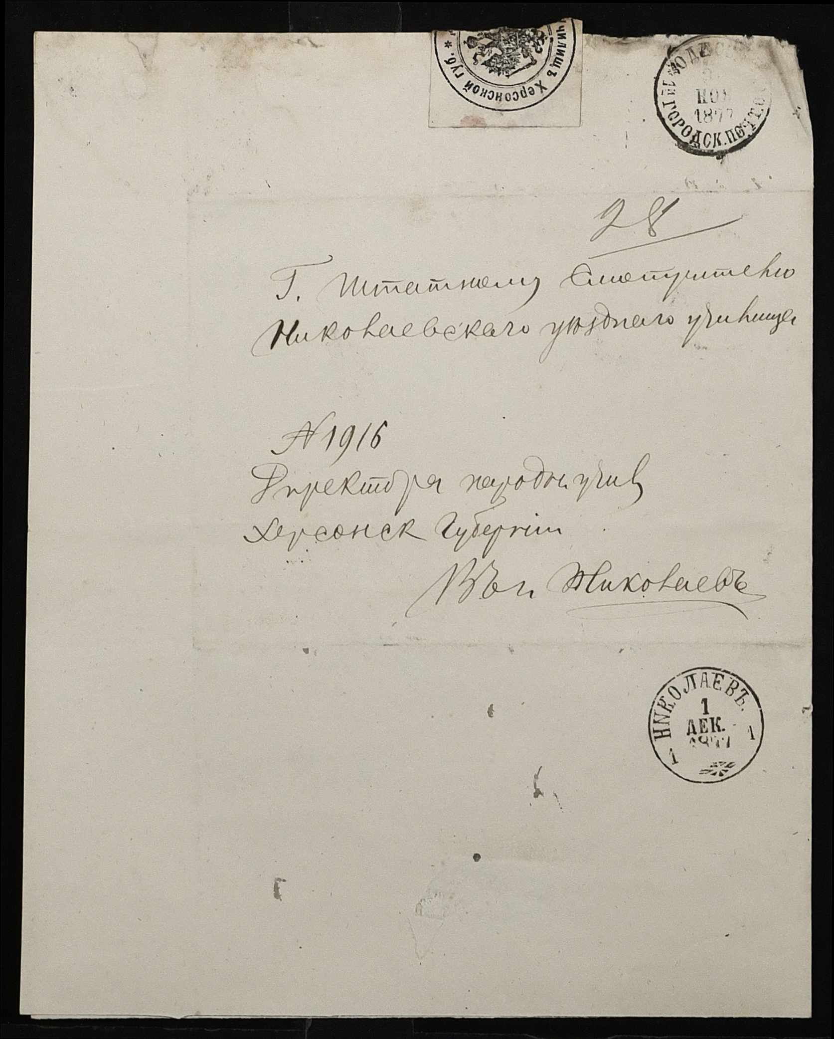 • • • • Справа № 109 “Переписка з директором народних училищ Херсонської губернії з фінансових питань; журнал реєстрації вхідних документів за 1877 рік ”