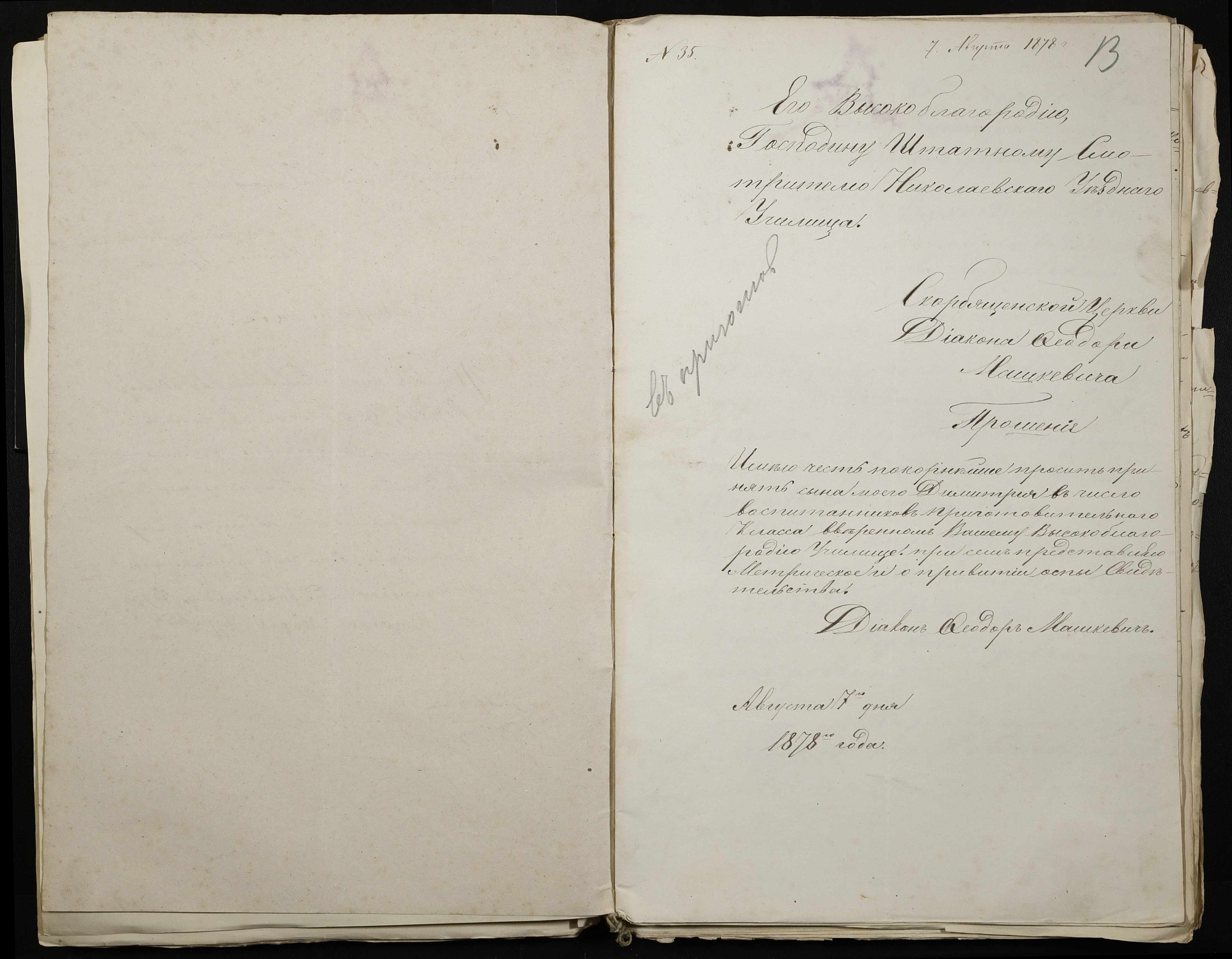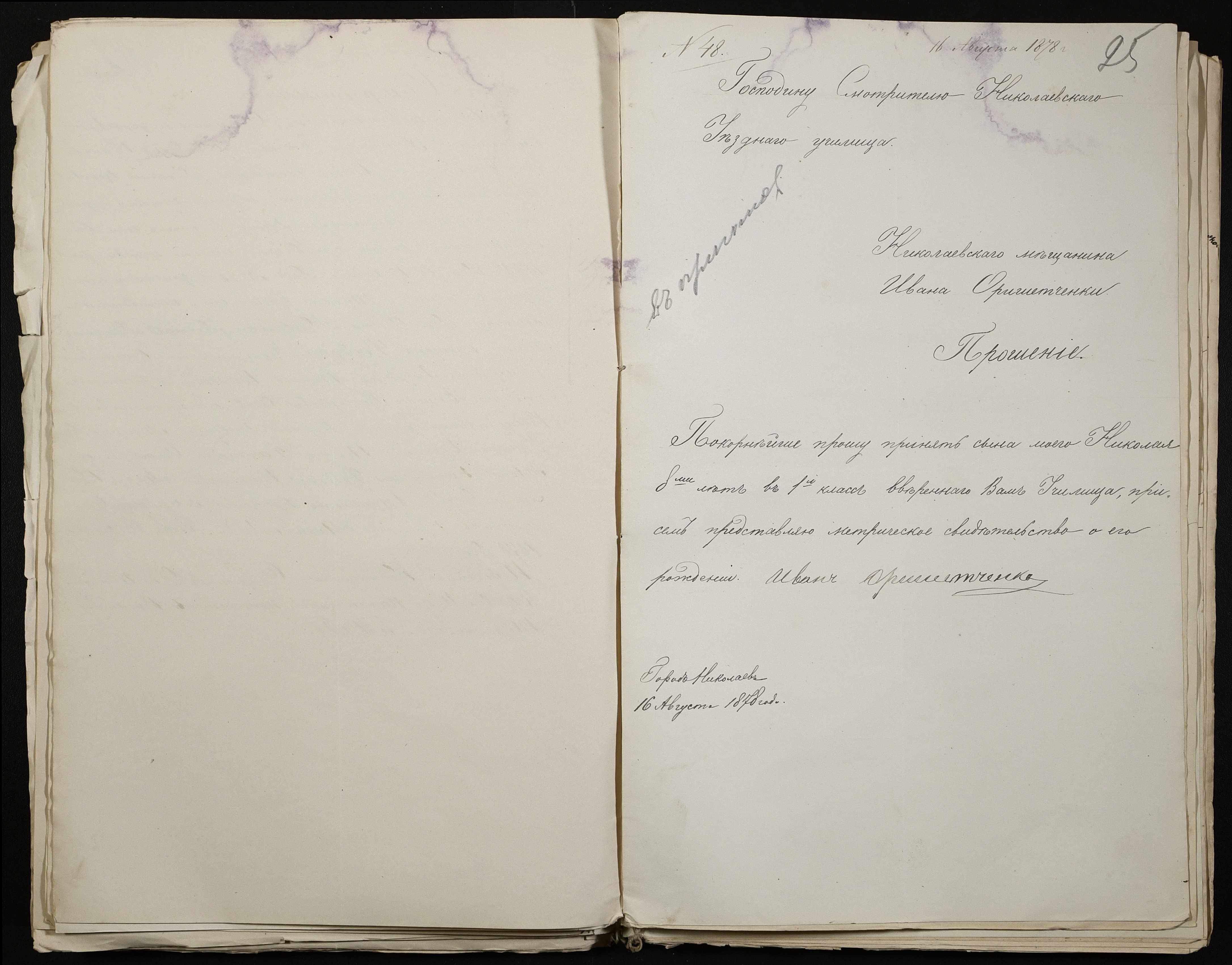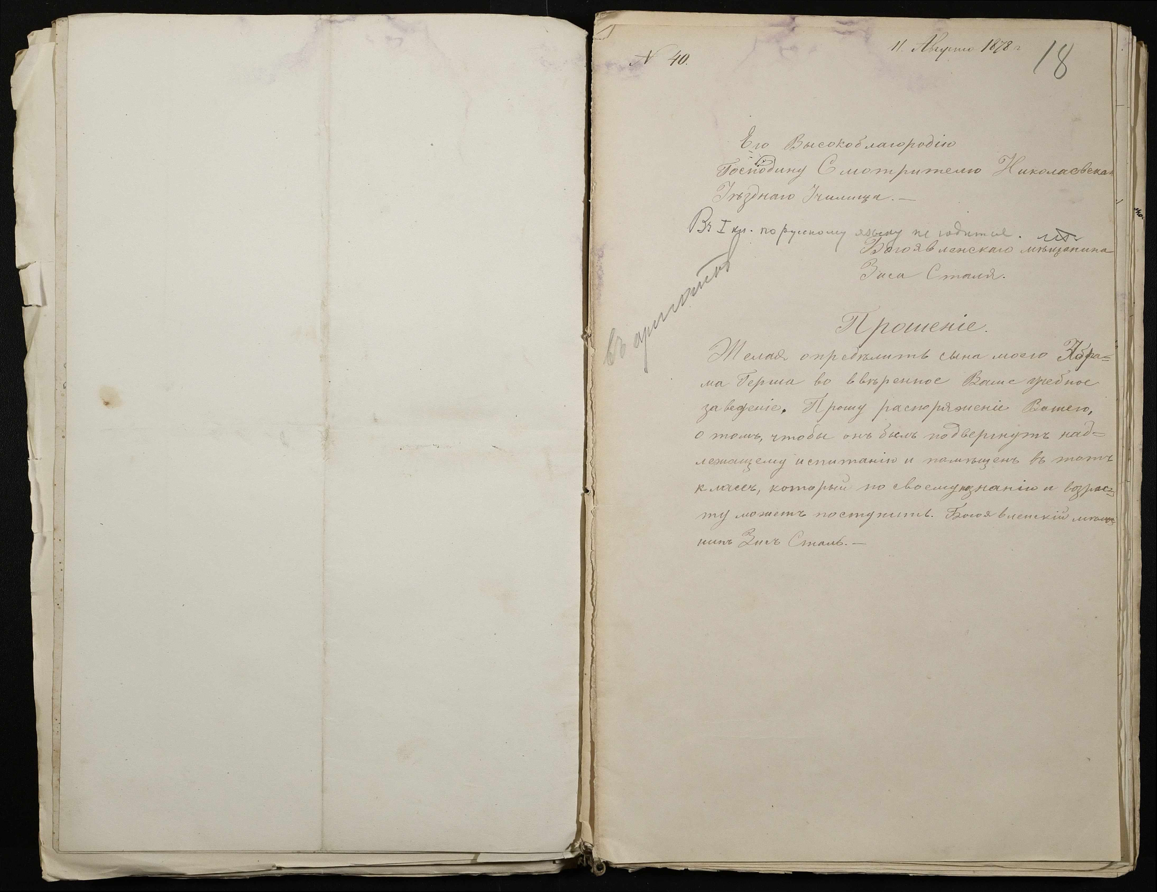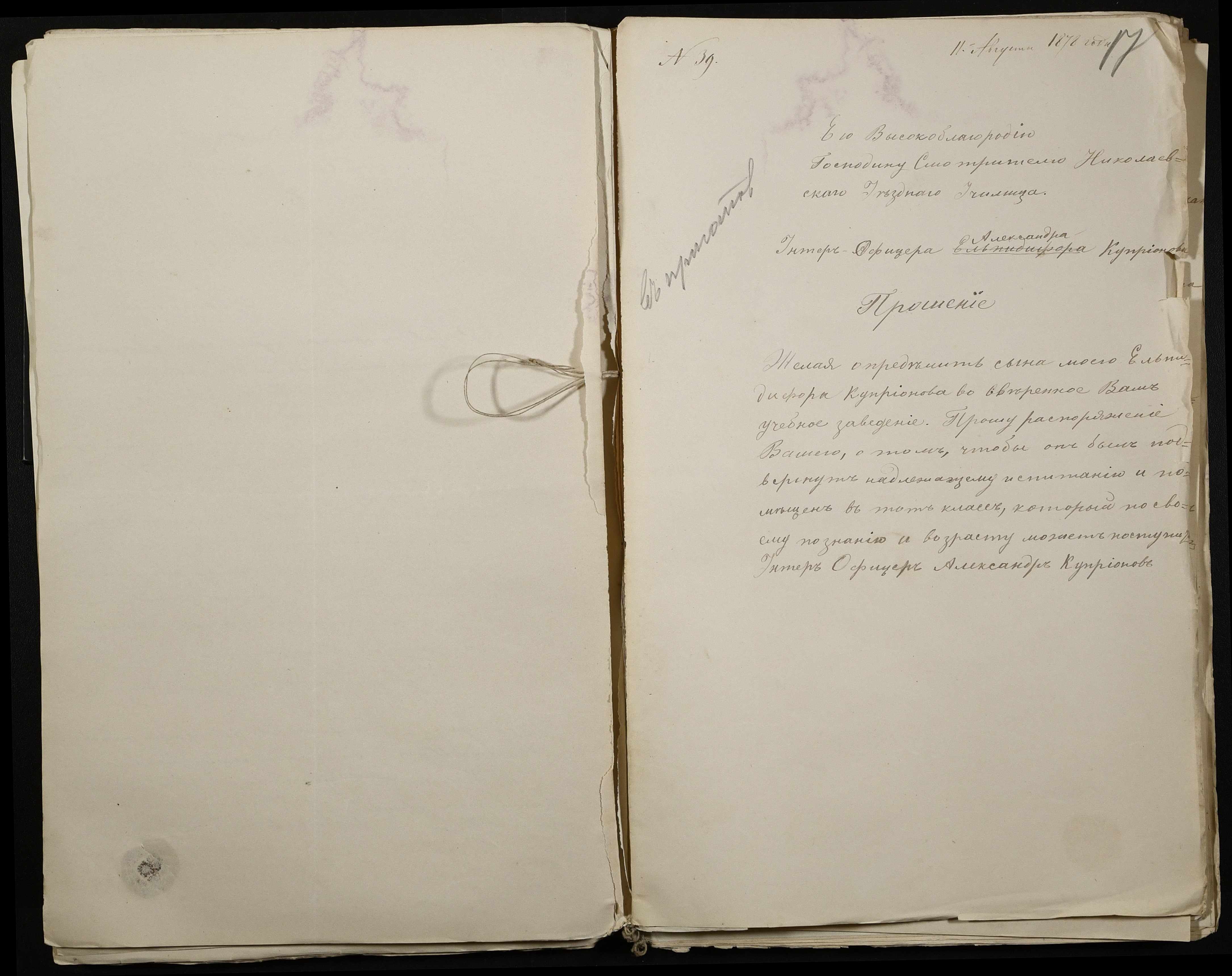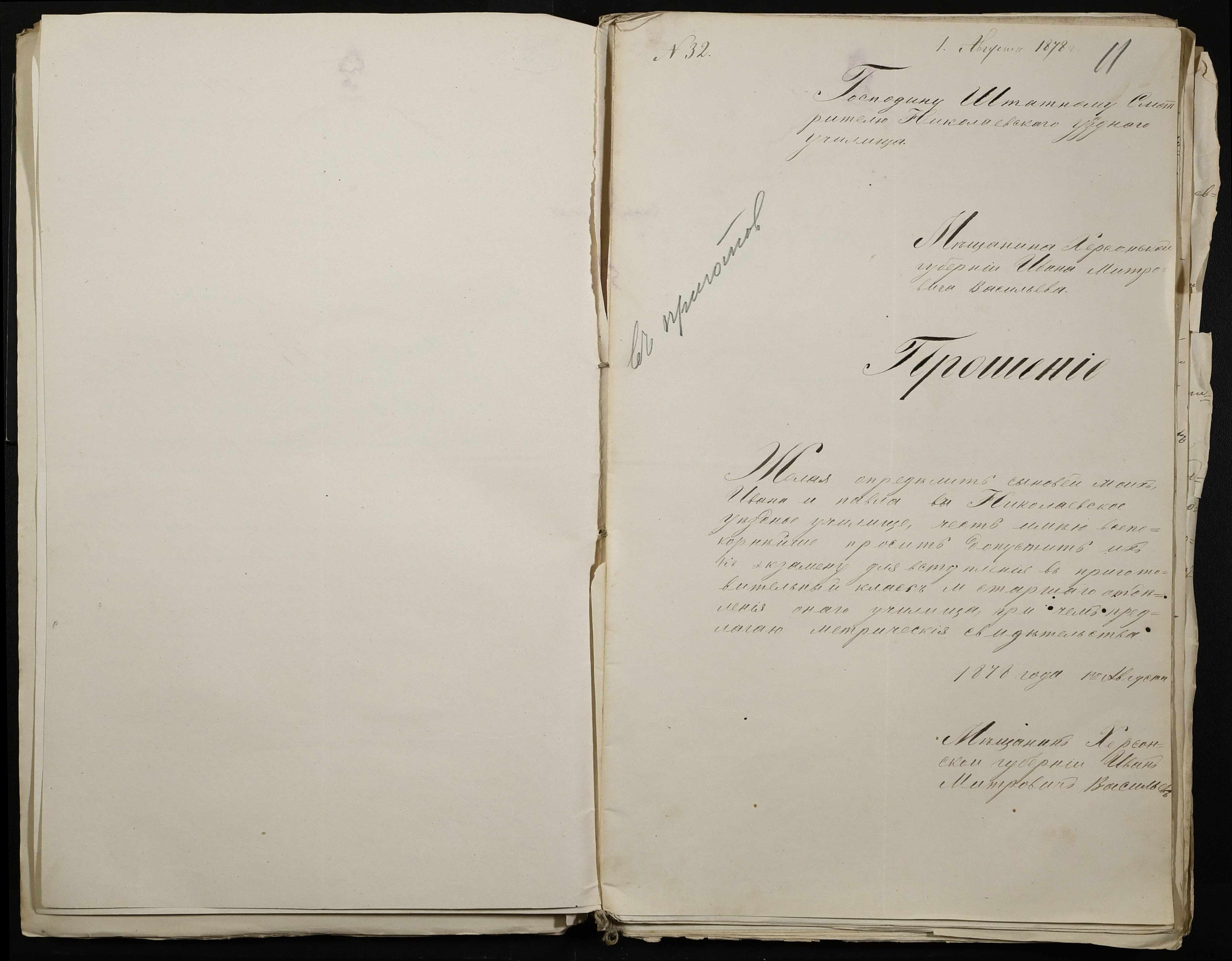 • • • • Справа № 113 “Прохання про вступ в училище, свідоцтва про народження учнів”