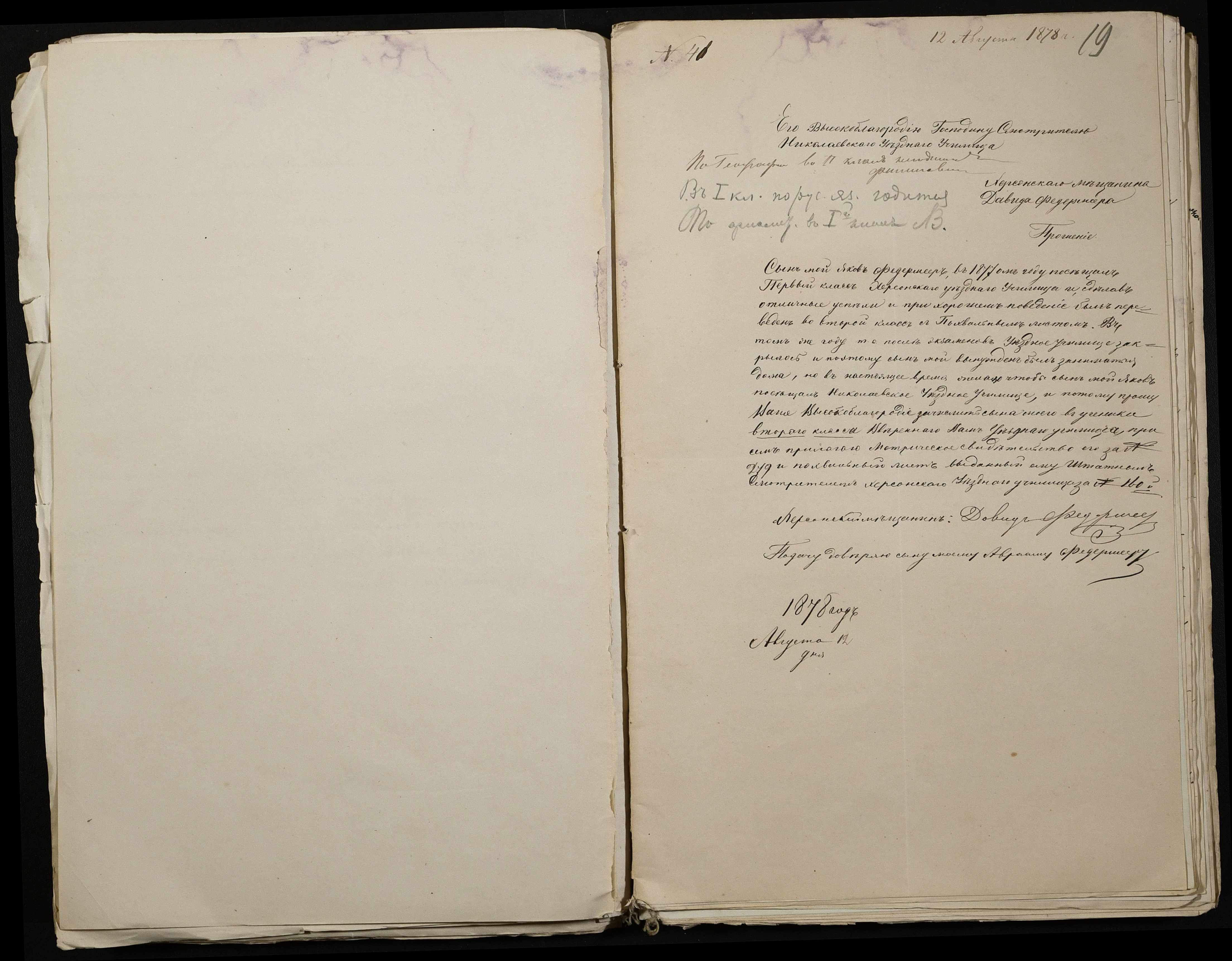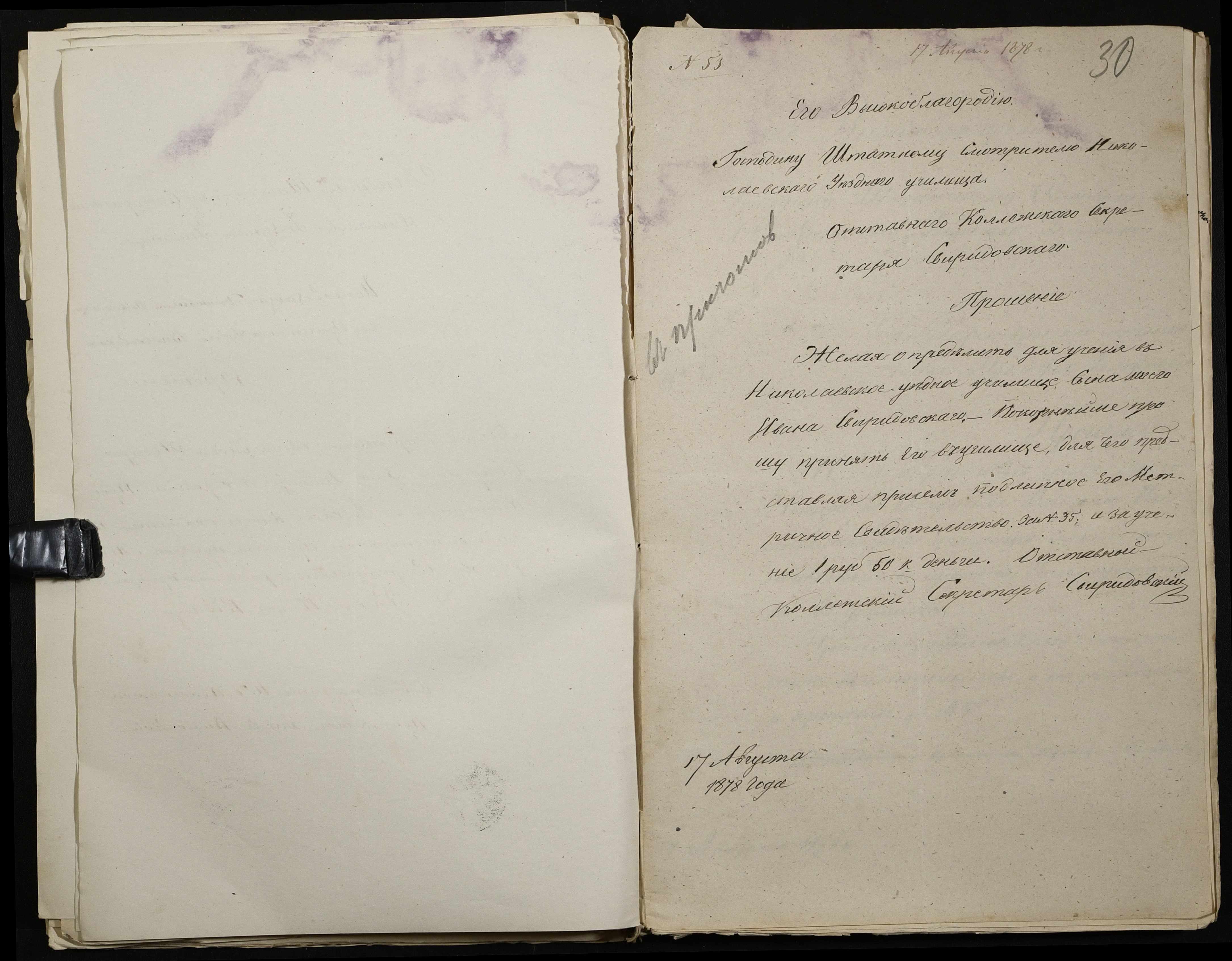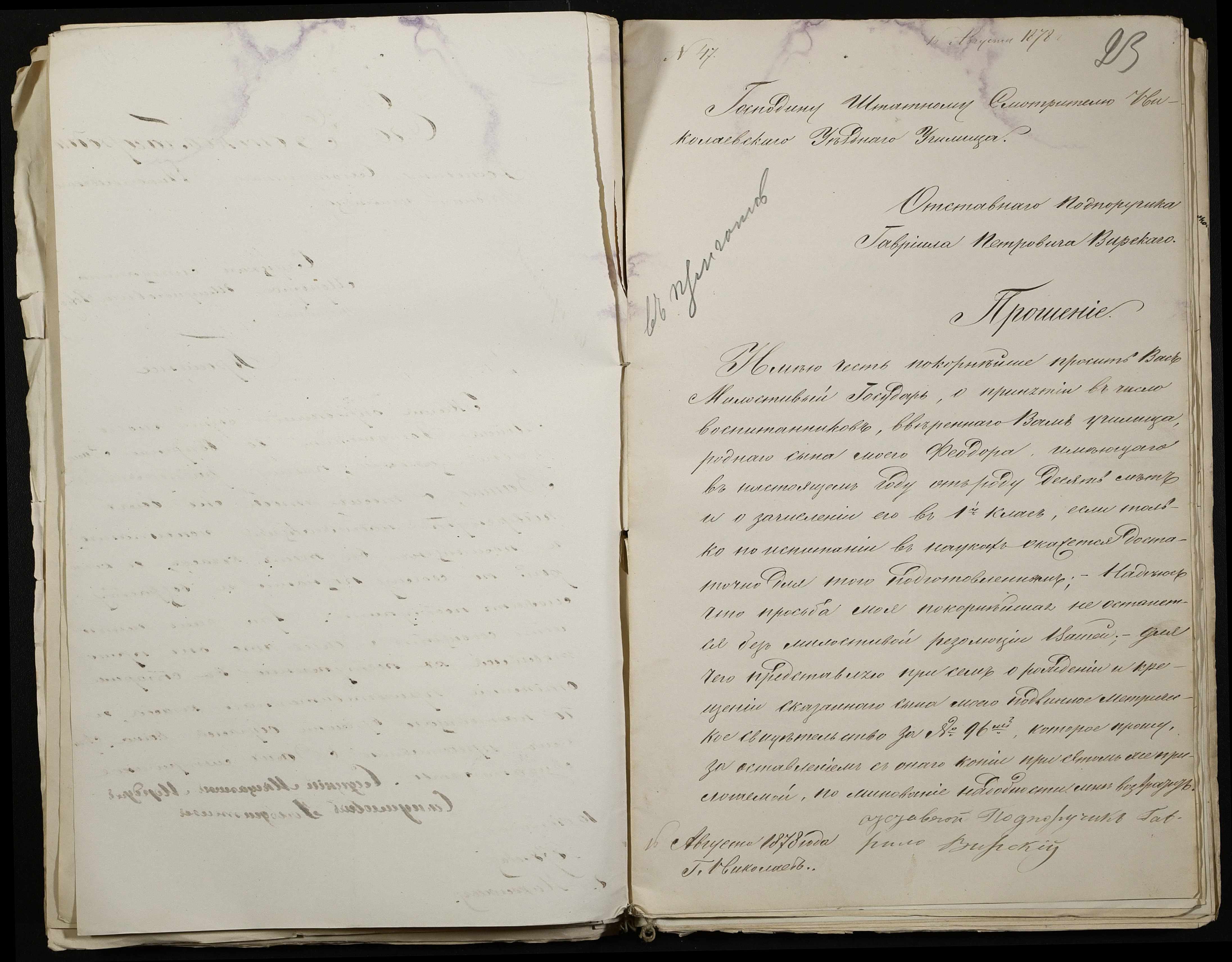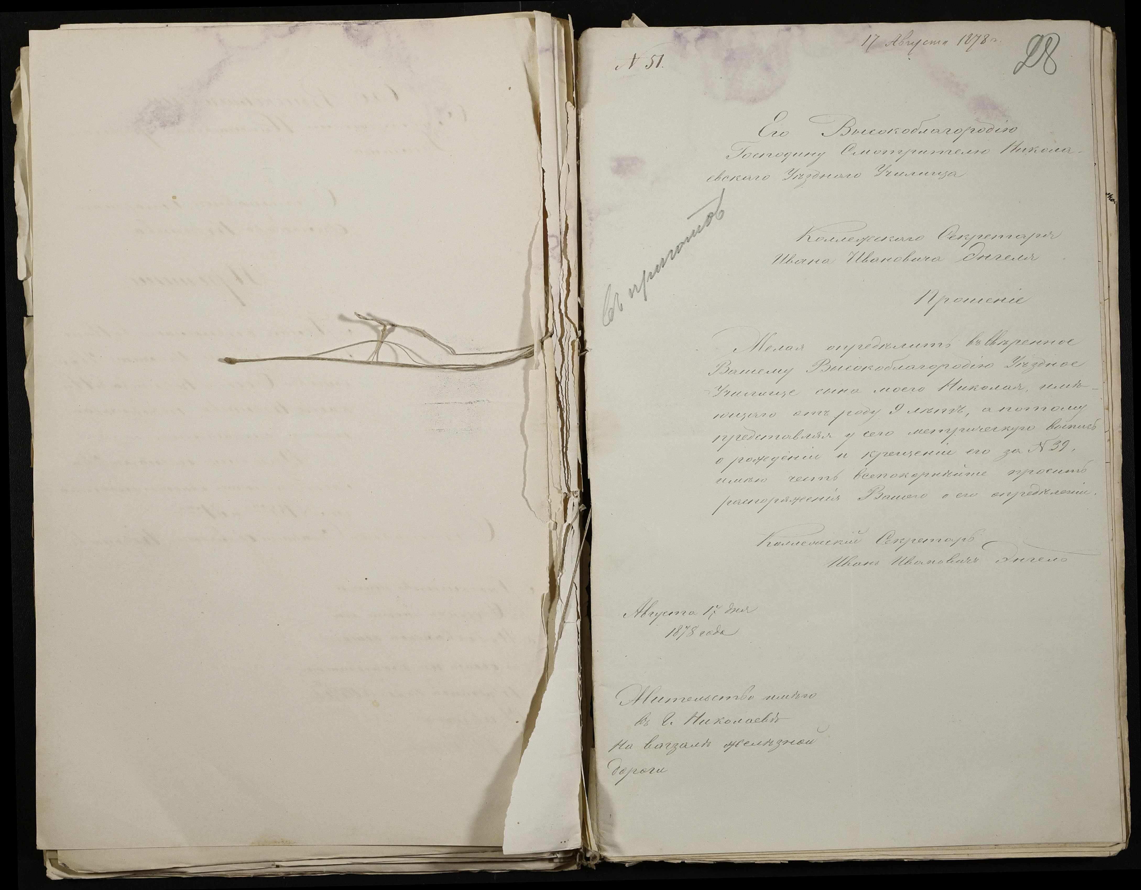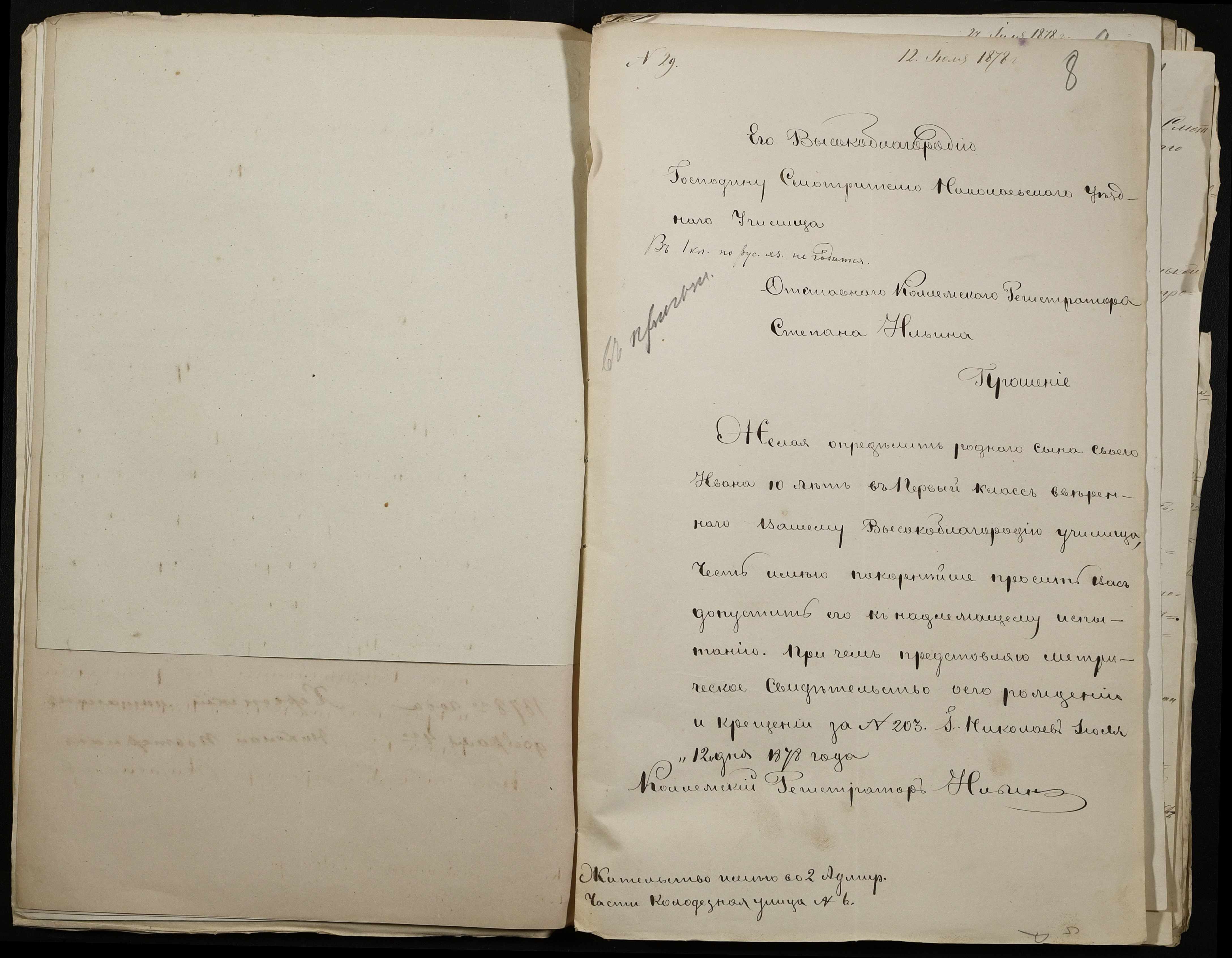 • • • • Справа № 113 “Прохання про вступ в училище, свідоцтва про народження учнів”