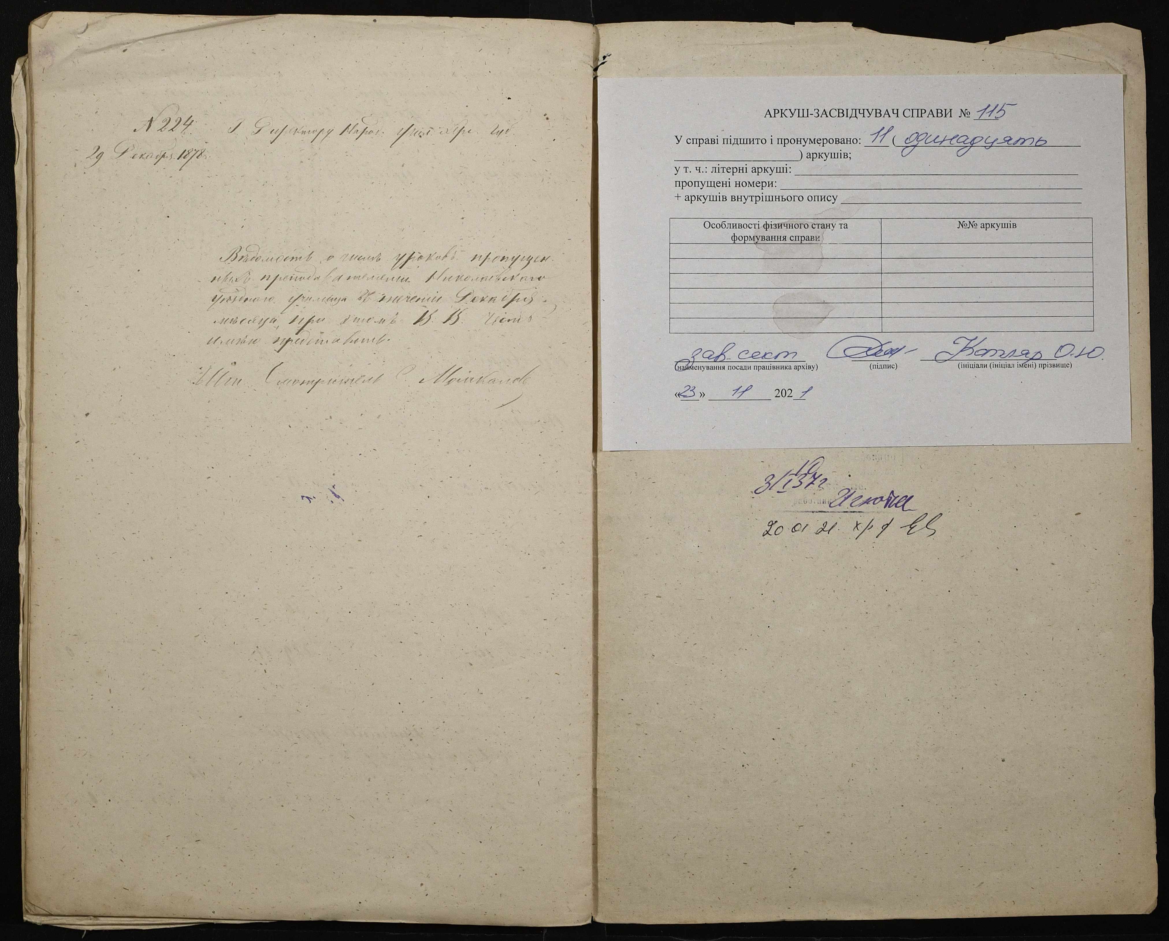 ◦ ◦ ◦ Опис № 1 справ постійного зберігання за 1847-1852, 1858, 1868-1869, 1871-1919, 1922 роки