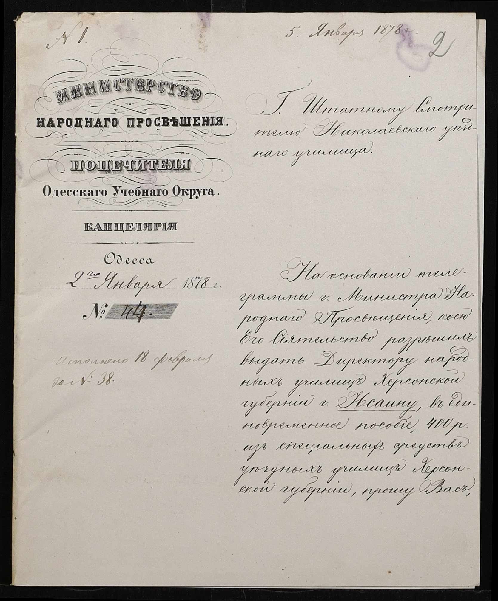 ◦ ◦ Фонд № 131 “Миколаївське перше вище початкове училище”