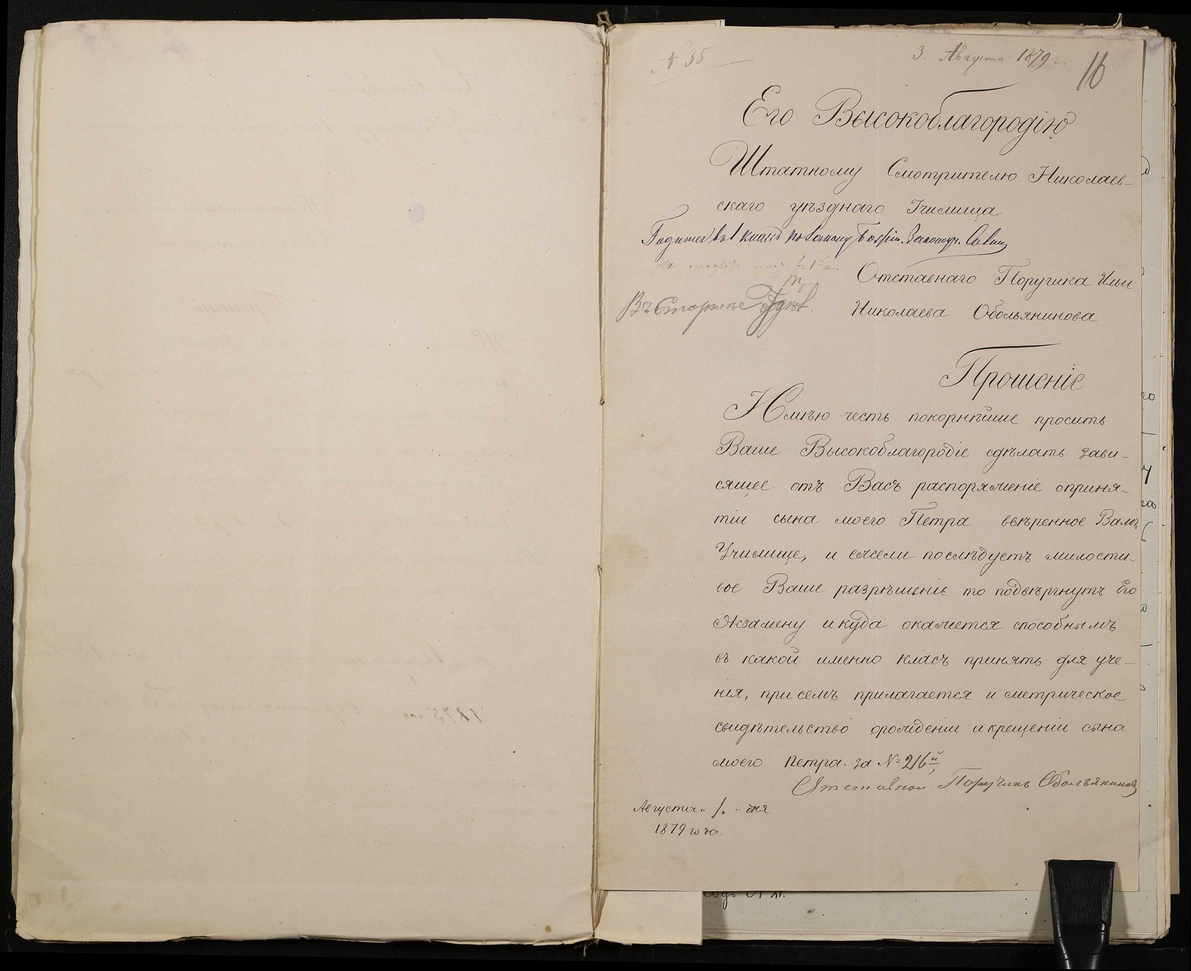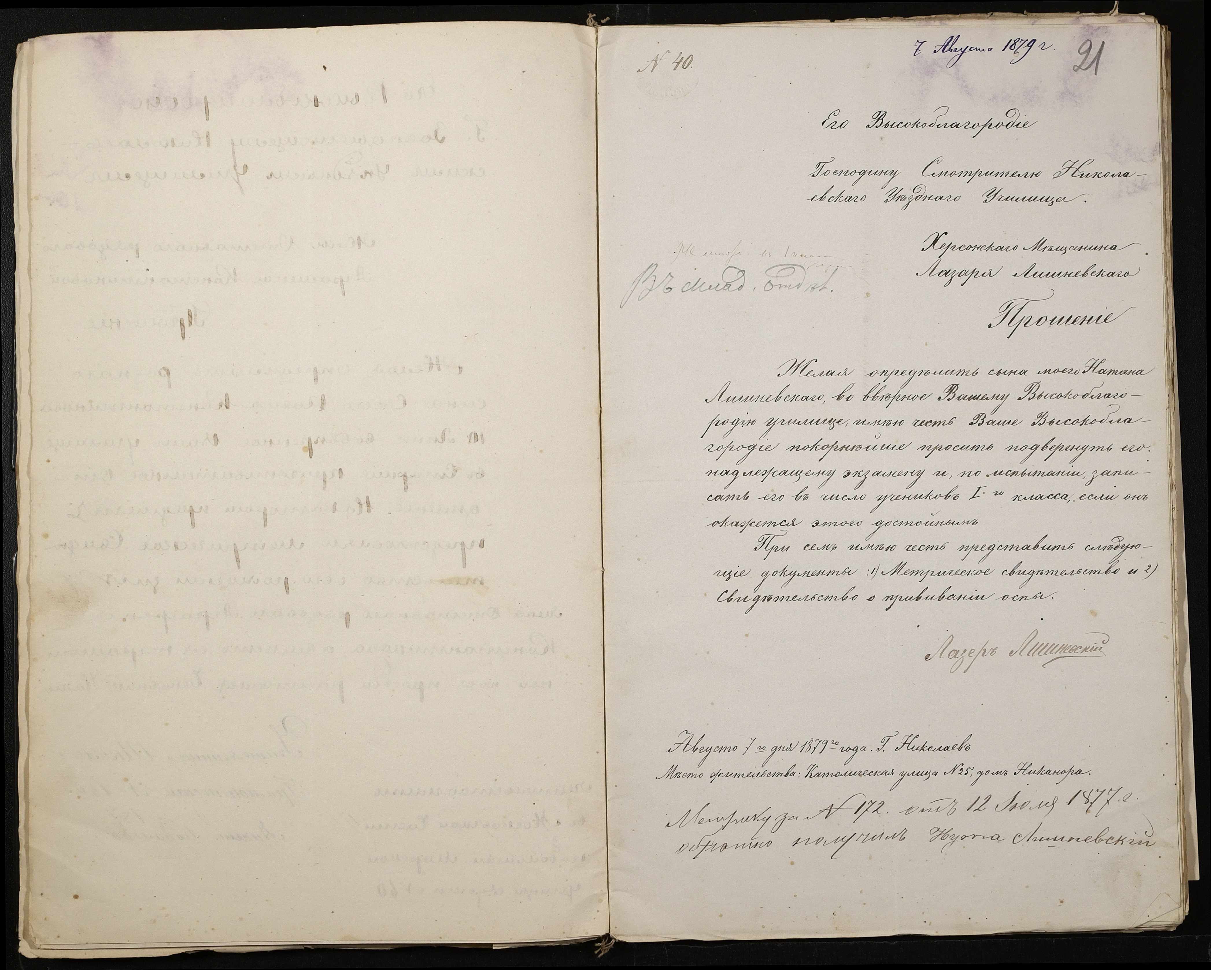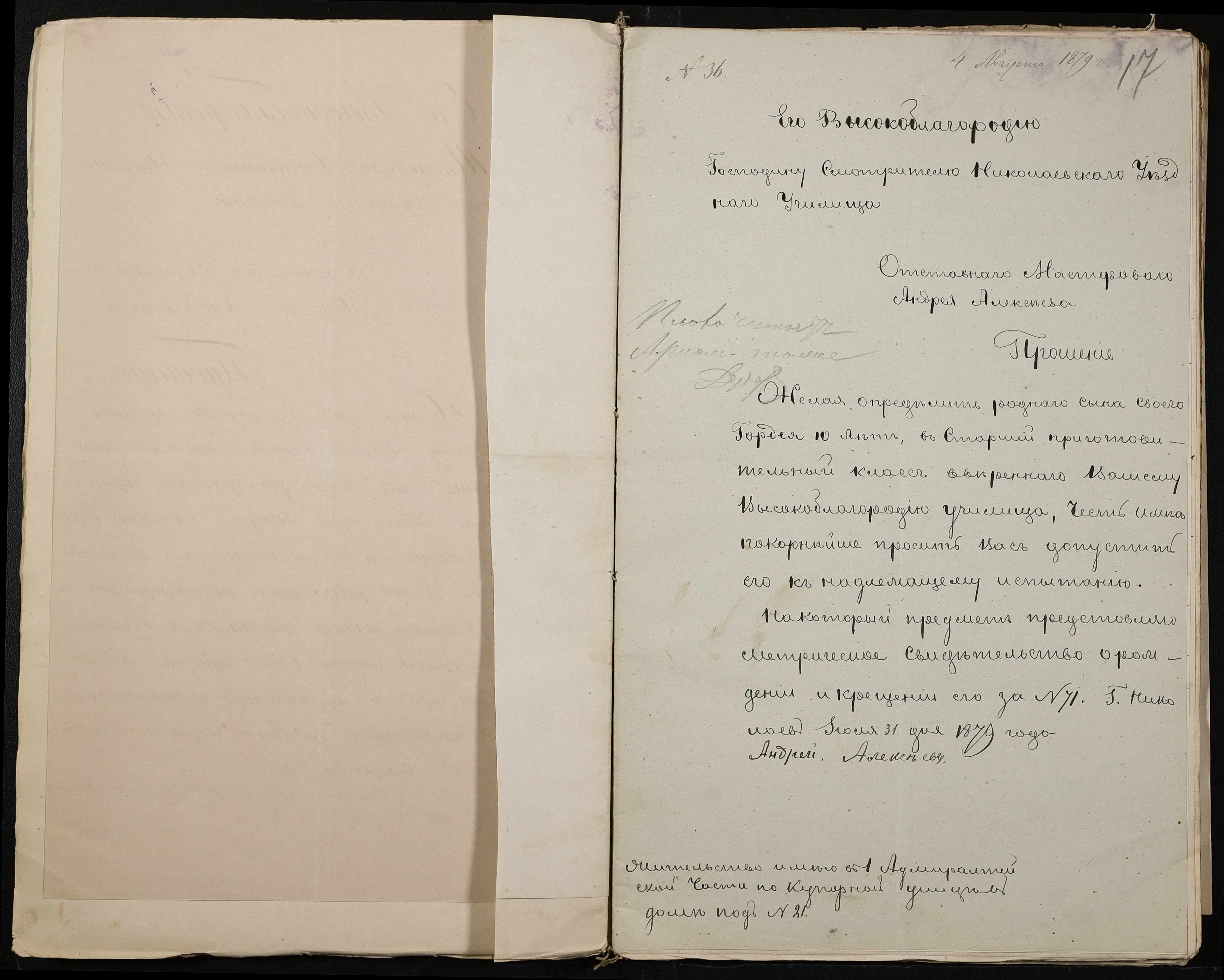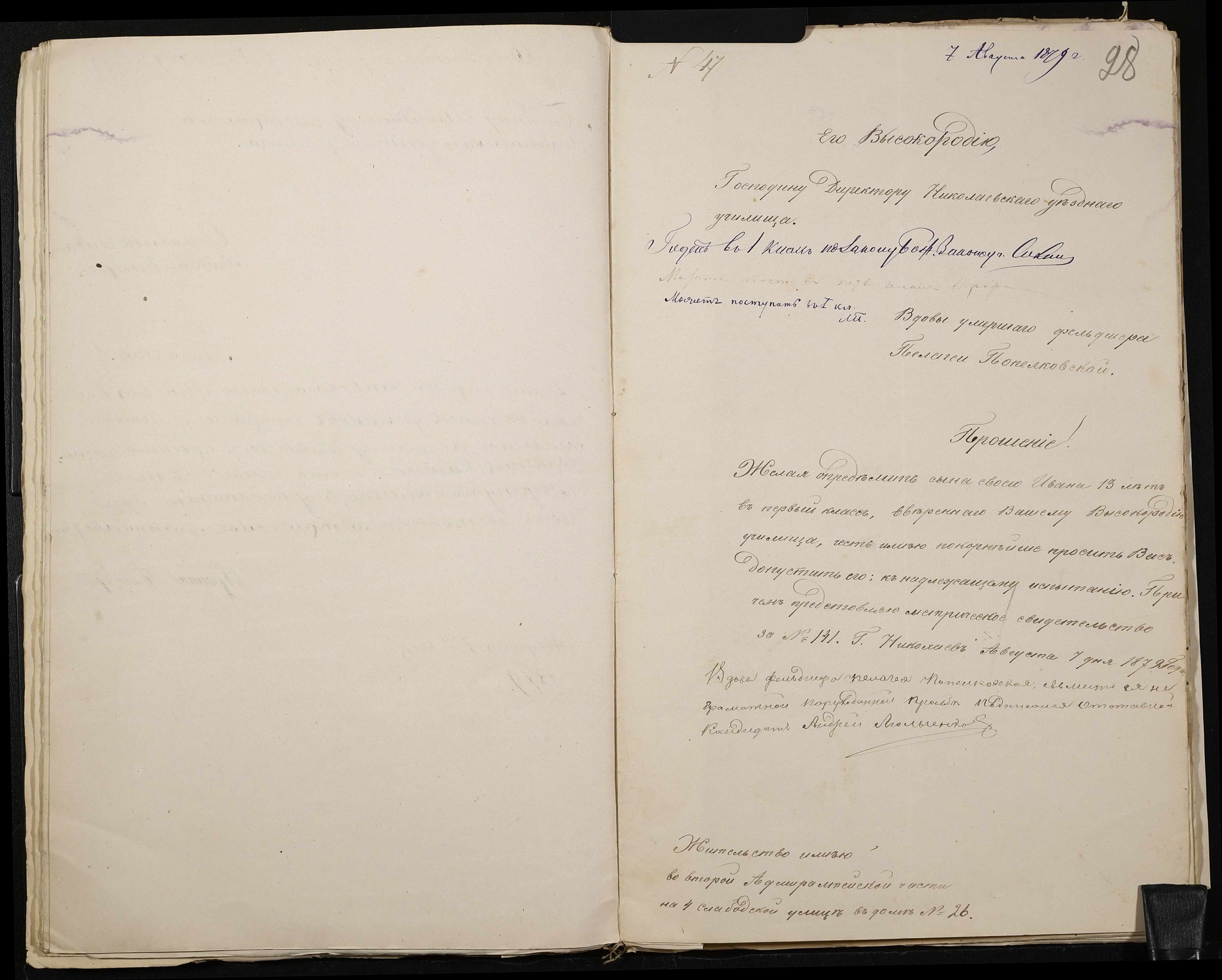 • • • • Справа № 126 “Прохання про прийом до училища”