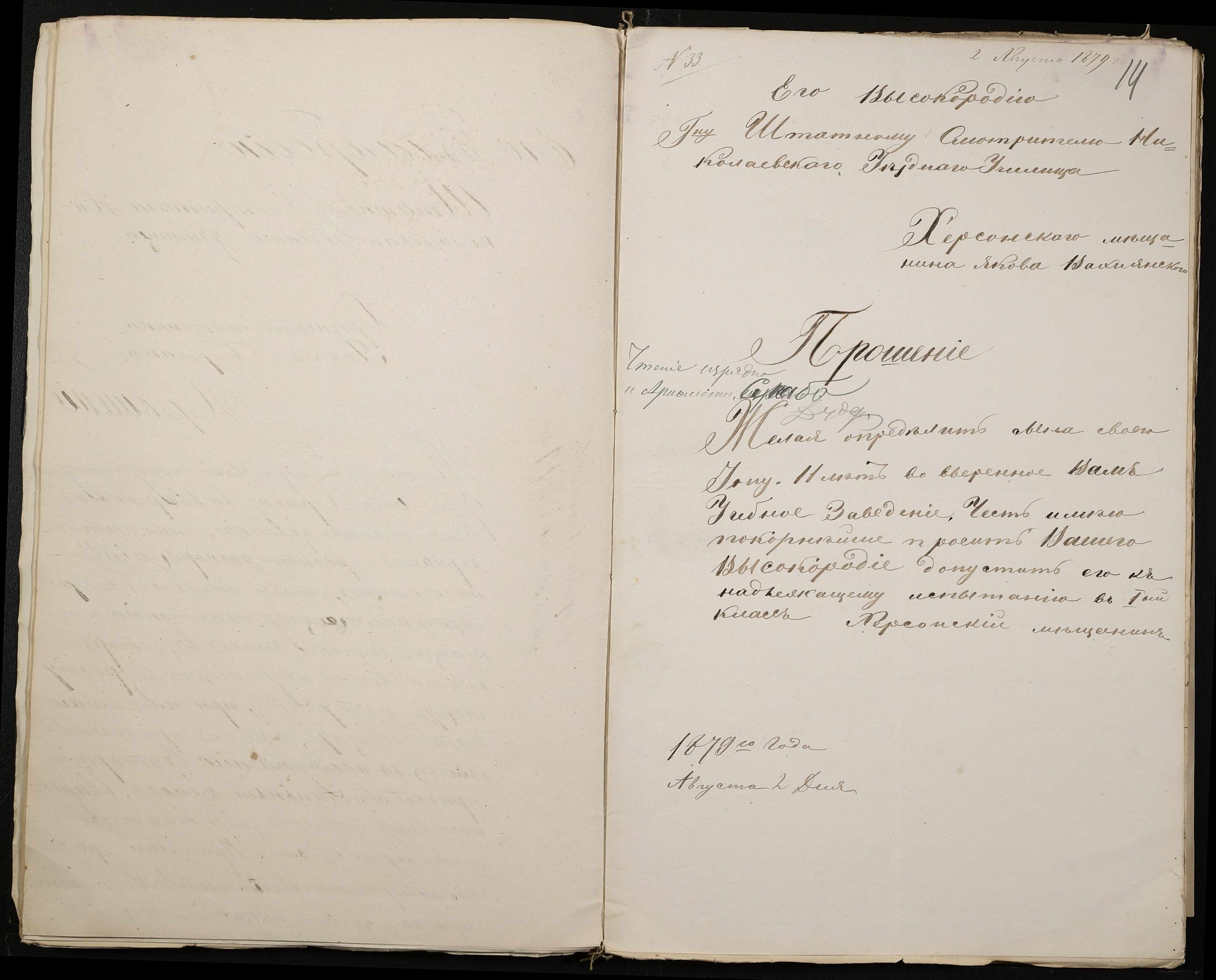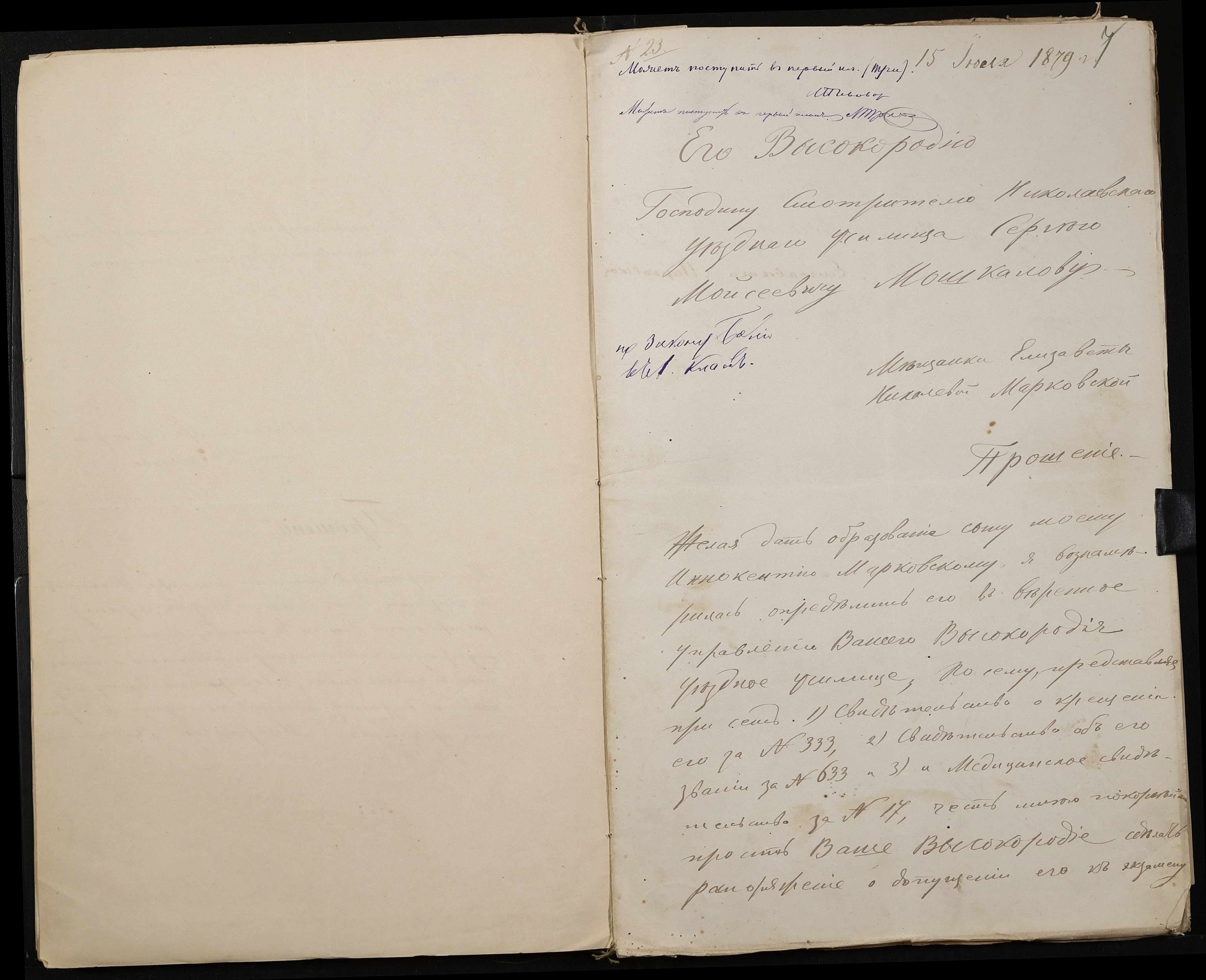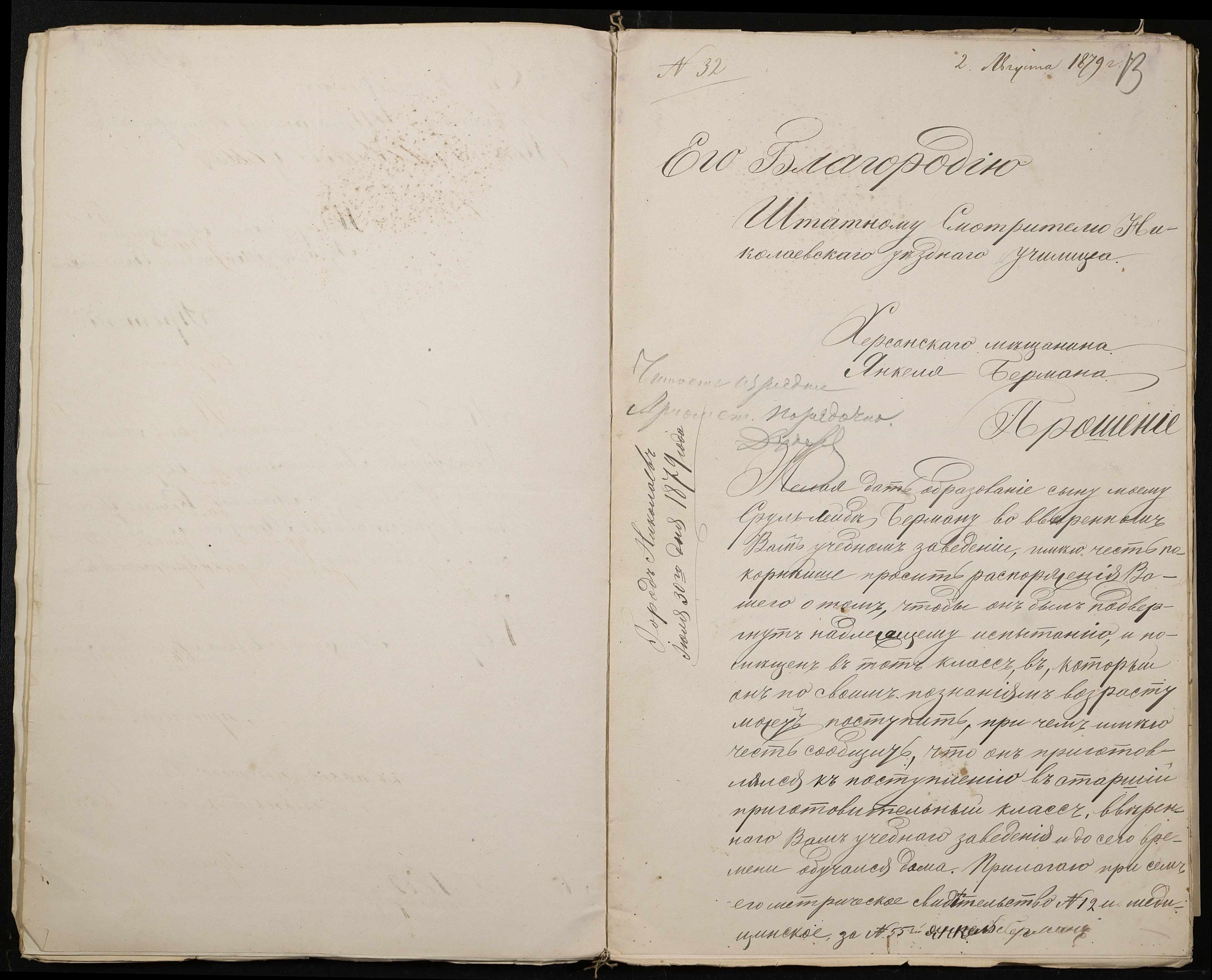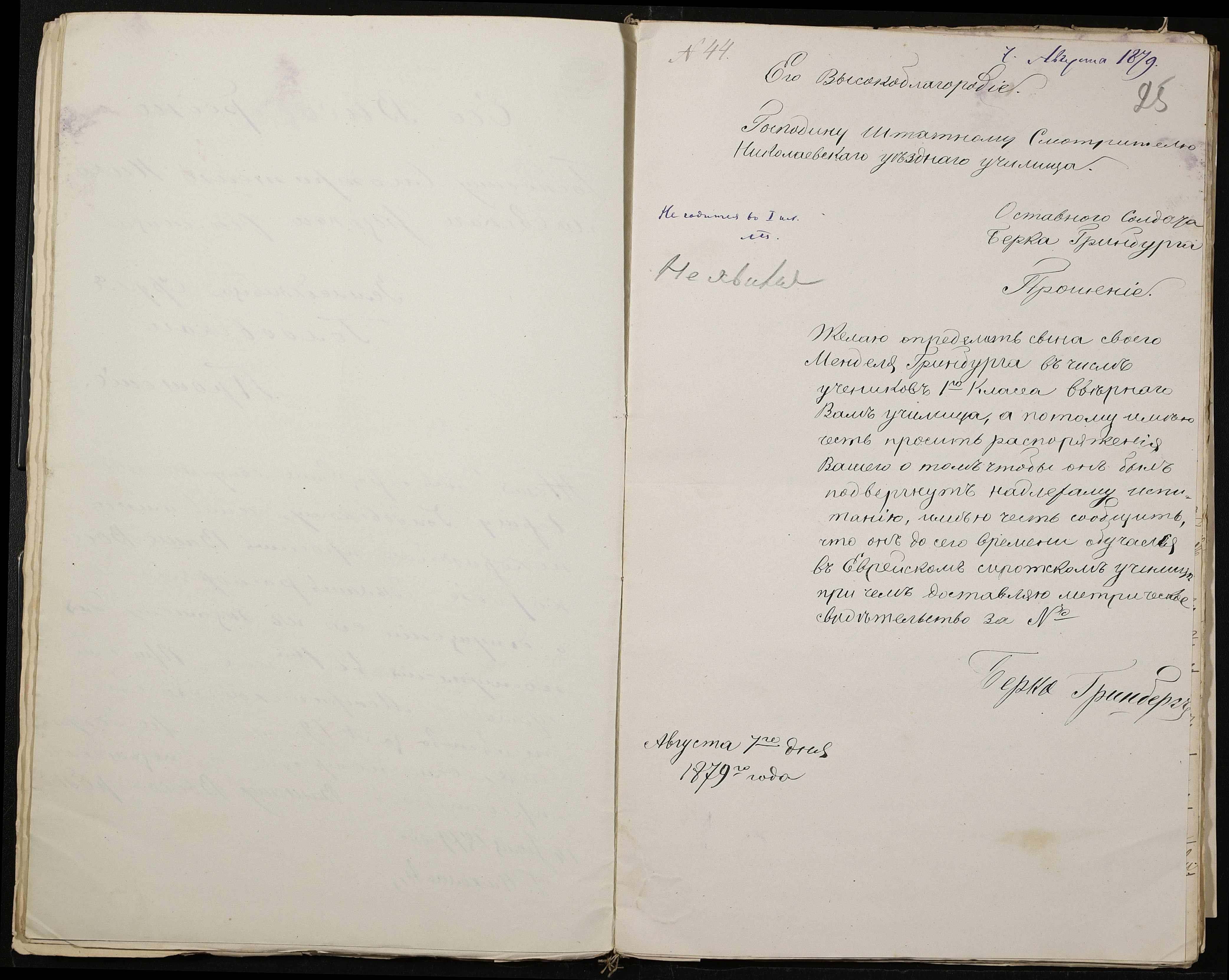 • • • • Справа № 126 “Прохання про прийом до училища”