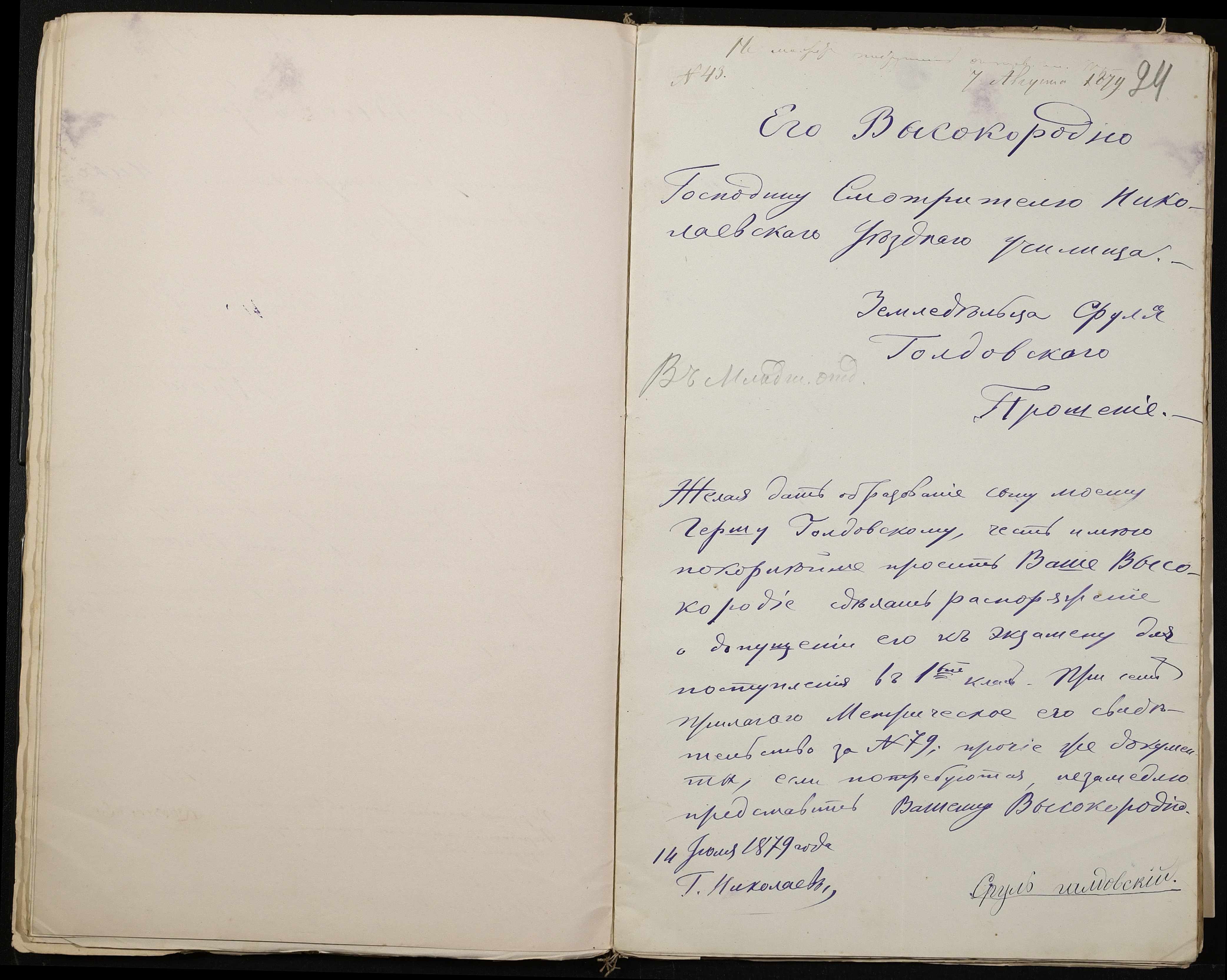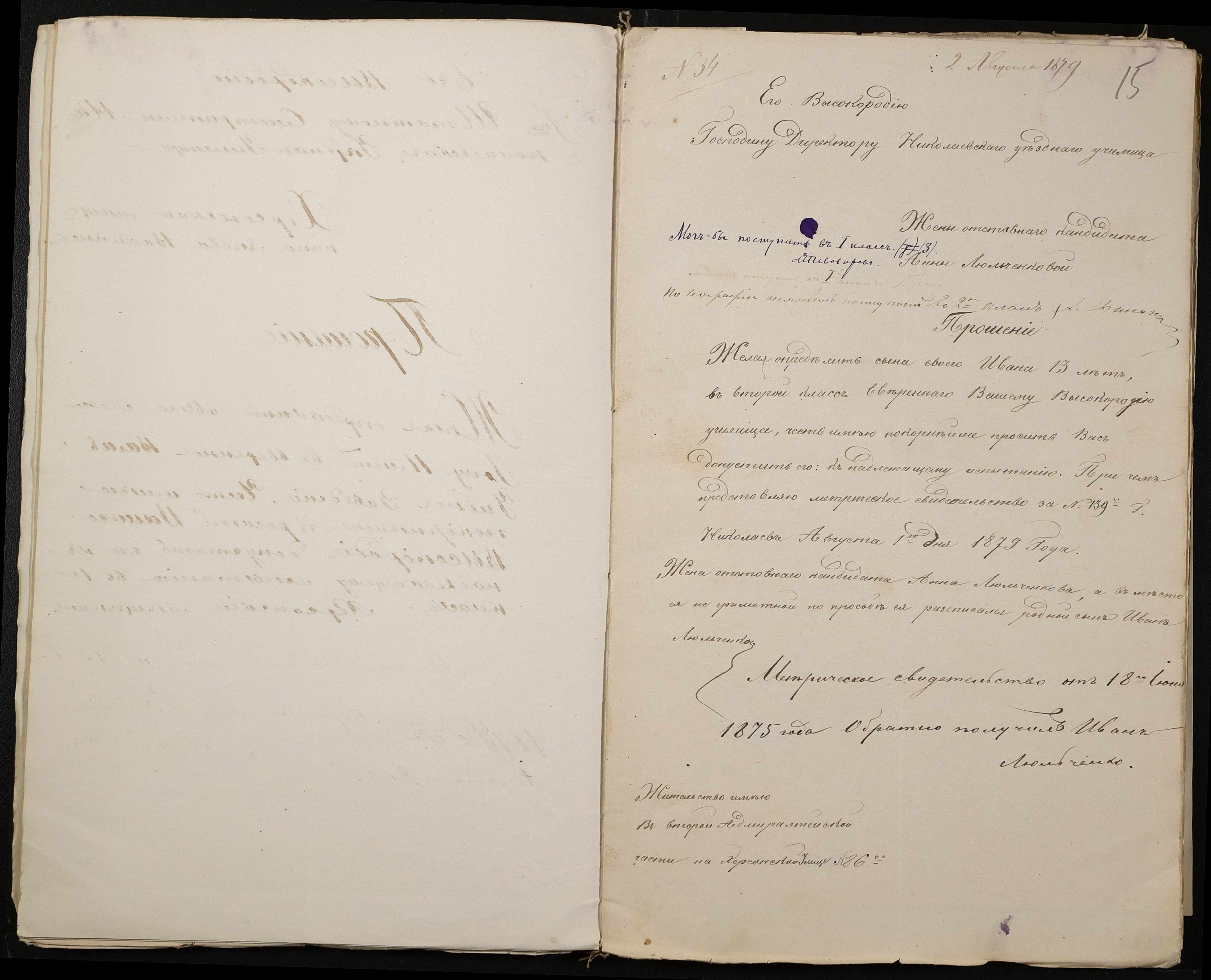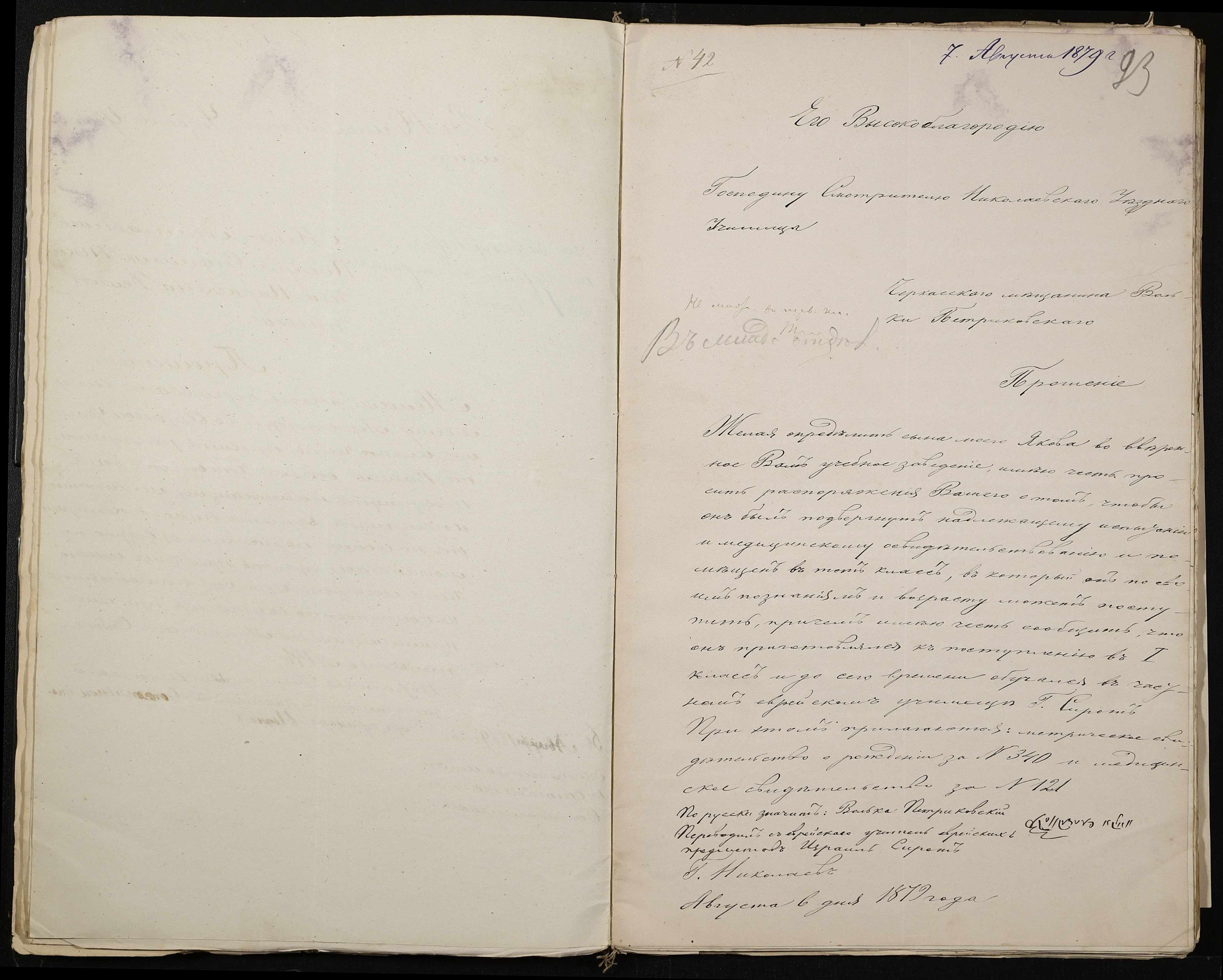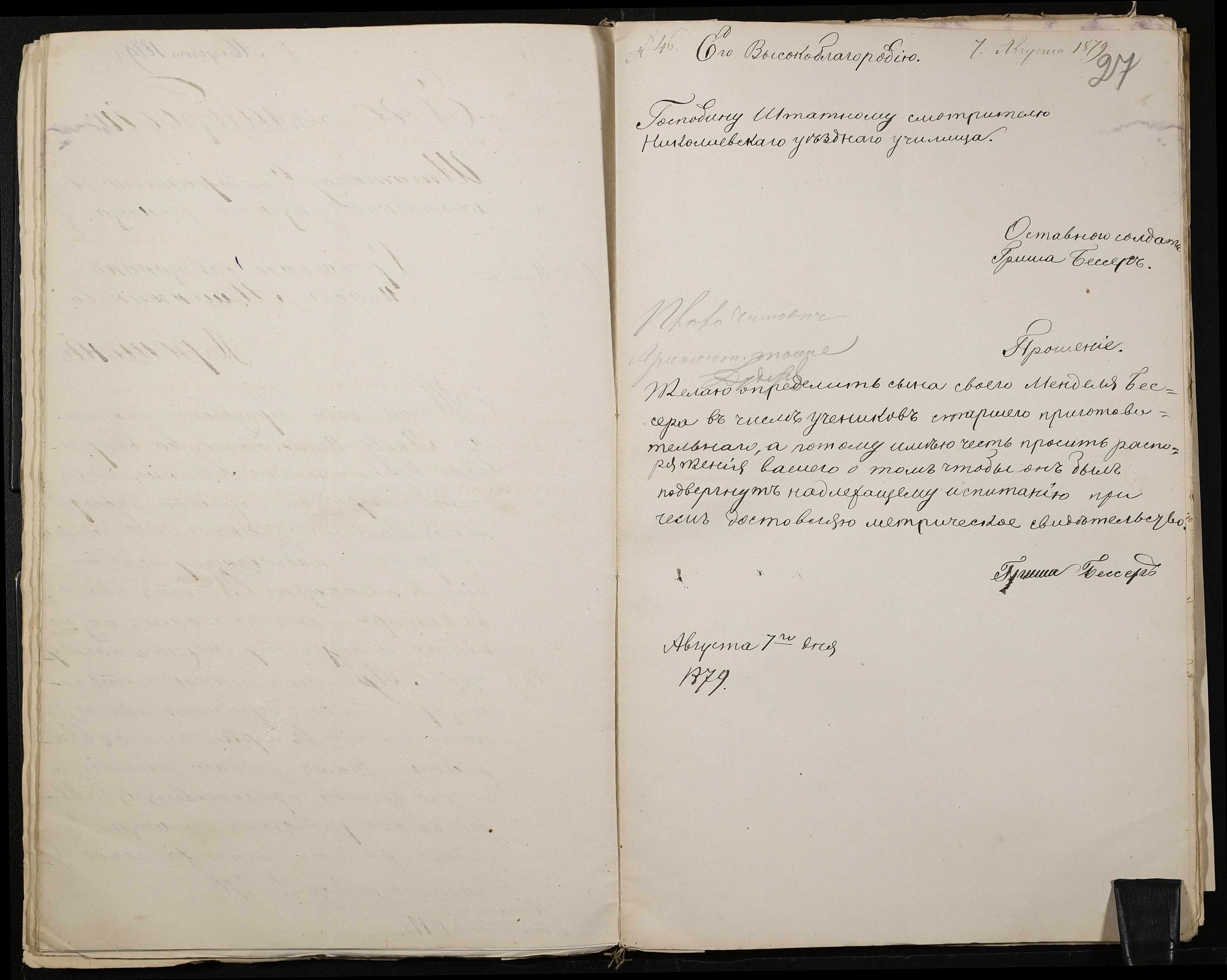 • • • • Справа № 126 “Прохання про прийом до училища”