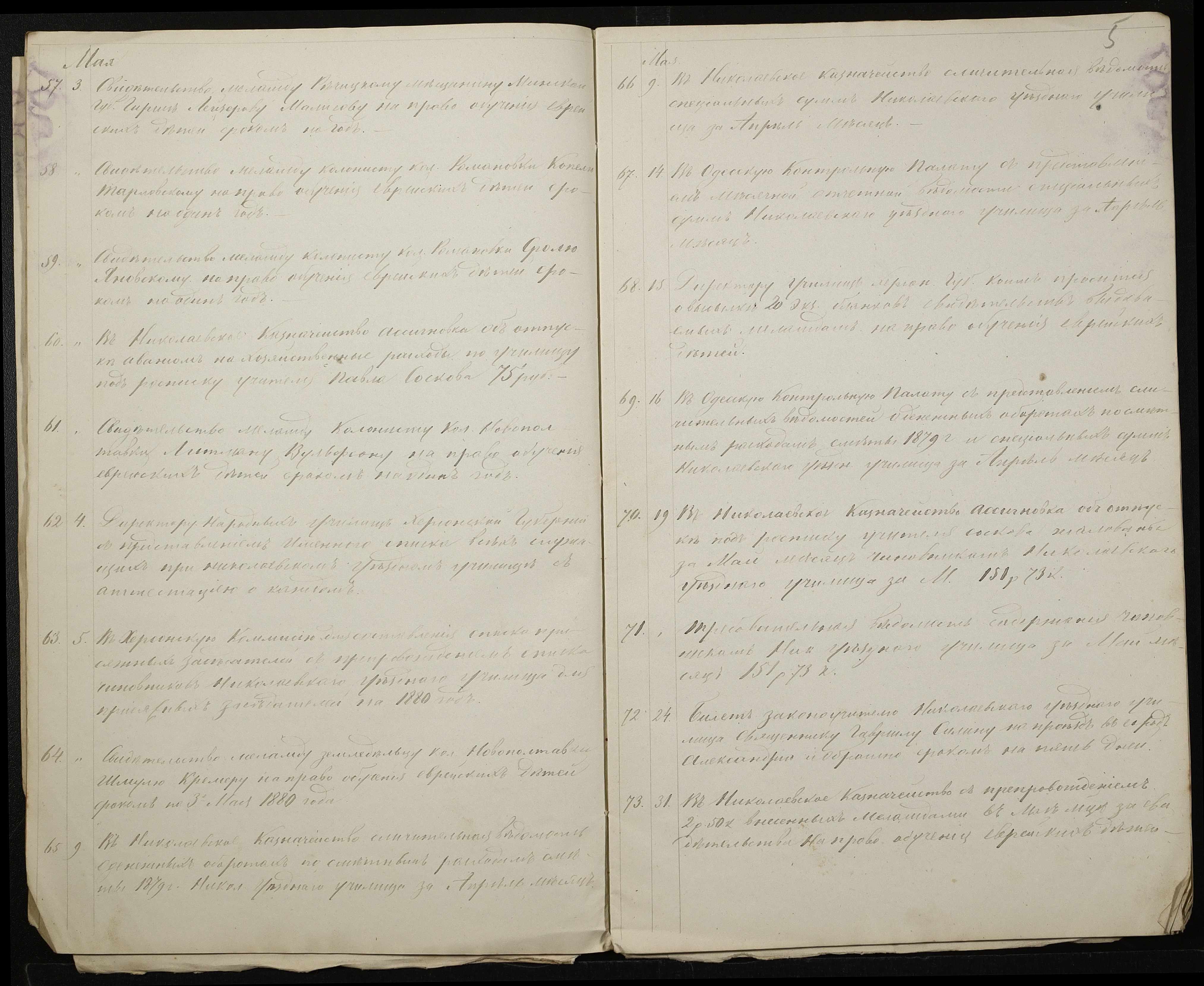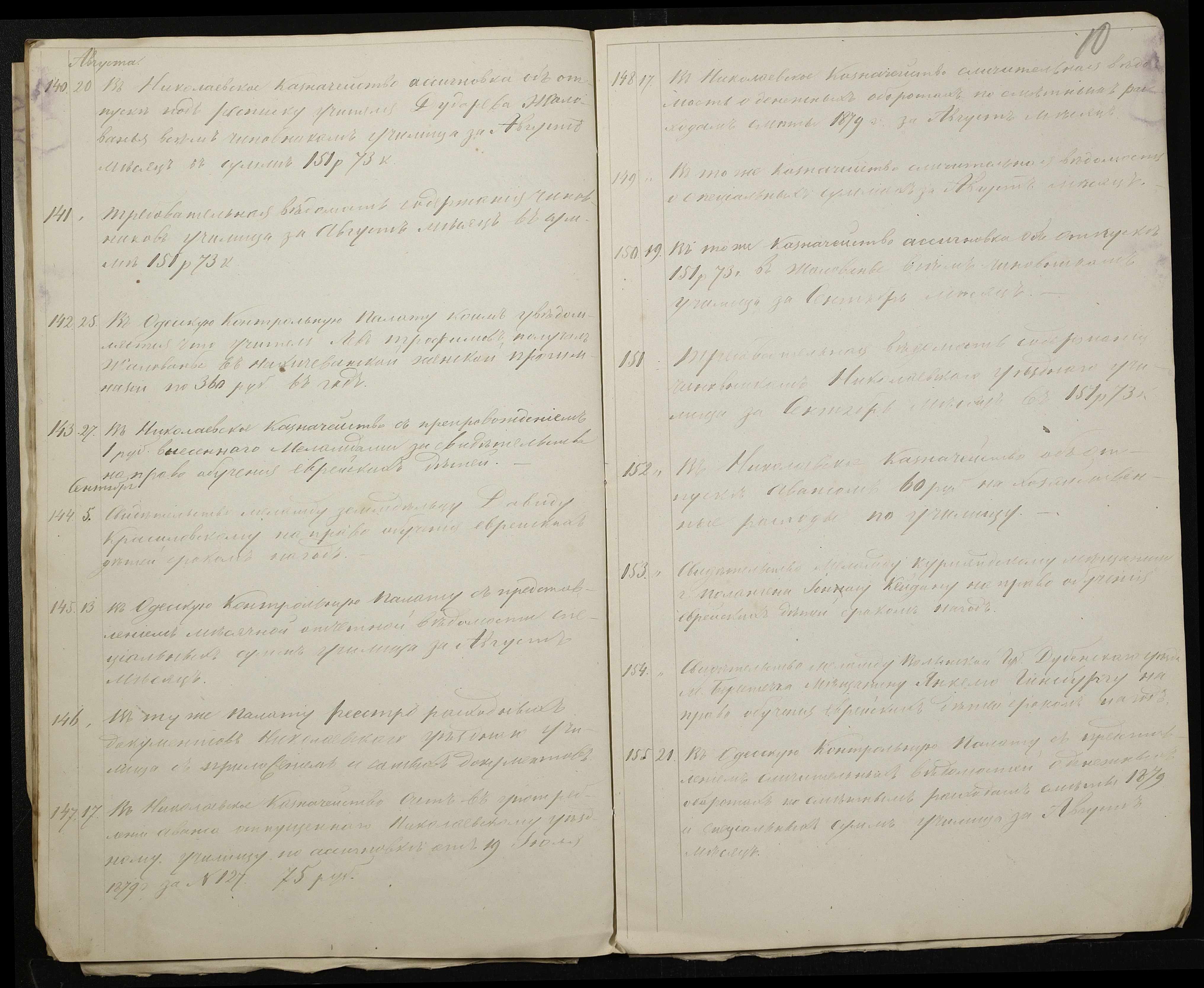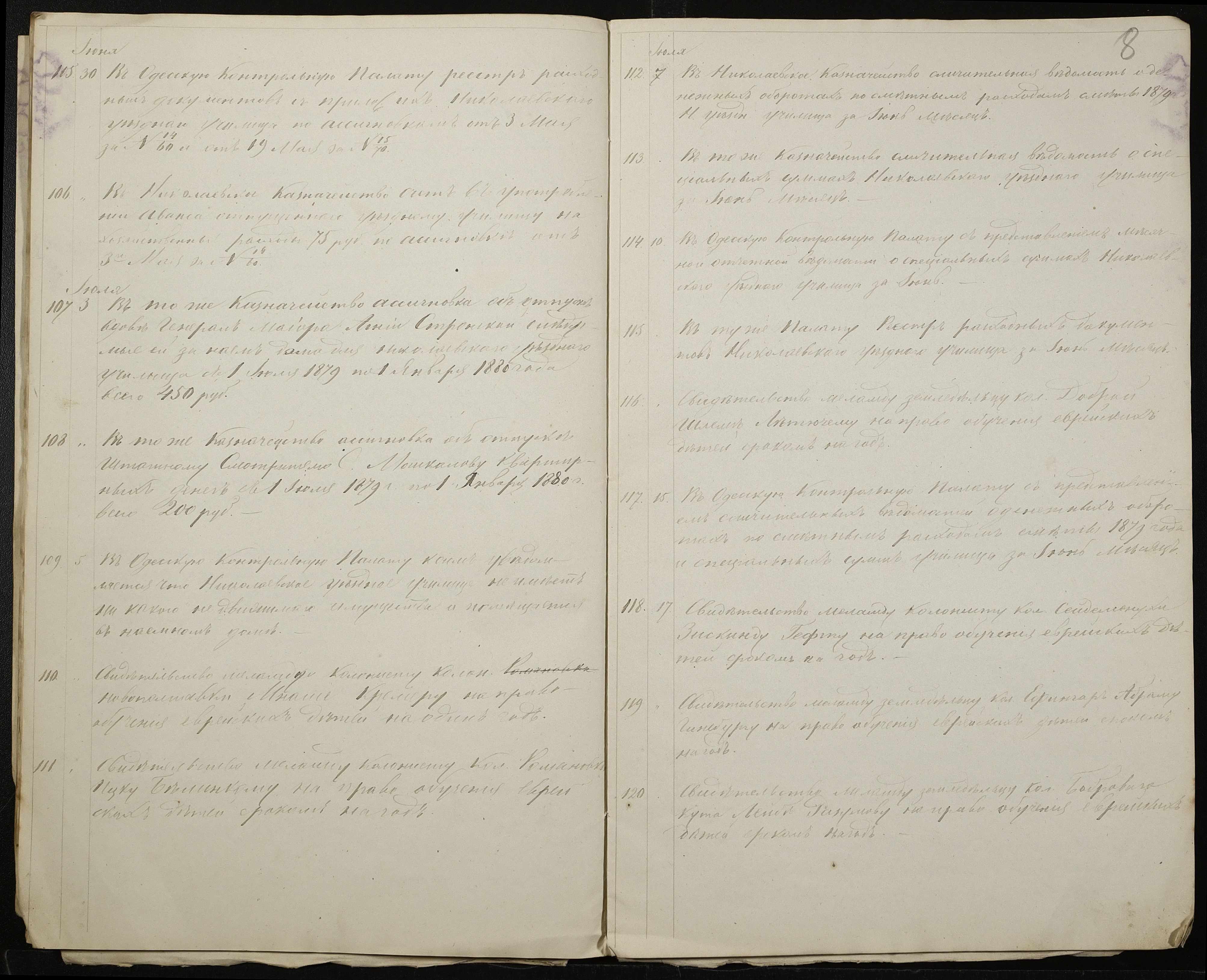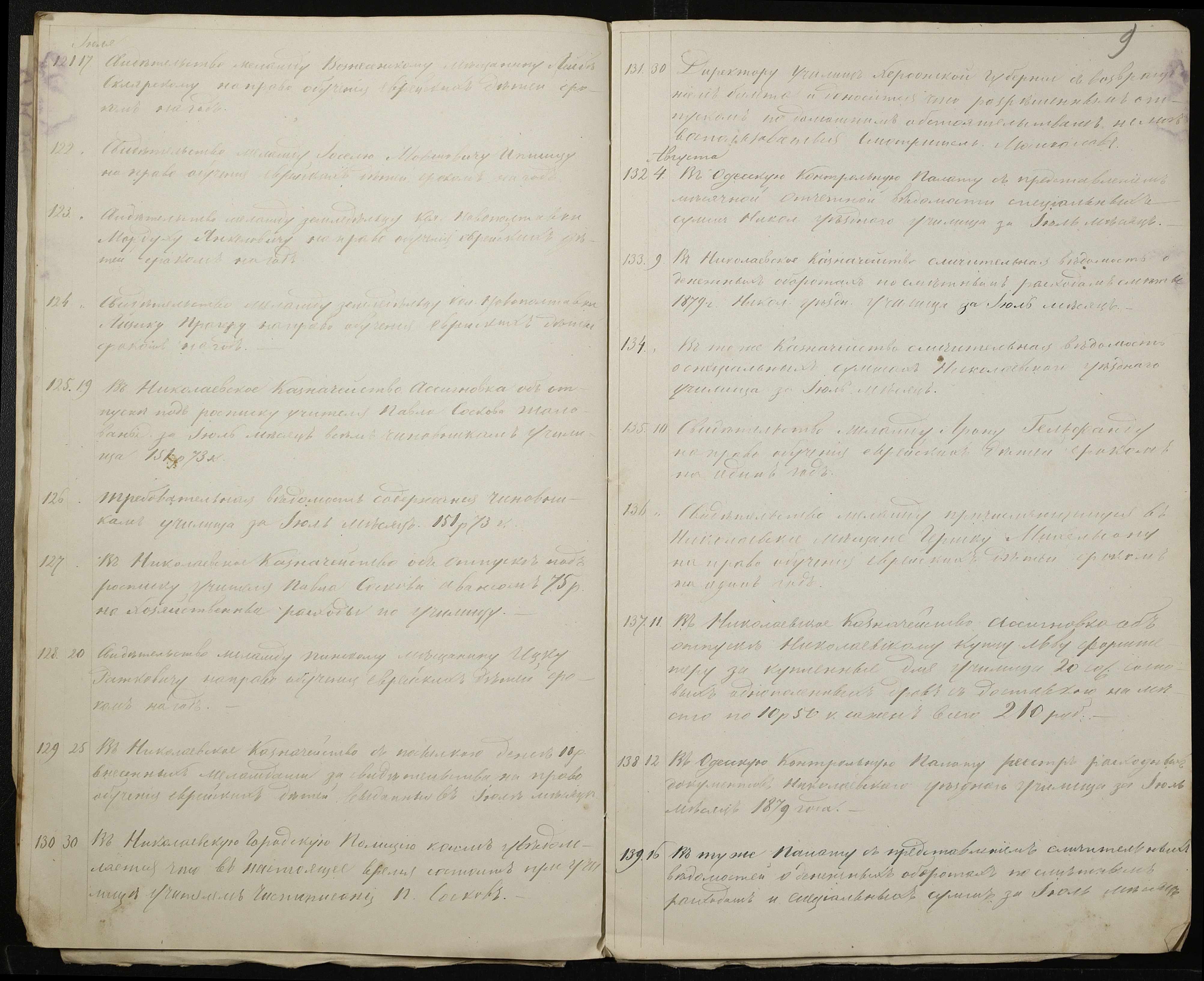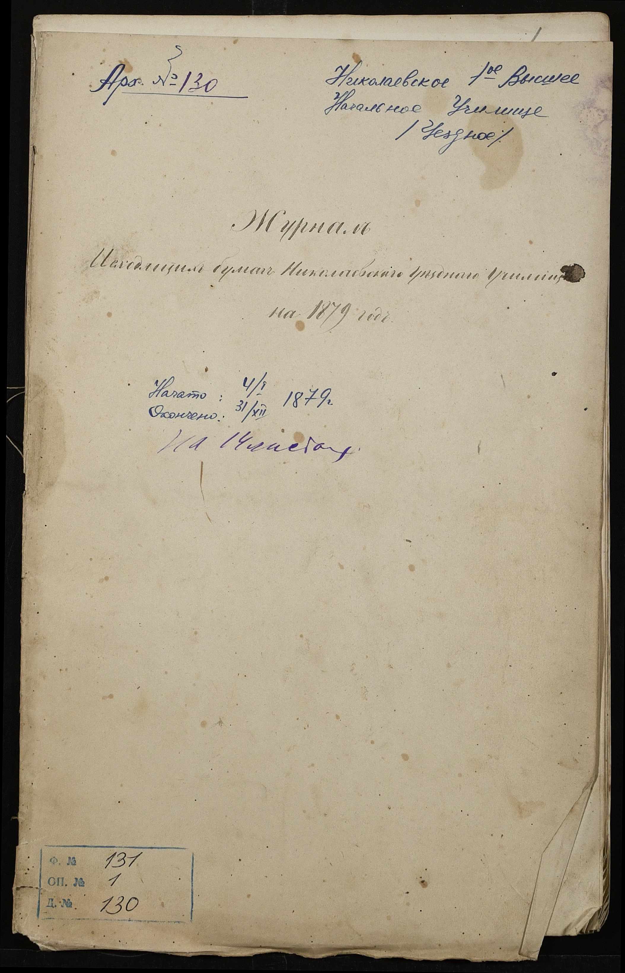• • • • Справа № 130 “Журнал реєстрації вихідних документів за 1879 рік”