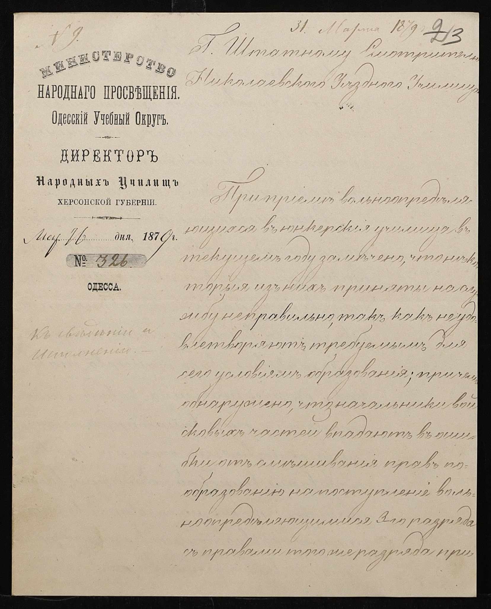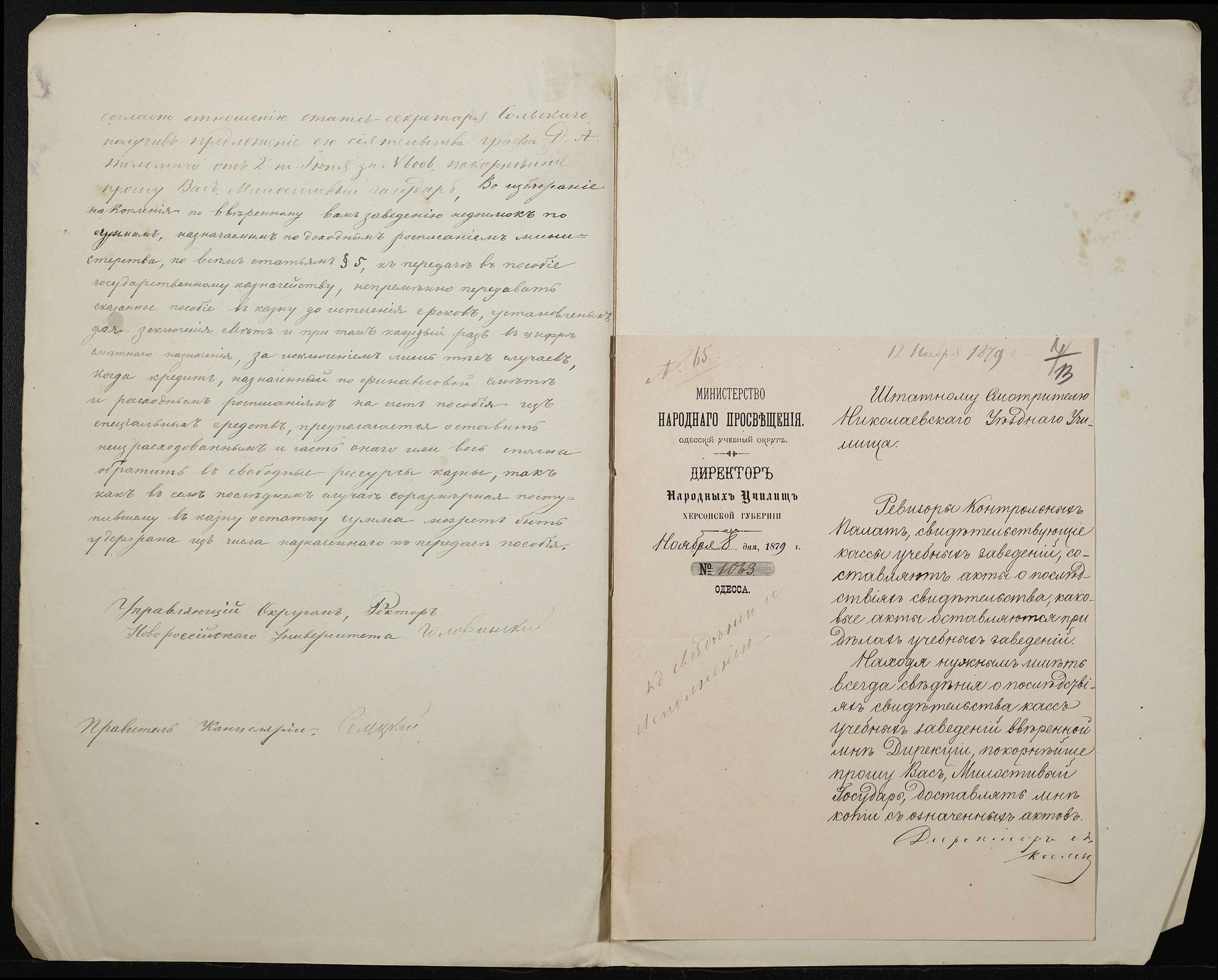 • • • • Справа № 131 “Листування з директором народних училищ Херсонської губернії про приписку до призовної ділянки, про призов учнів на військову службу”