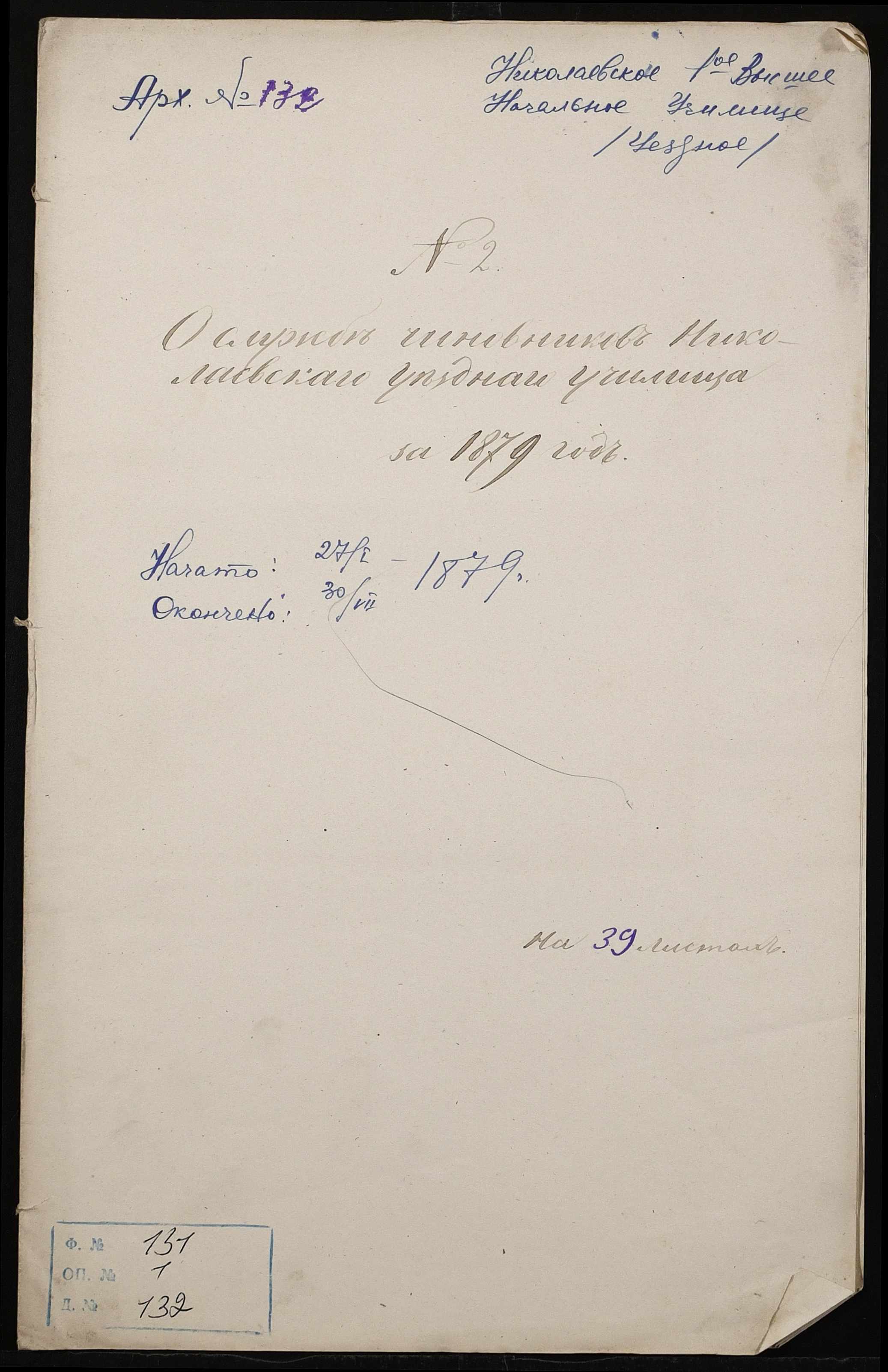 ◦ ◦ Фонд № 131 “Миколаївське перше вище початкове училище”