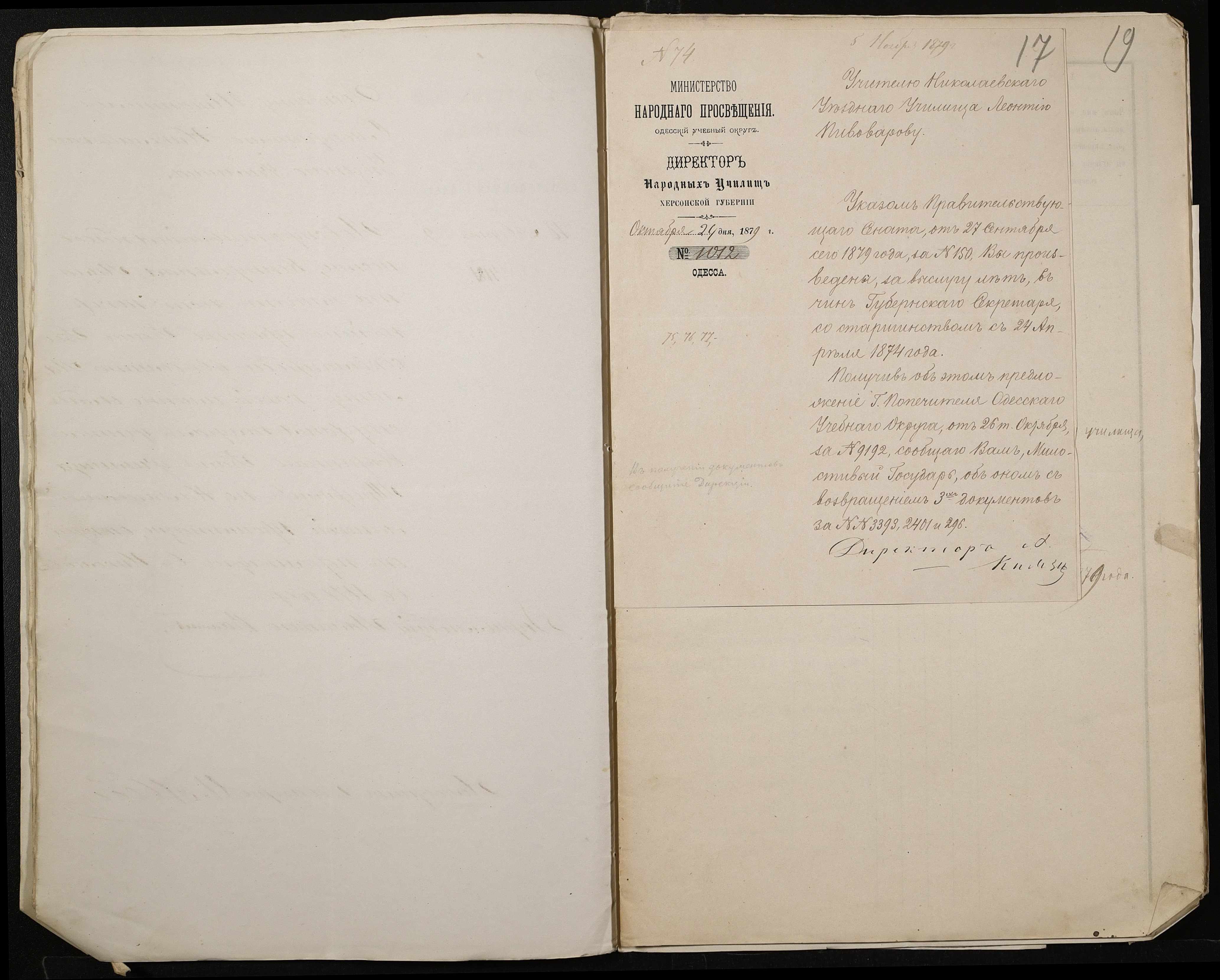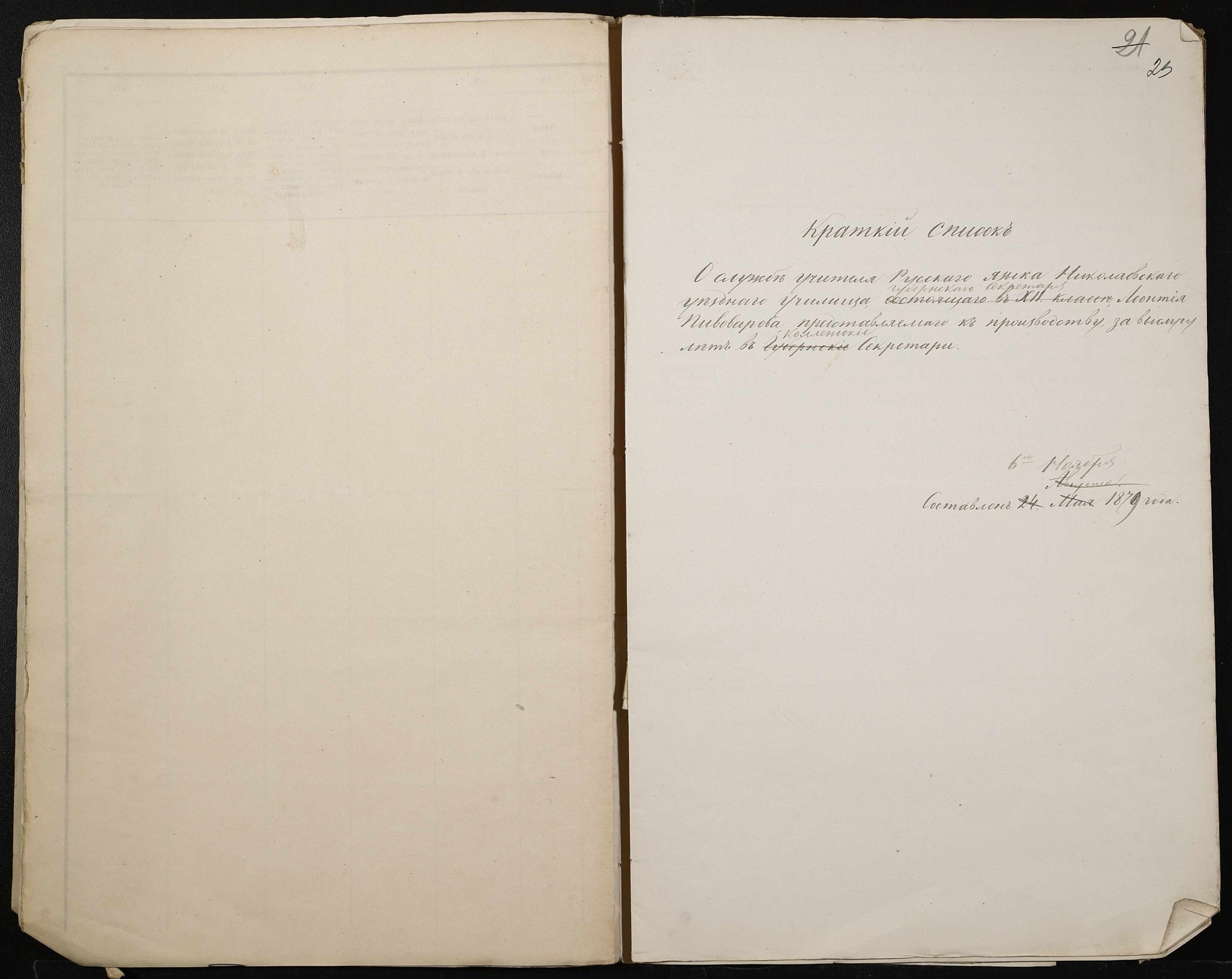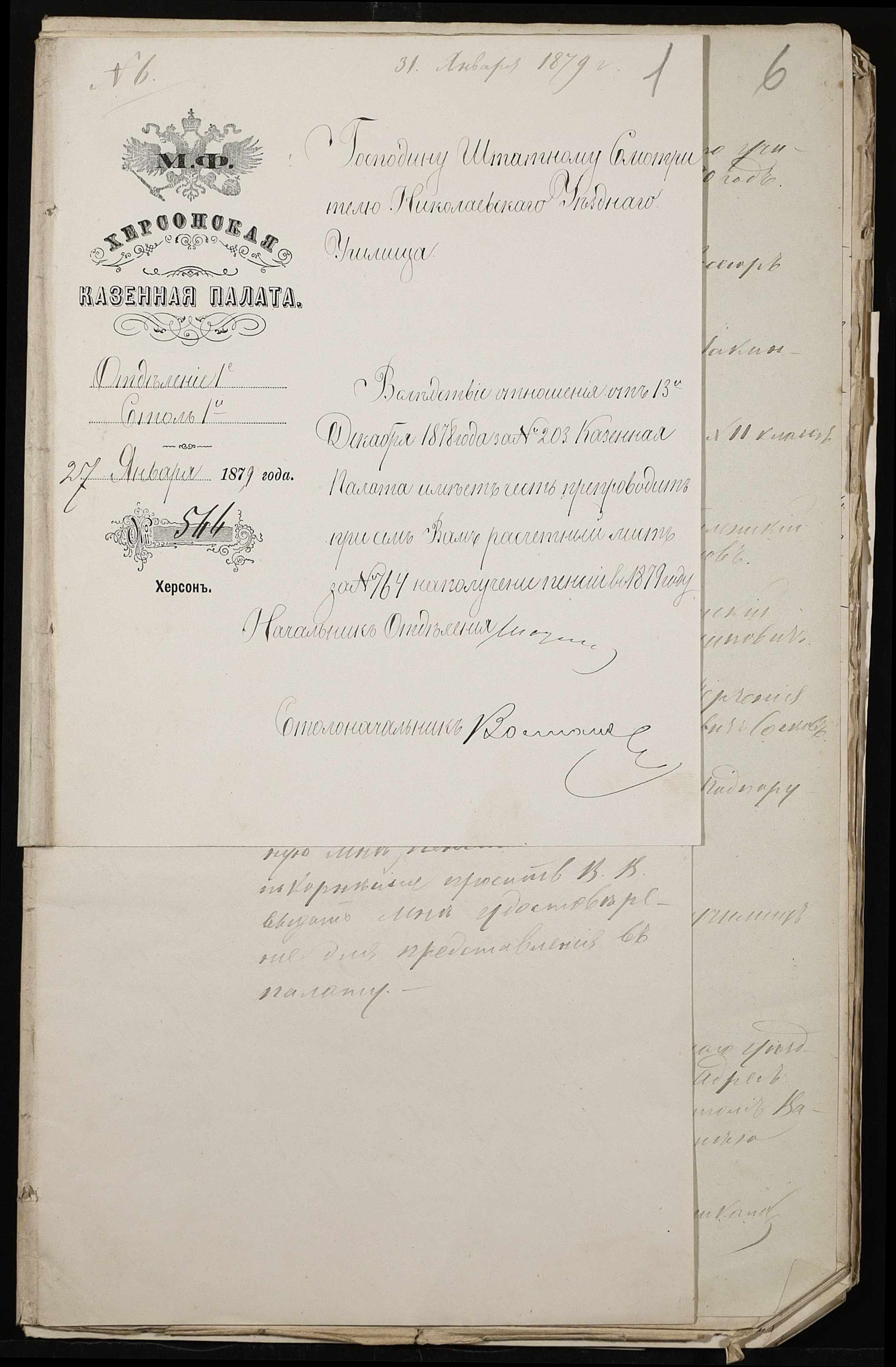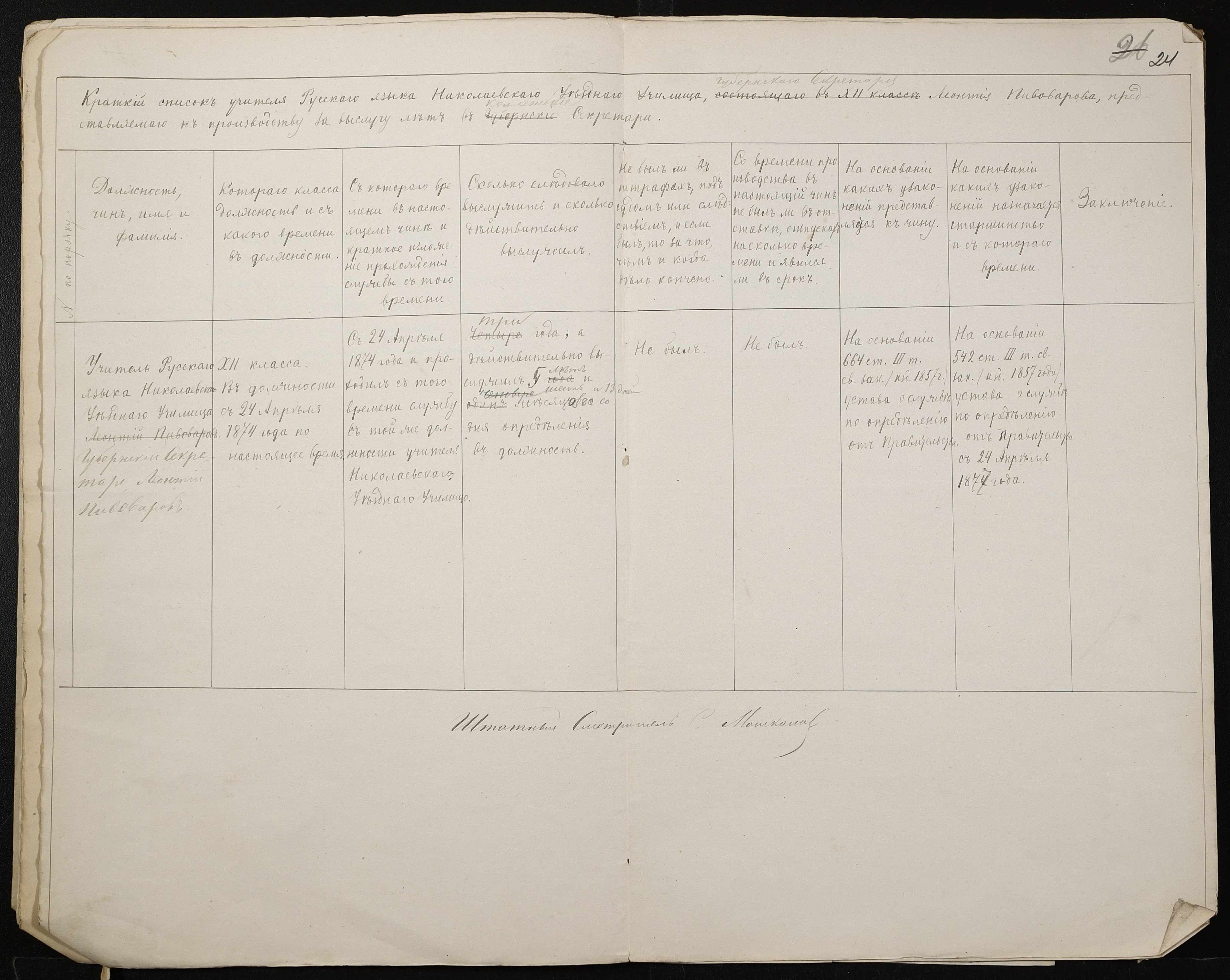 • • • • Справа № 132 “Справа про проходження служби чиновниками повітового училища”