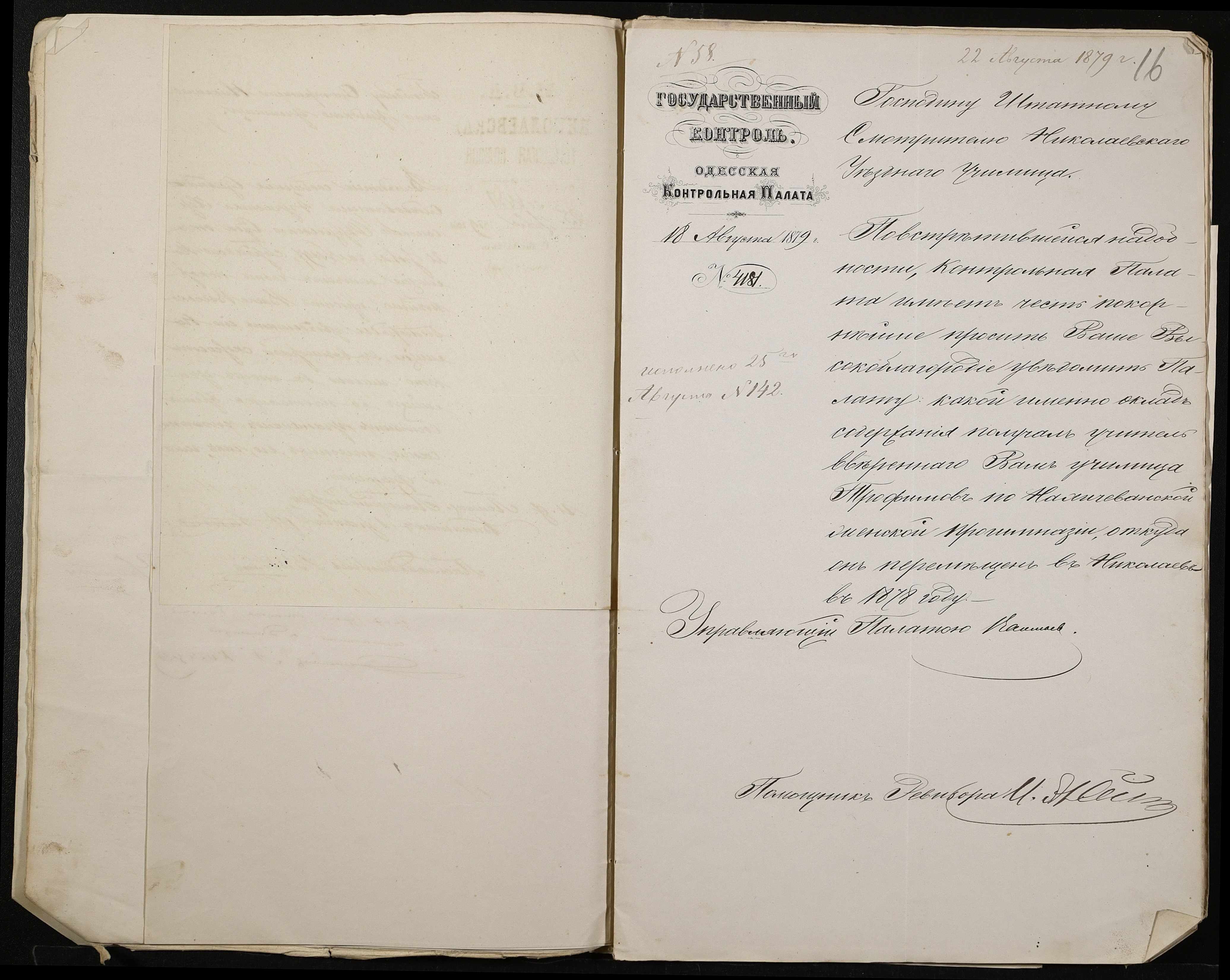 ◦ ◦ ◦ Опис № 1 справ постійного зберігання за 1847-1852, 1858, 1868-1869, 1871-1919, 1922 роки