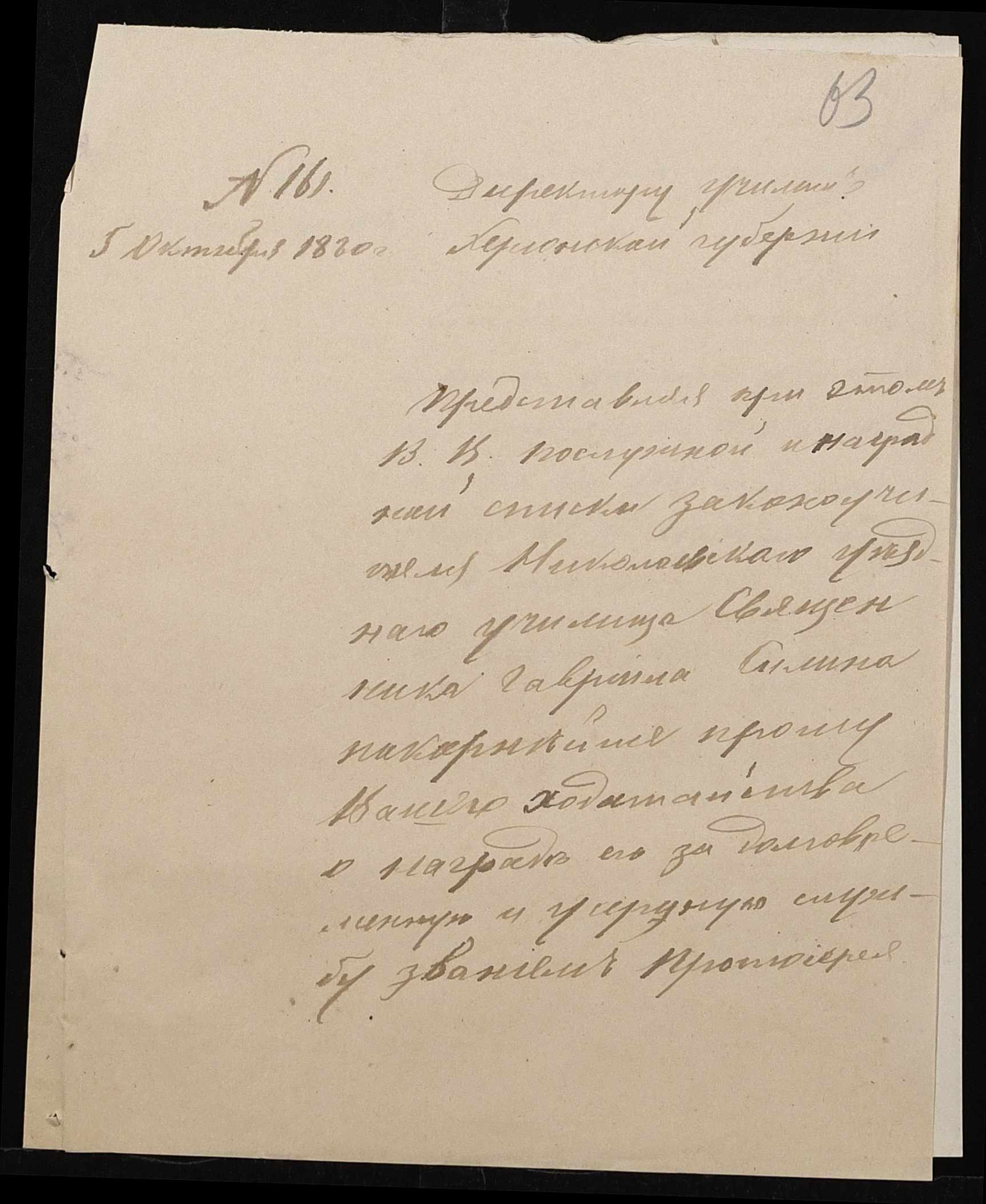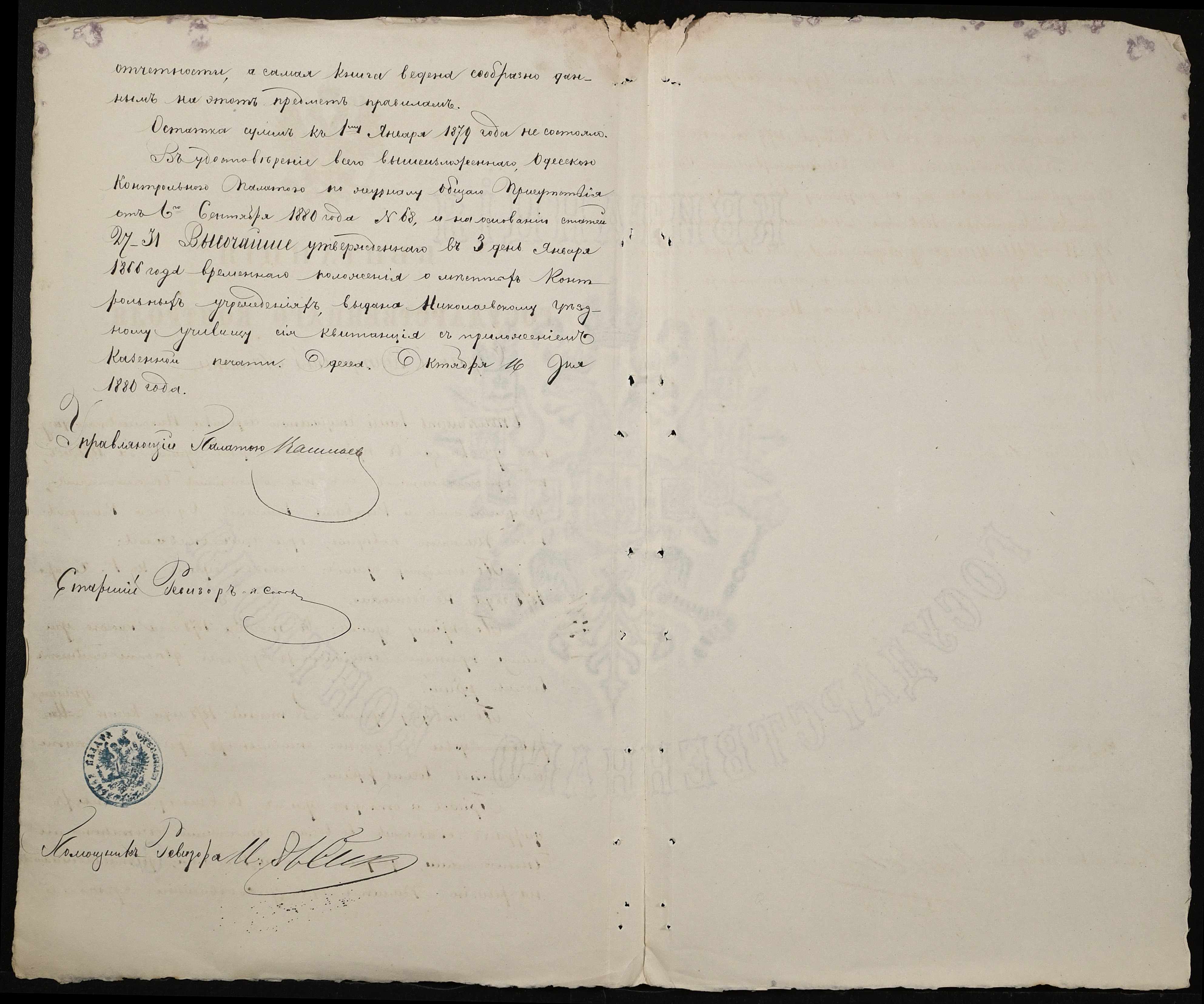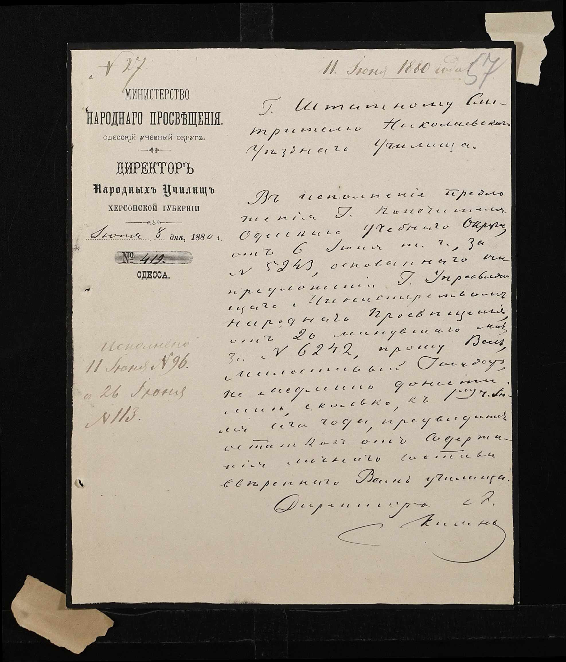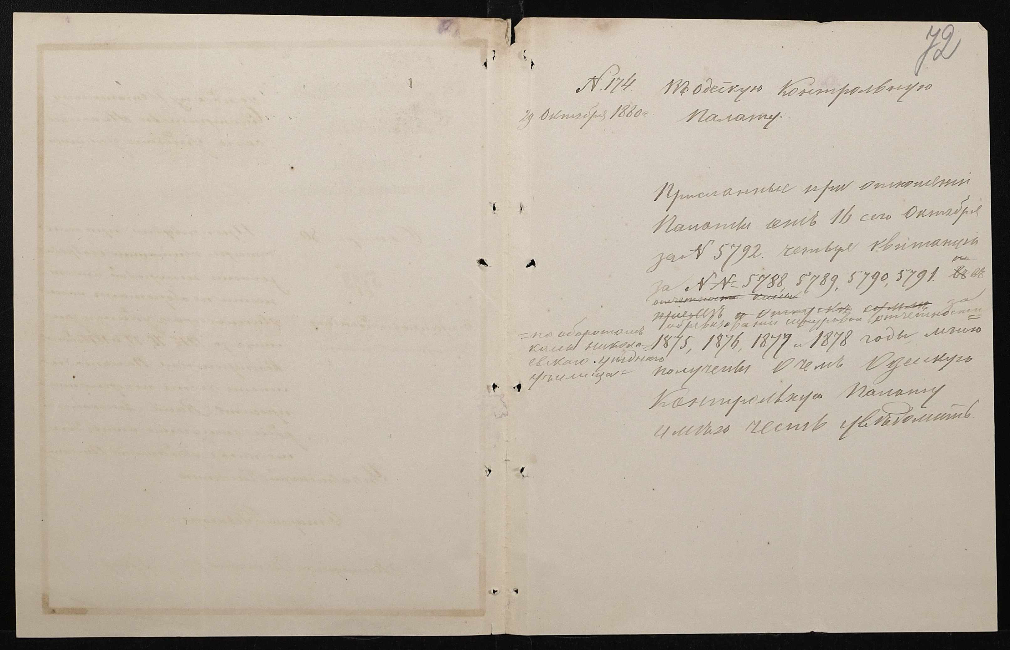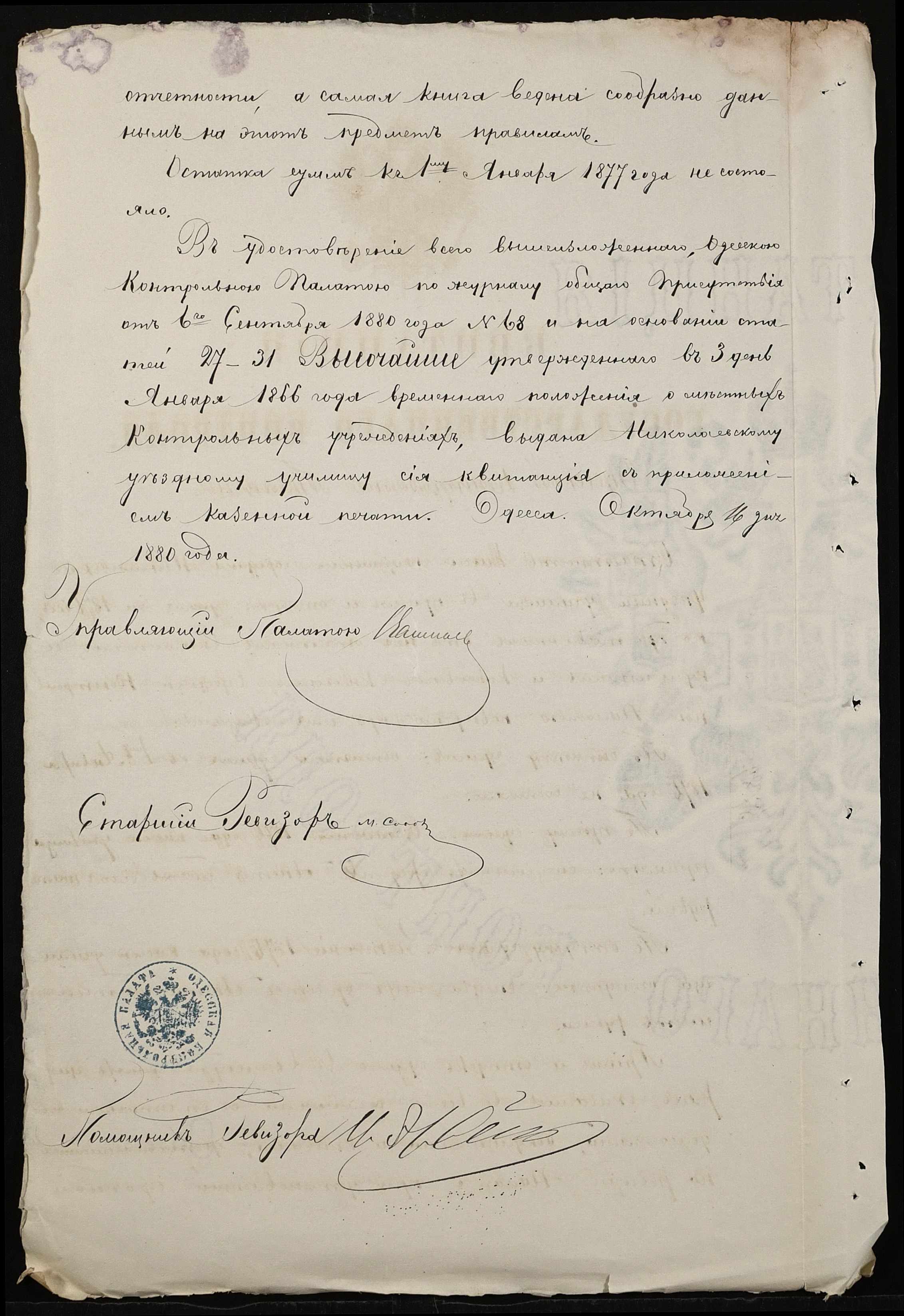 • • • • Справа № 137 “Листування з фінансових питань; квитанції державного контролю Одеської контрольної палати; списки учнів та вчителів”