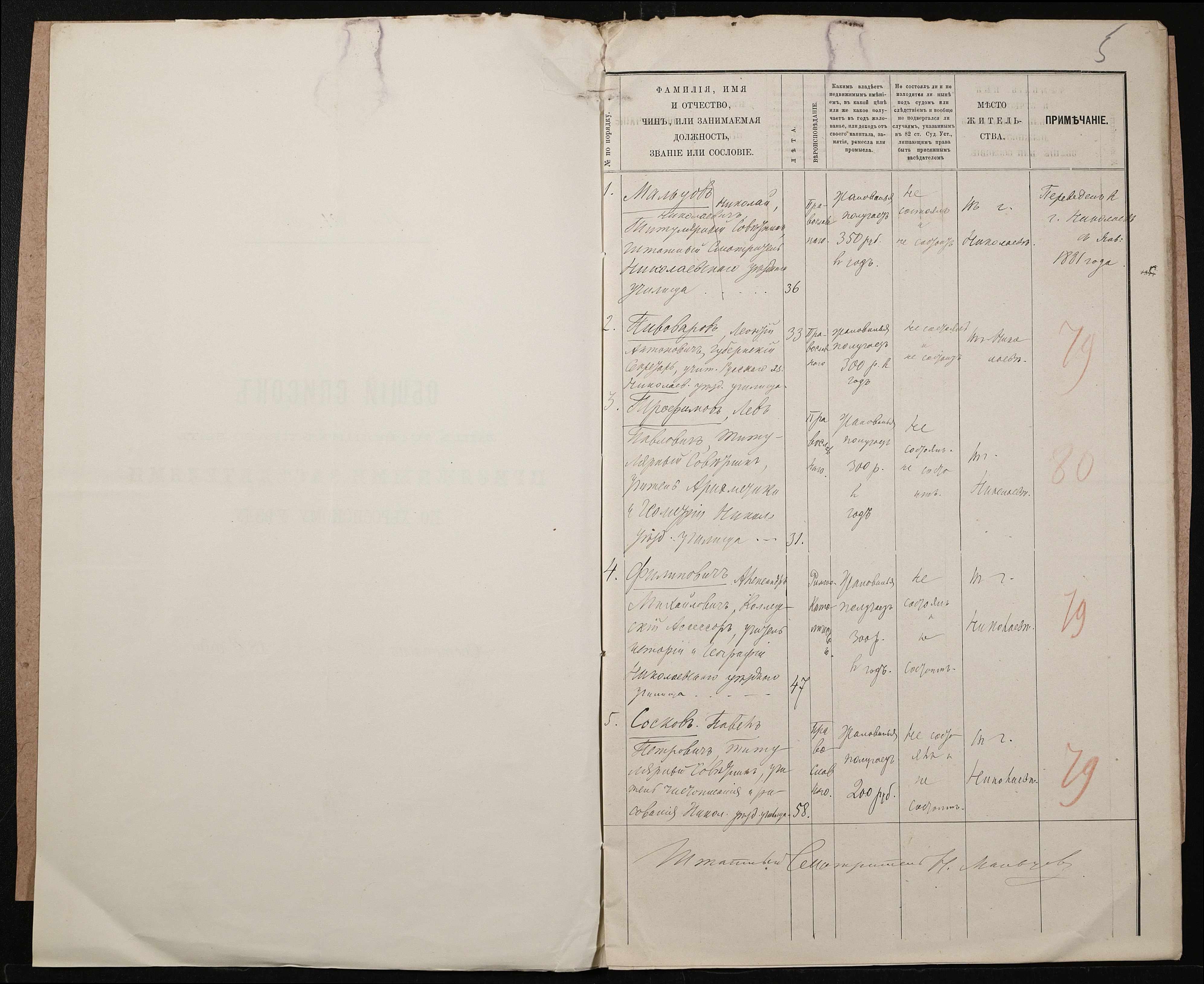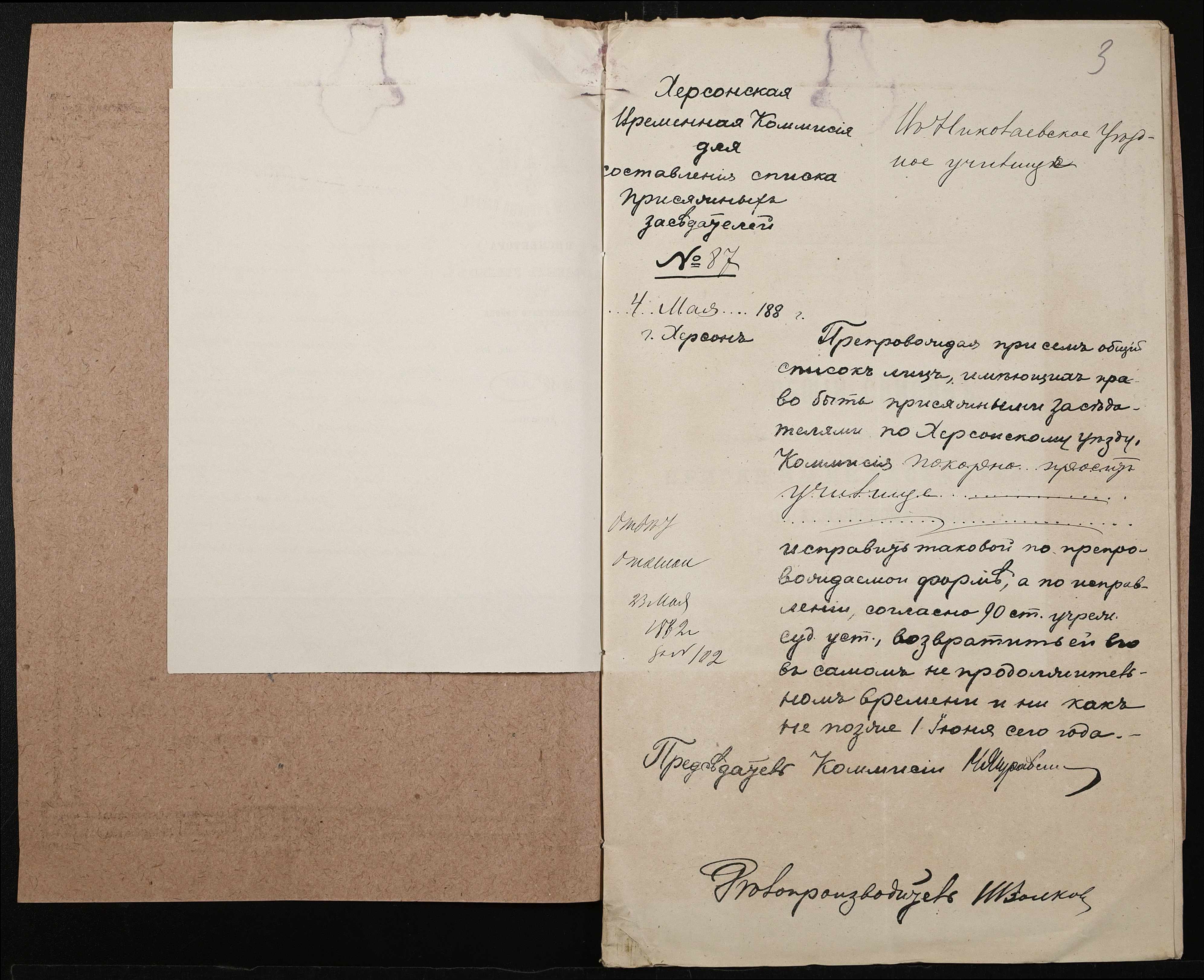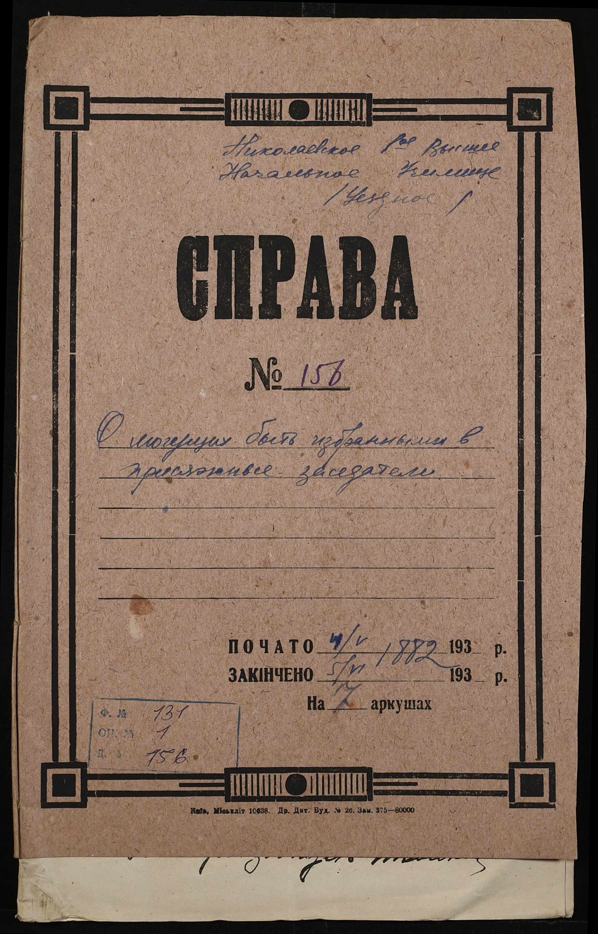 • • • • Справа № 156 “Листування про внесення чиновників повітового училища в загальні списки осіб, які мають право бути присяжними засідателями”
