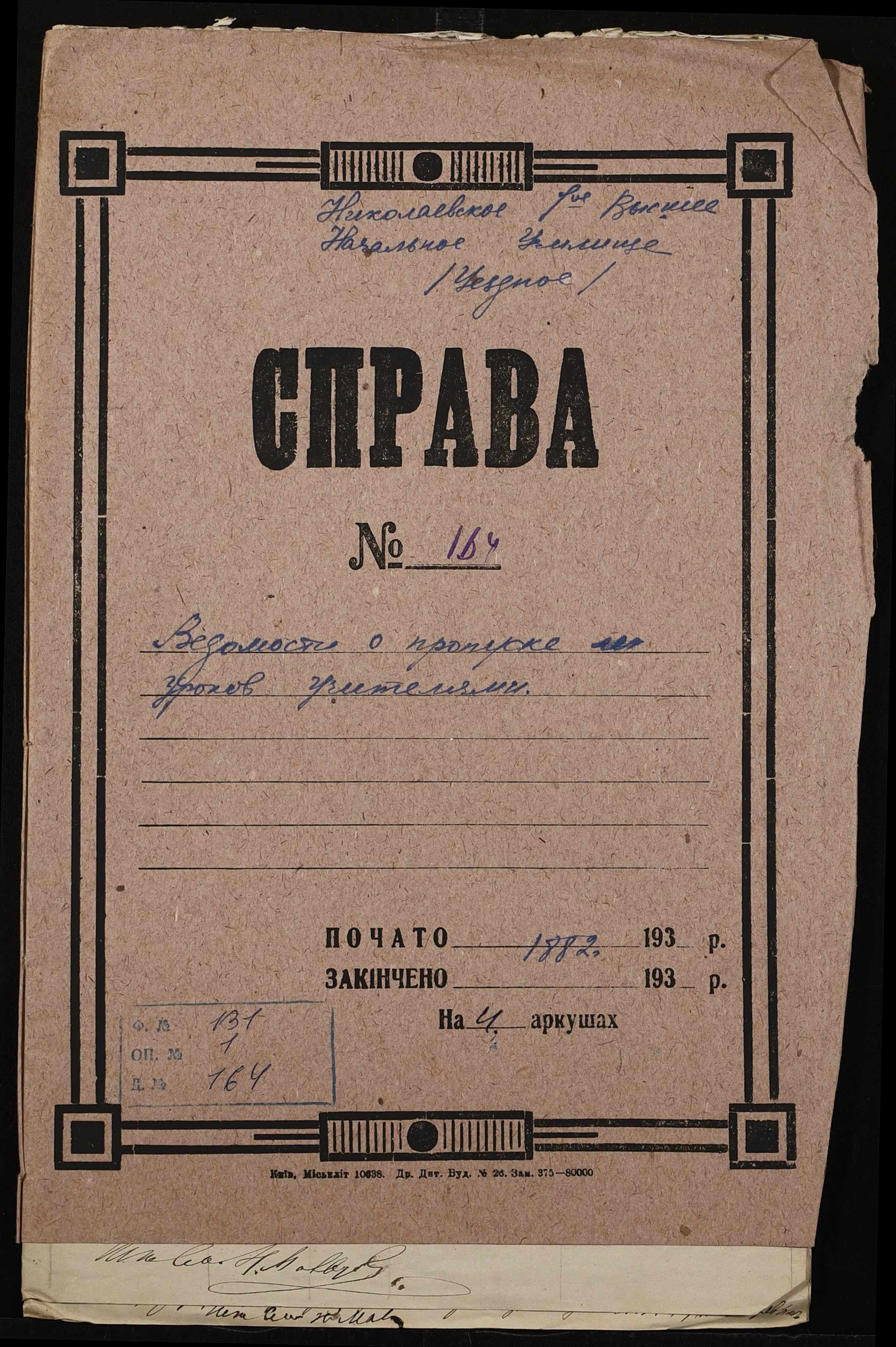 • • • • Справа № 164 “Відомості обліку уроків, на яких були відсутні викладачі”