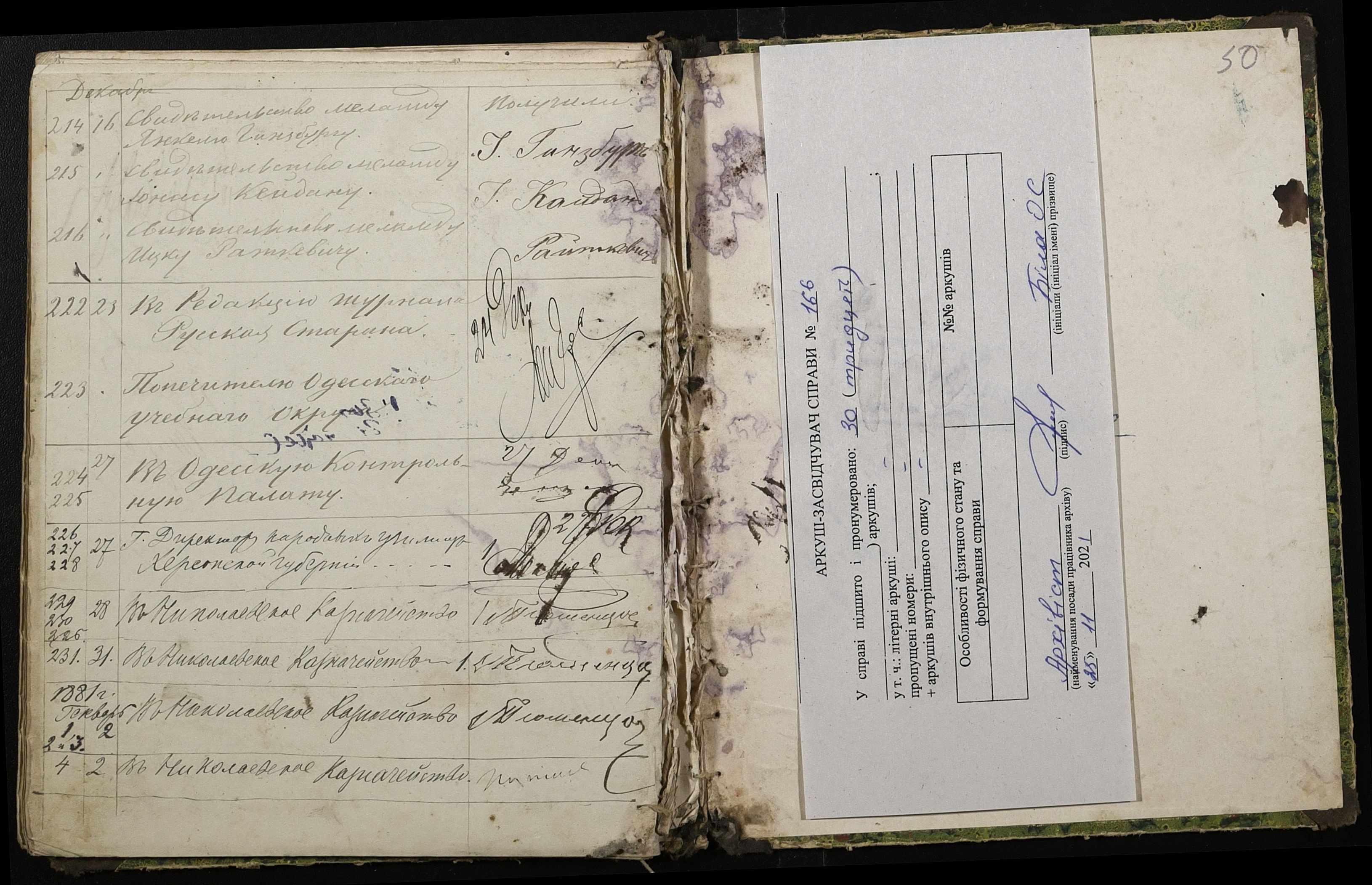 ◦ ◦ ◦ Опис № 1 справ постійного зберігання за 1847-1852, 1858, 1868-1869, 1871-1919, 1922 роки