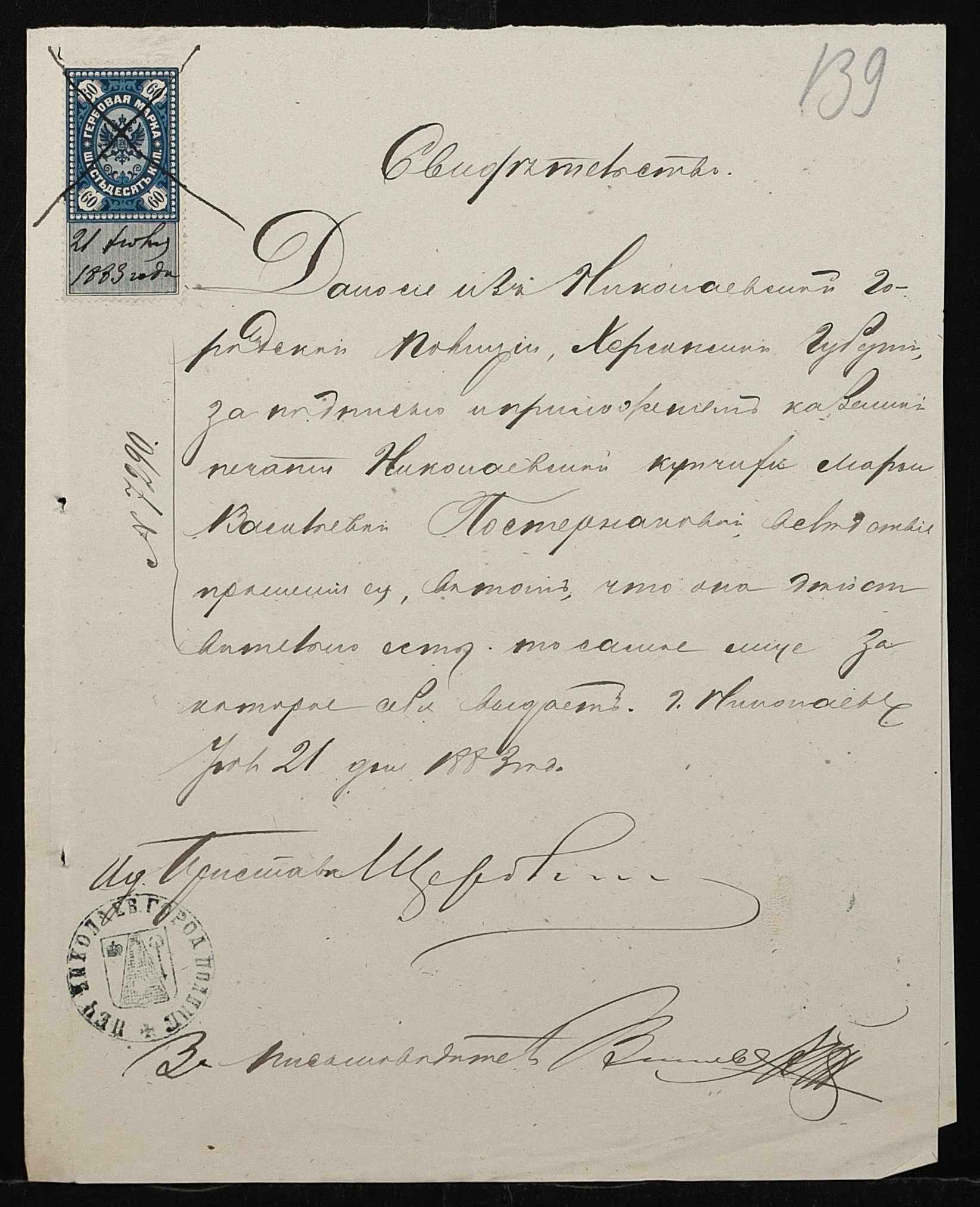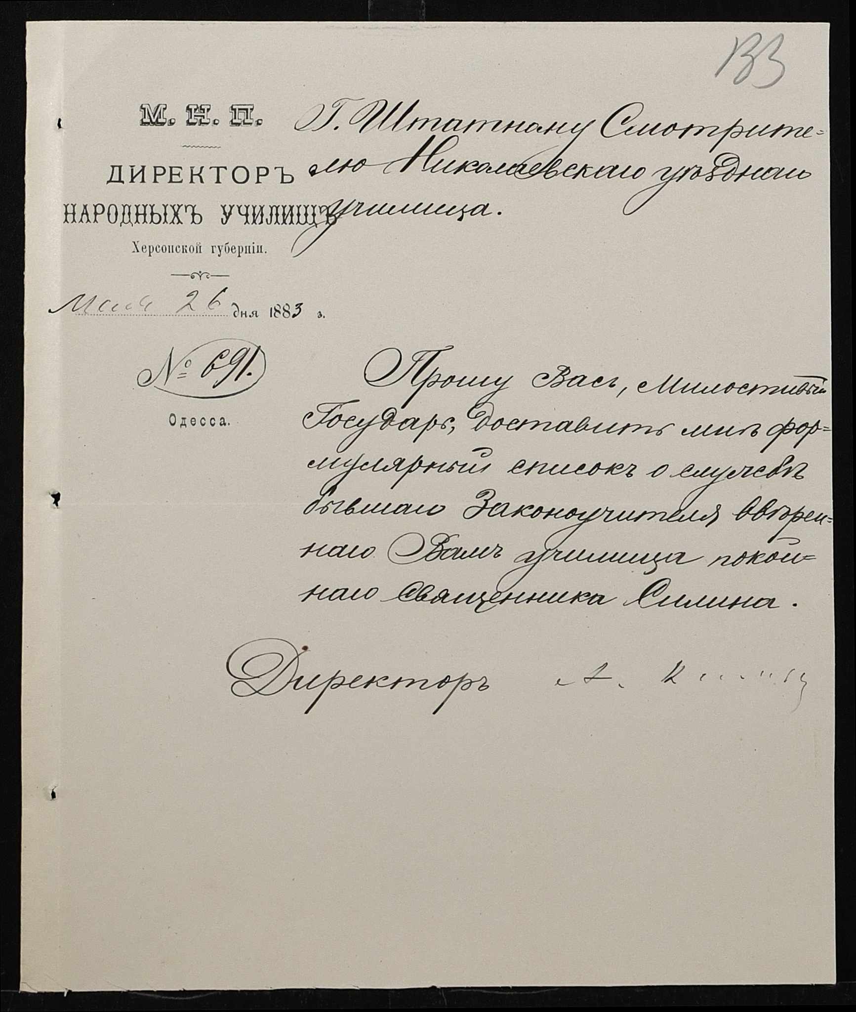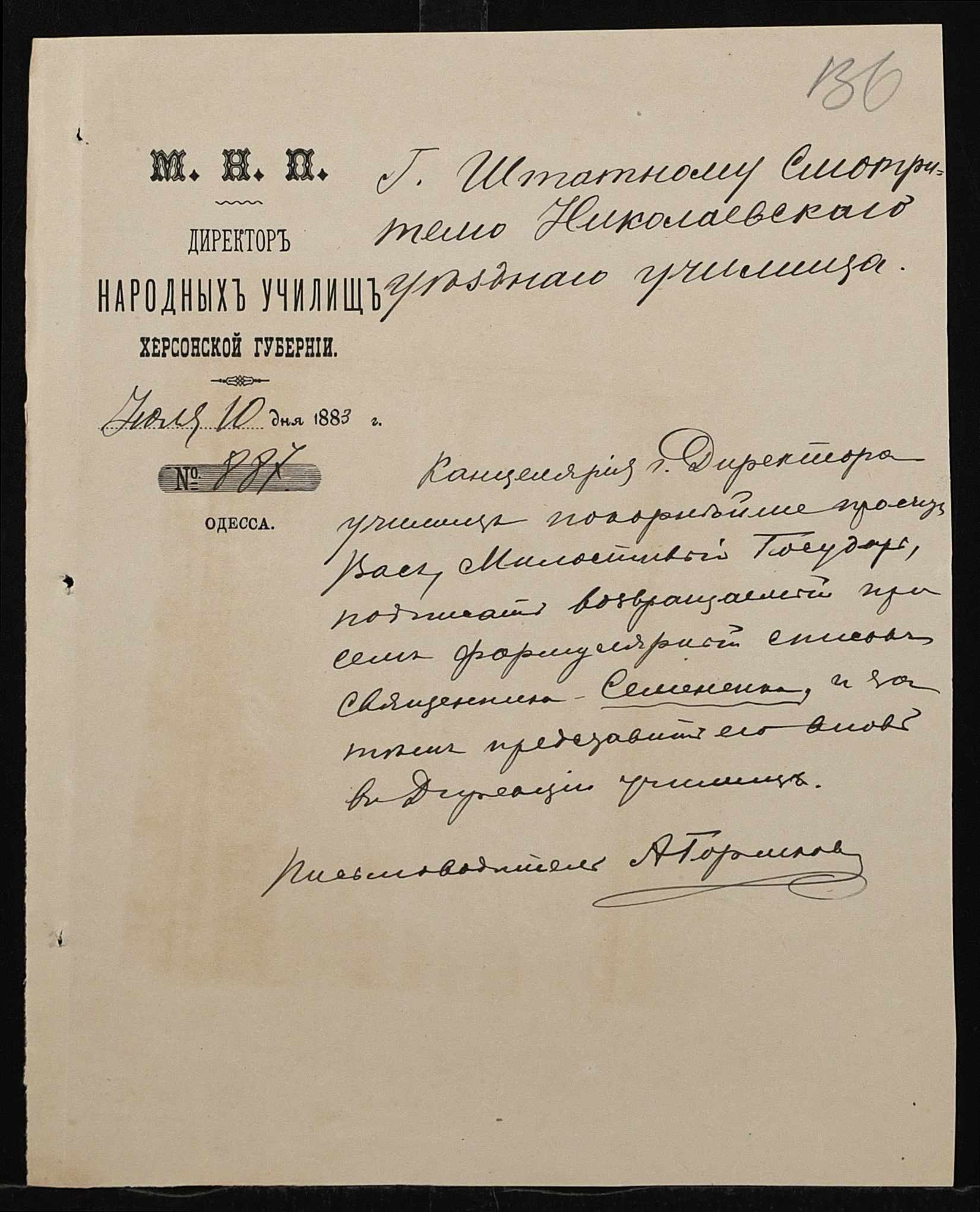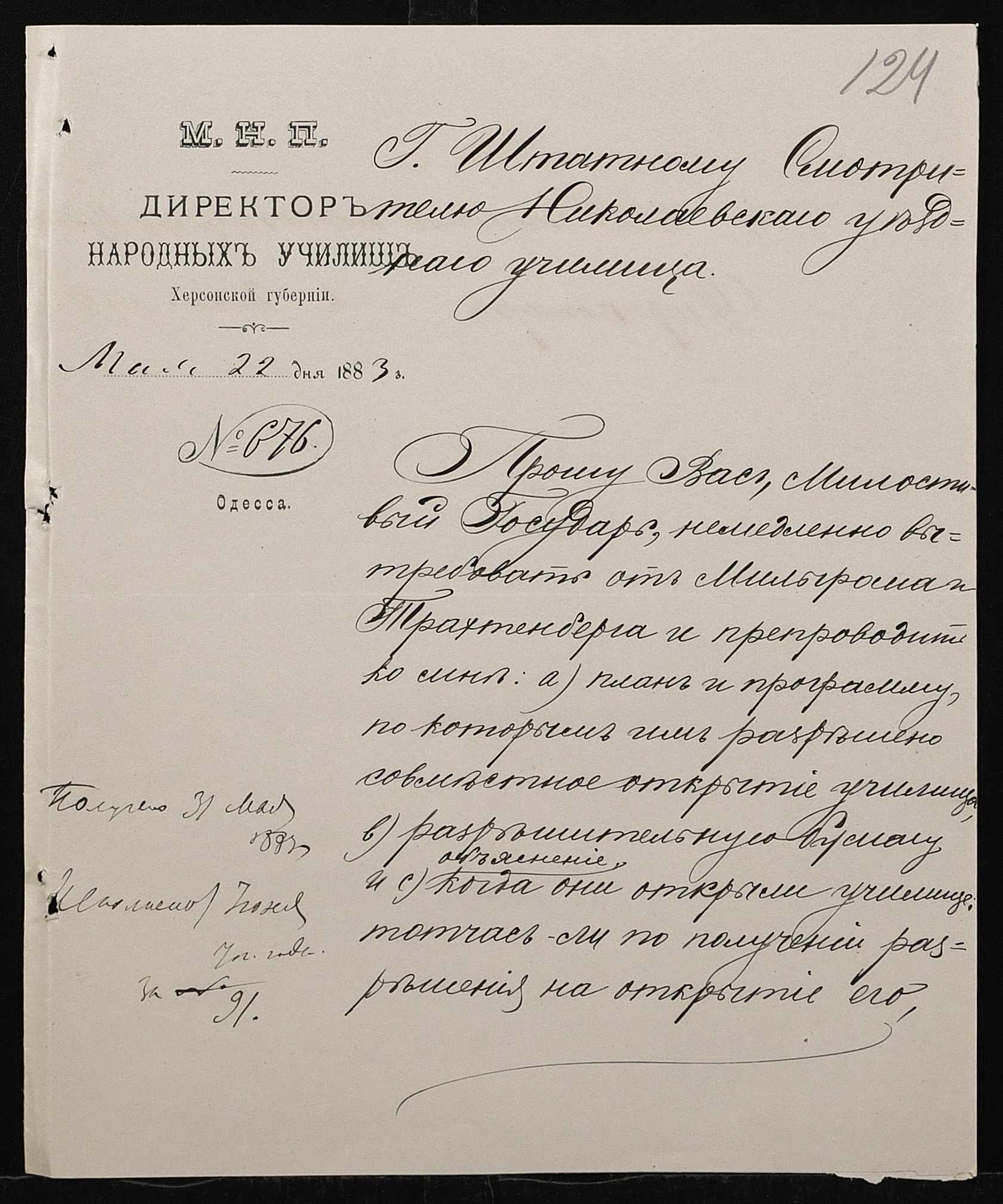 • • • • Справа № 167 “Програма святкування в Миколаєві коронування імператора. Списки, свідоцтва про народження учнів. Протоколи засідань педагогічної ради училища. Листування з фінансових питань”