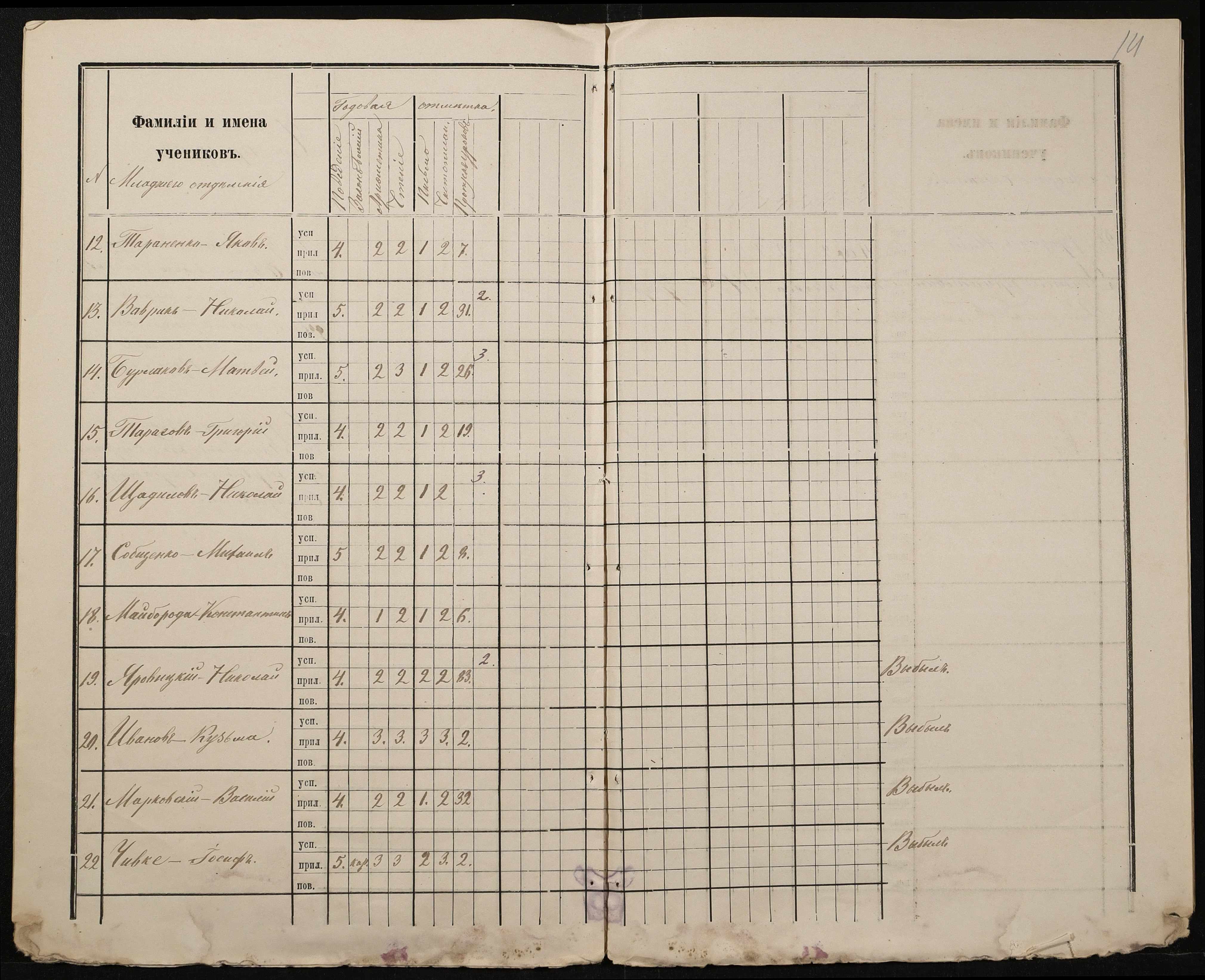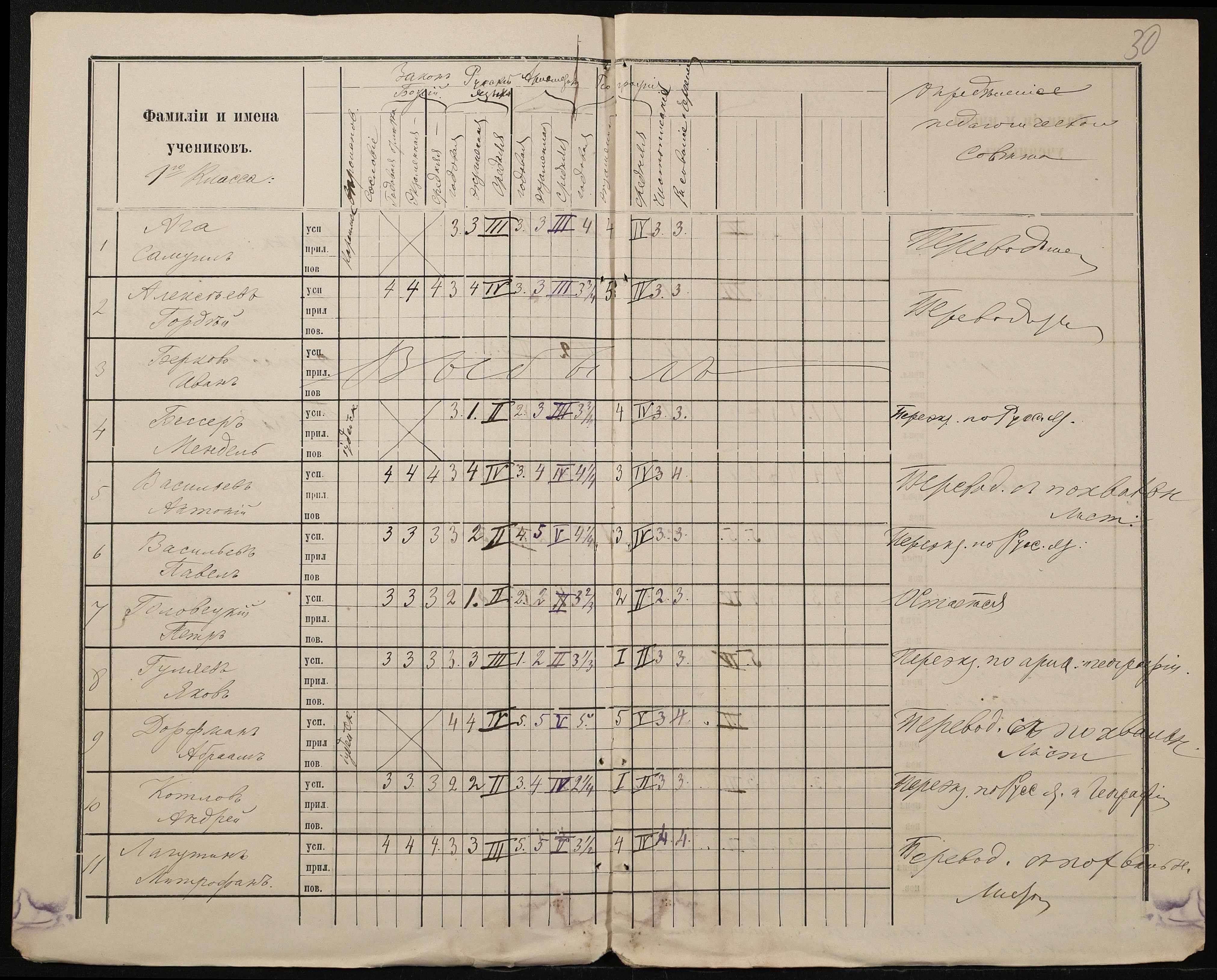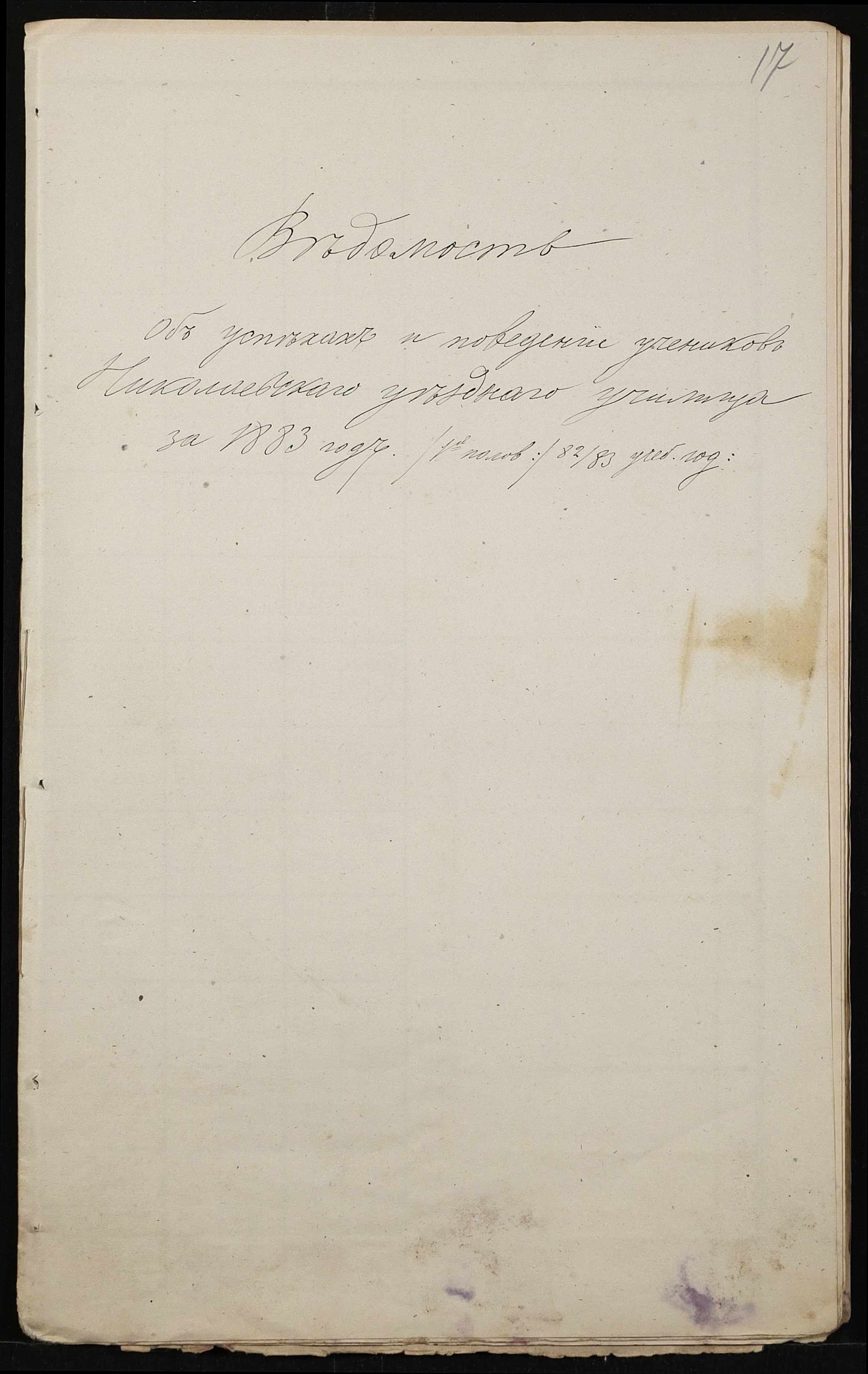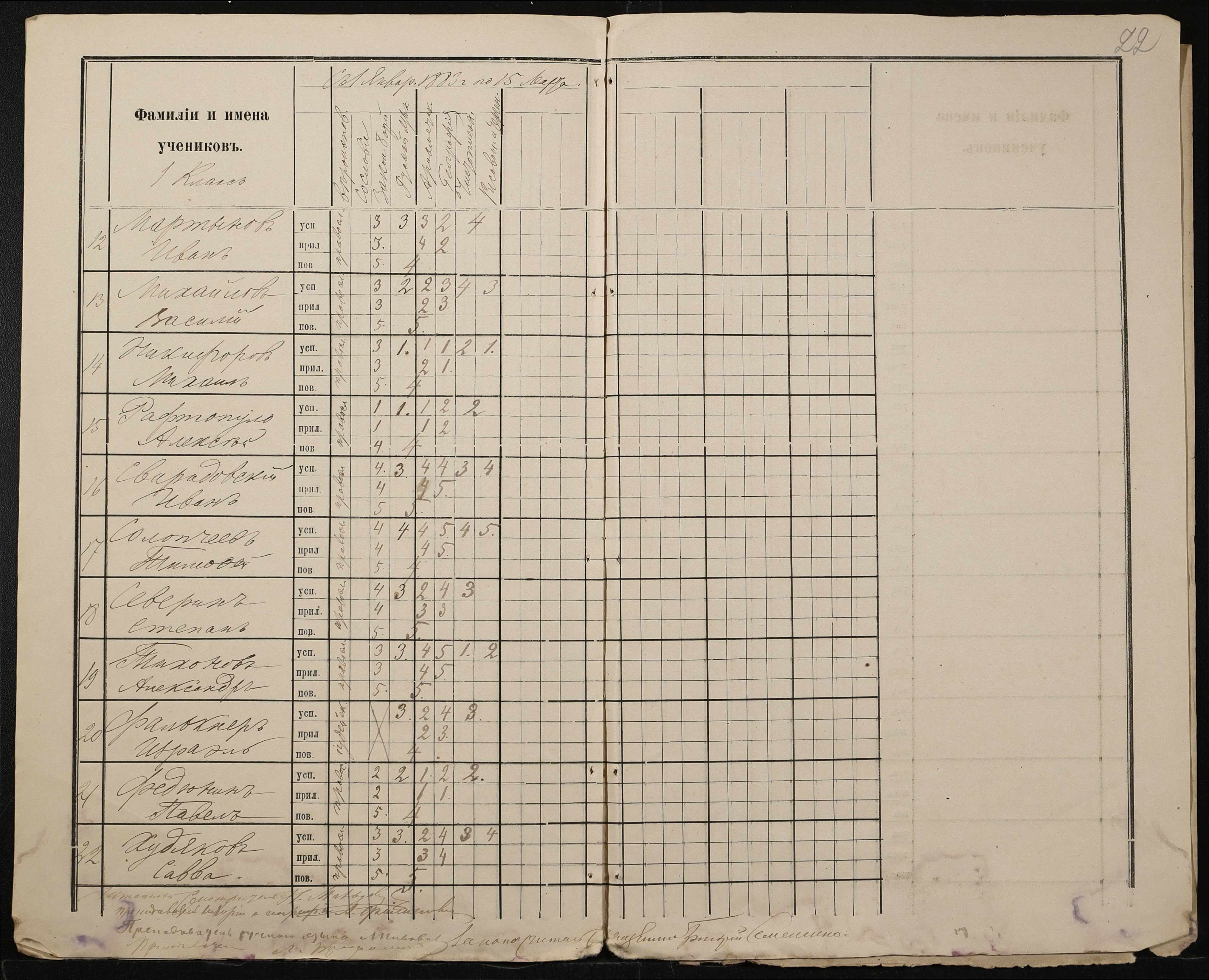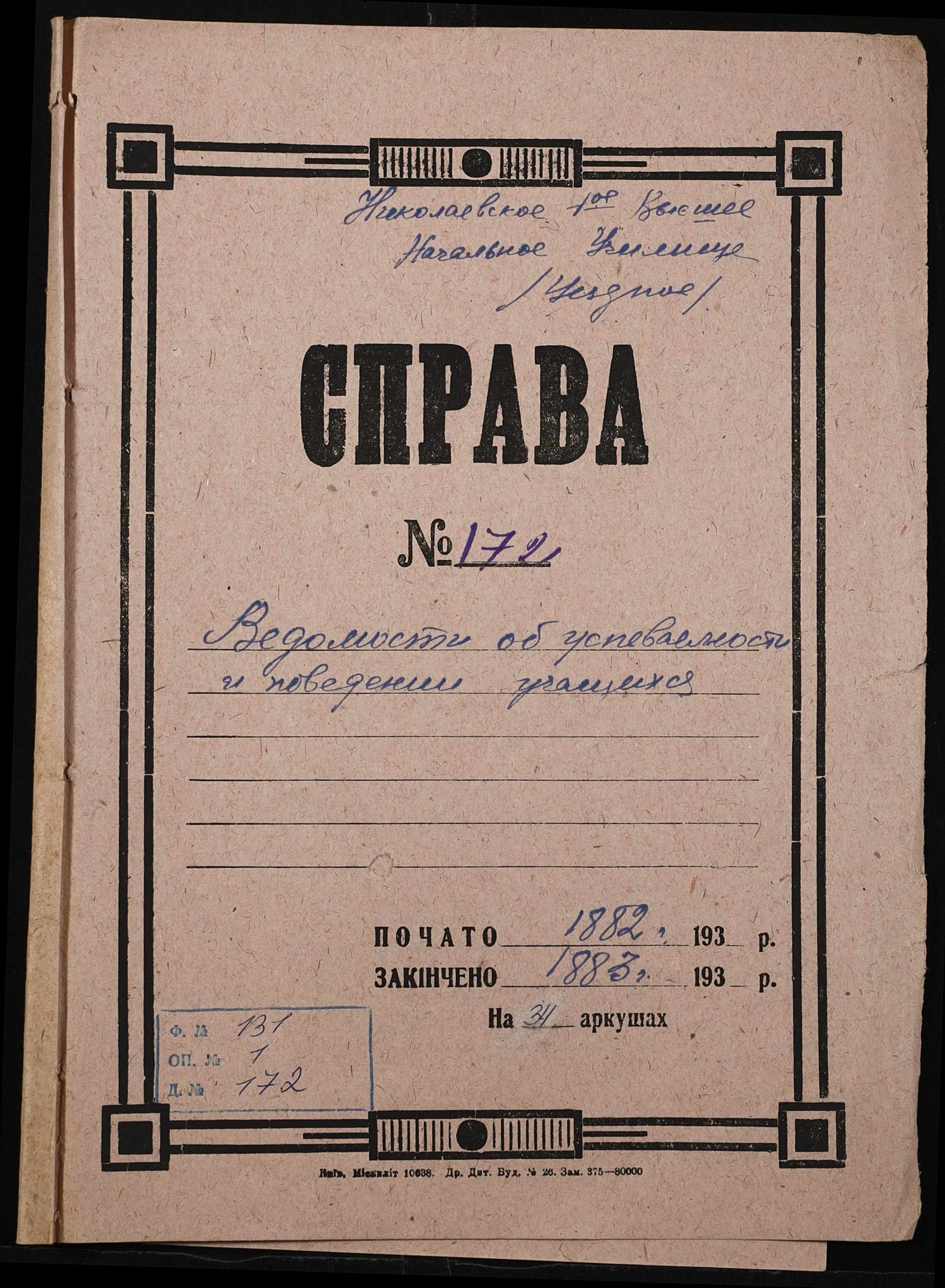 • • • • Справа № 172 “Журнал успішності, поведінки і старанності учнів училища за 1882-1883 навчальні роки”