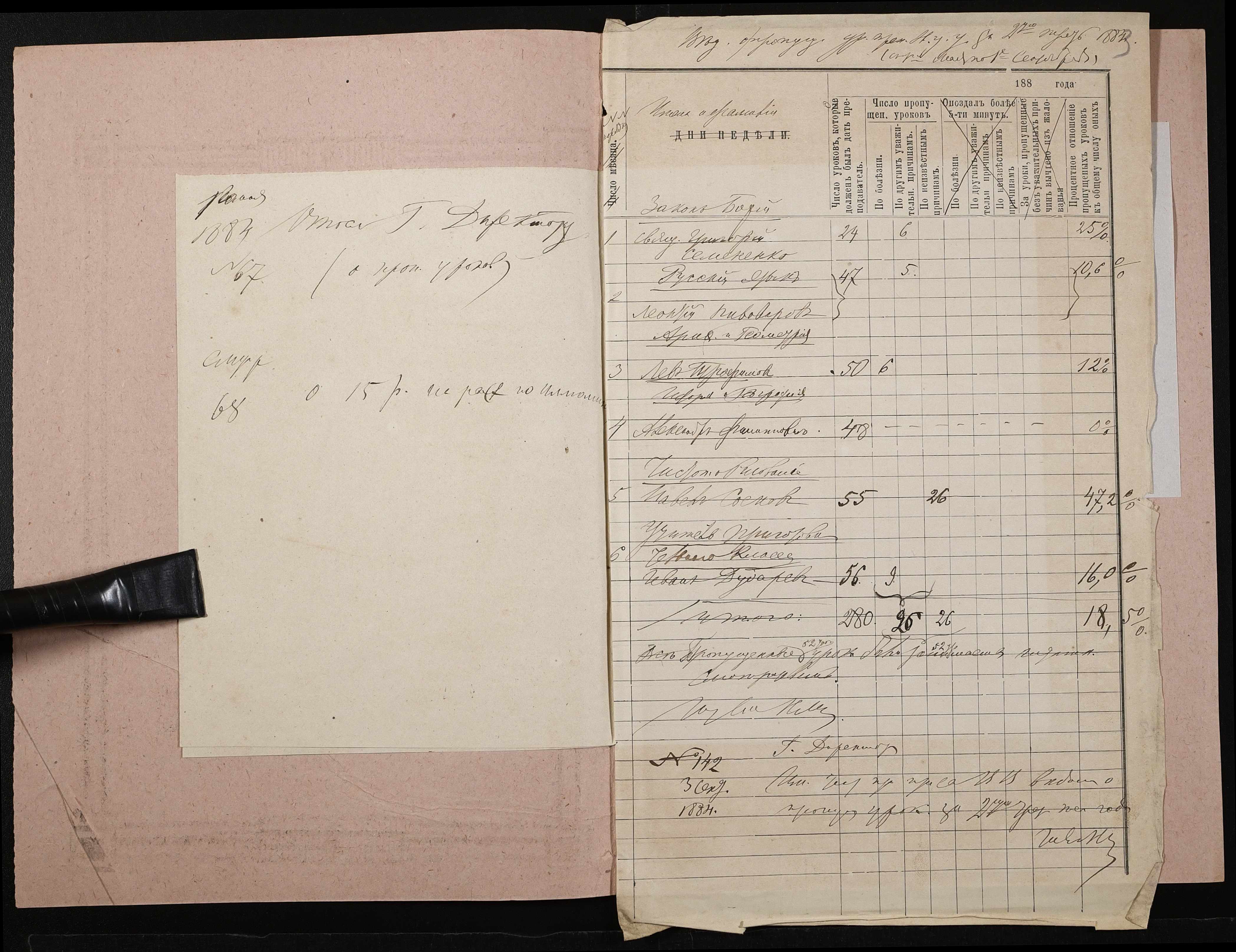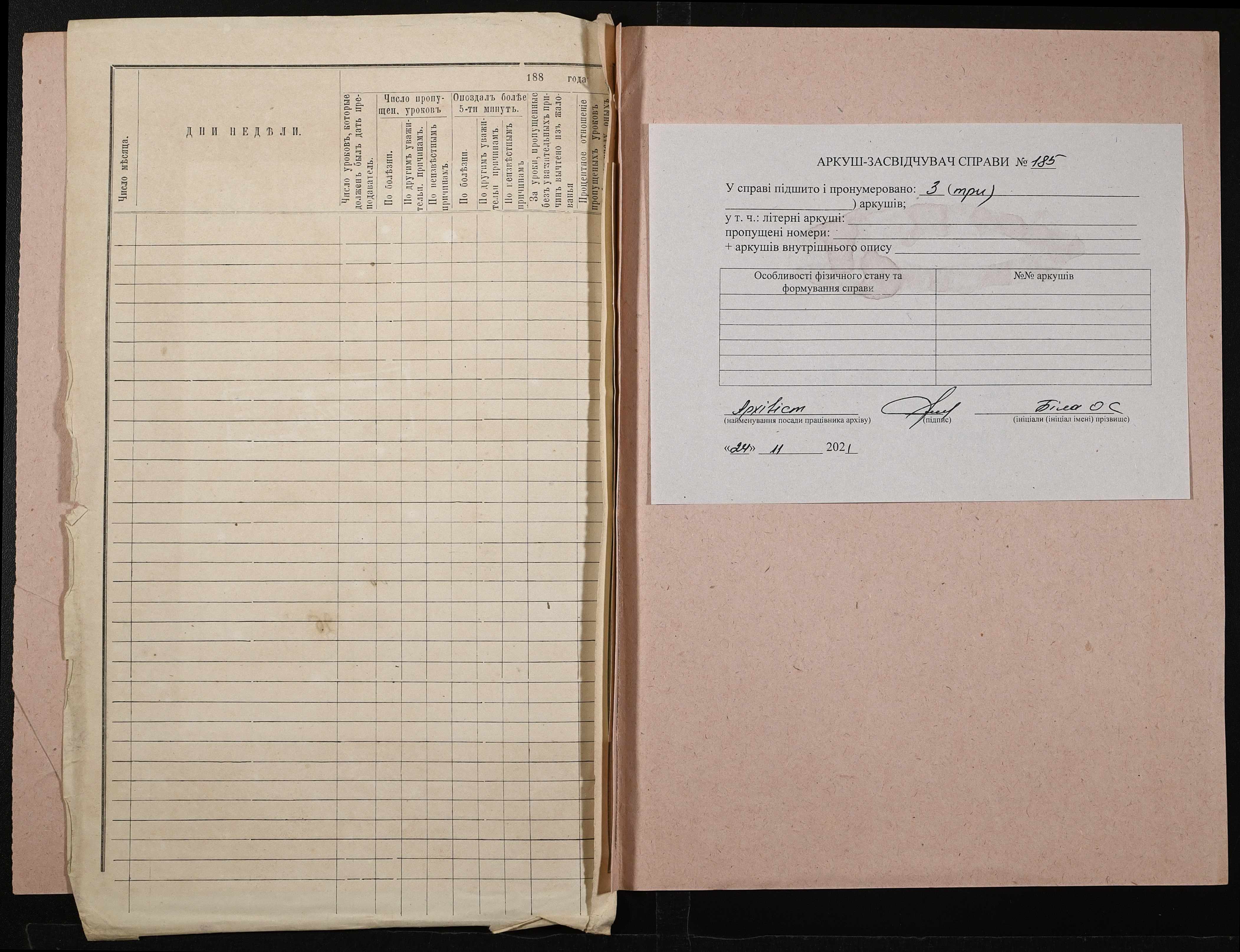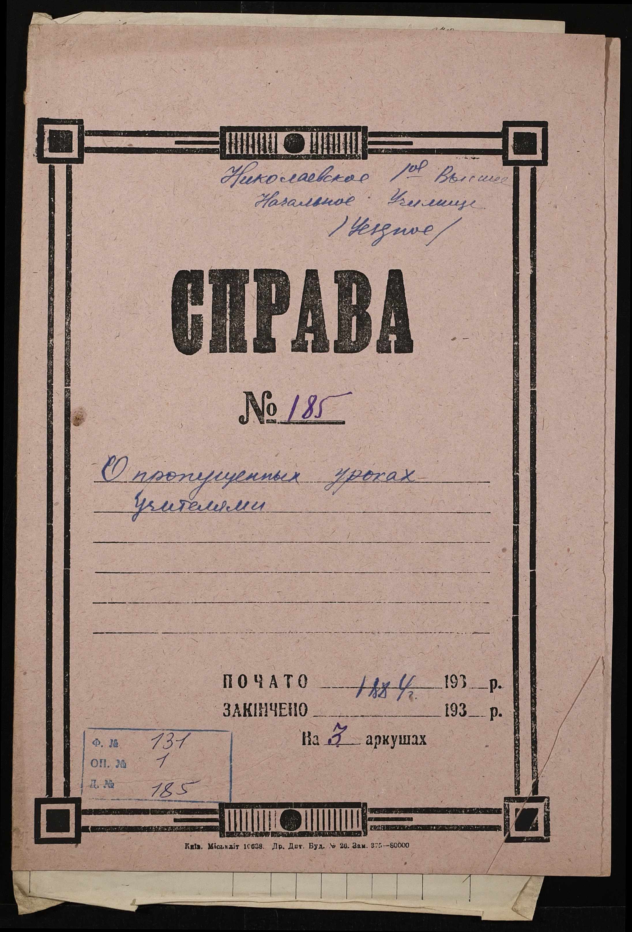 • • • • Справа № 185 “Відомість обліку уроків, на яких були відсутні викладачі”
