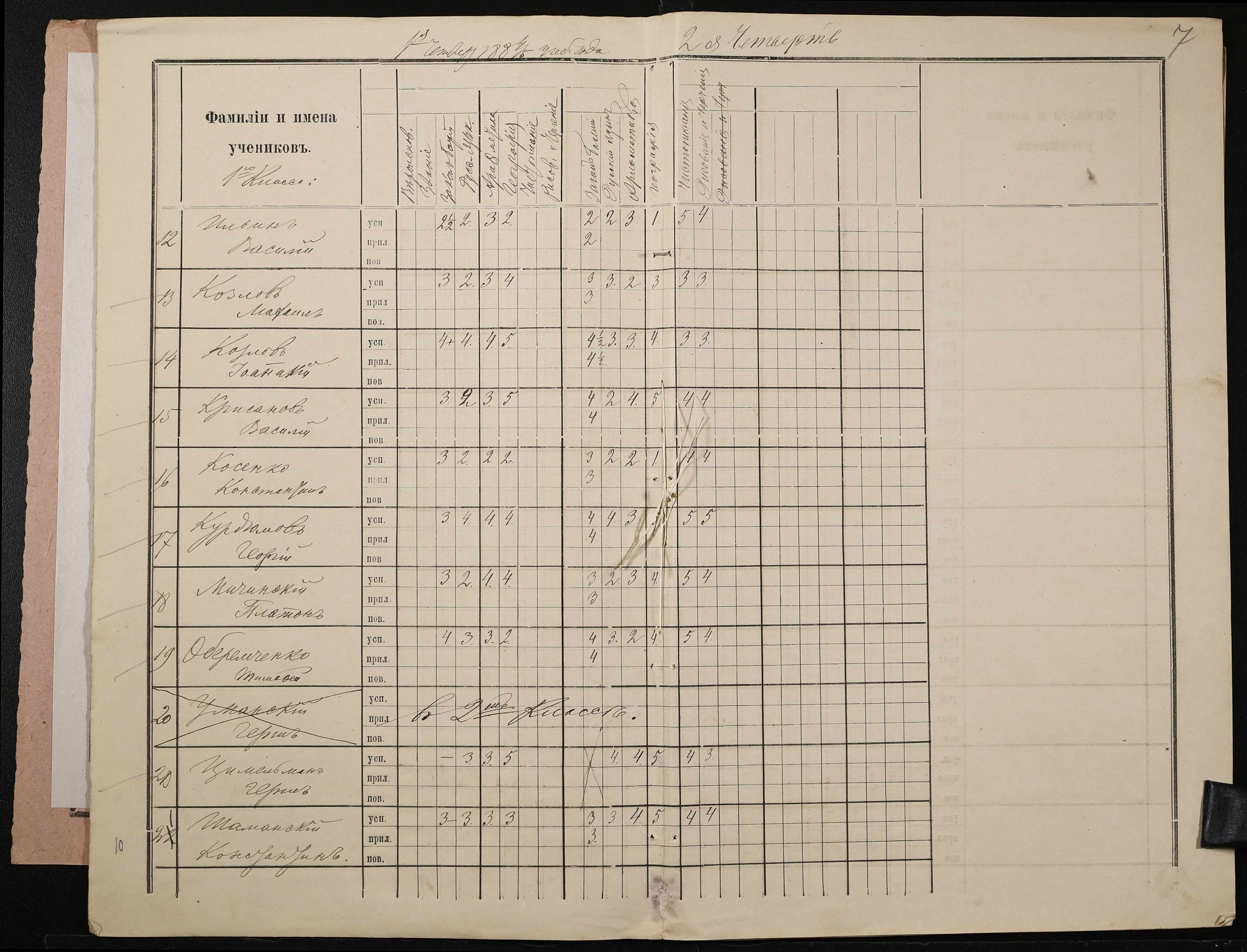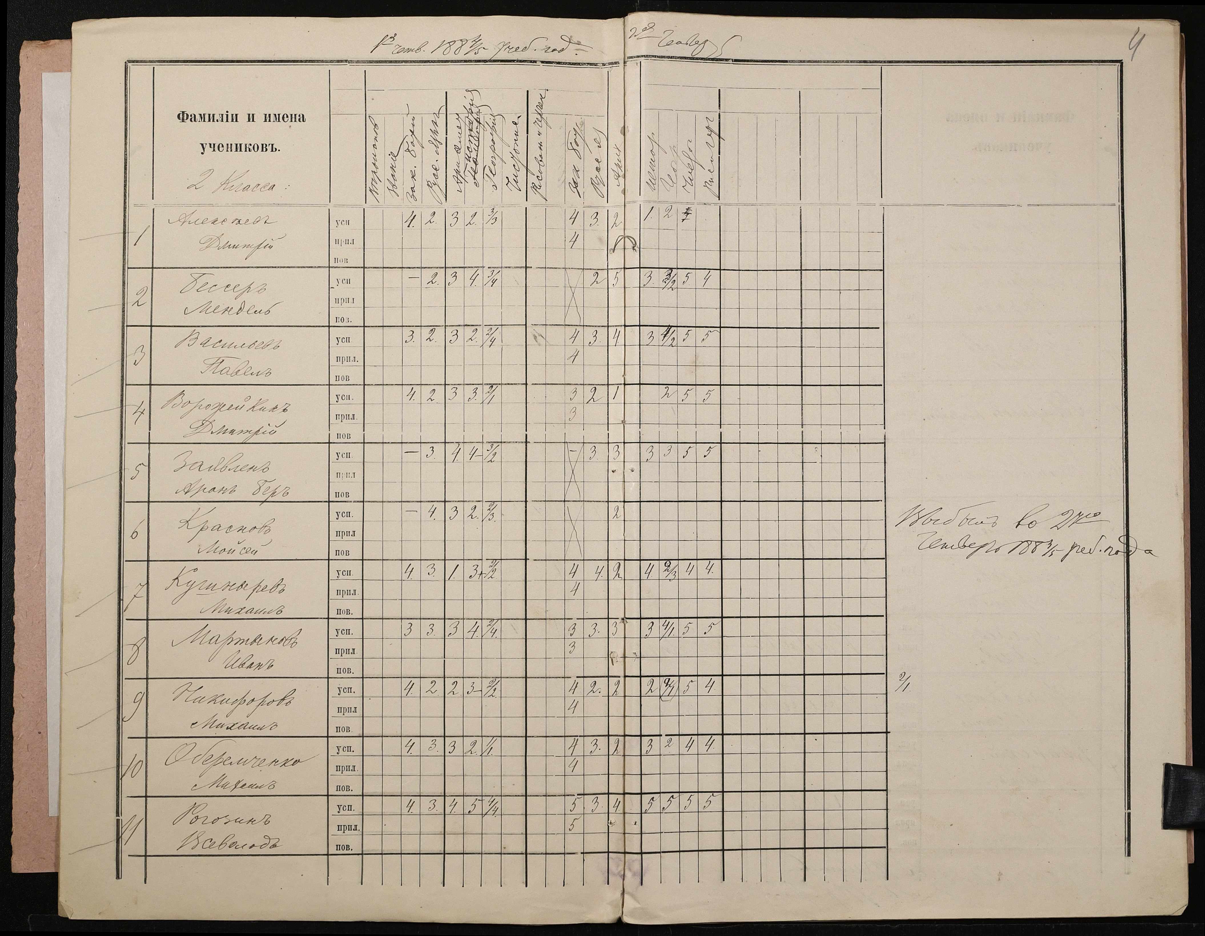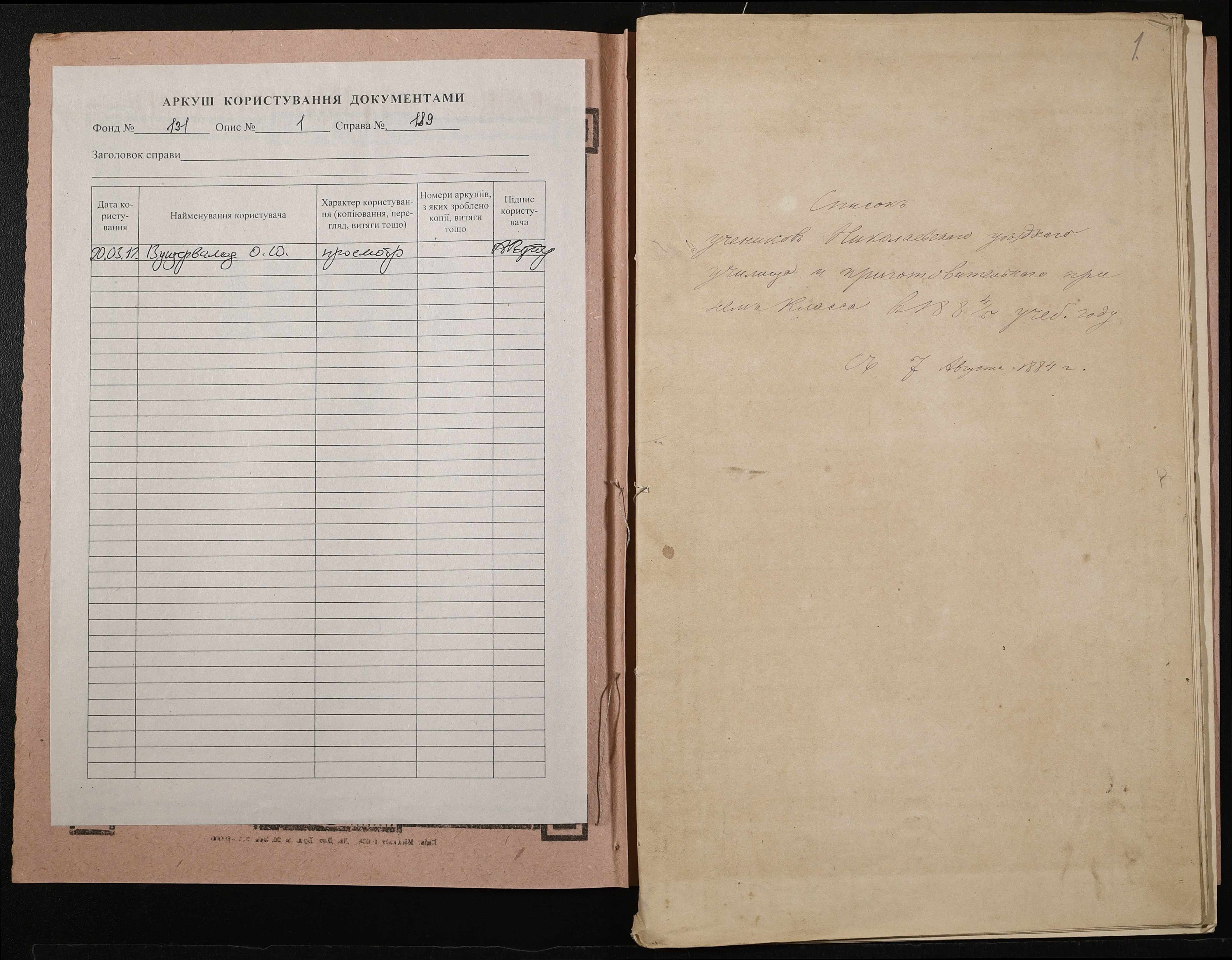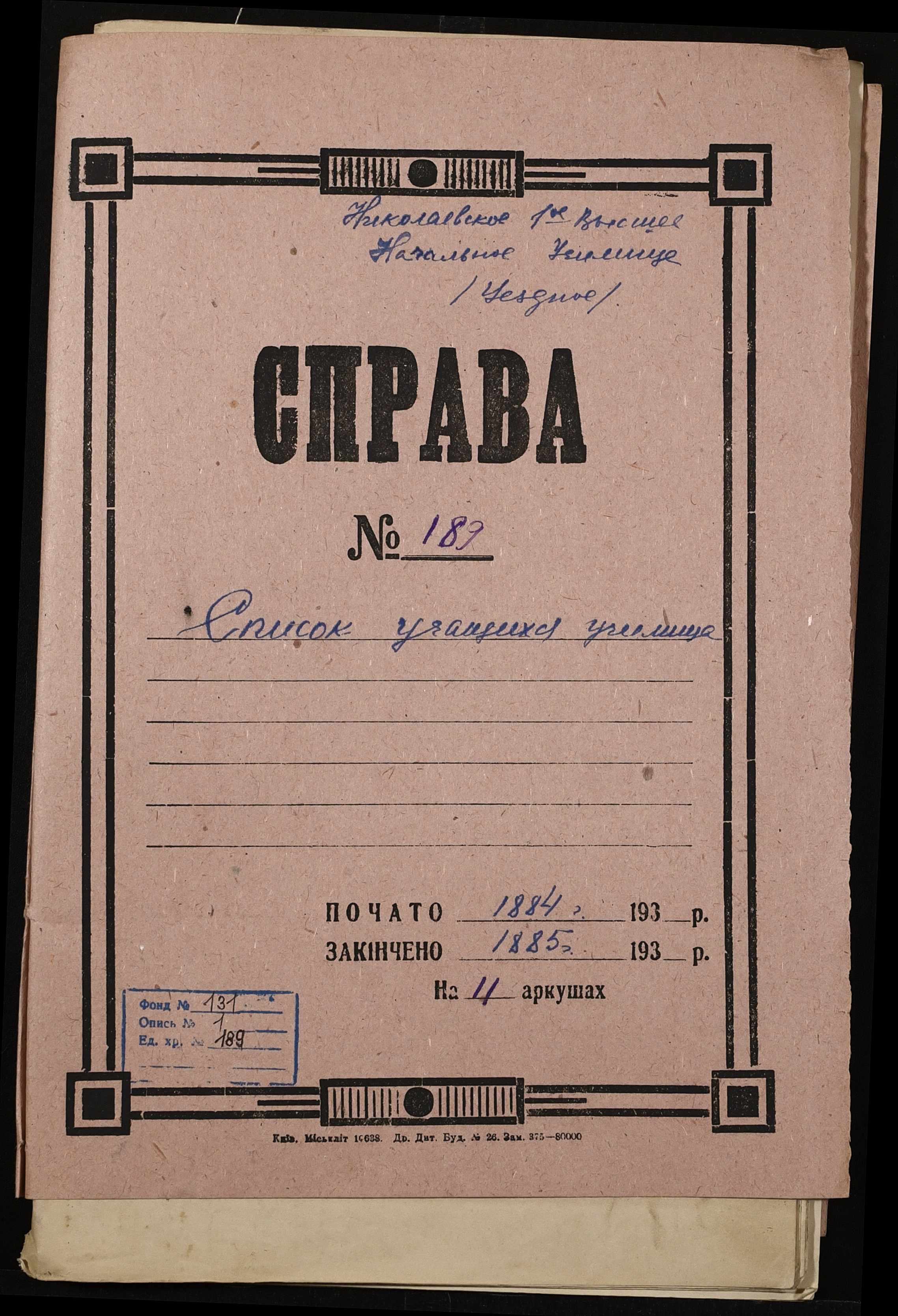 • • • • Справа № 189 “Списки учнів за 1884-1885 навчальний рік”