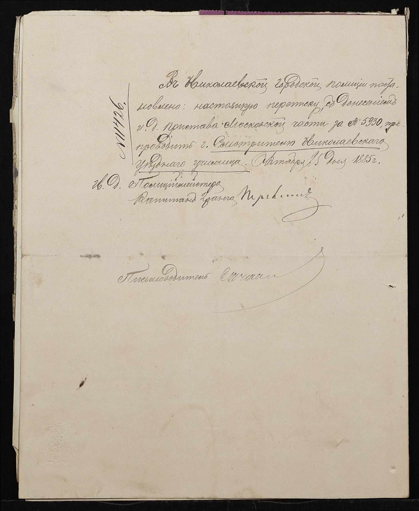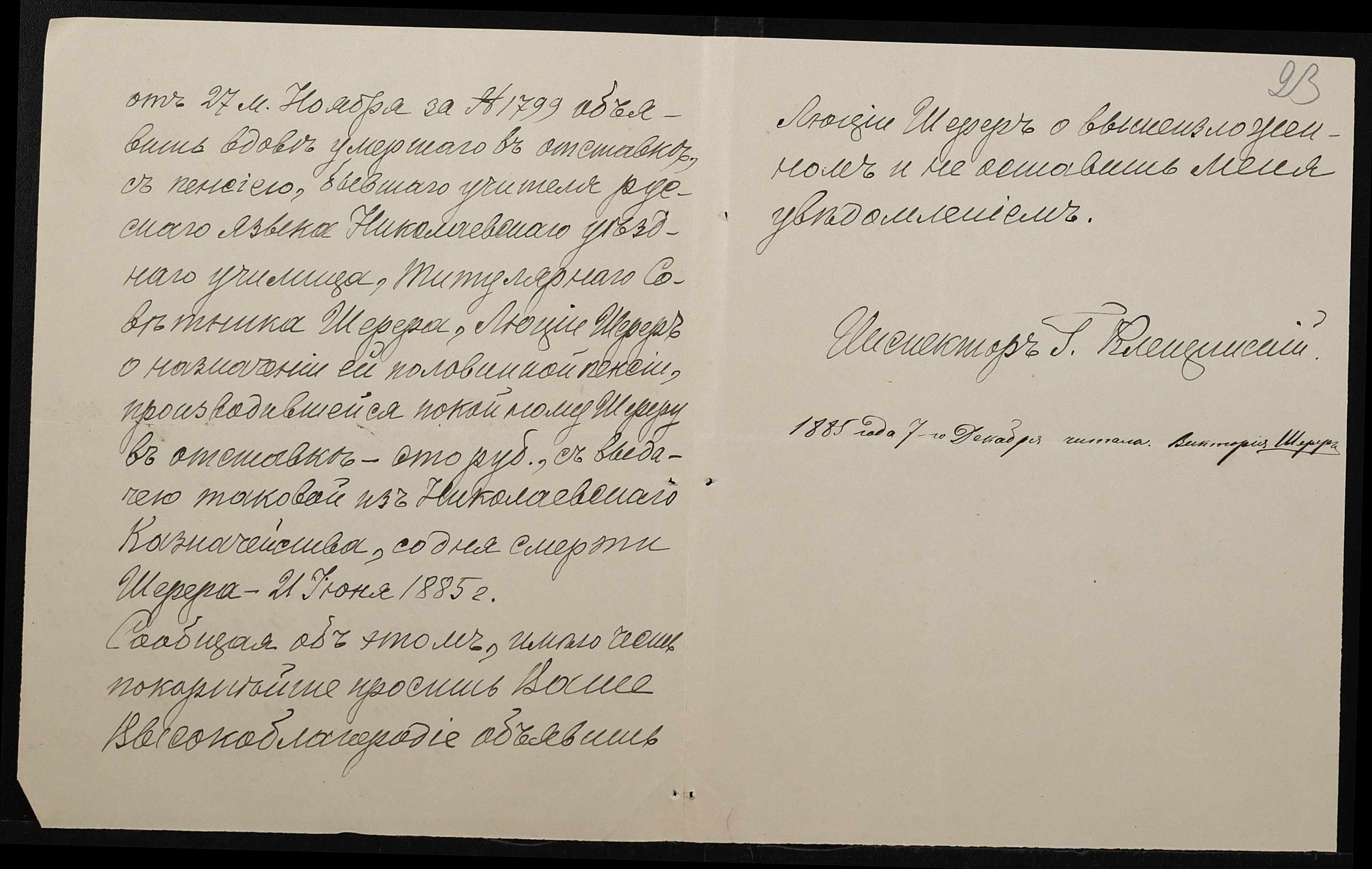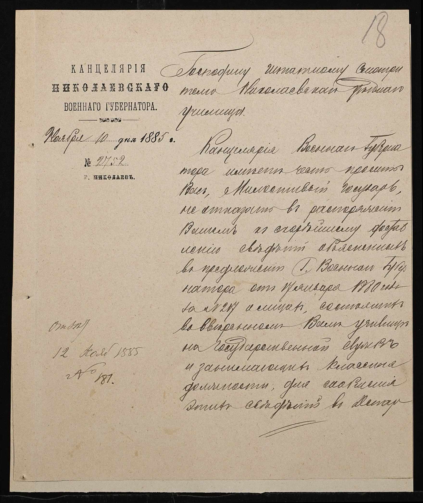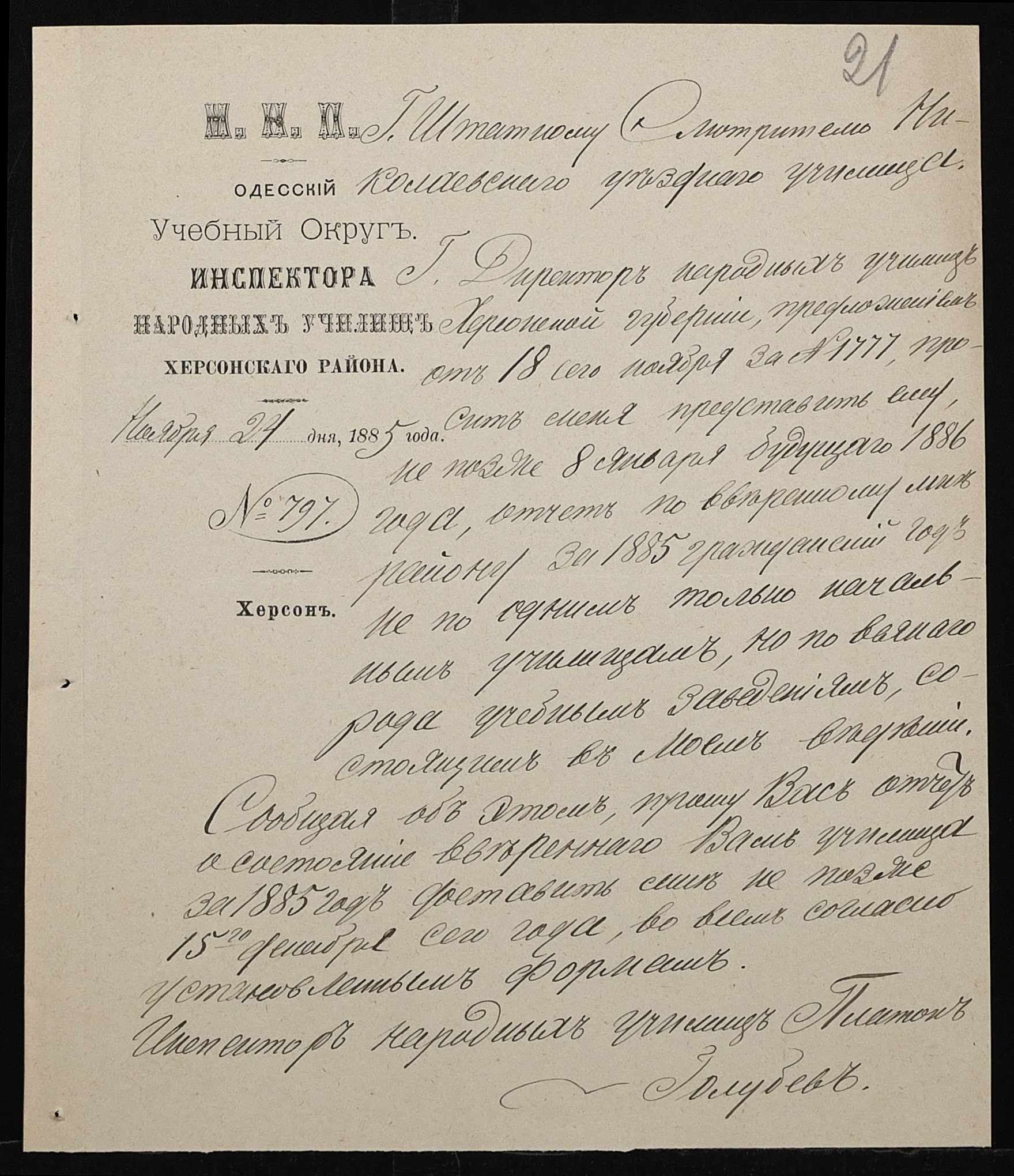 • • • • Справа № 192 “Листування з директором народних училищ Херсонської губернії про проходження служби чиновниками училища”
