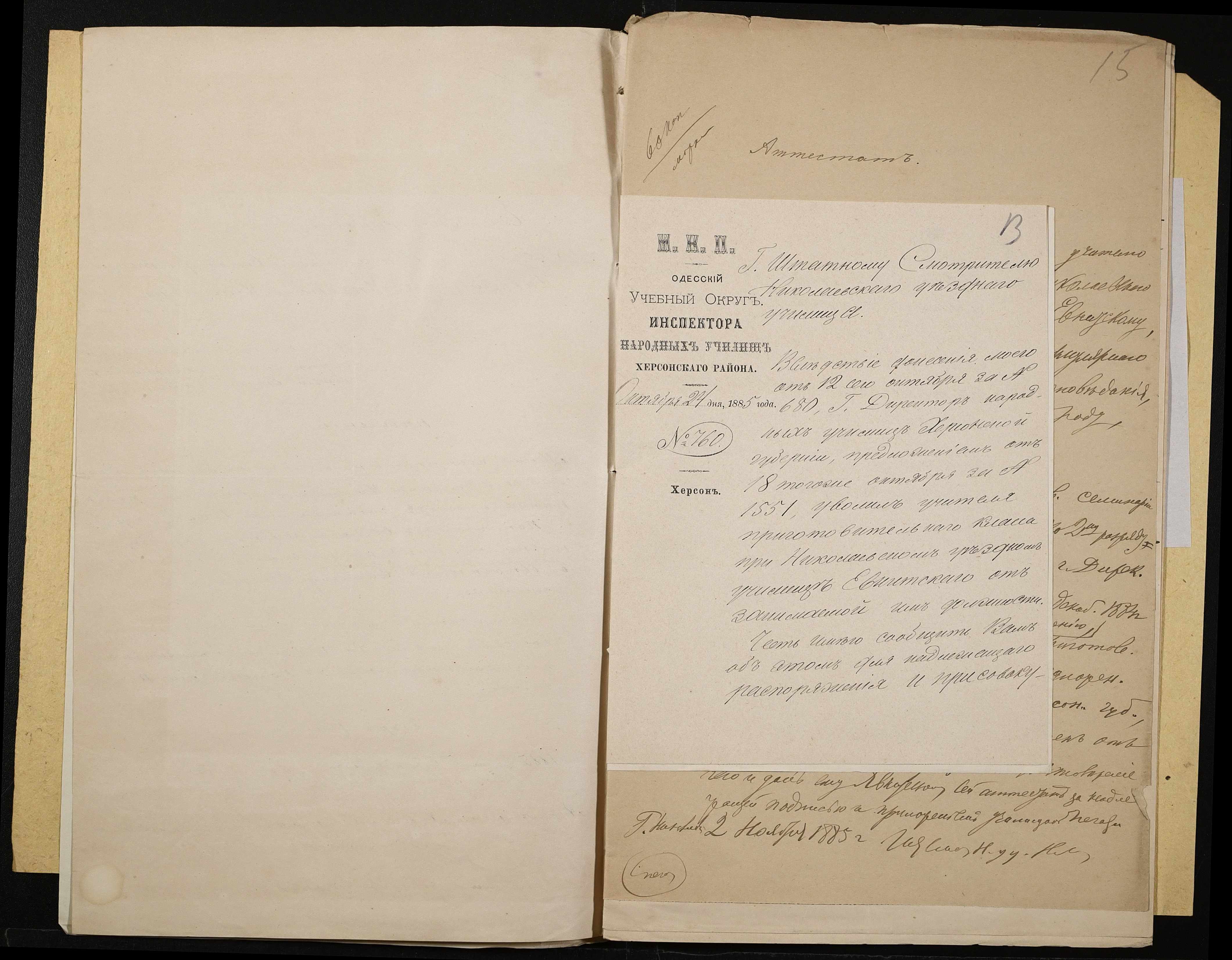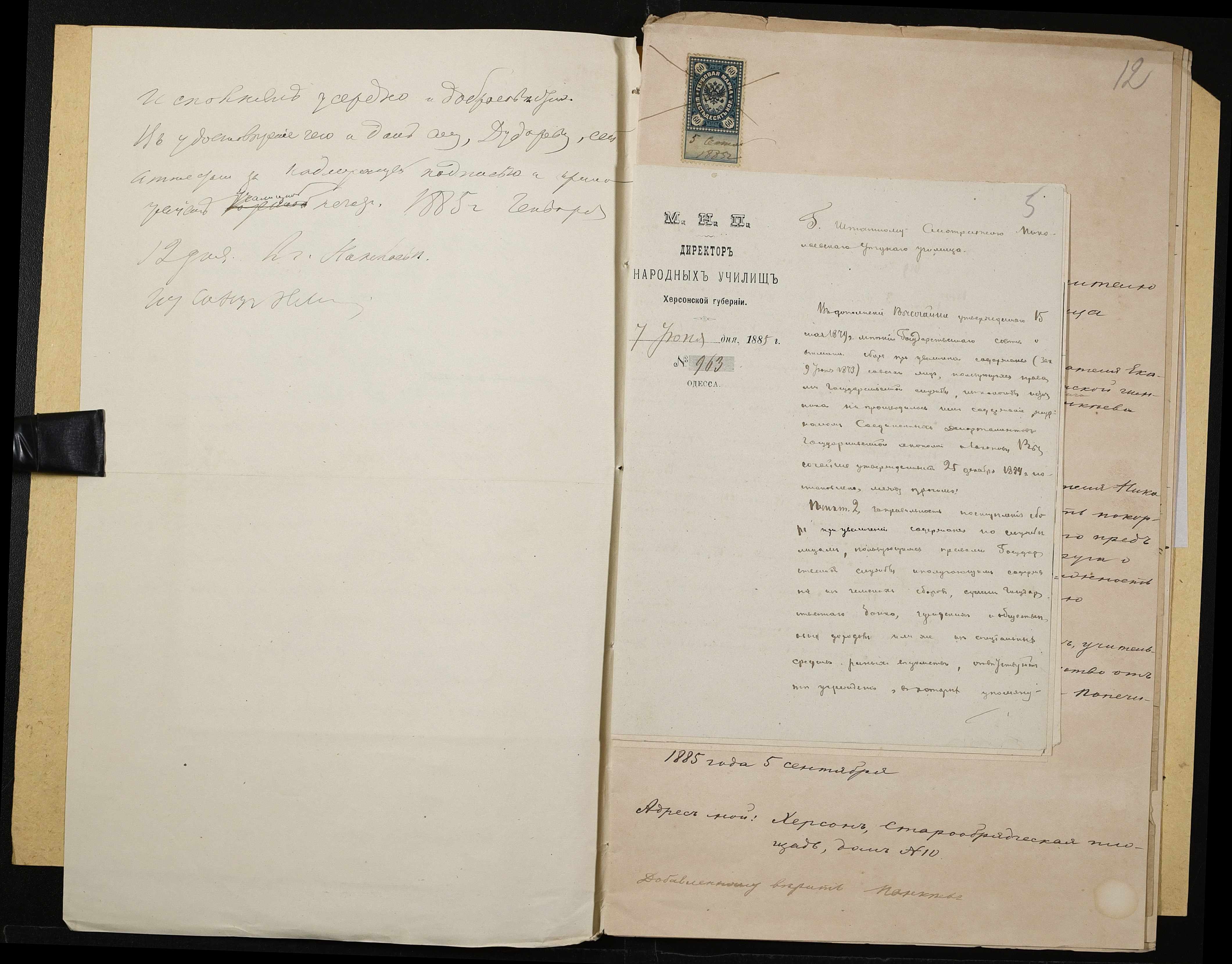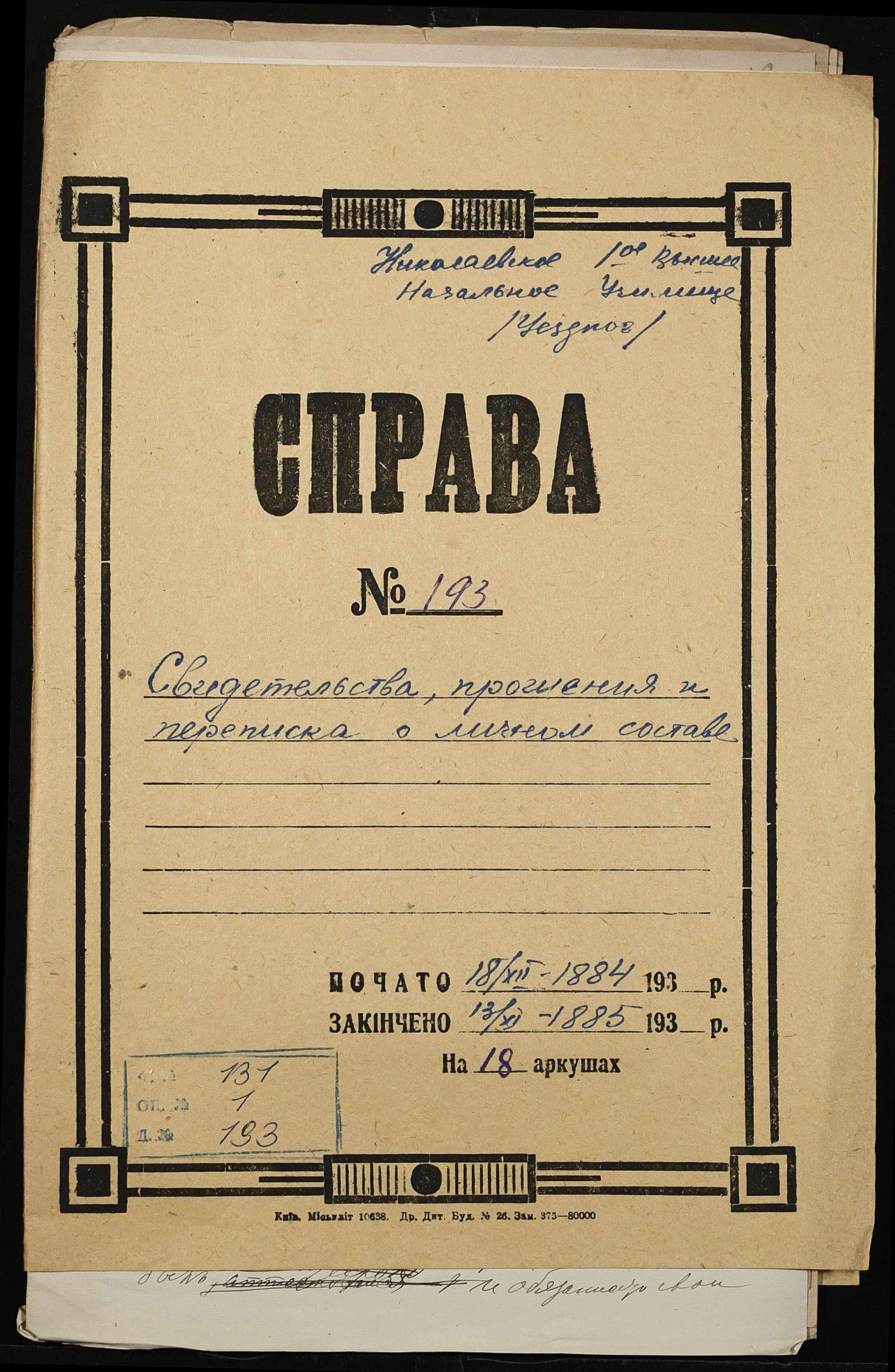 • • • • Справа № 193 “Листування з директором народних училищ Херсонської губернії про проходження служби чиновниками училища, свідоцтво про звільнення вчителя А. Федорова (А. Федорова) від військової повинності”
