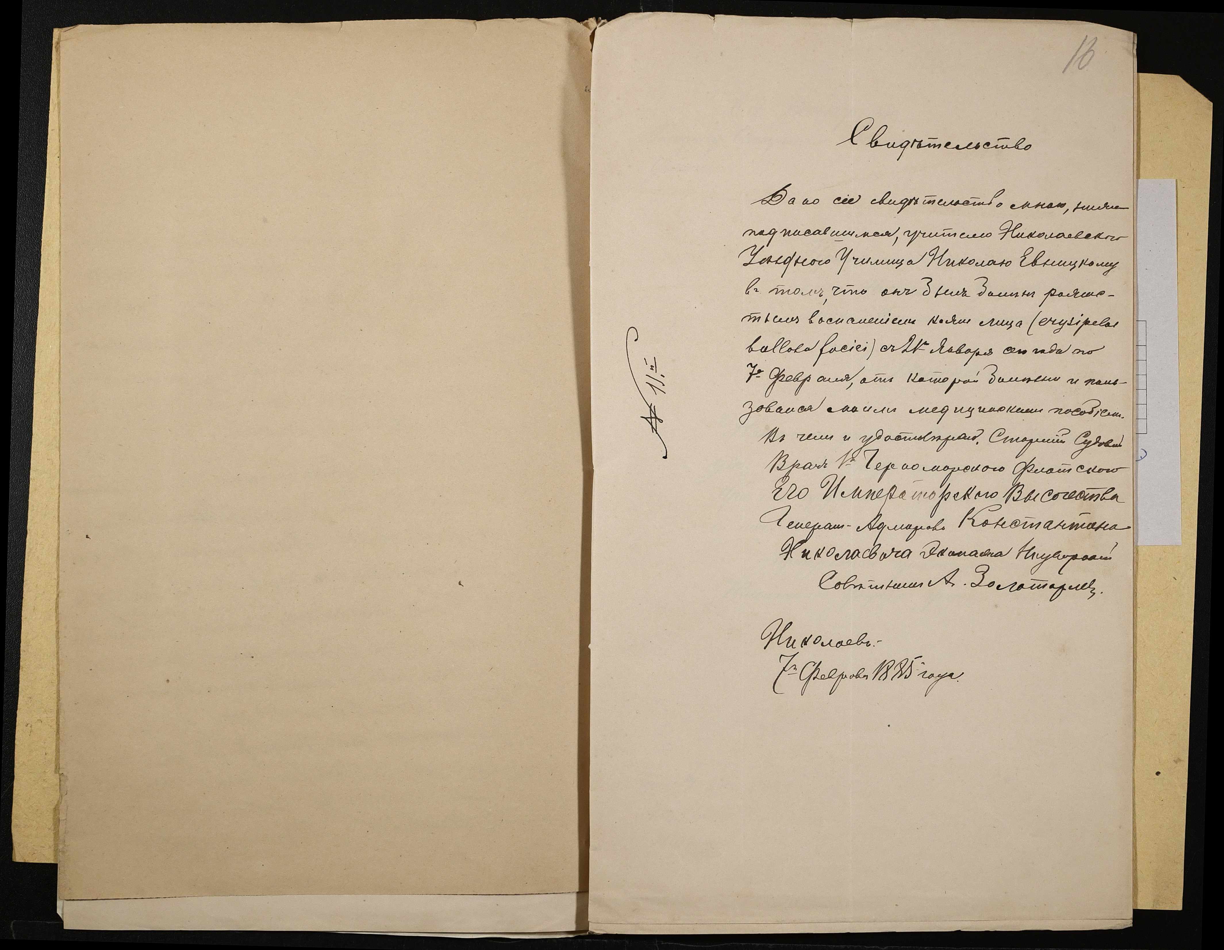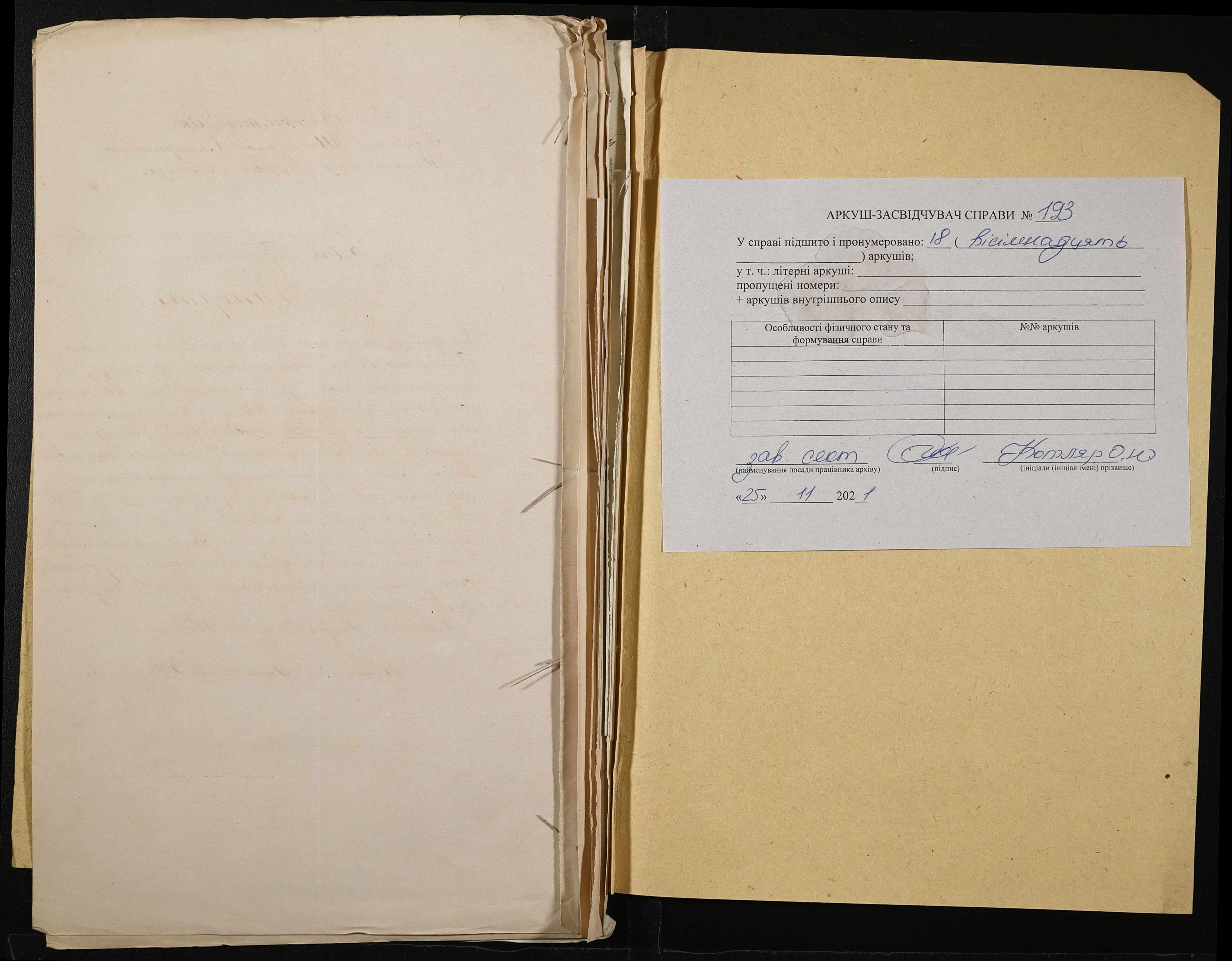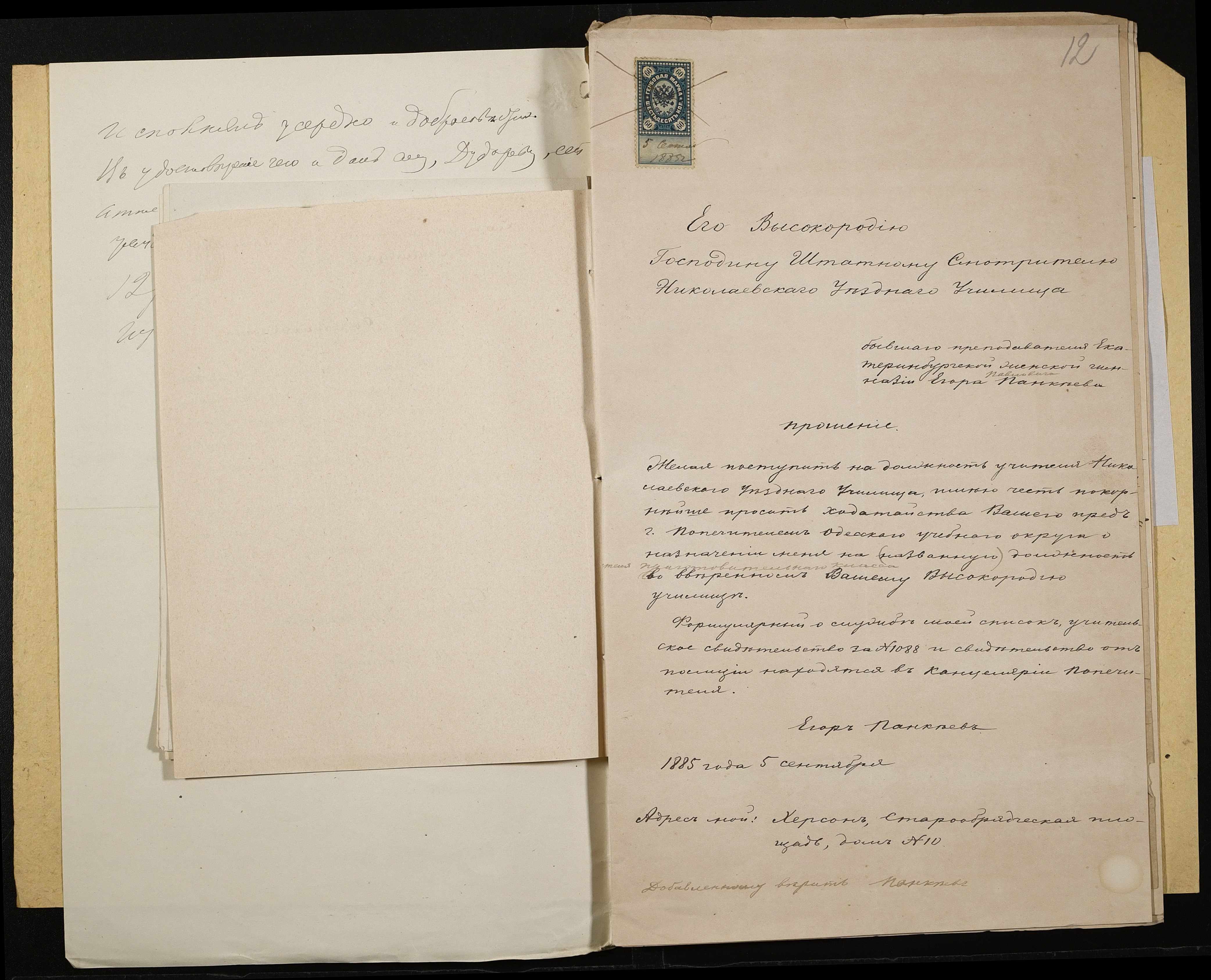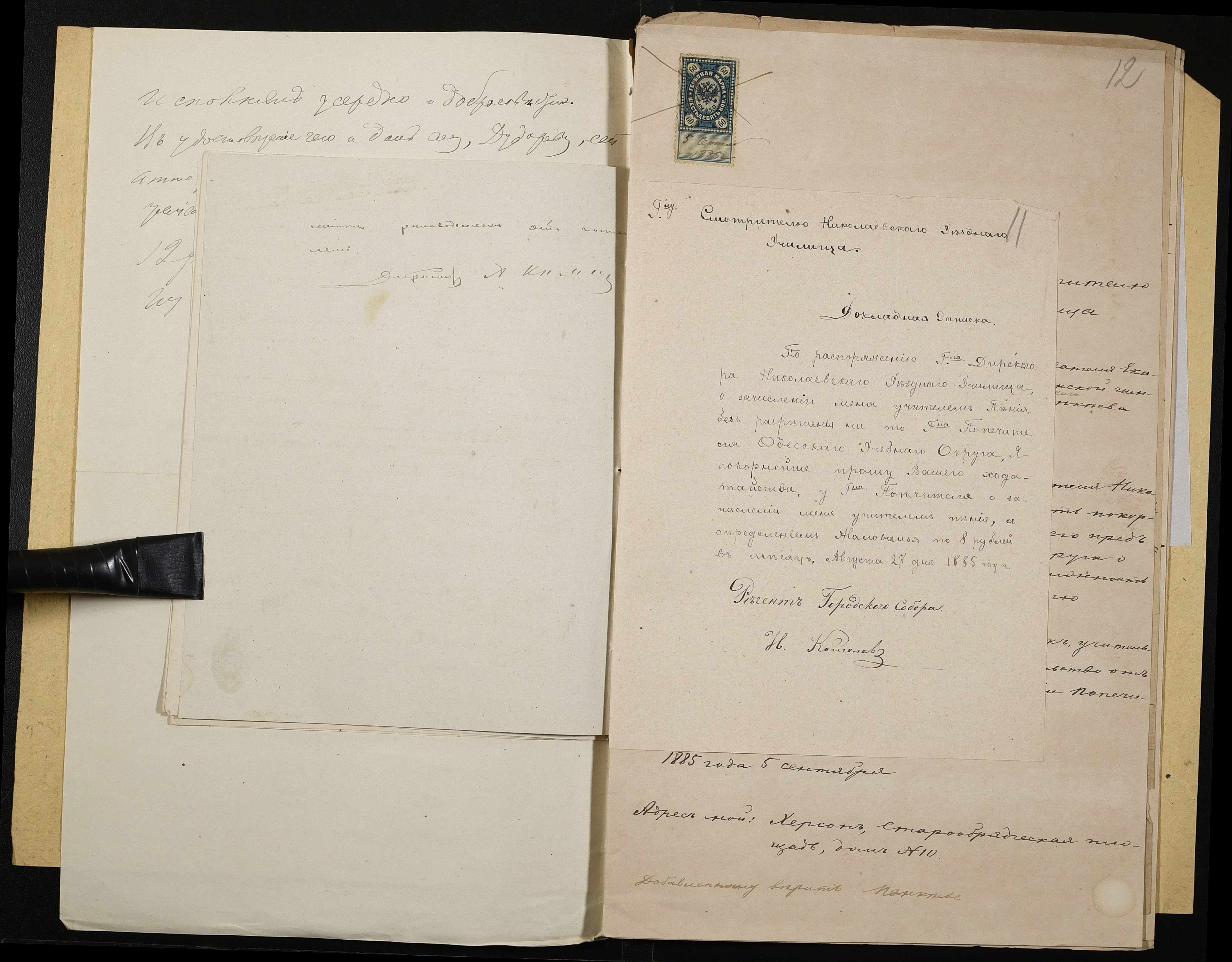 • • • • Справа № 193 “Листування з директором народних училищ Херсонської губернії про проходження служби чиновниками училища, свідоцтво про звільнення вчителя А. Федорова (А. Федорова) від військової повинності”