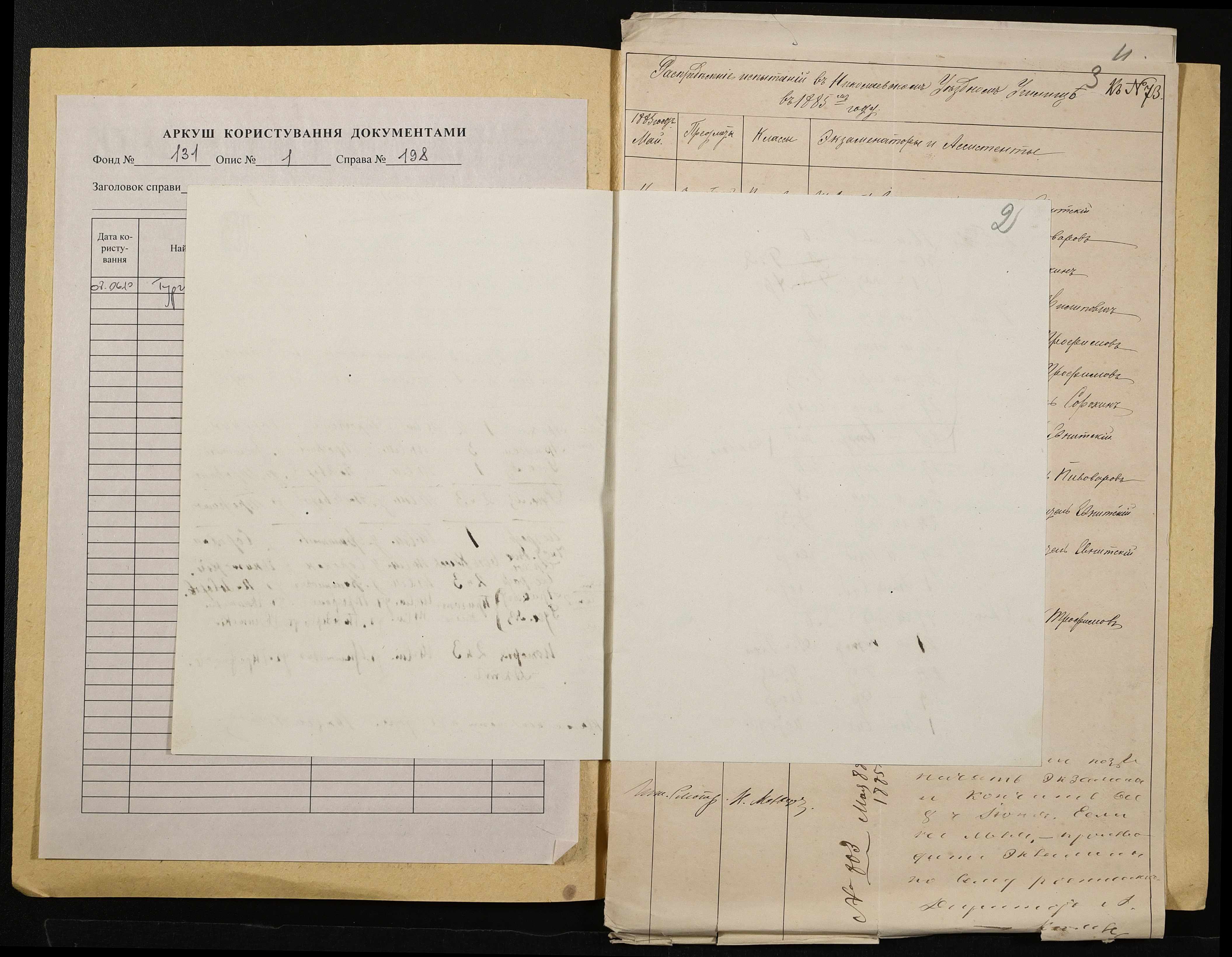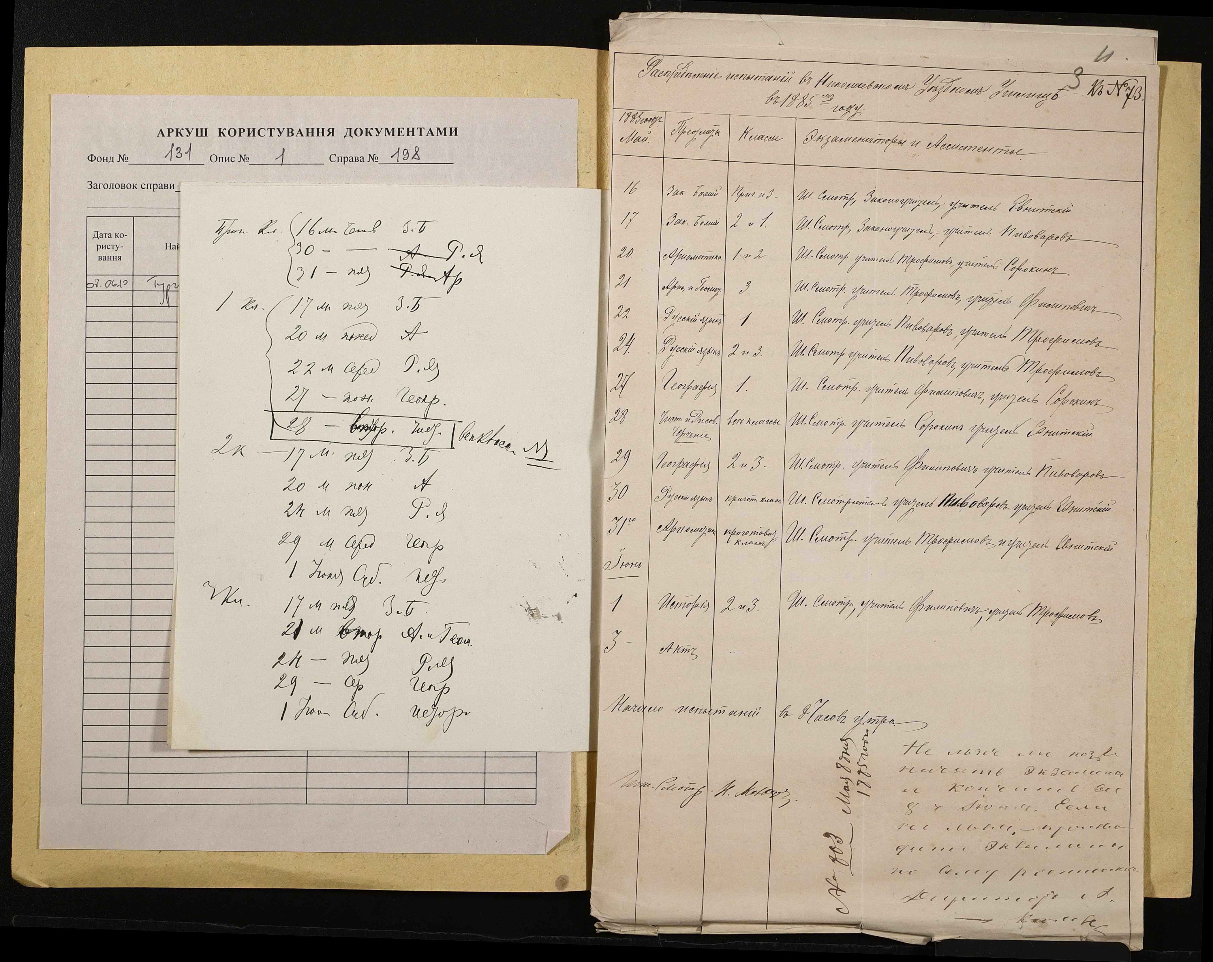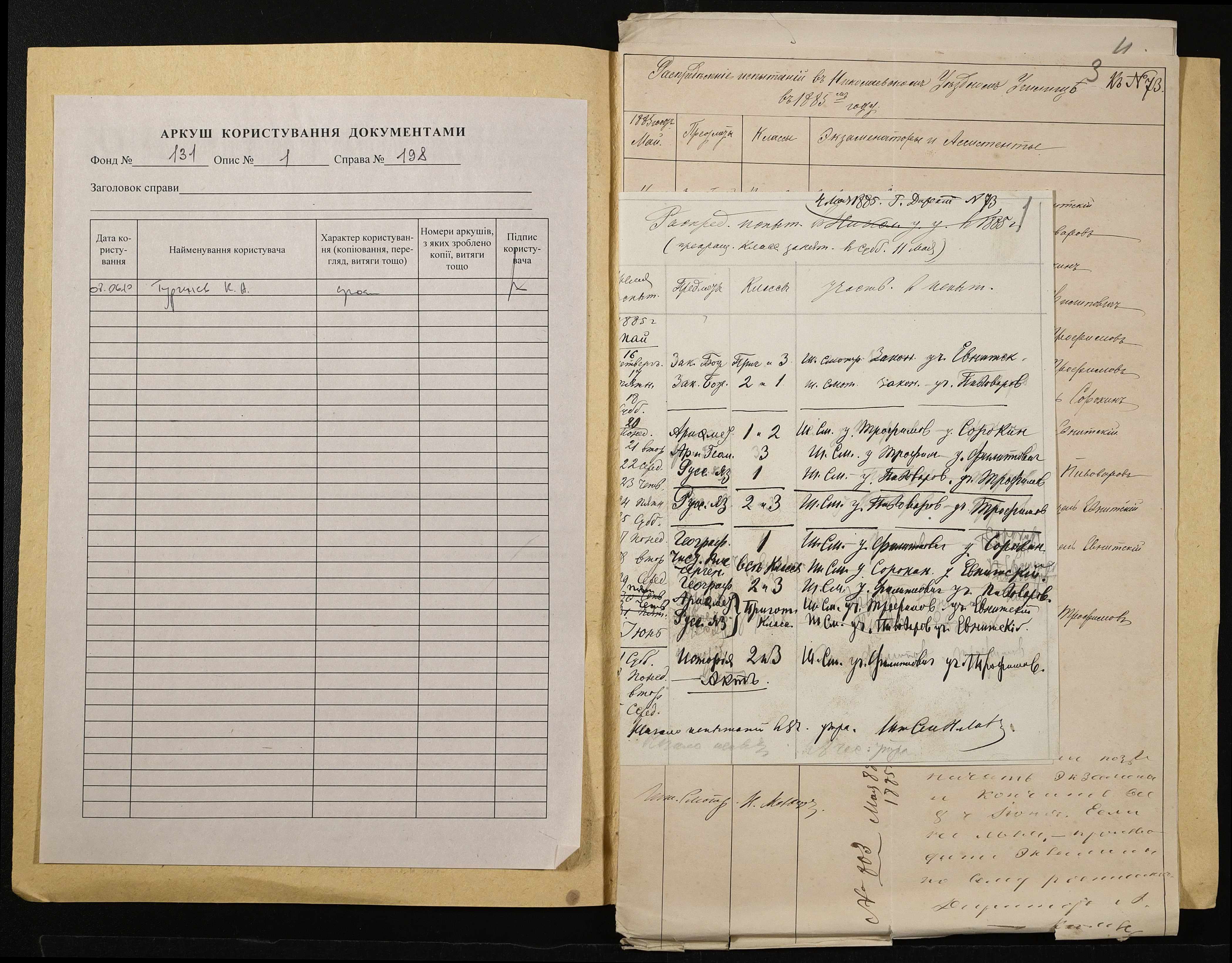 • • • • Справа № 198 “Навчальні програми, розклад екзаменів за 1884-1885 навчальний рік”