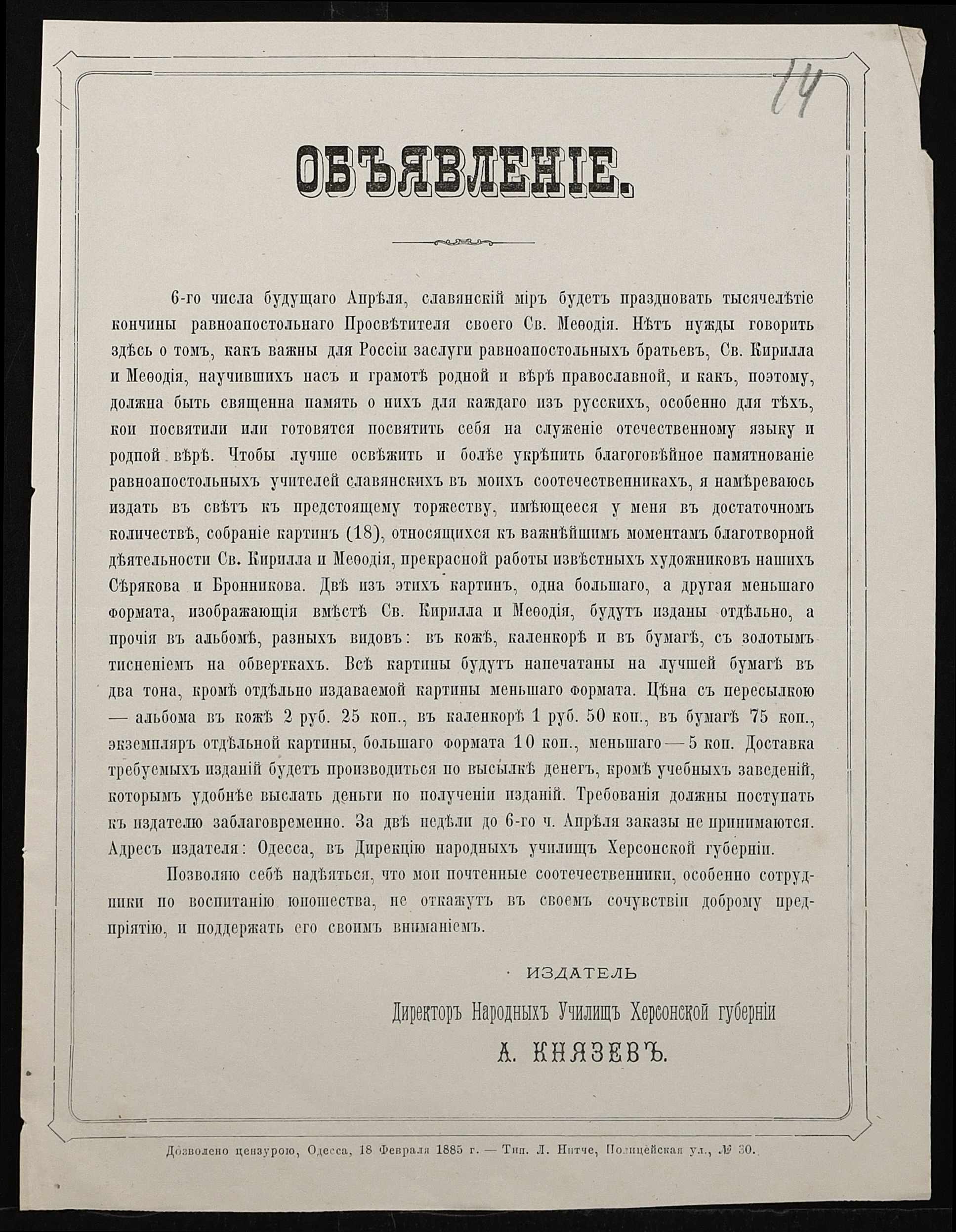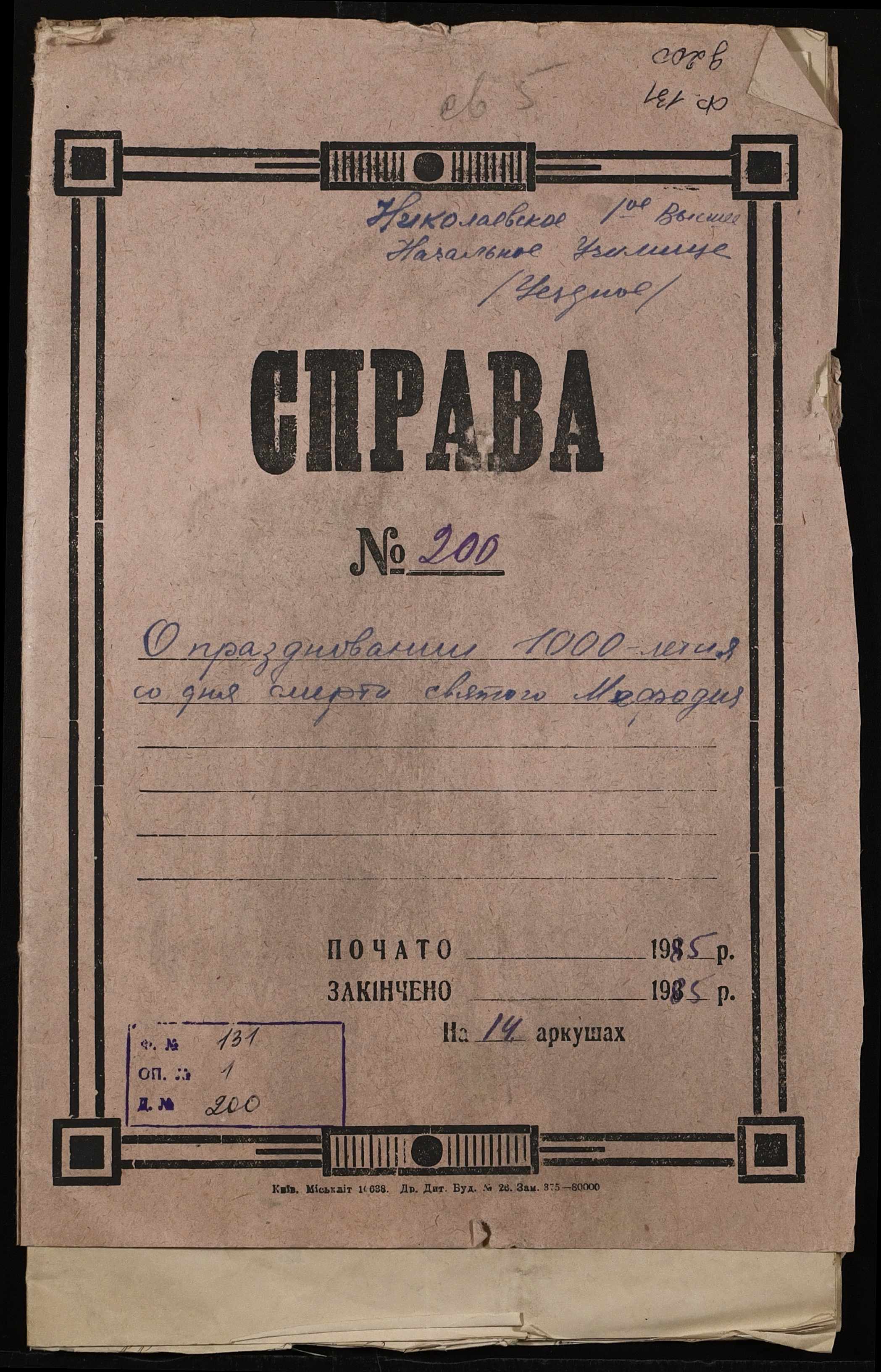 • • • • Справа № 200 “Справа про святкування в Миколаєві 1000-річчя пам’яті Кирила та Мефодія”