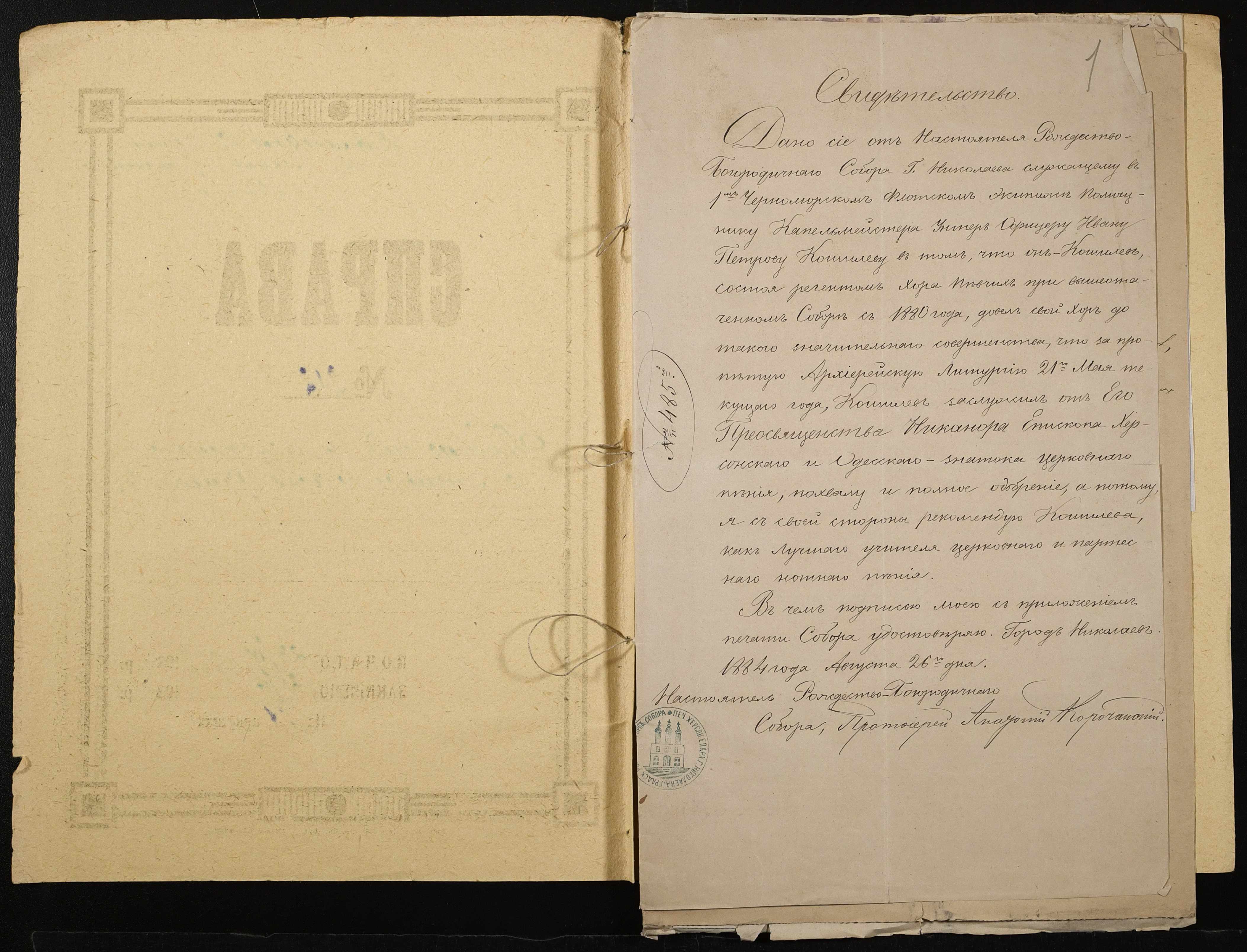 ◦ ◦ ◦ Опис № 1 справ постійного зберігання за 1847-1852, 1858, 1868-1869, 1871-1919, 1922 роки