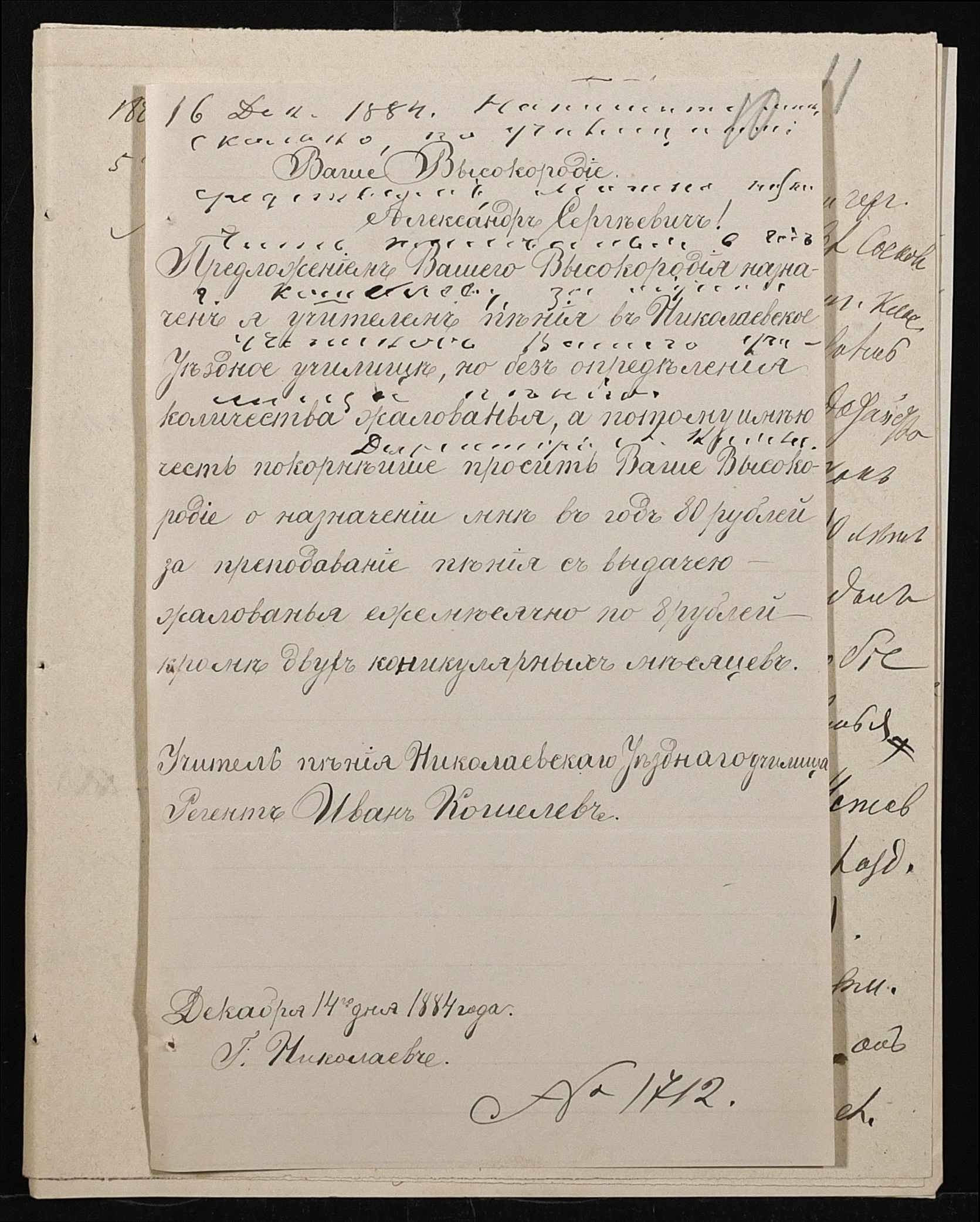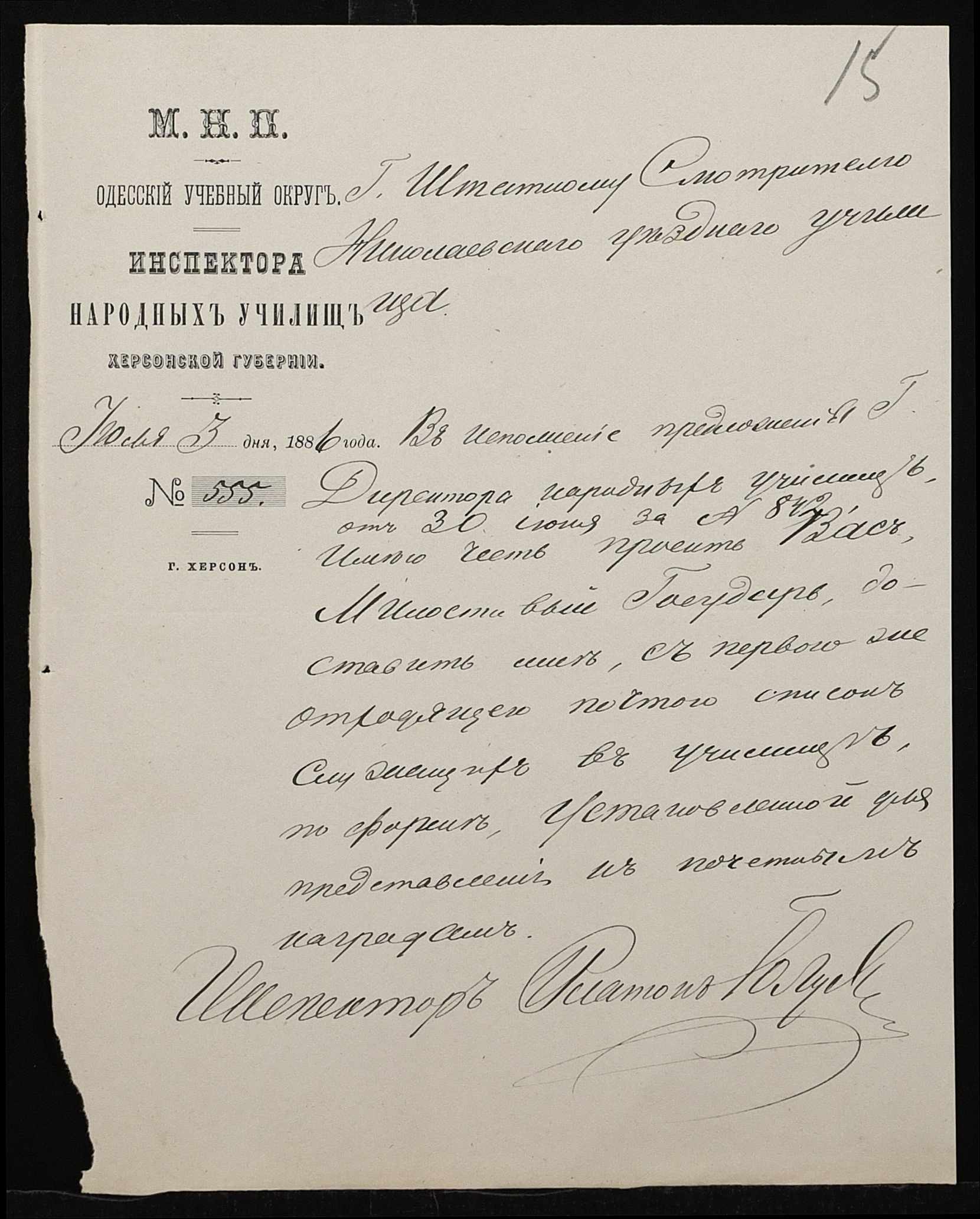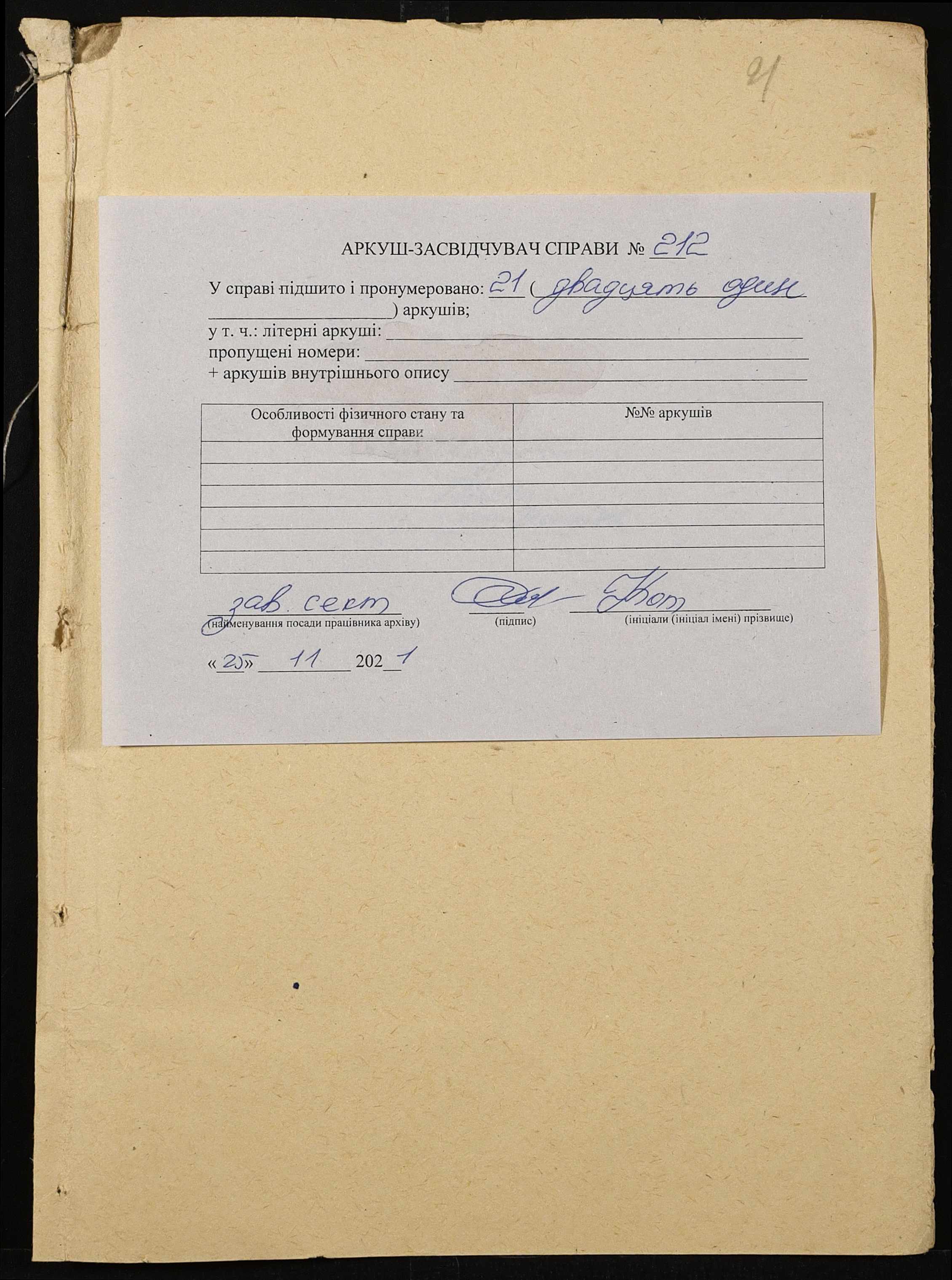 • • • • Справа № 212 “Листування про проходження служби чиновниками повітового училища”