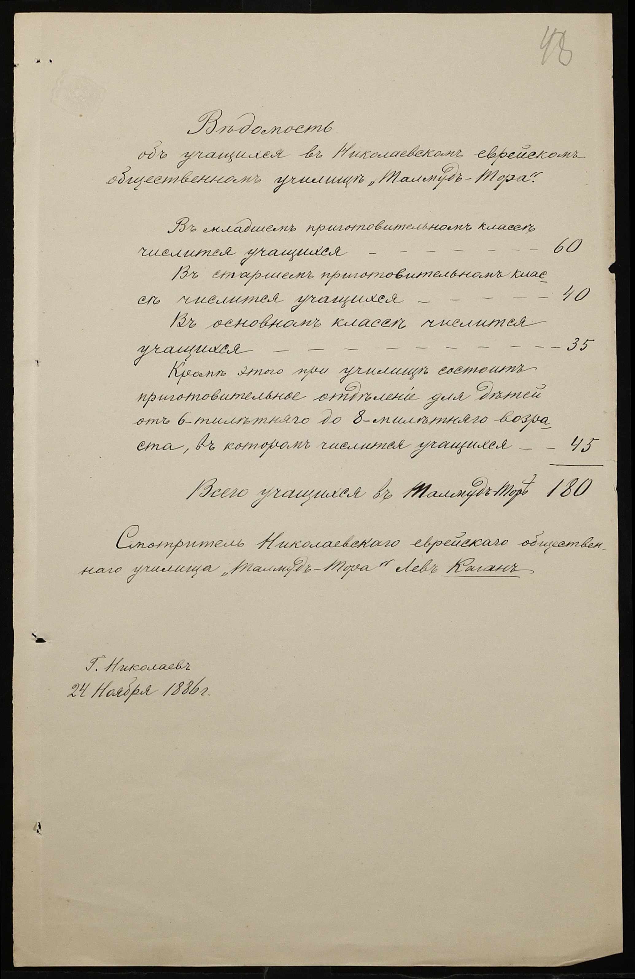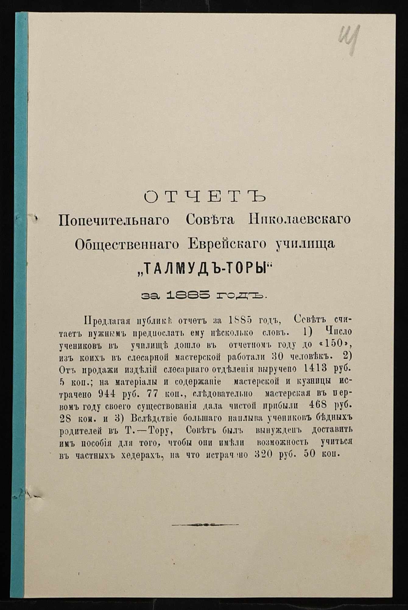 • • • • Справа № 221 “Листування про діяльність суспільних і приватних єврейських училищ в Миколаєві”