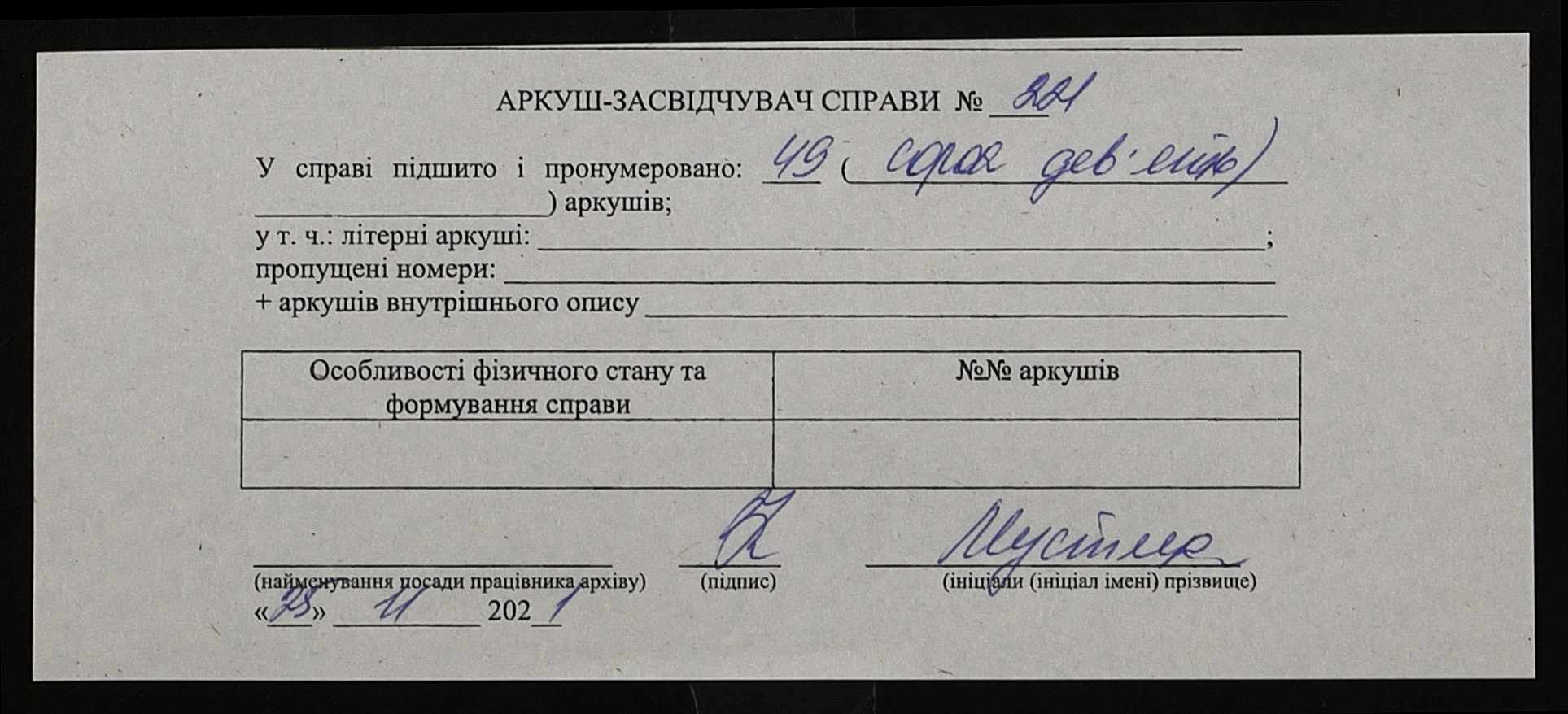 ◦ ◦ ◦ Опис № 1 справ постійного зберігання за 1847-1852, 1858, 1868-1869, 1871-1919, 1922 роки