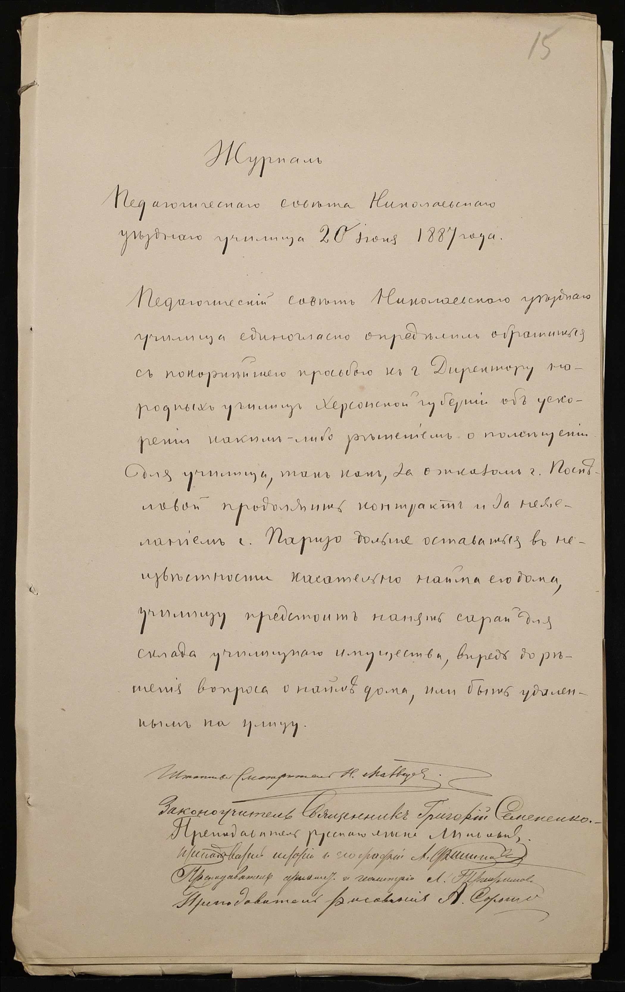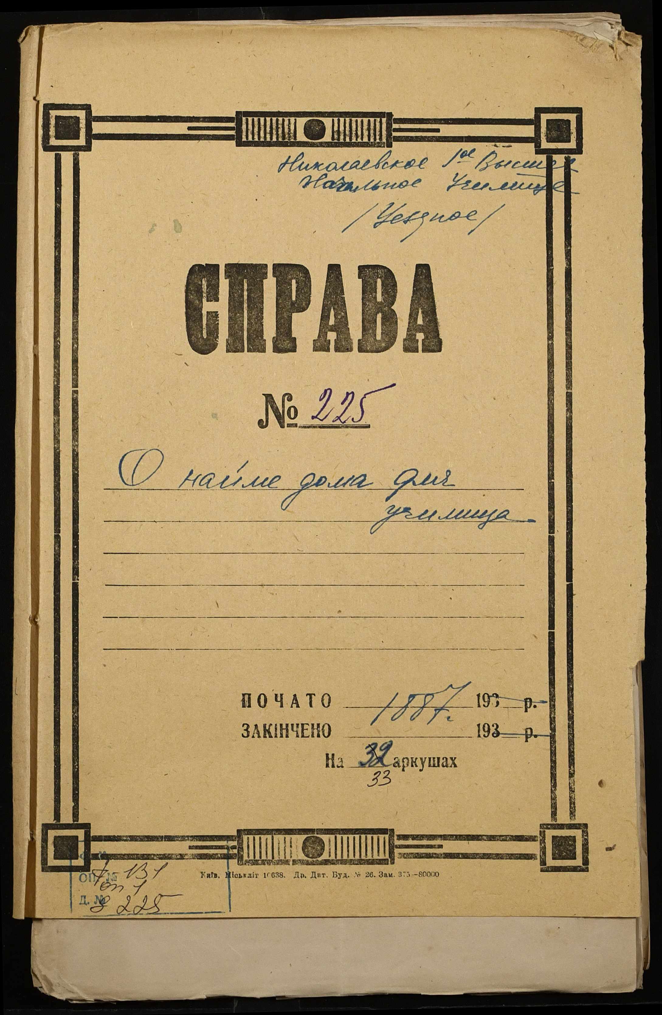 • • • • Справа № 225 “Справа про оренду будинку для училища”