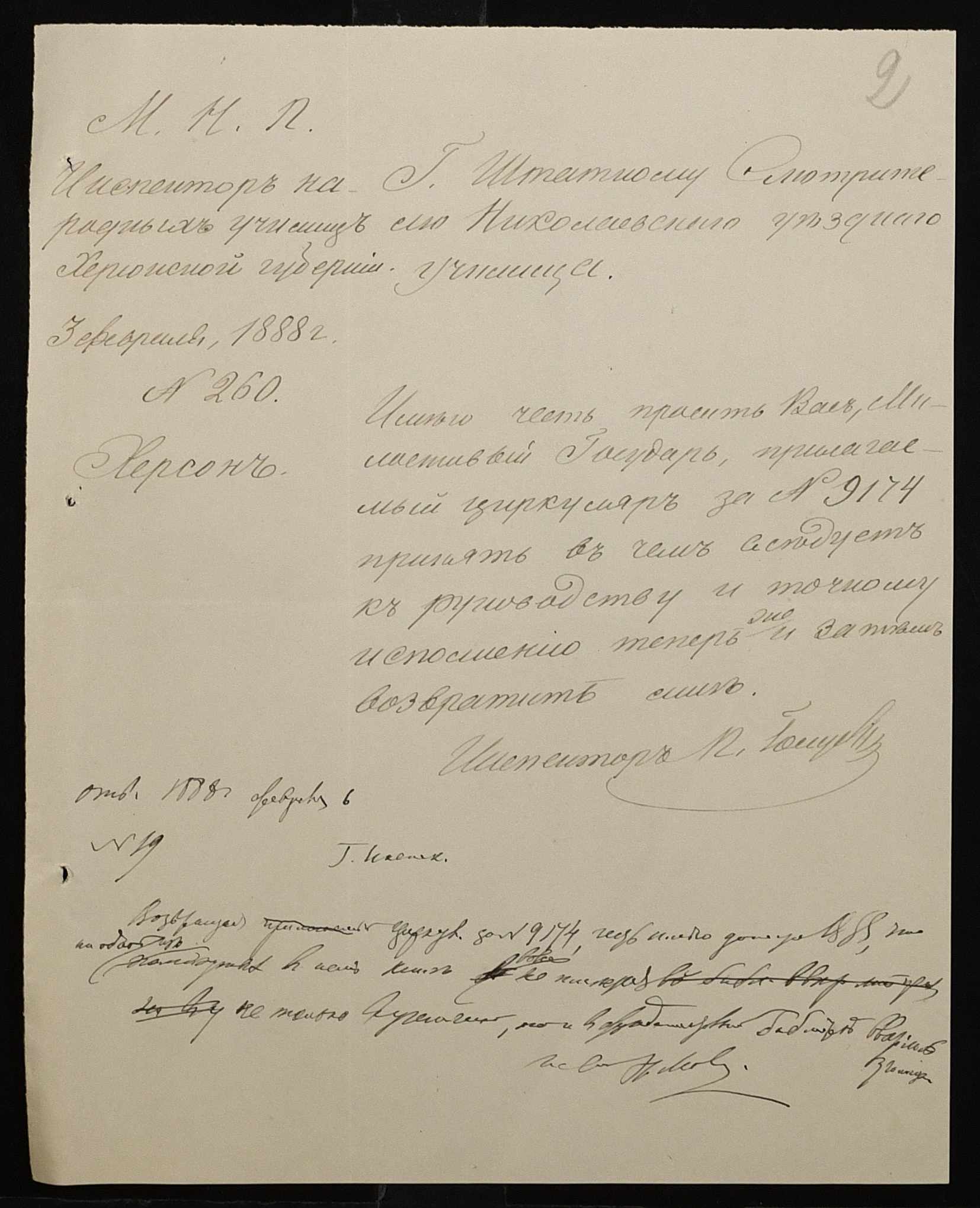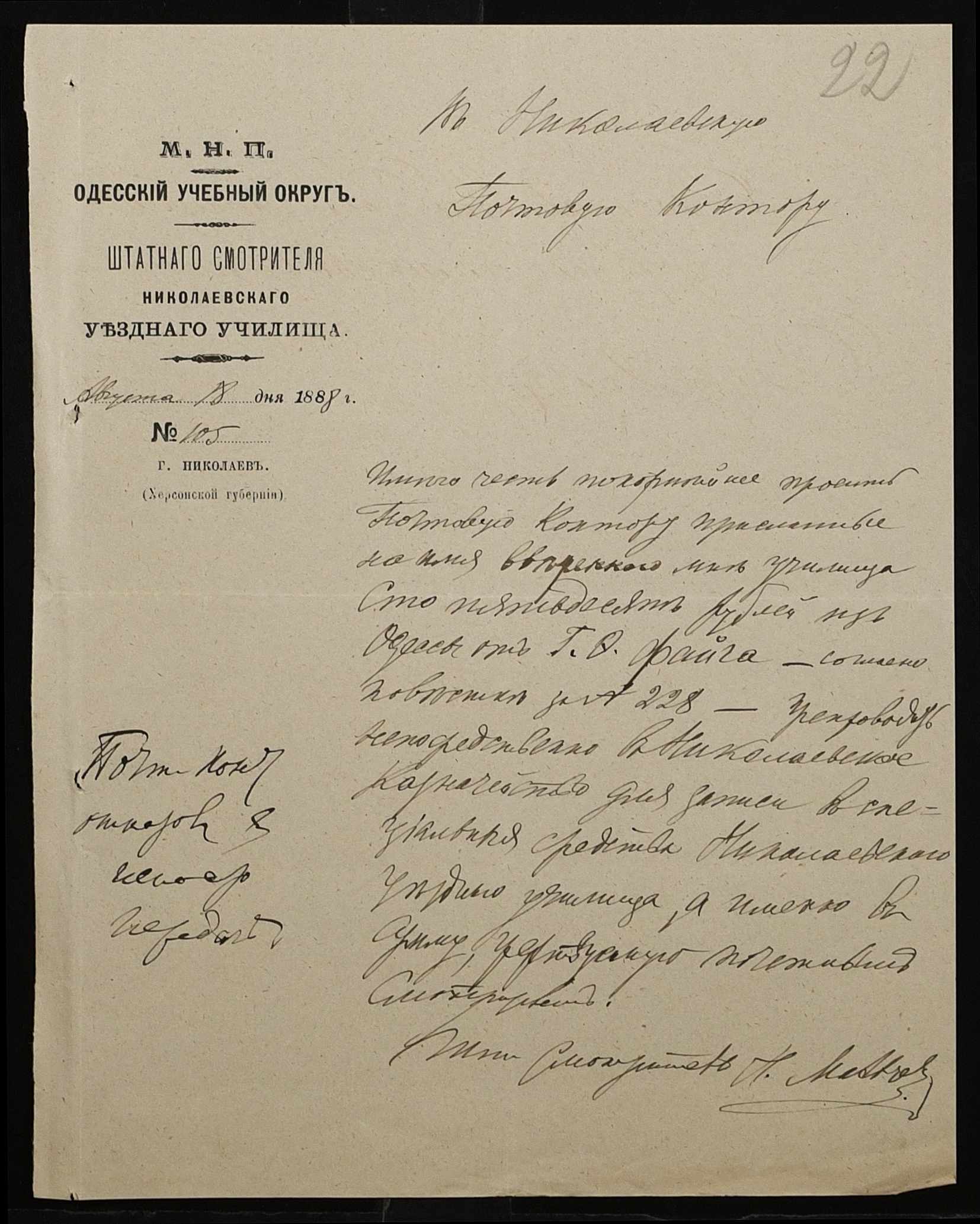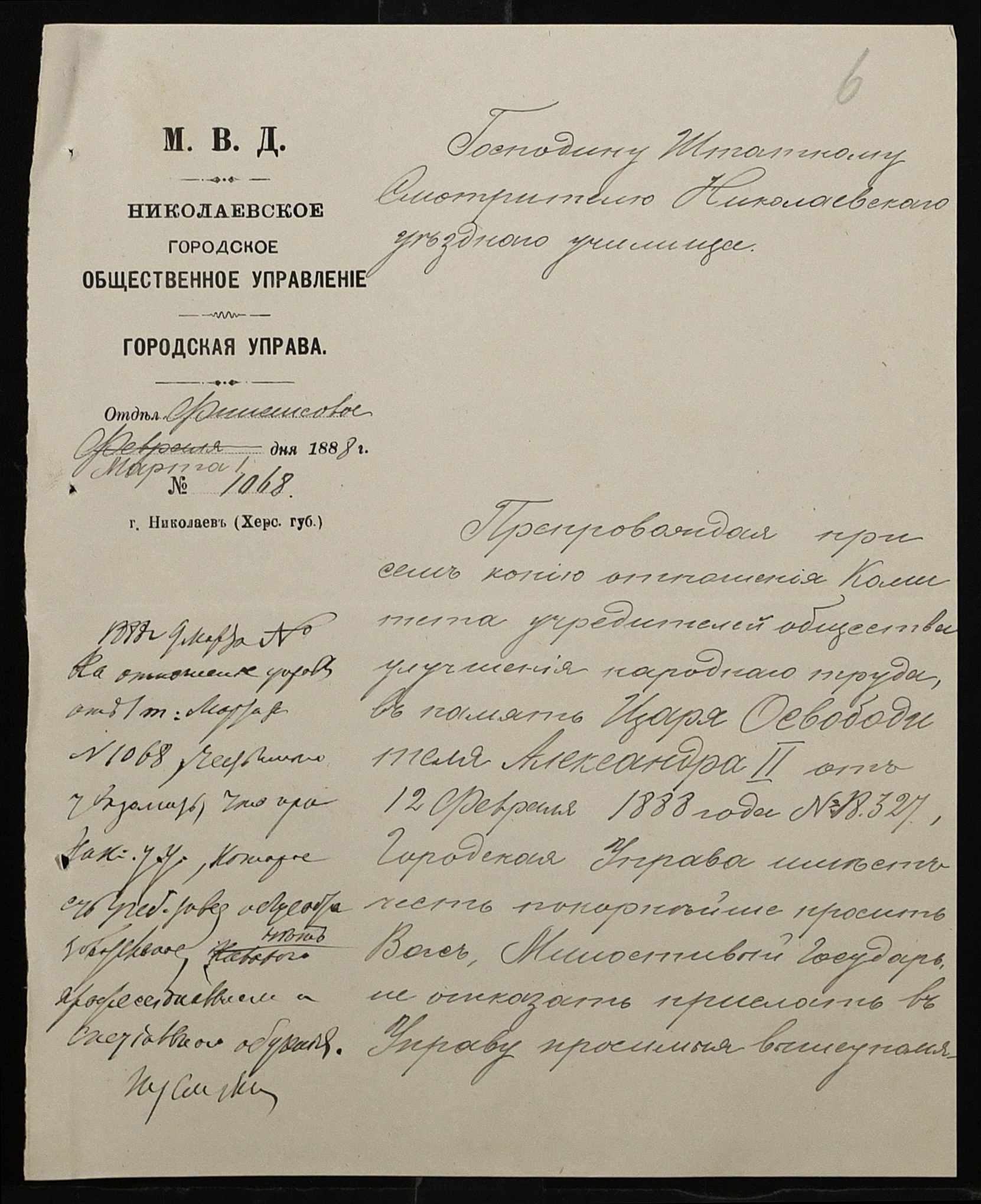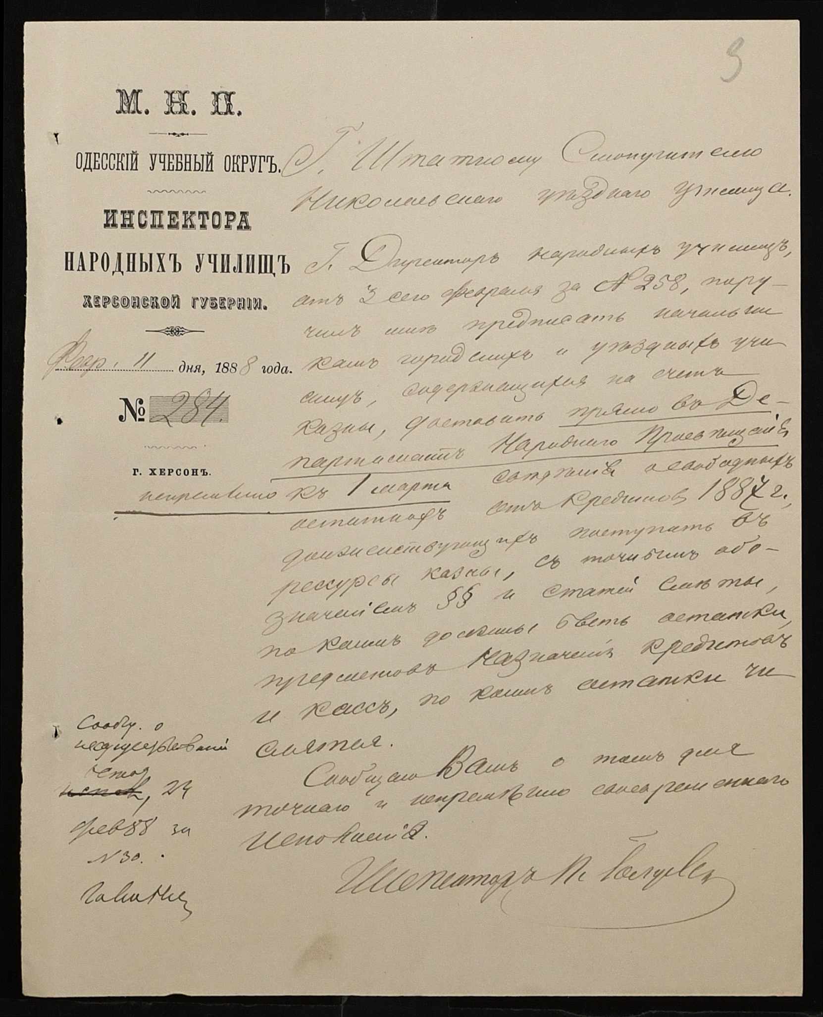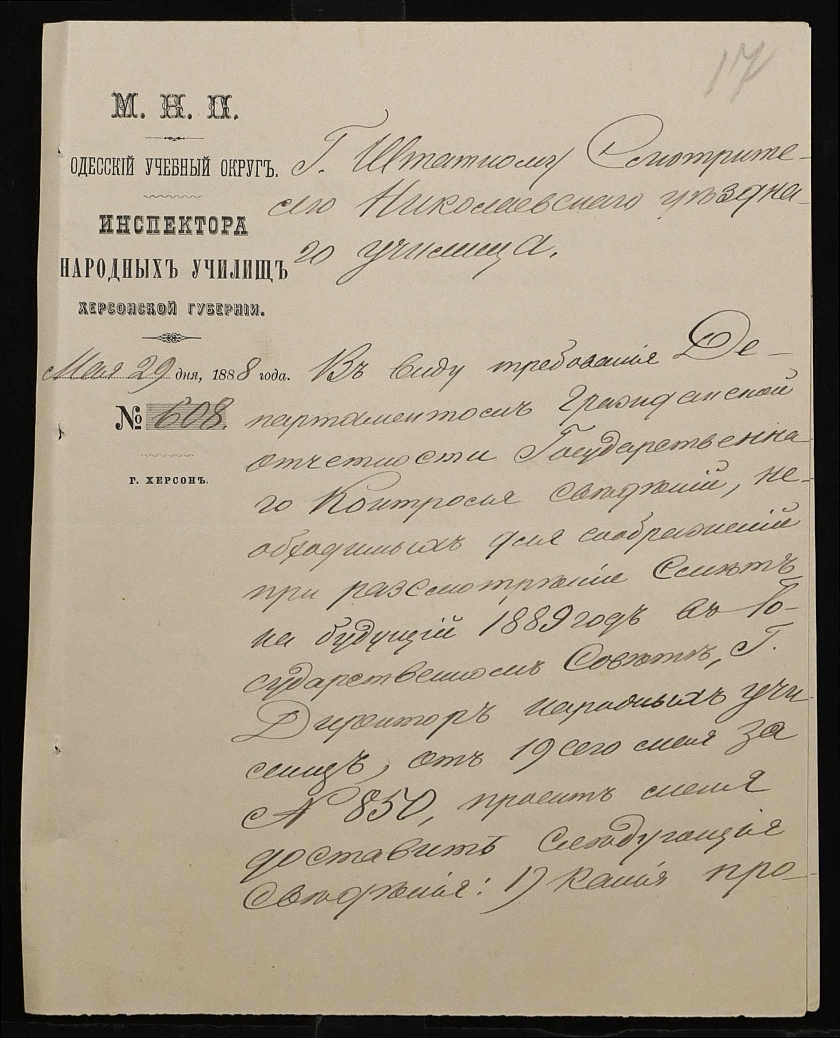 • • • • Справа № 232 “Листування про надання відомостей про уроки, на яких були відсутні викладачі, про кількість учнів на 1 січня 1888 року. Оголошення про прийом в Одеське технічне залізничне училище”