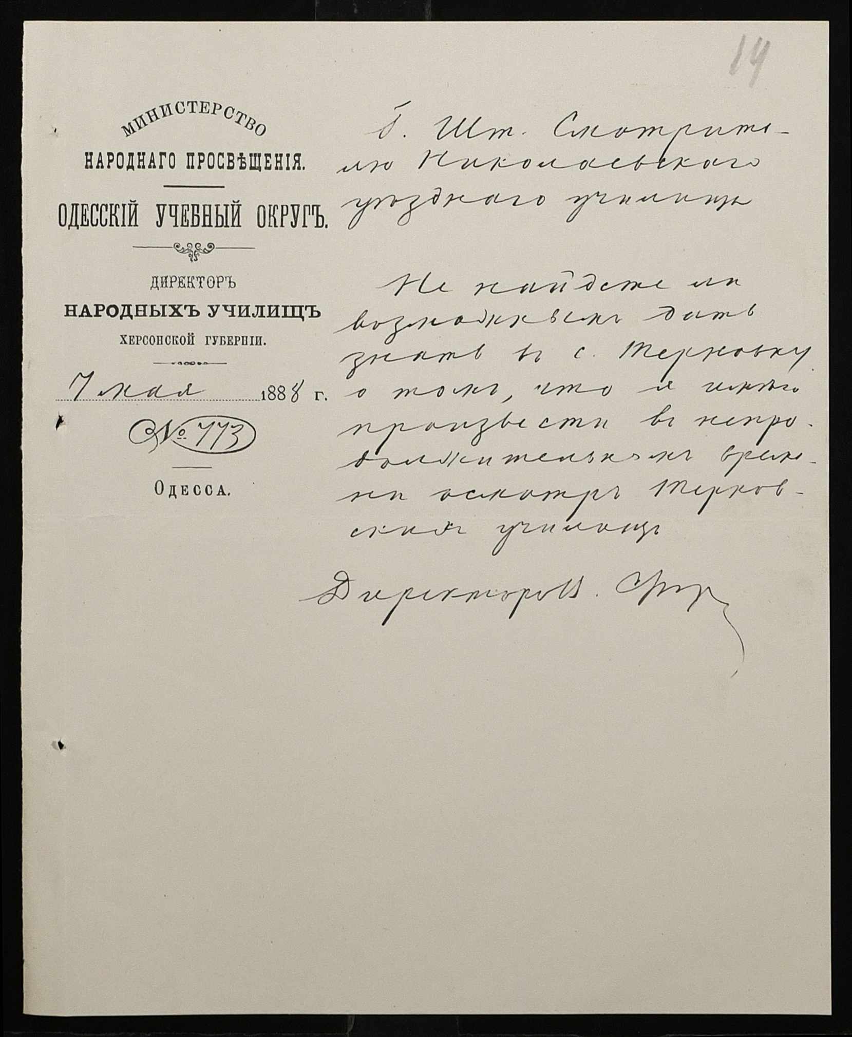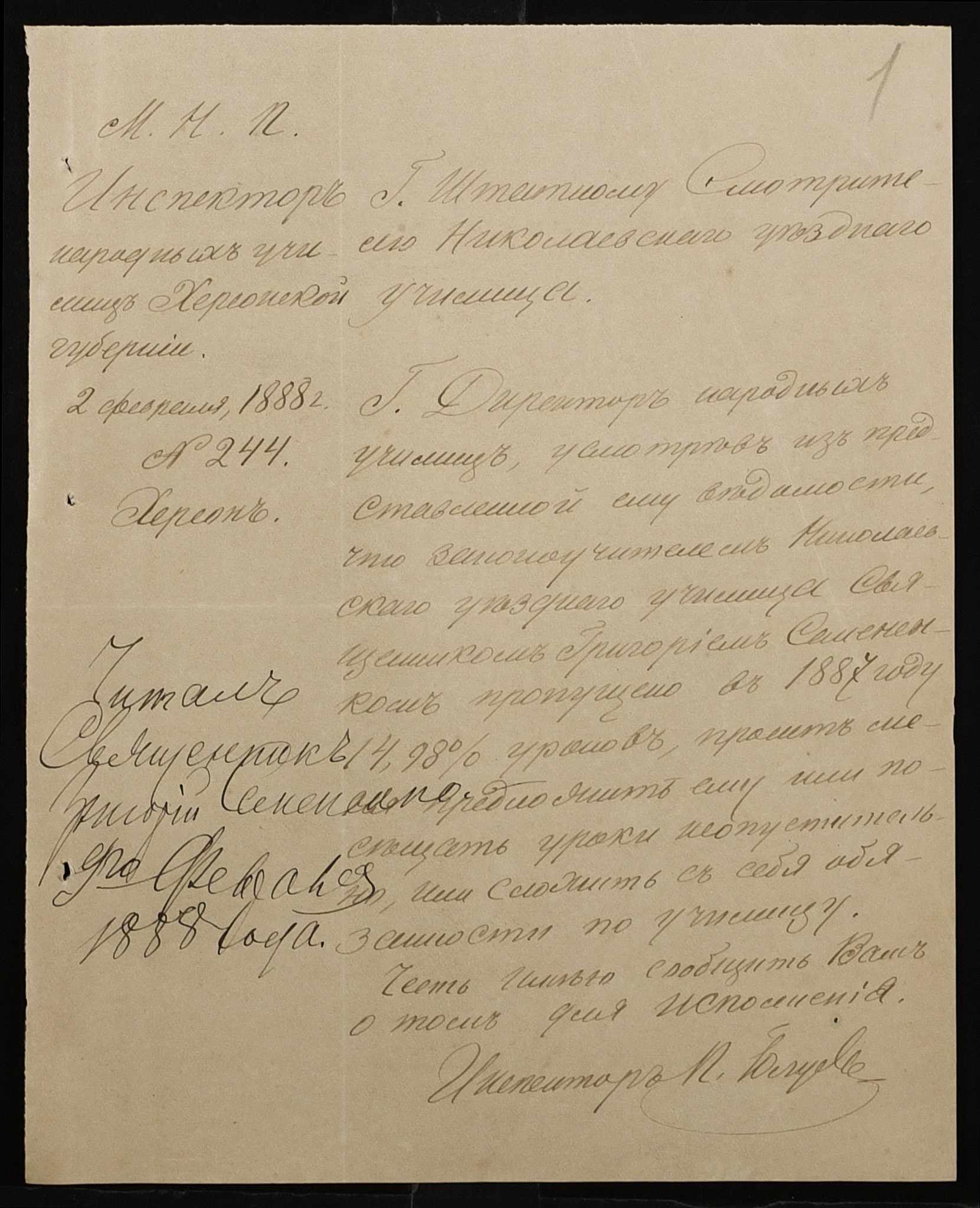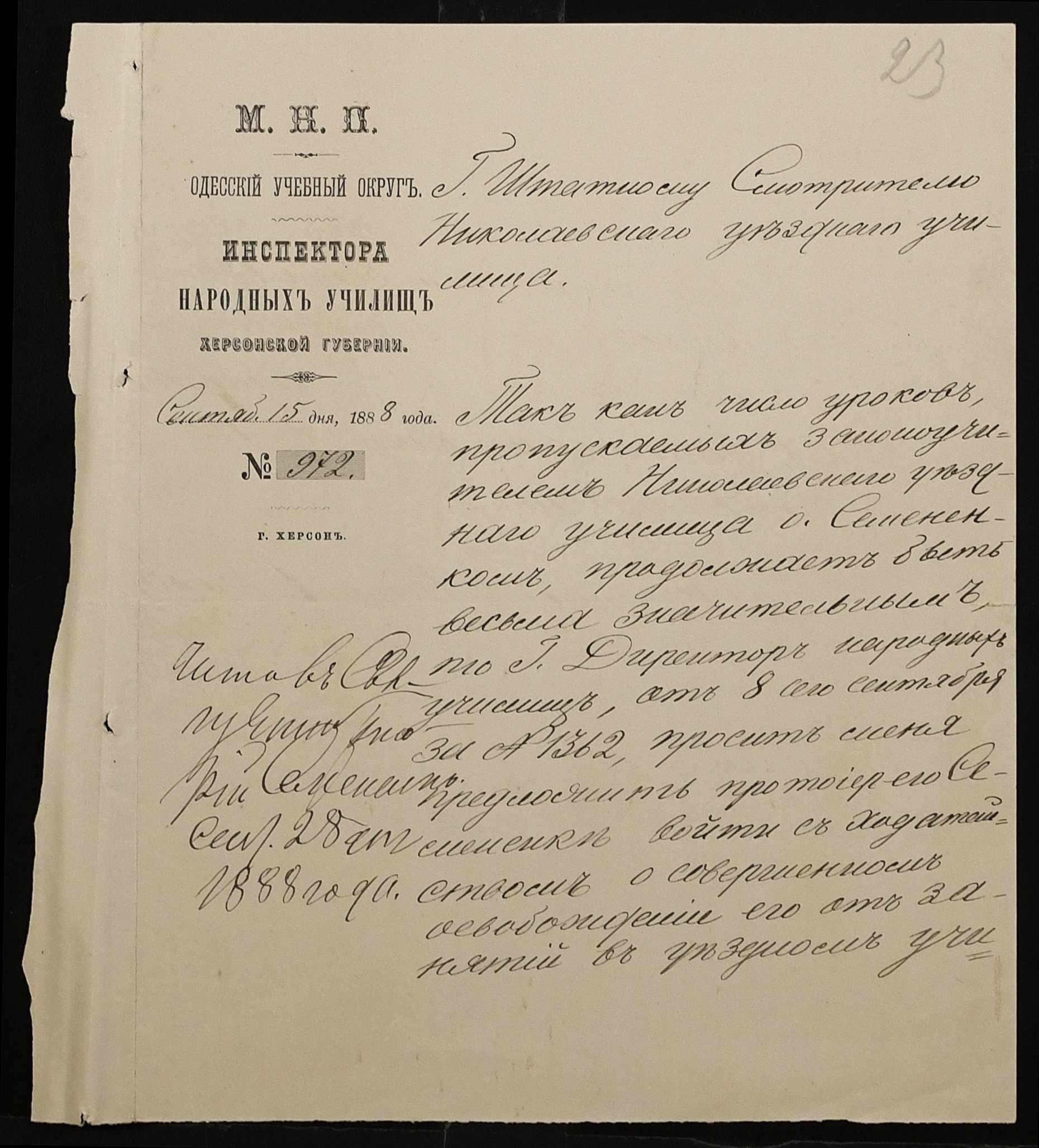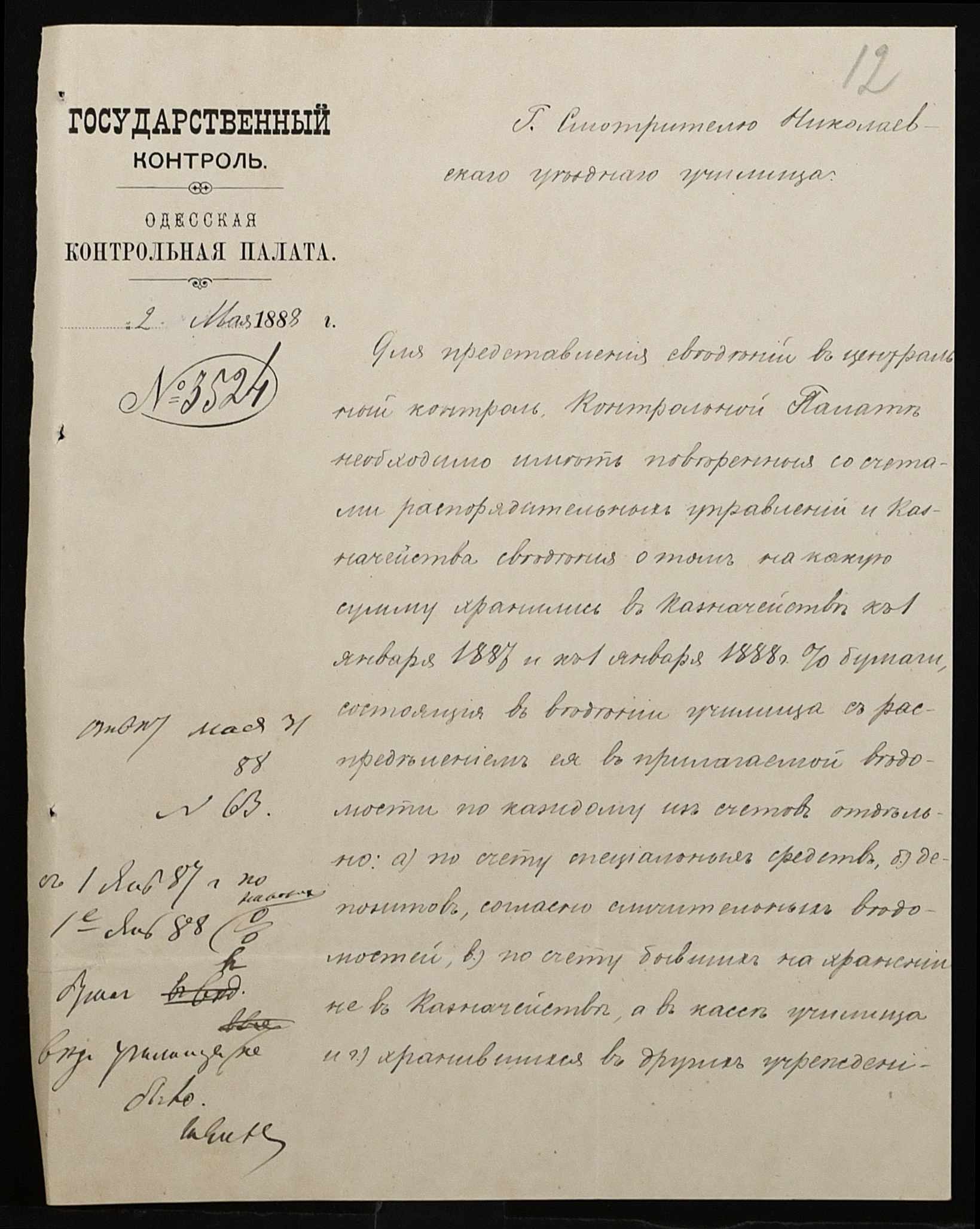 • • • • Справа № 232 “Листування про надання відомостей про уроки, на яких були відсутні викладачі, про кількість учнів на 1 січня 1888 року. Оголошення про прийом в Одеське технічне залізничне училище”