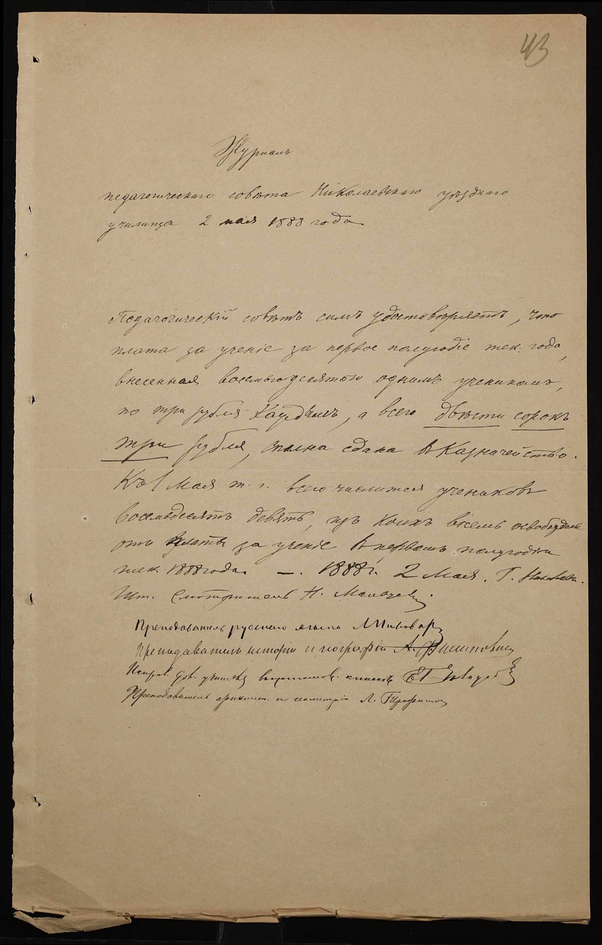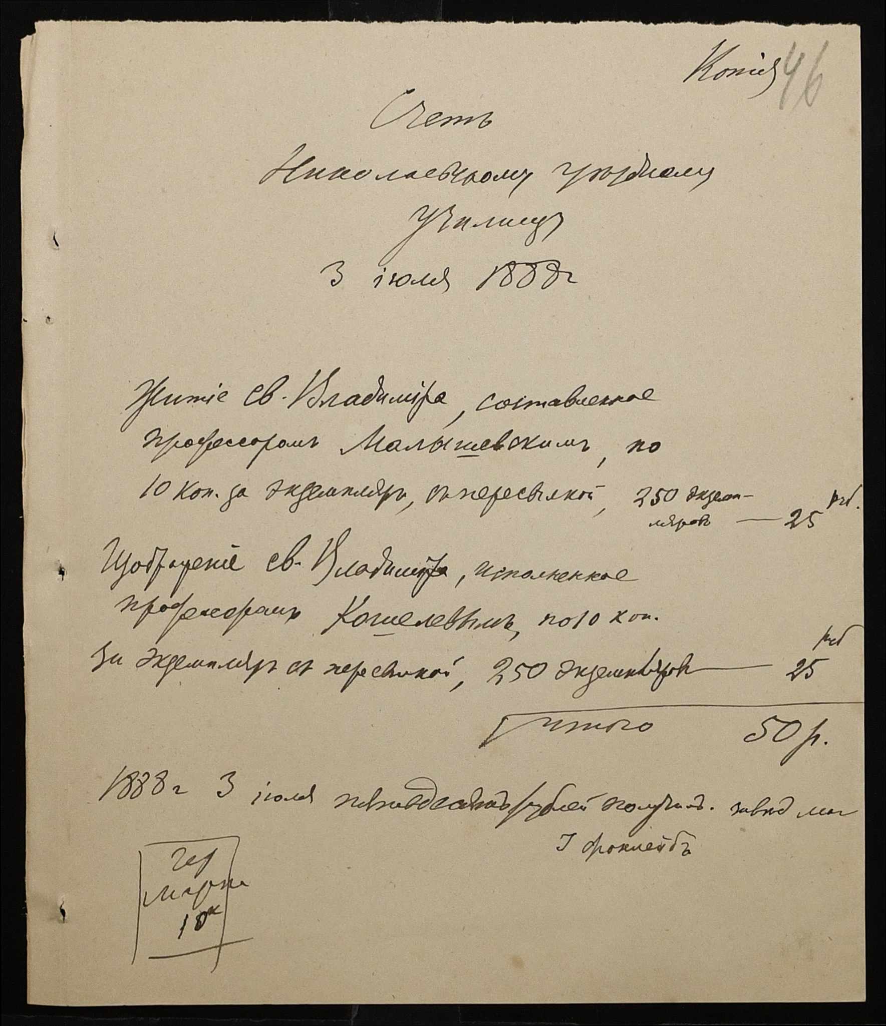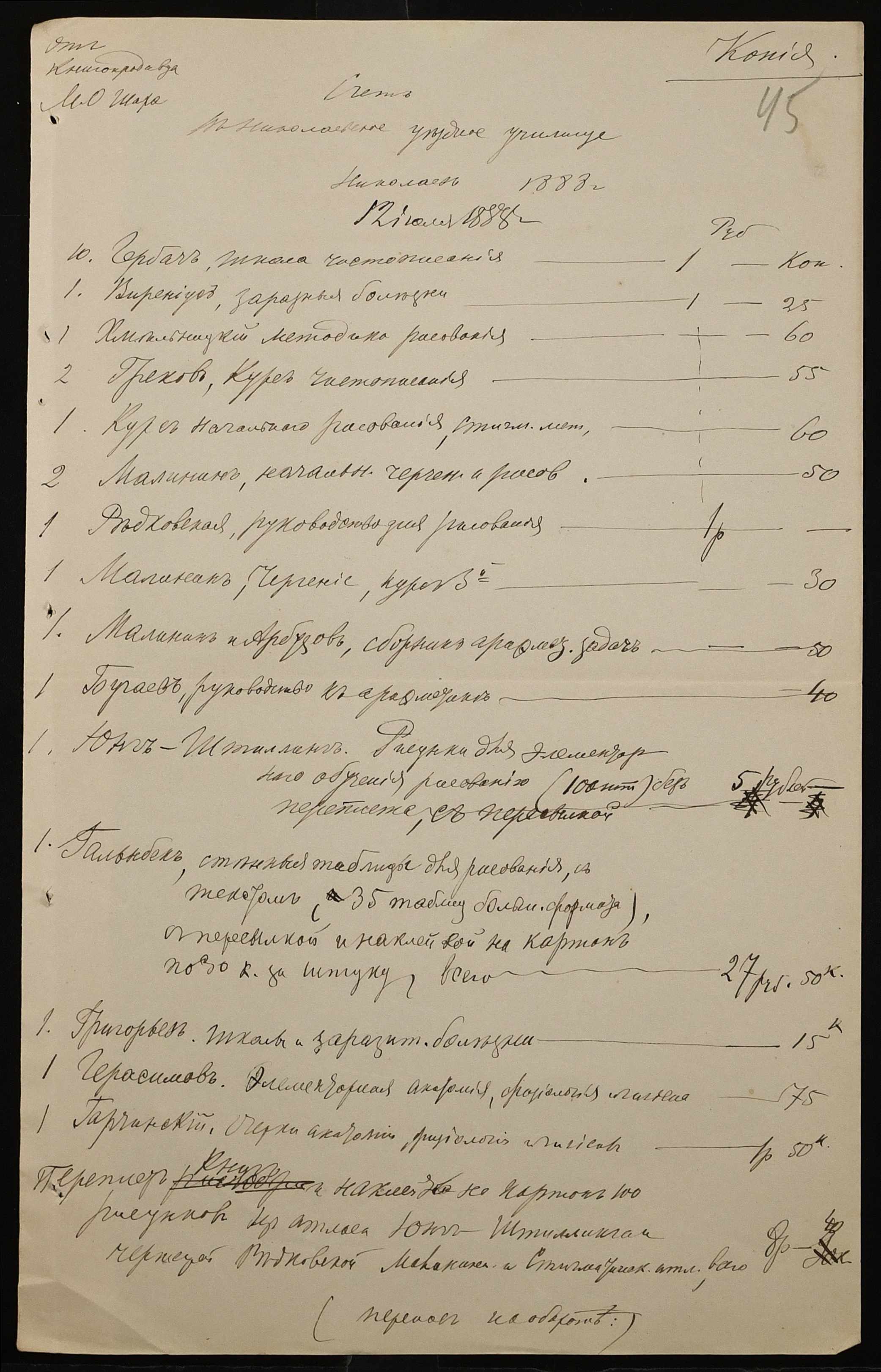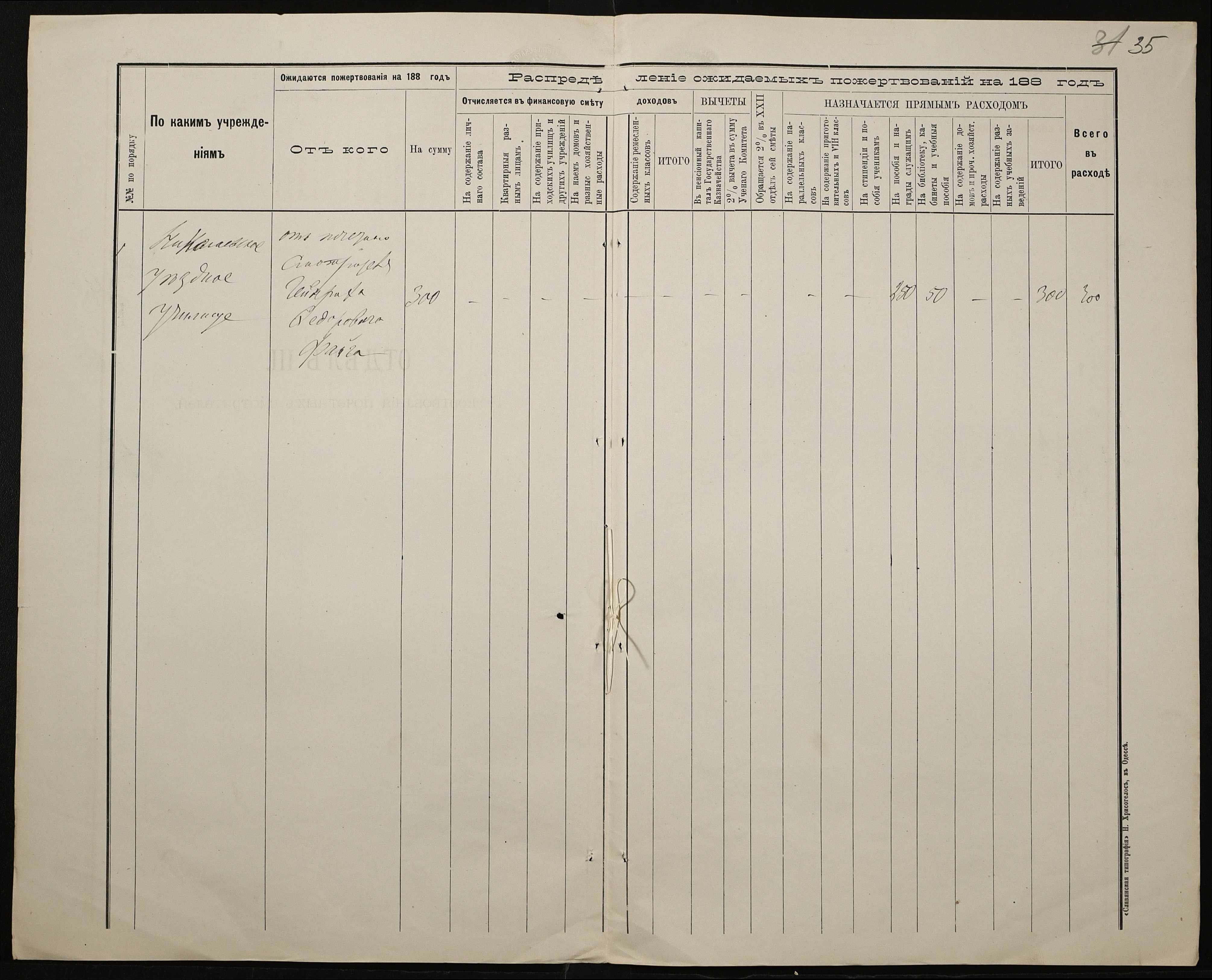 • • • • Справа № 235 “Прибутково-видаткові документи училища за 1888 рік”