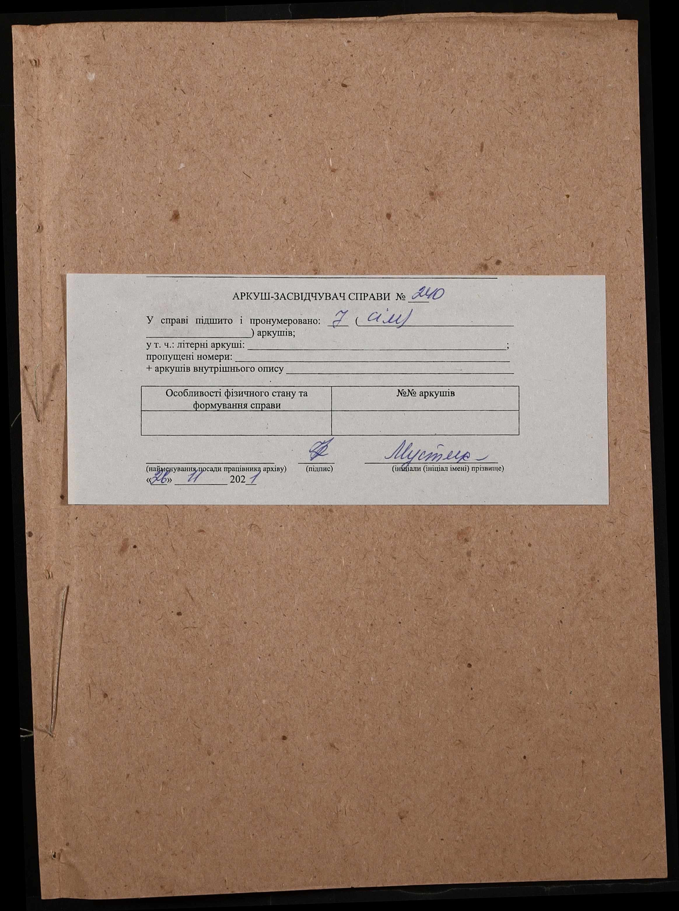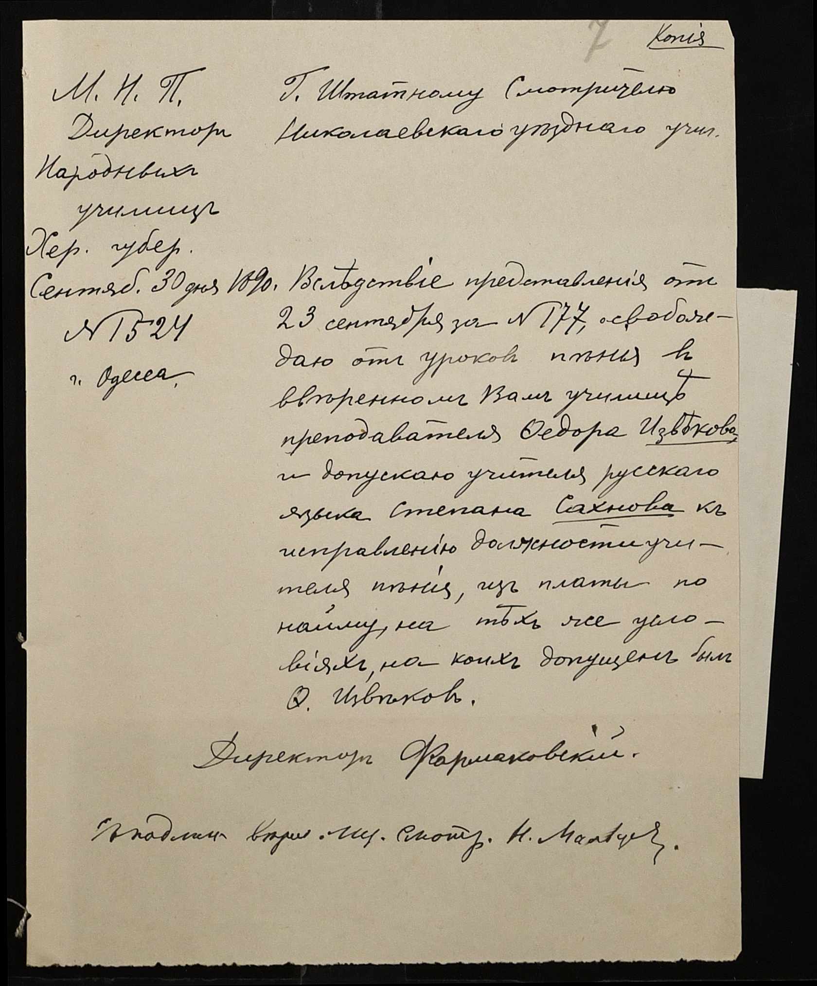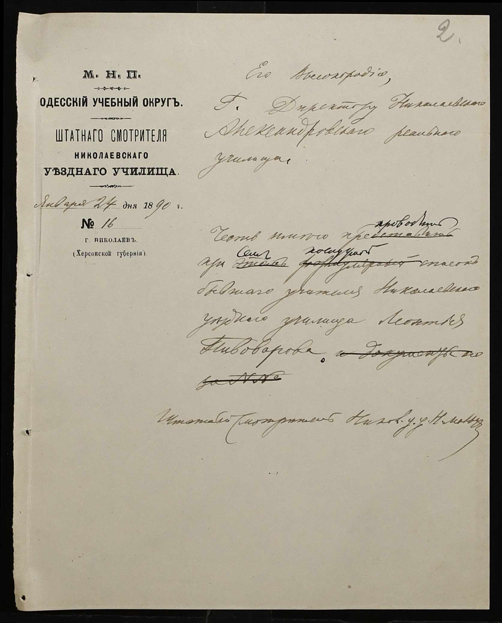• • • • Справа № 240 “Послужний список вчителя російської мови Л. Пивоварова (Л. Пивоварова), складений 20 січня 1890 року”