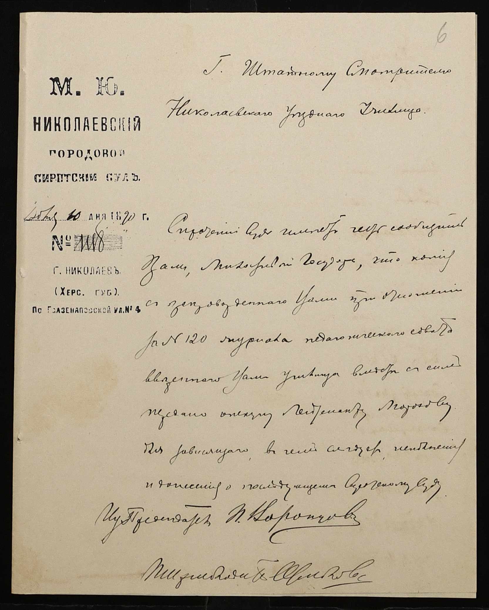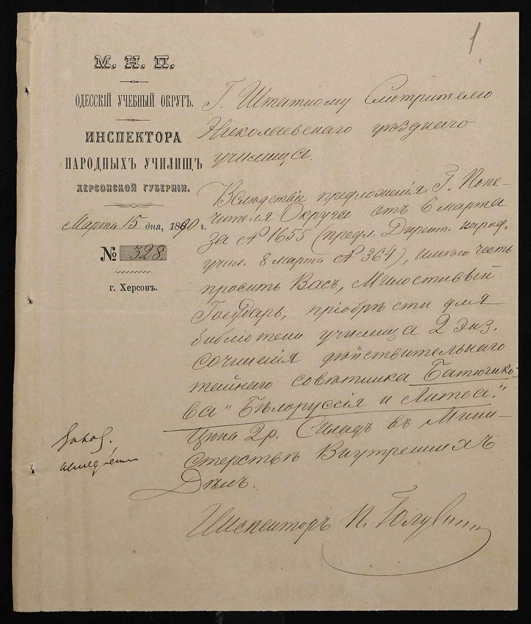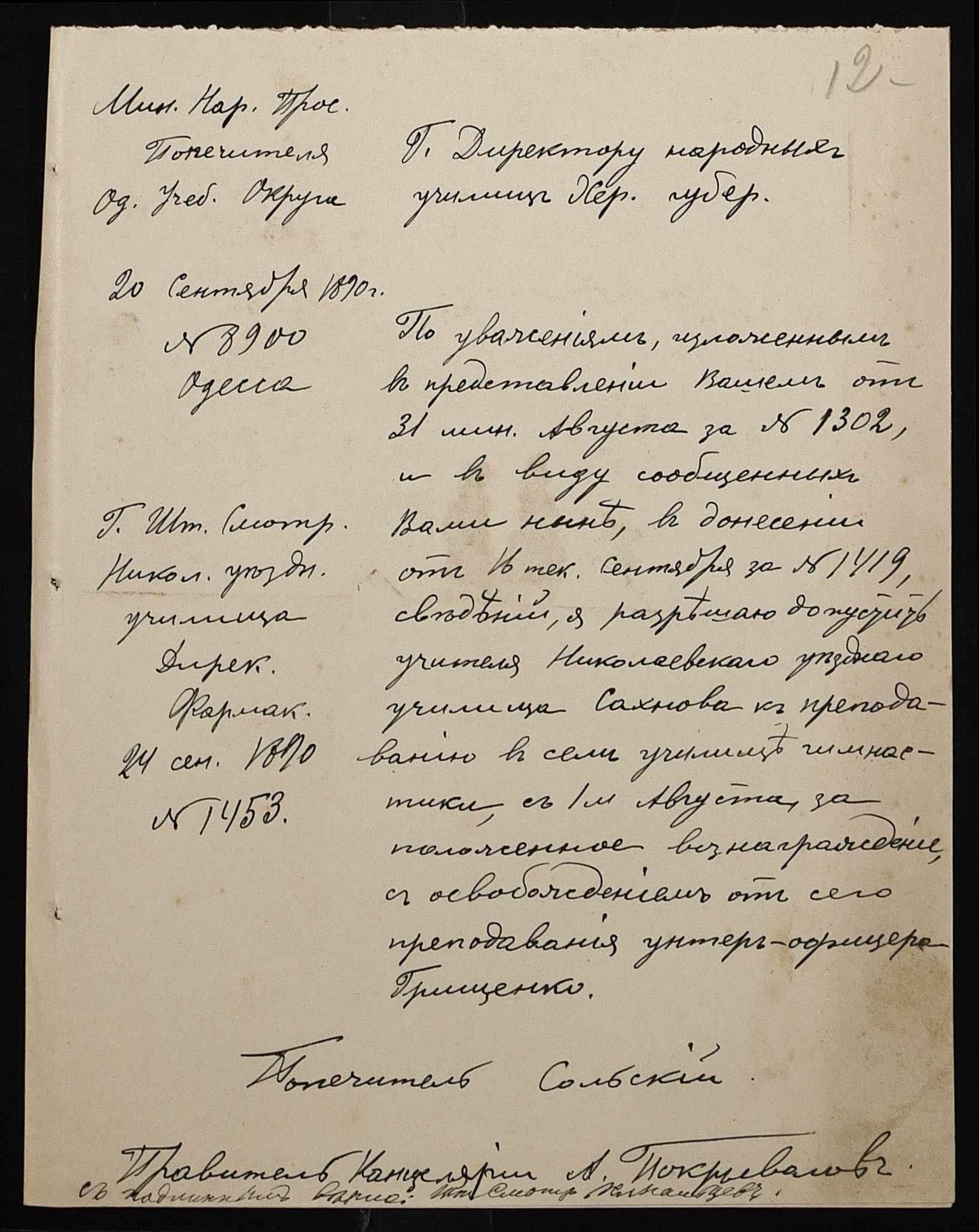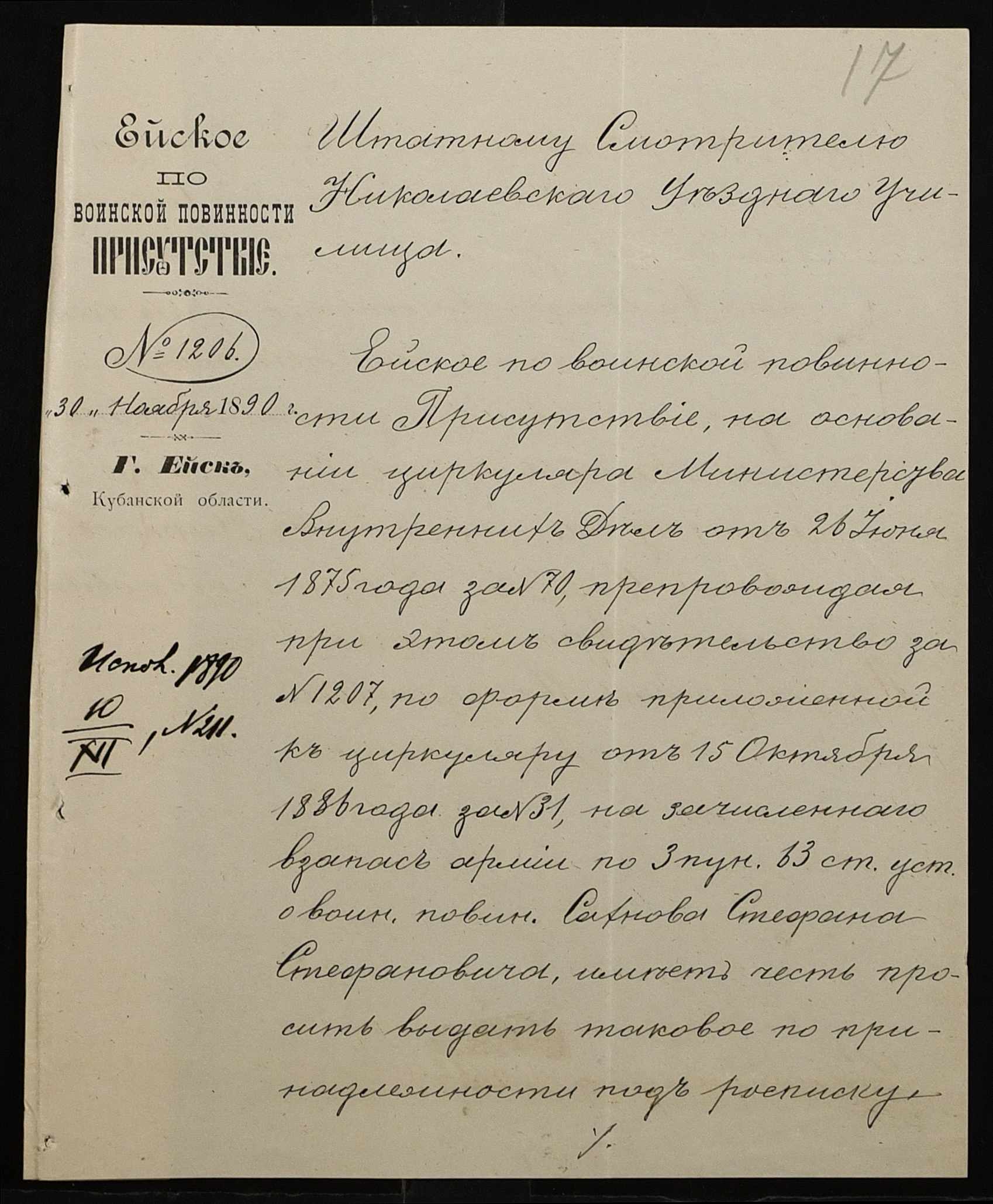 • • • • Справа № 245 “Листування про проходження служби чиновниками училища”