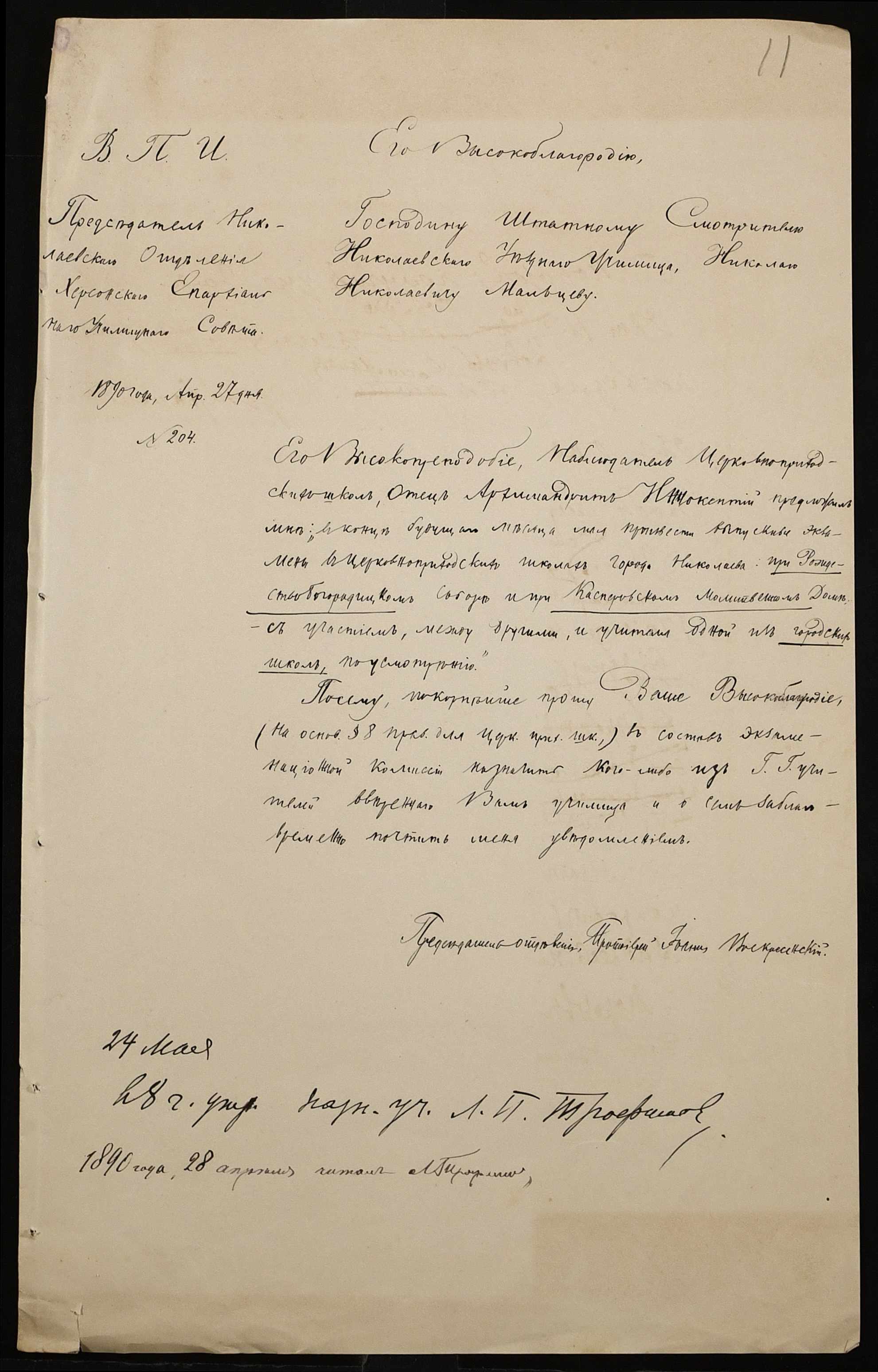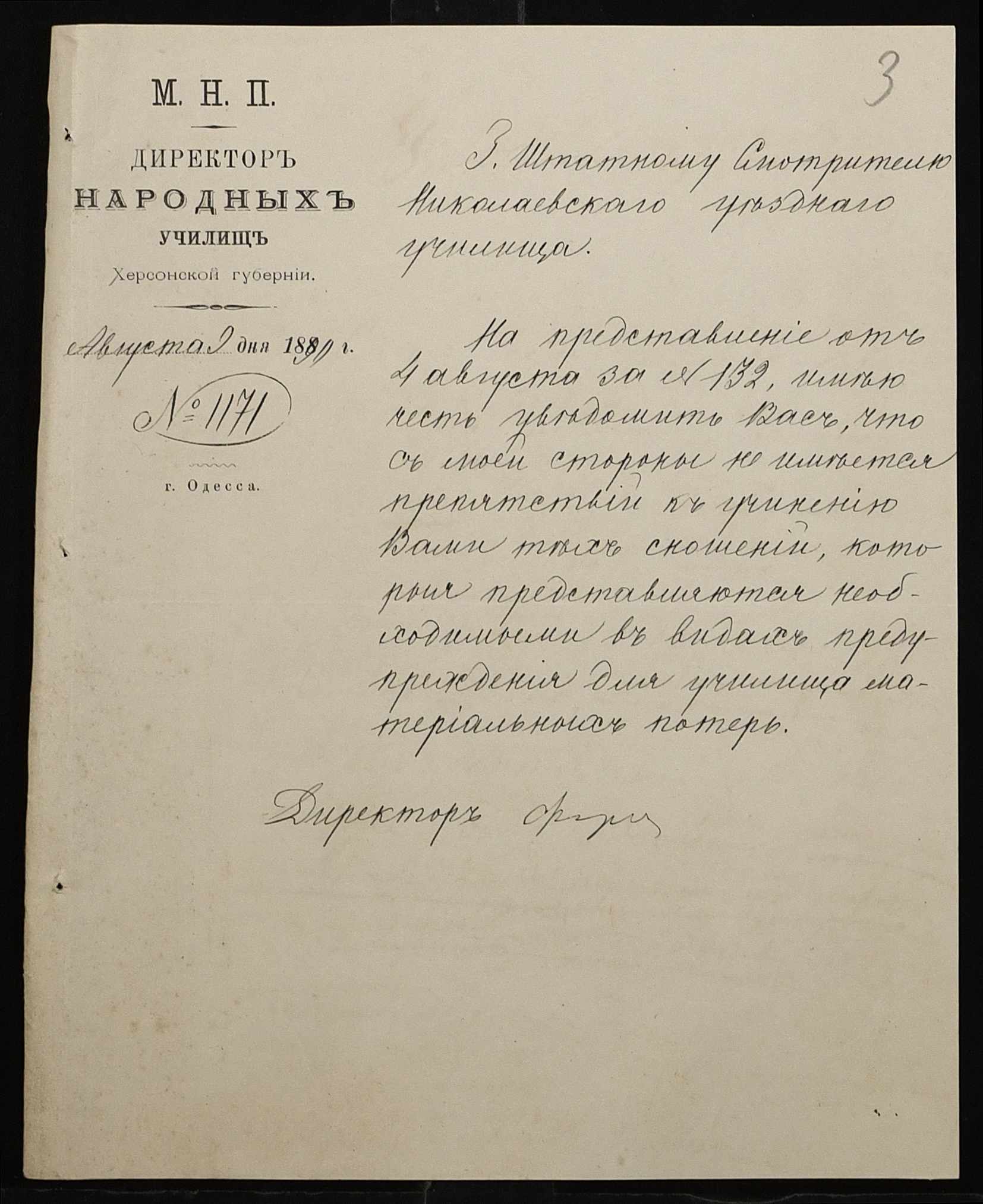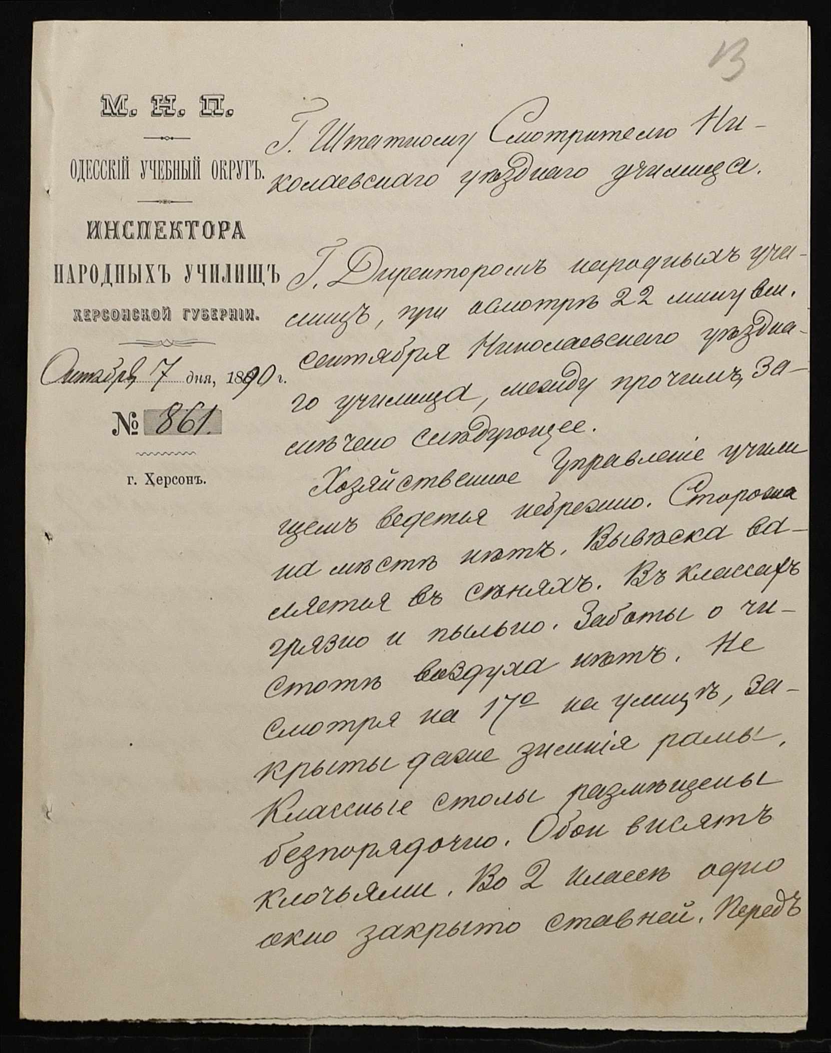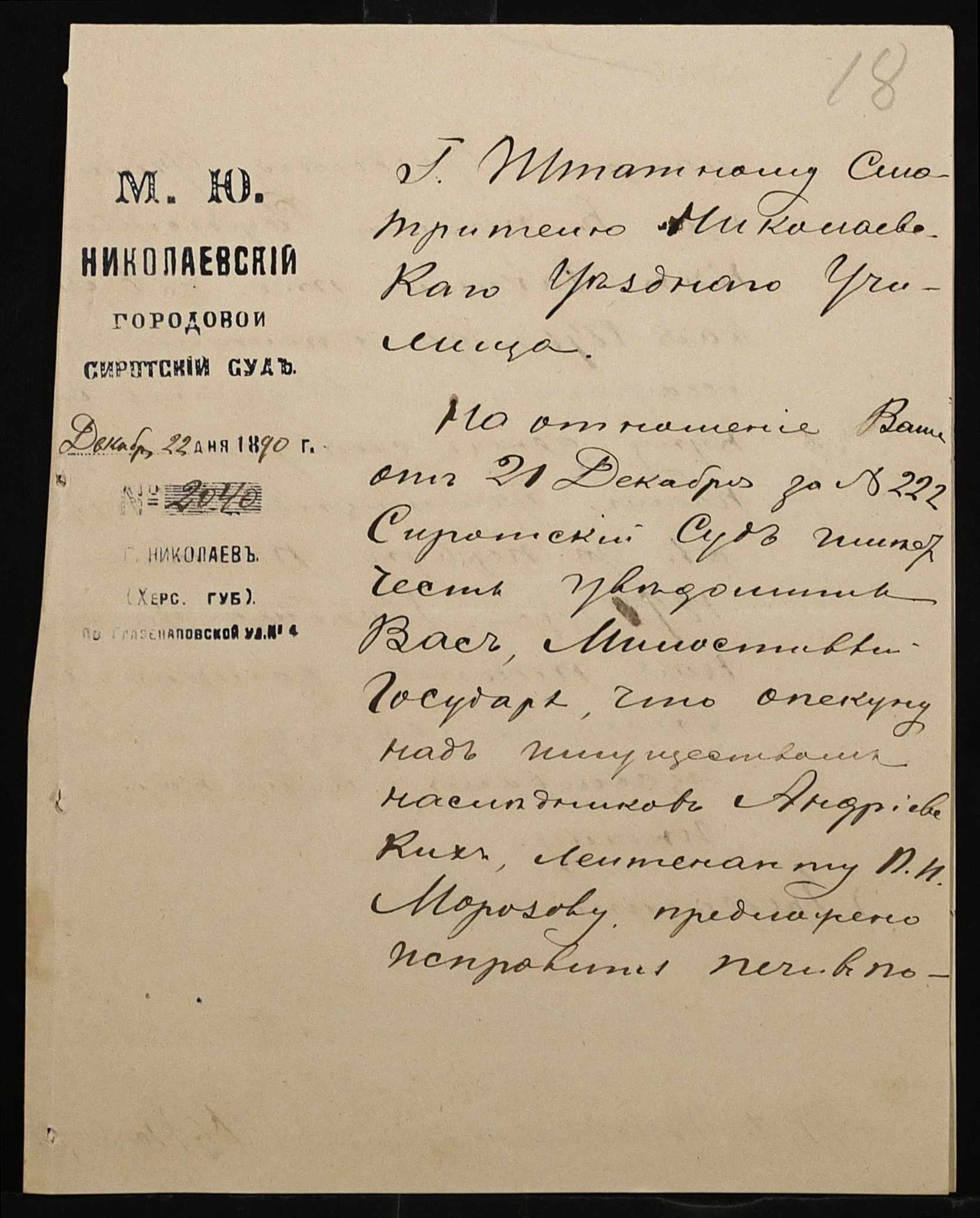 • • • • Справа № 245 “Листування про проходження служби чиновниками училища”