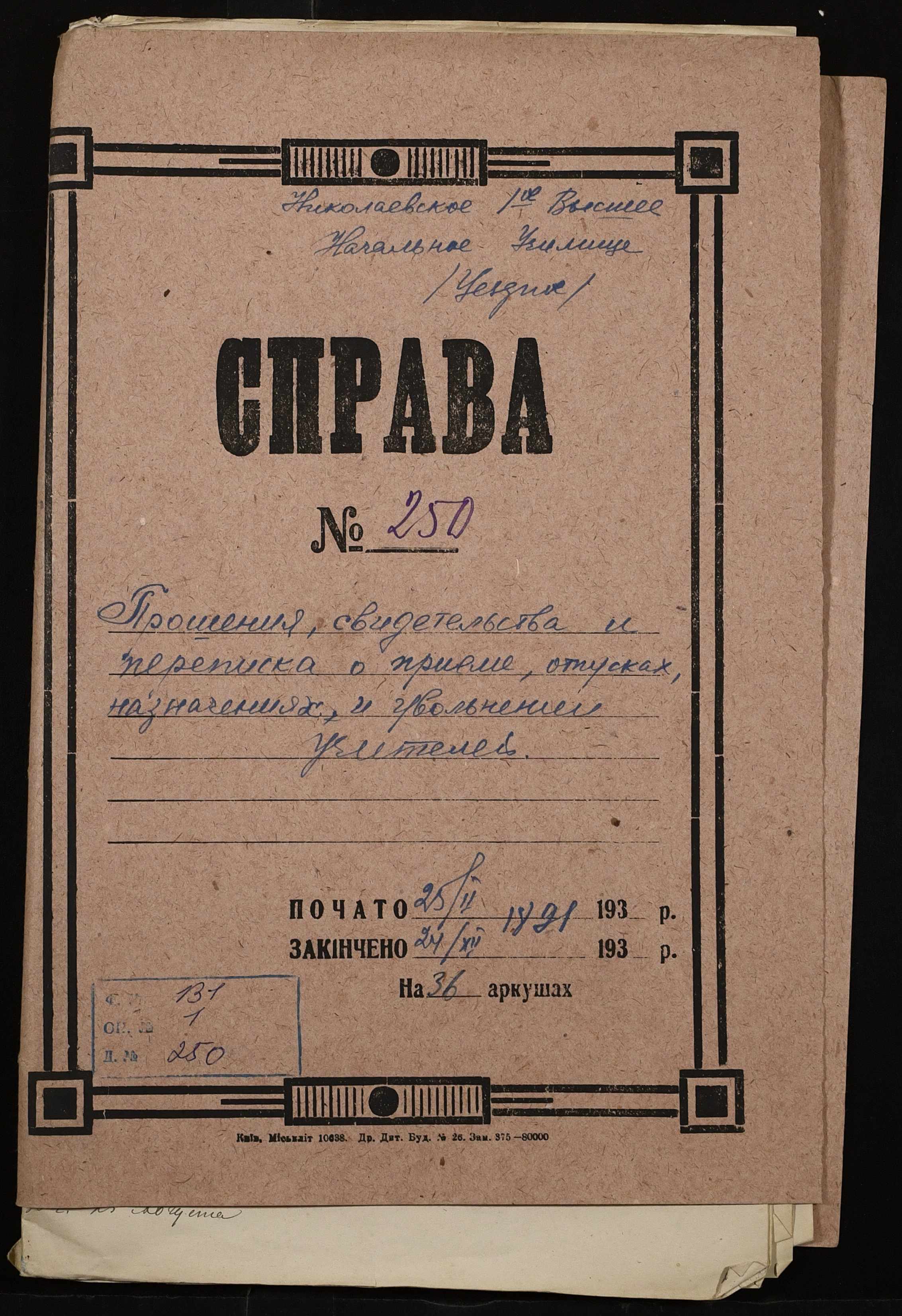 Фонд 131 / Опис 1 / Справа 250